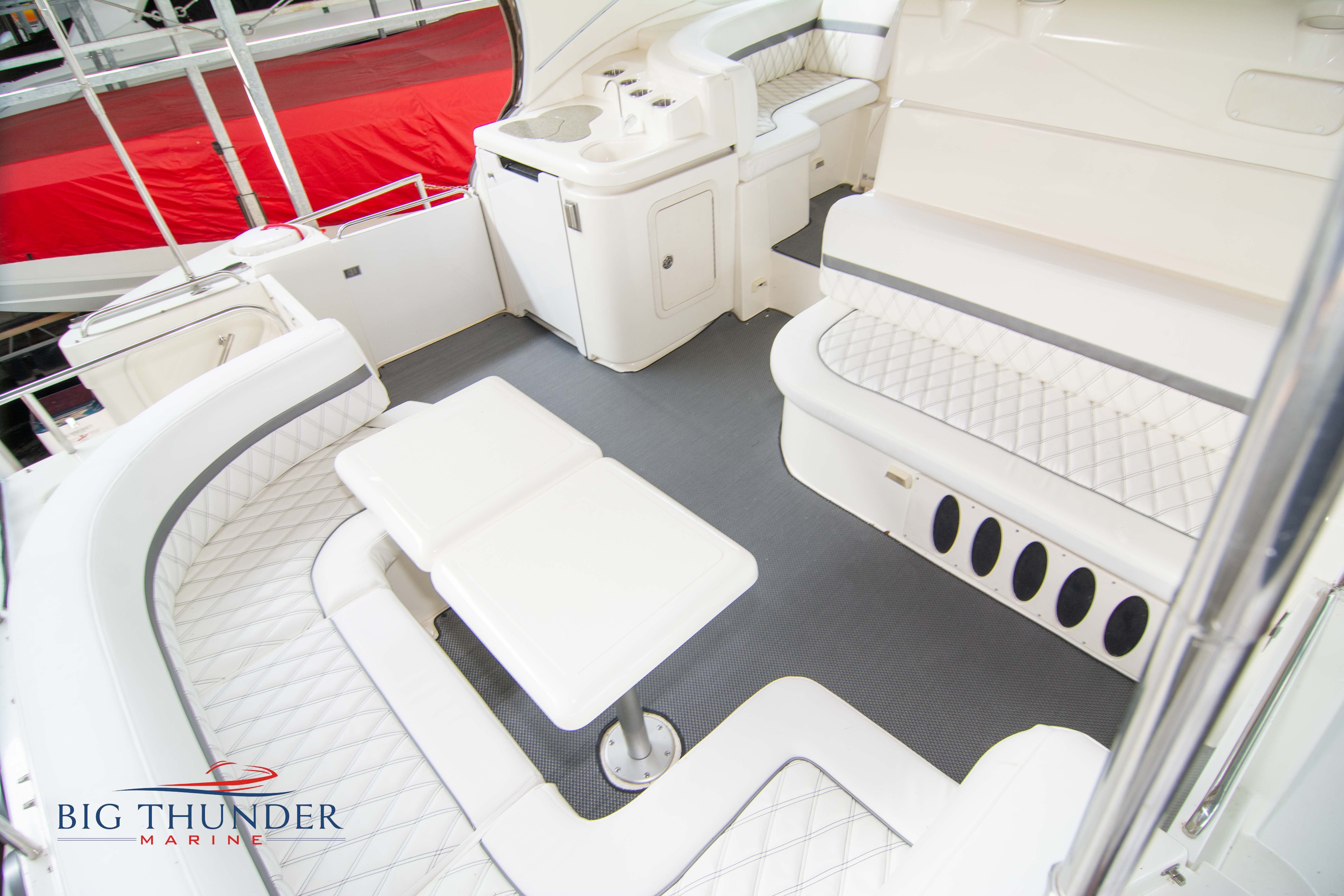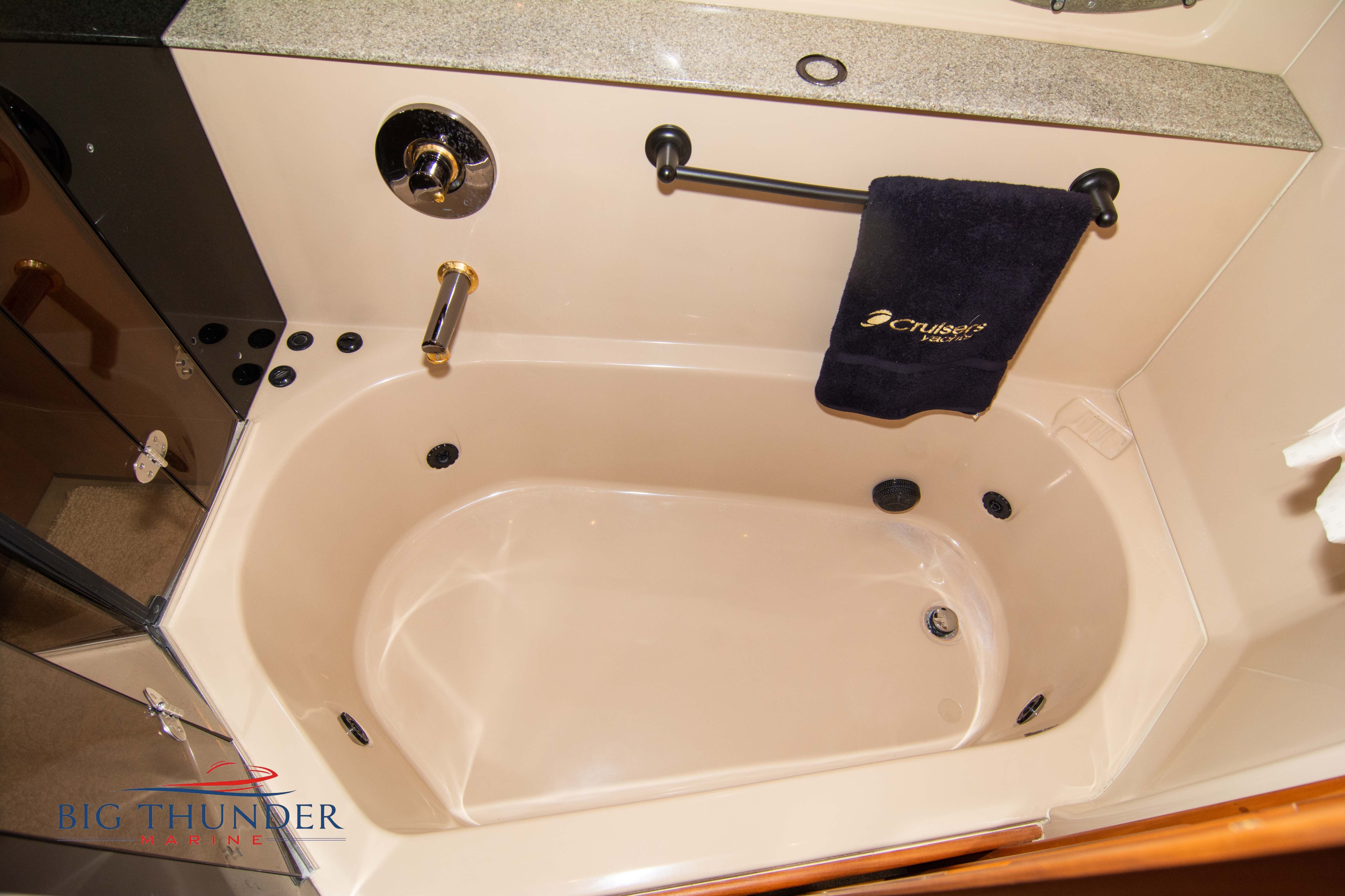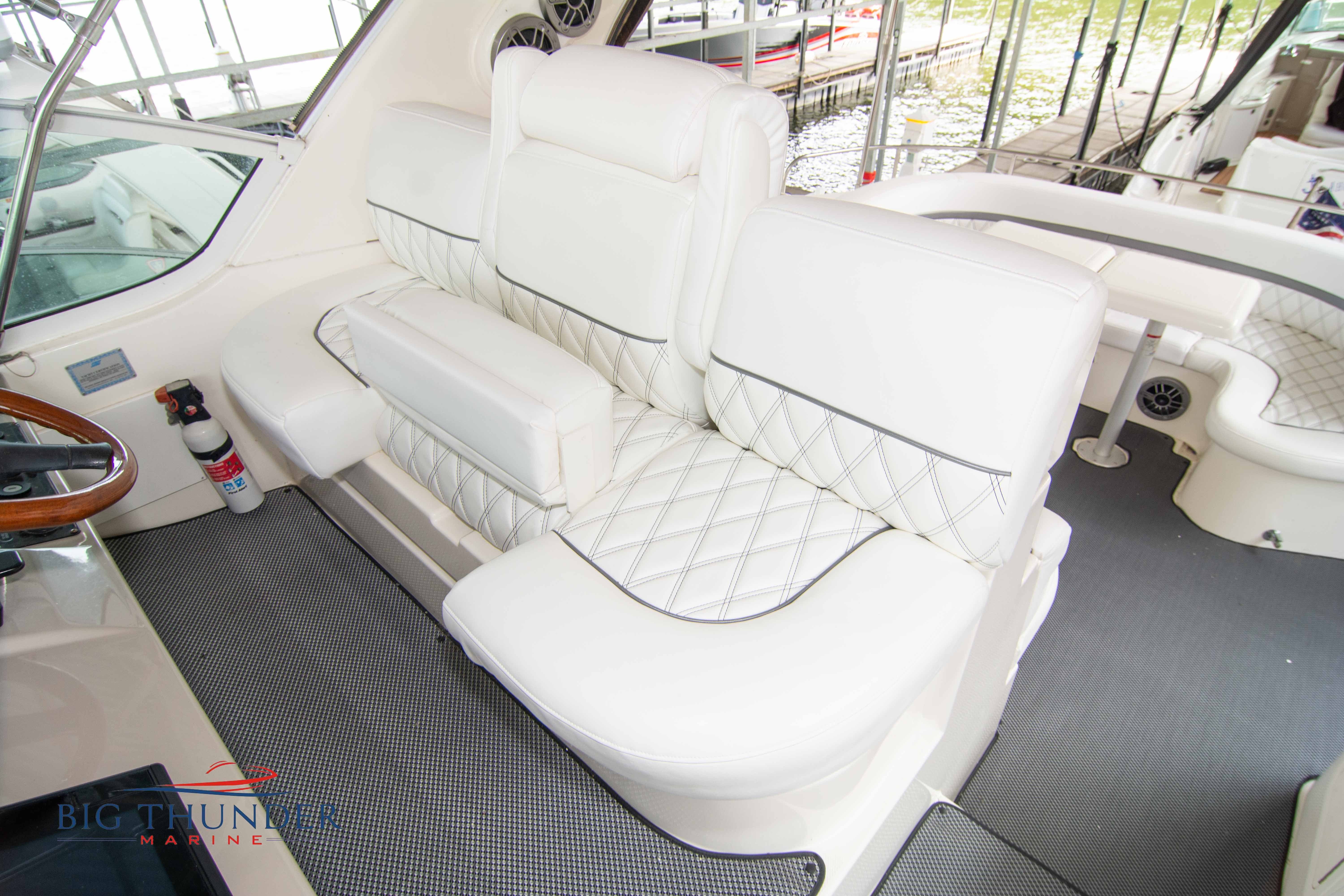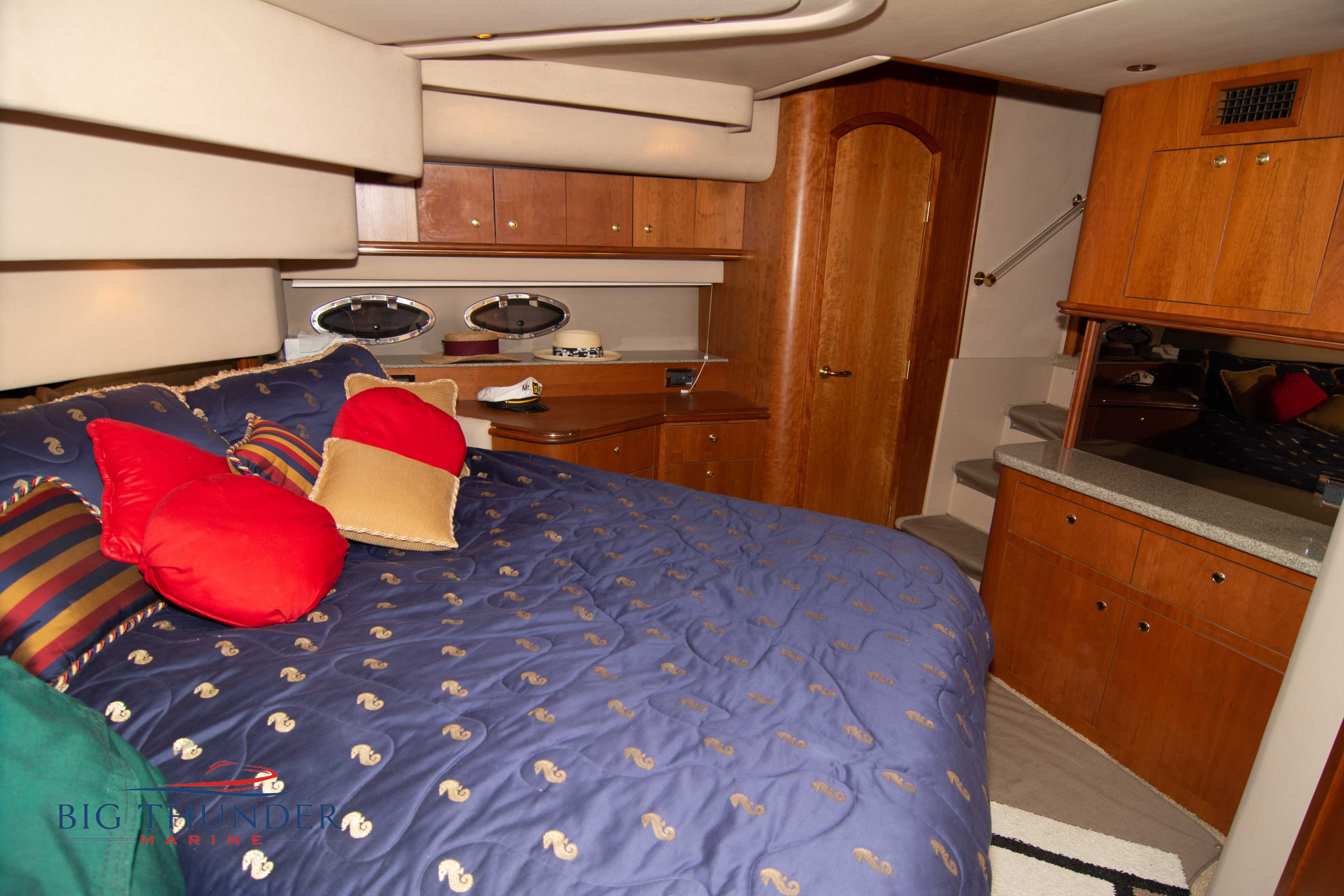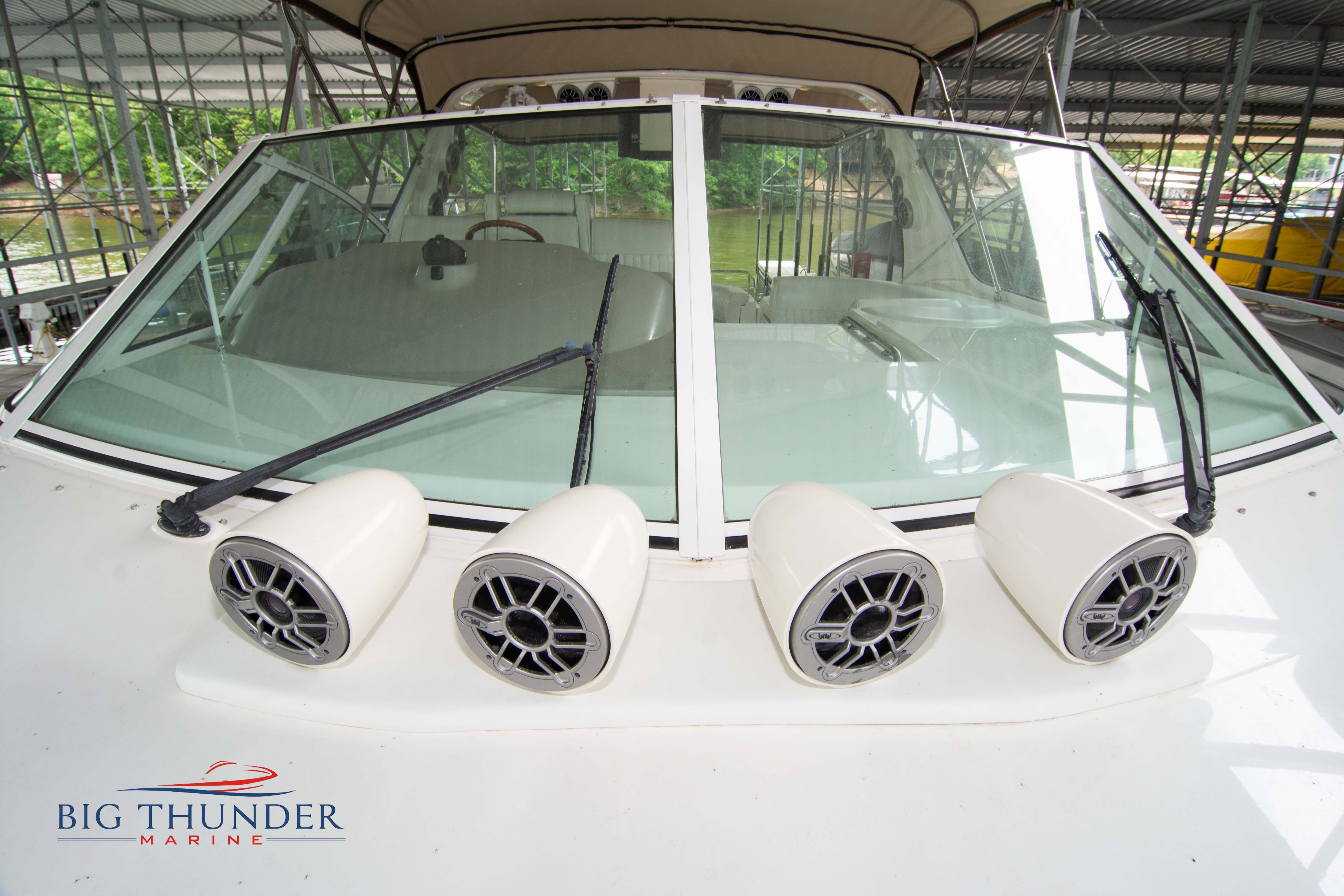 2002 Cruisers Yachts 4450 All aboard this immaculate, meticulously maintained by one owner express motoryacht! Vessel has been fresh water only its entire life, with all service and maintenance schedules kept. Offers all the advantages of express-style cruising and entertaining while keeping with the luxury at-home accommodations of a triple-stateroom aft aft cabin motoryacht. Complete inside and out professional sound system installed and tuned by Waves & Wheels w/ its own battery system, Express style seating, Companion helm, Full facing dinette, Master bath w/ HOT TUB & shower, Guest bath w/ shower, Cherry wood interior, Cabin large flatscreen & entertainment center, Cockpit flatscreen TV, Full gen heat & air, Hot water heater, Full fridge/ice maker, Full kitchen, Power windlass, Battery charging system. Too many features to list, this one must be seen. We consider all trades, financing options available. Call for more info and schedule a demo today!