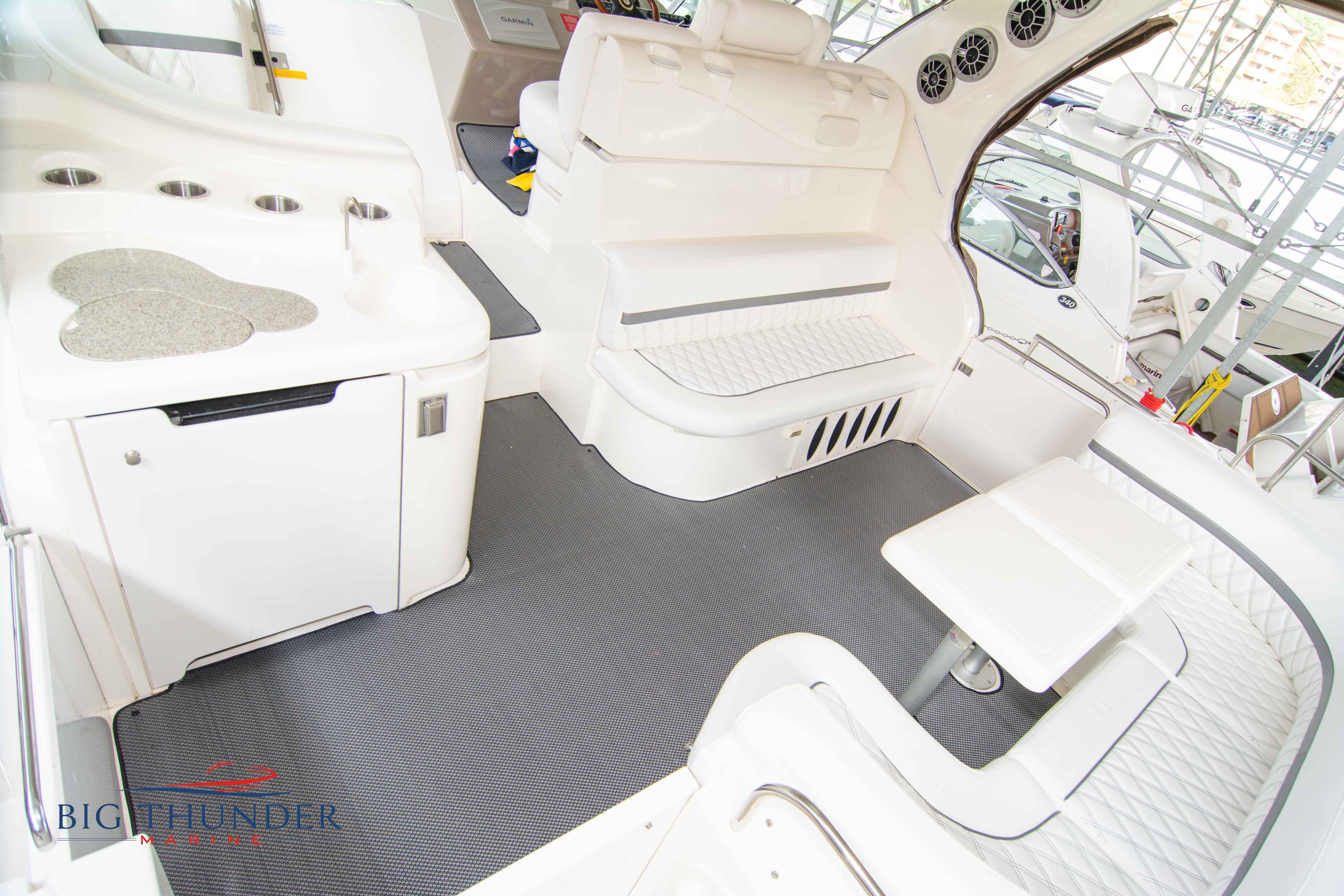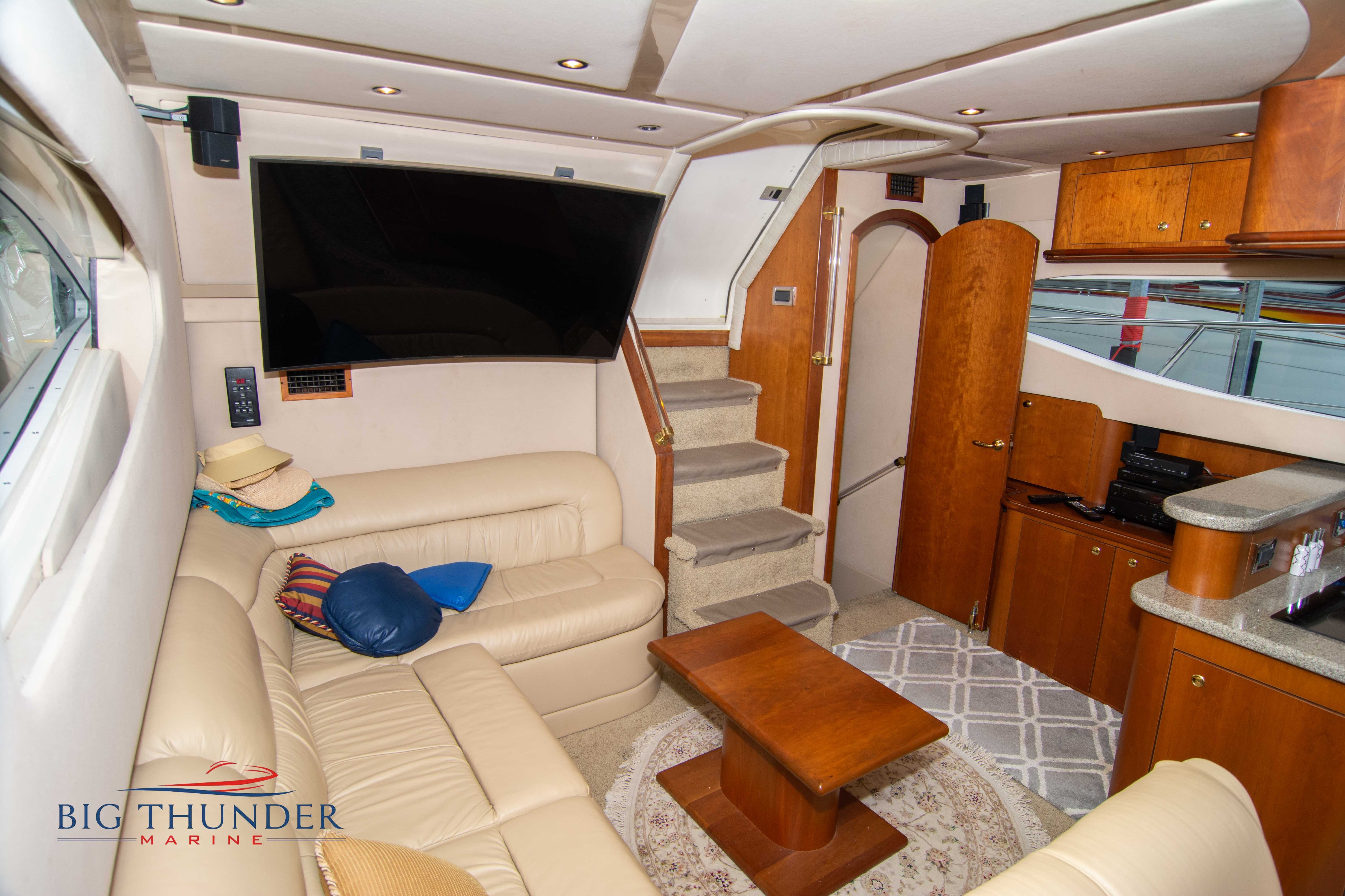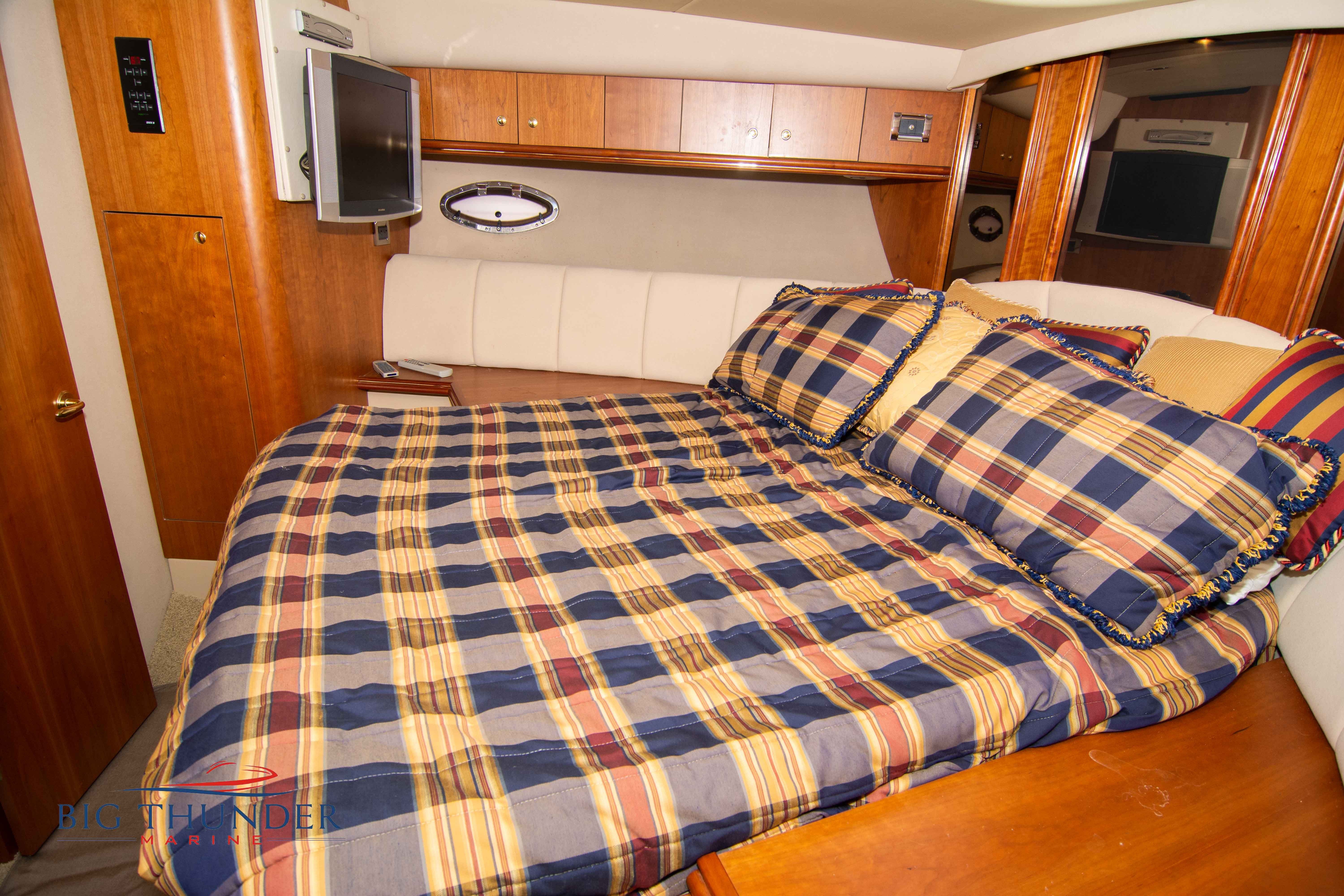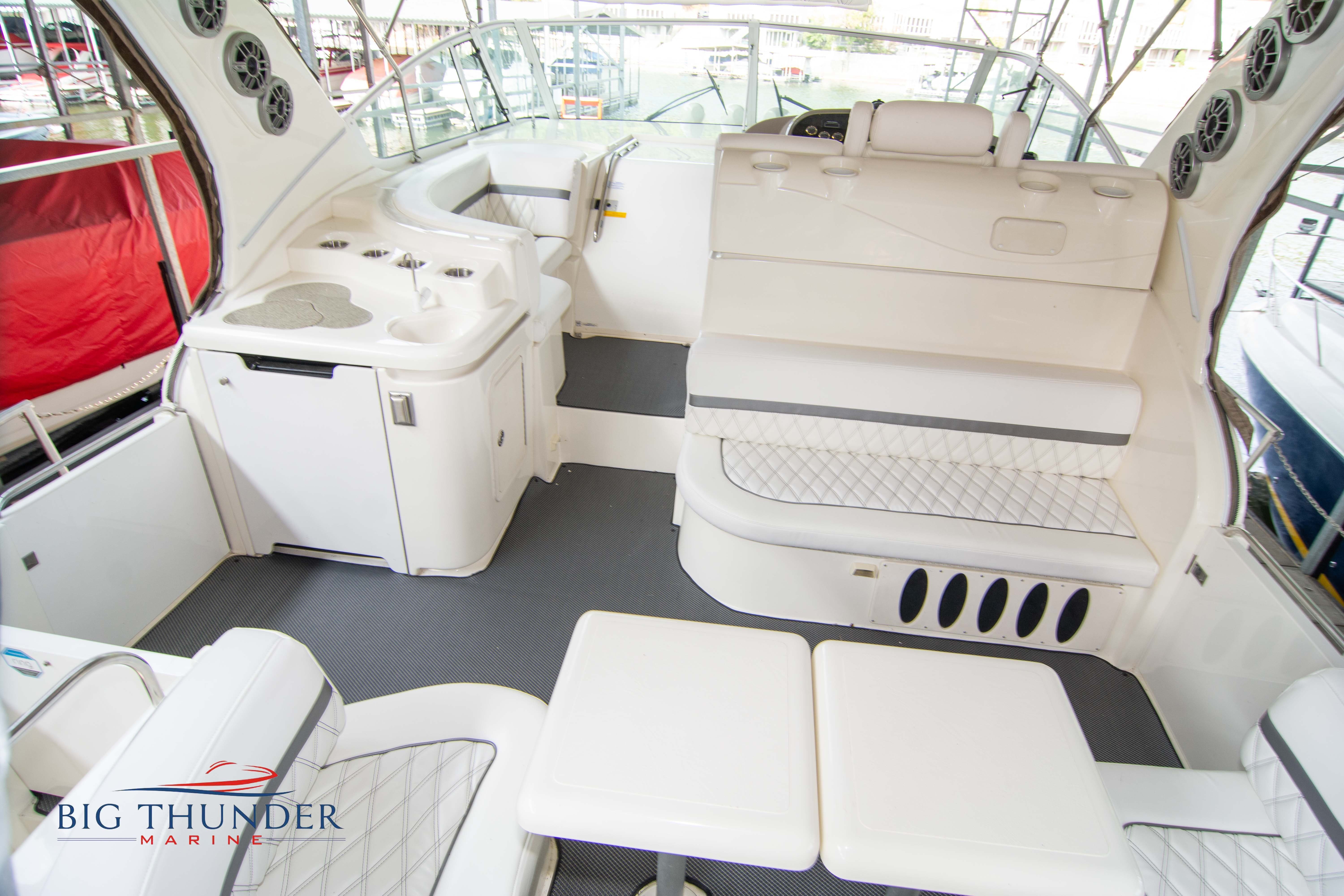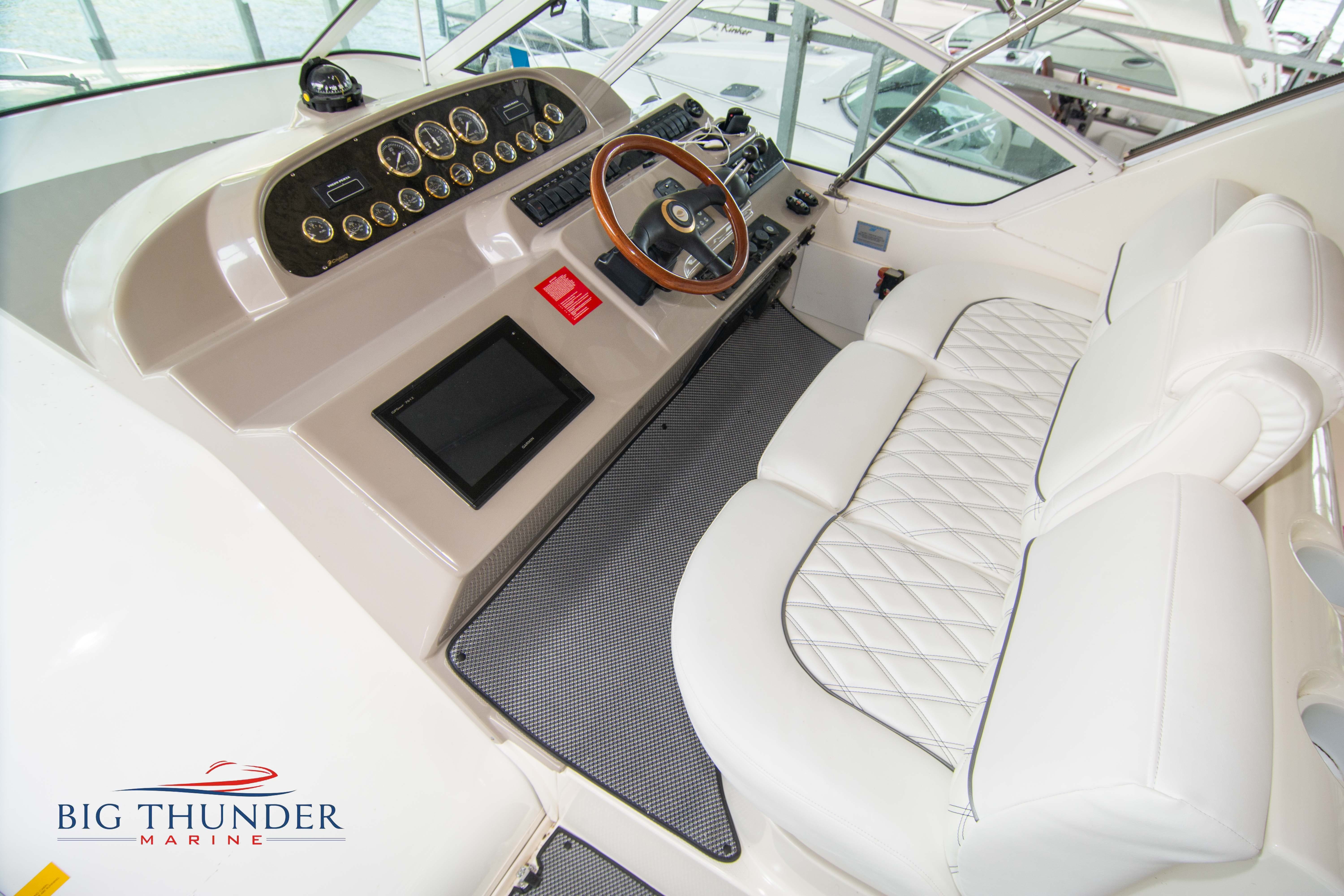 2002 Cruisers Yachts 4450 All aboard this immaculate, meticulously maintained by one owner express motoryacht! Vessel has been fresh water only its entire life, with all service and maintenance schedules kept. Offers all the advantages of express-style cruising and entertaining while keeping with the luxury at-home accommodations of a triple-stateroom aft aft cabin motoryacht. Complete inside and out professional sound system installed and tuned by Waves & Wheels w/ its own battery system, Express style seating, Companion helm, Full facing dinette, Master bath w/ HOT TUB & shower, Guest bath w/ shower, Cherry wood interior, Cabin large flatscreen & entertainment center, Cockpit flatscreen TV, Full gen heat & air, Hot water heater, Full fridge/ice maker, Full kitchen, Power windlass, Battery charging system. Too many features to list, this one must be seen. We consider all trades, financing options available. Call for more info and schedule a demo today!