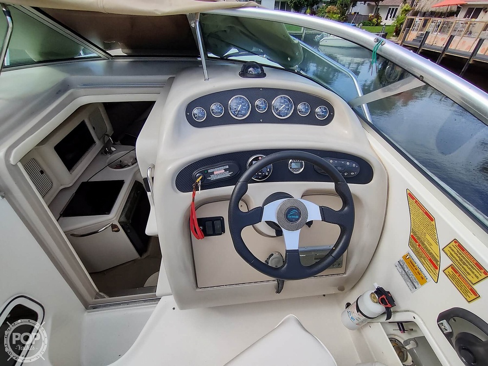 This boat is located in Pompano Beach, Florida and is in good condition. She is also equipped with a Mercruiser engine that has only 100 hours.