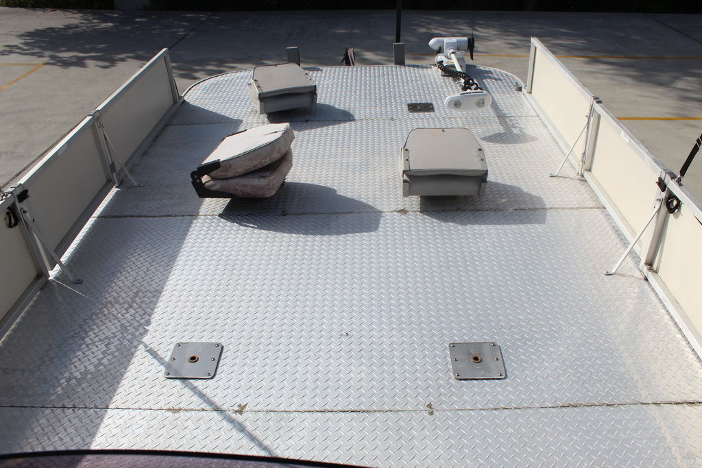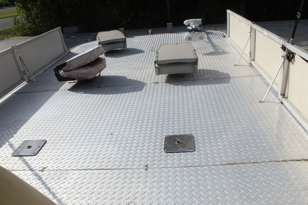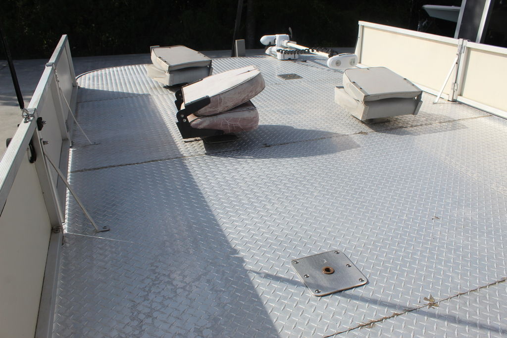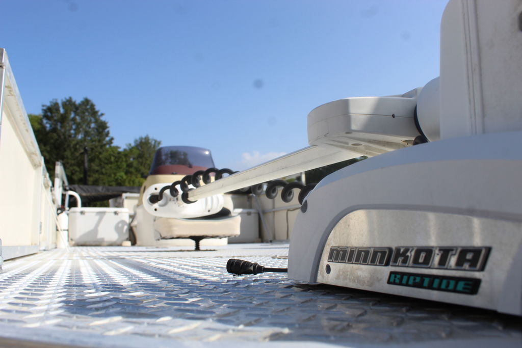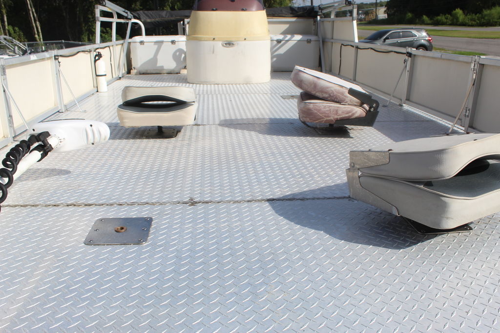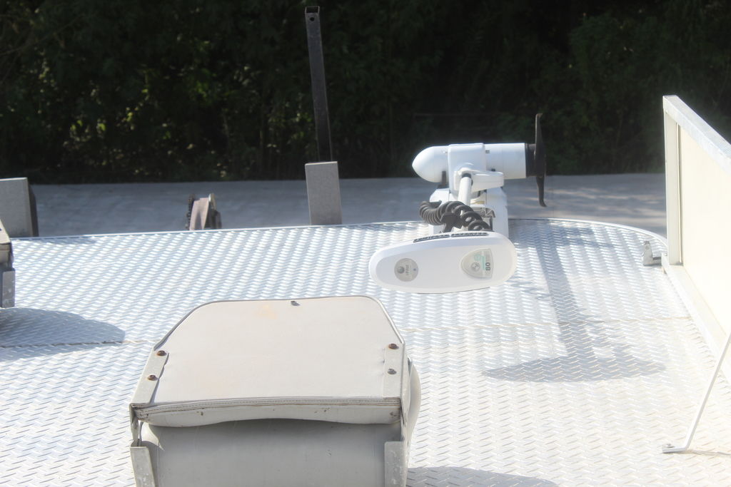 This 2002 Skeeter pontoon has been outfitted to be a fishing machine with plenty of room for everyone. It is powered by a 2016 Yamaha F115 with only 86 hours and will push this boat up to 31MPH; while remaining very fuel efficient at cruise. The entire floor has been diamond plated making it very durable and super easy to clean and maintain. The console sits out the way giving you plenty of walk around room. This skeeter is sitting on a tandem axle painted trailer that is road ready. It comes equipped with every option one would want on their fishing boat that will be listed below.