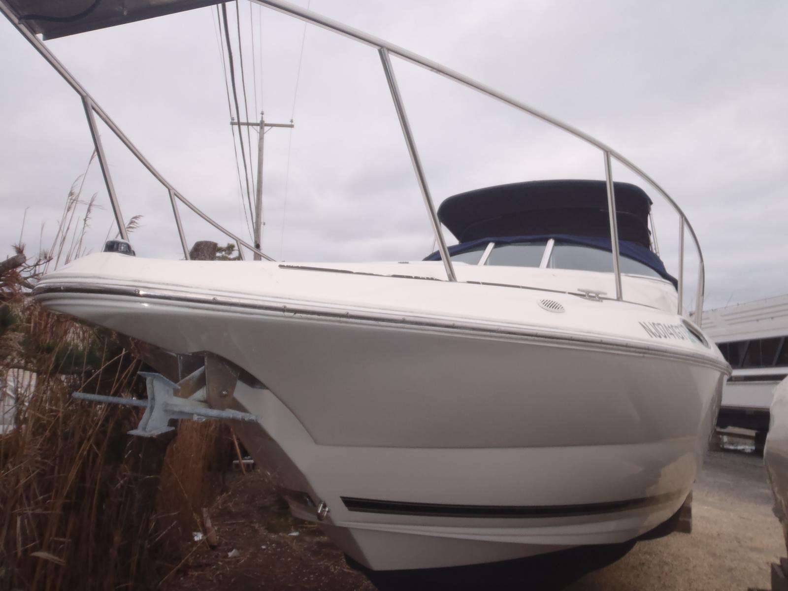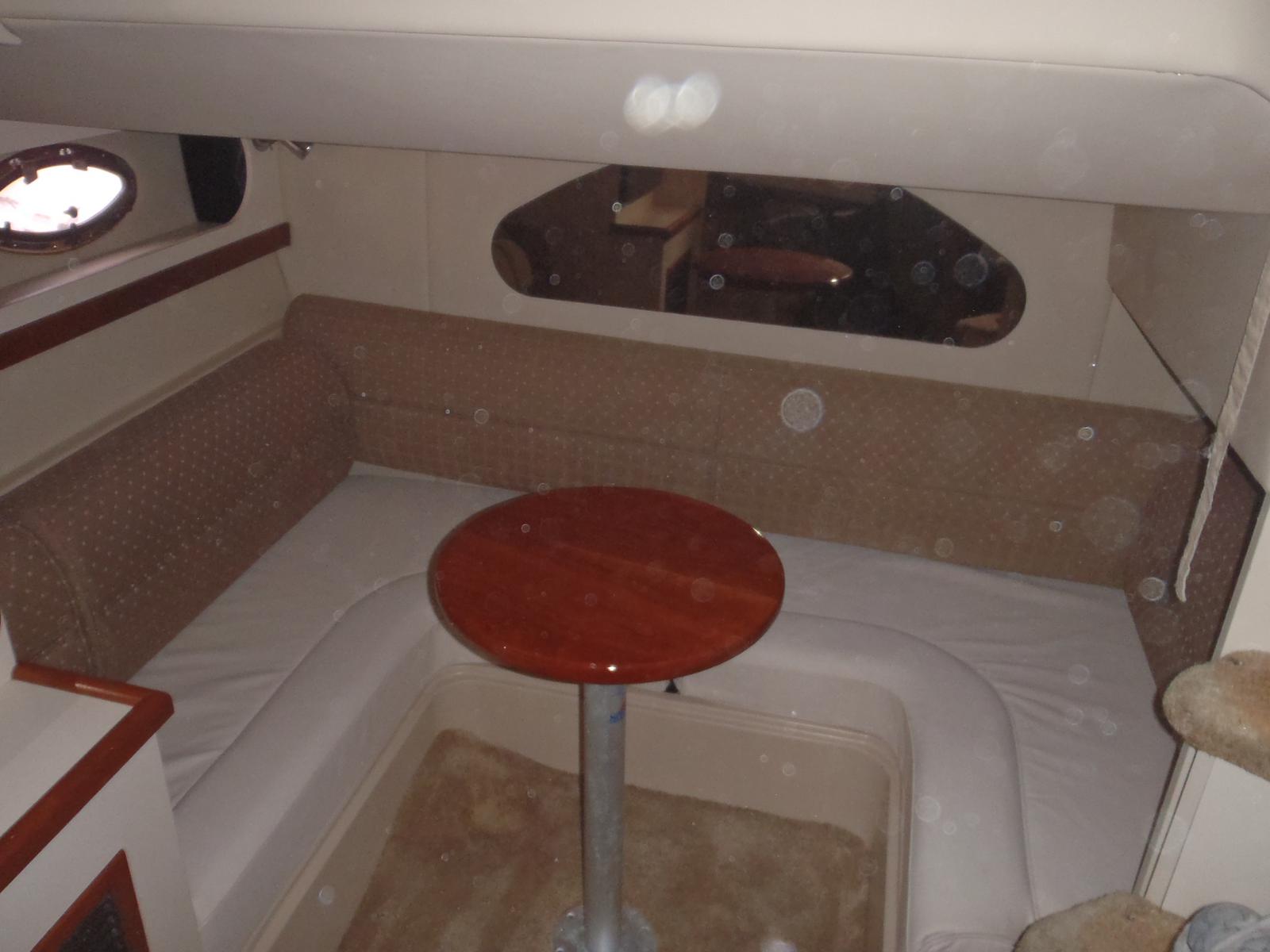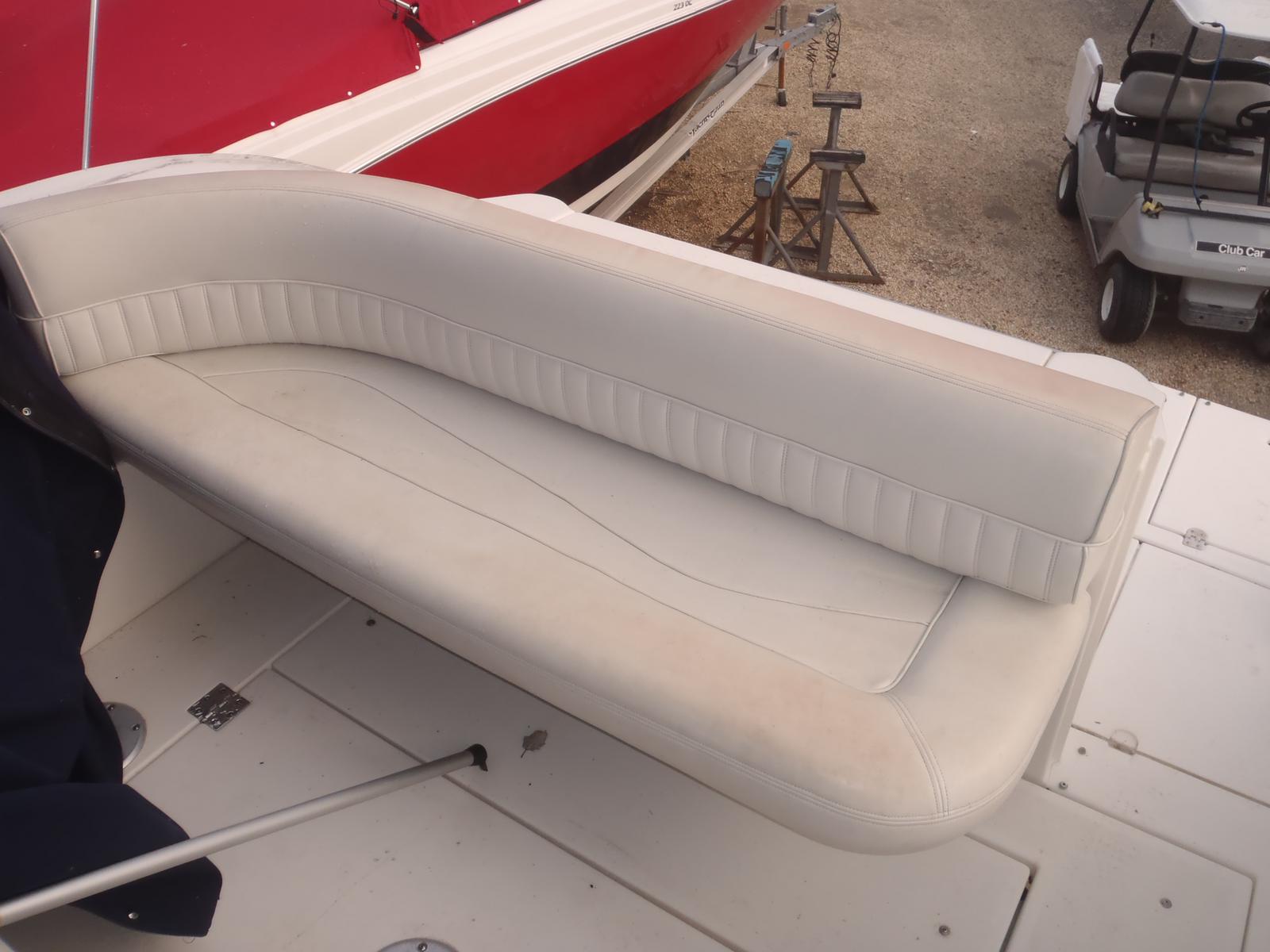 A double-wide seat is found at the helm, and molded steps next to the helm provide access via the walk-through windshield to the fore-deck. A U-shaped settee at the stern converts into a big sun pad. Additional features include; a cleverly designed integrated anchor platform, good engine access, and a well-arranged helm with comfortable seating.