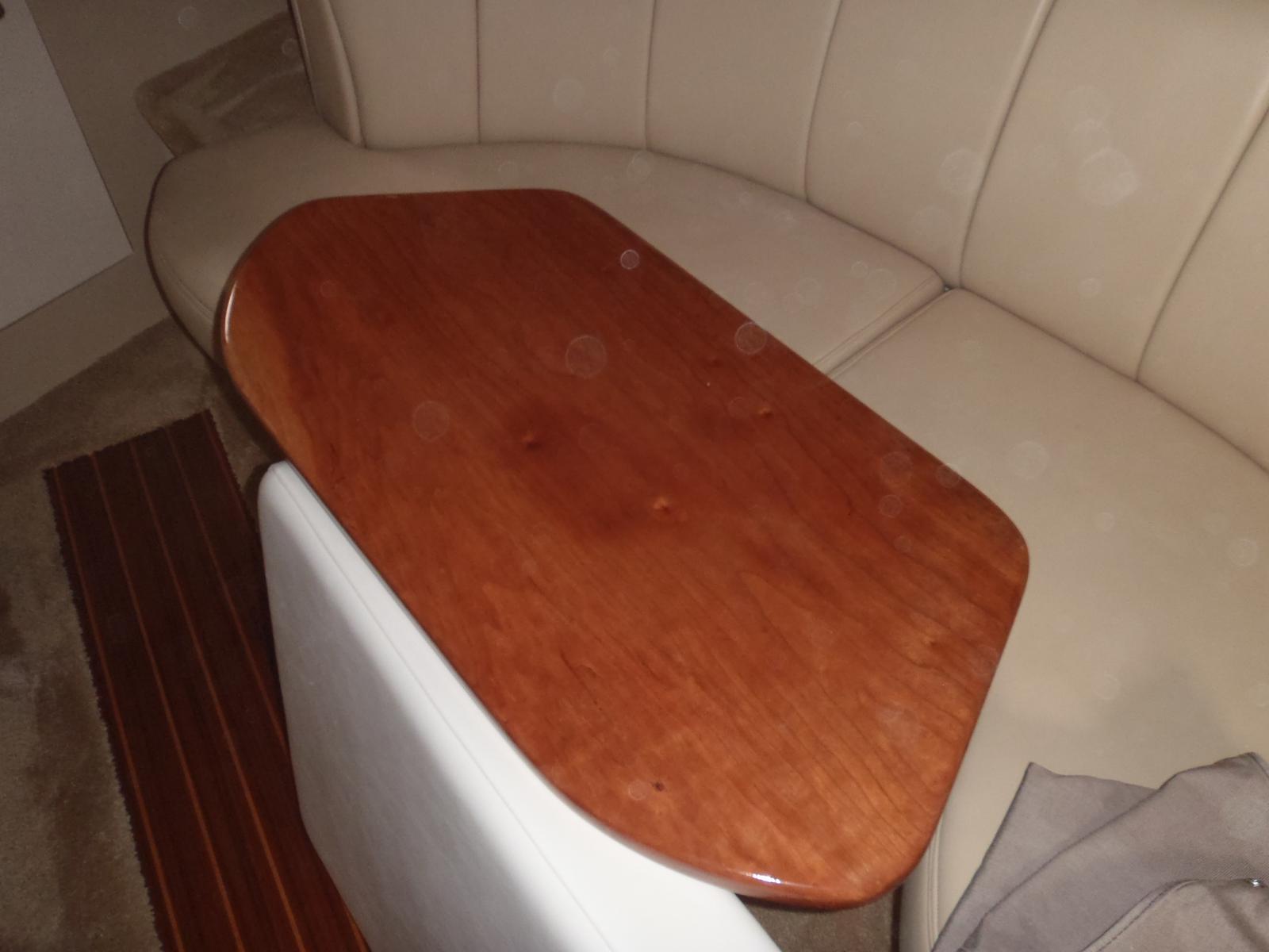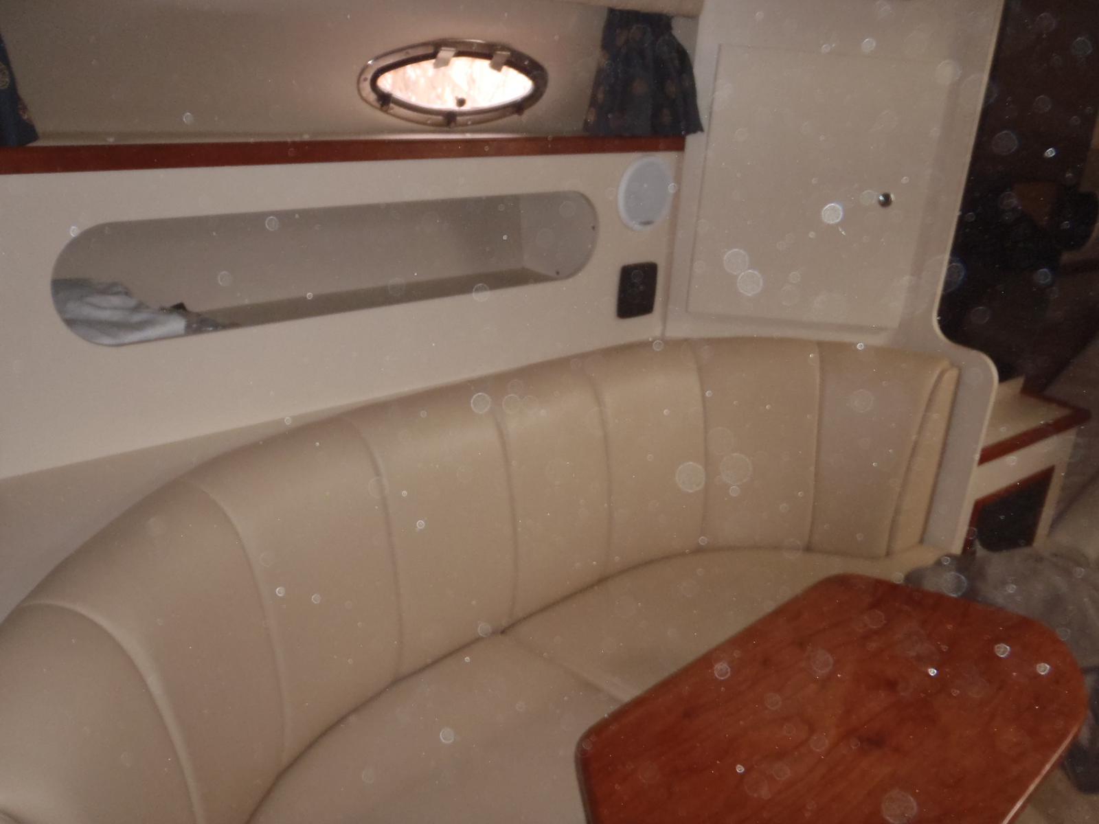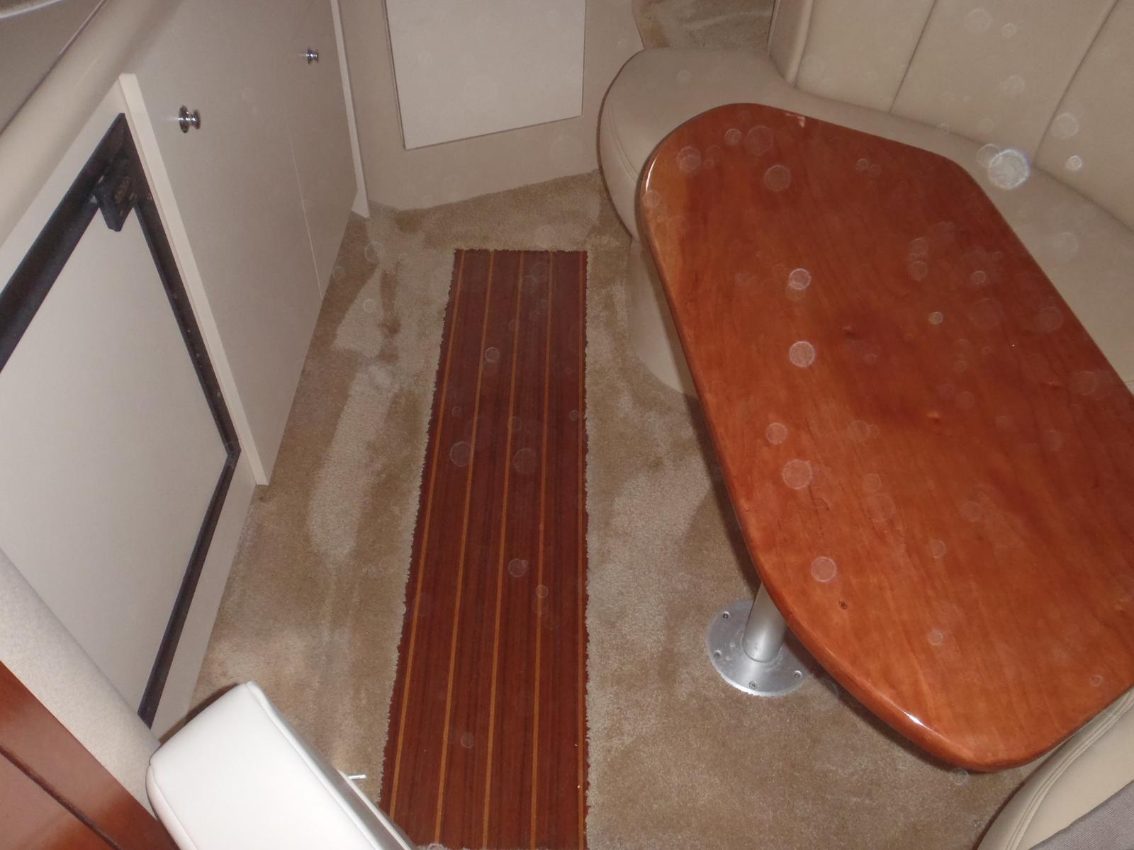 A double-wide seat is found at the helm, and molded steps next to the helm provide access via the walk-through windshield to the fore-deck. A U-shaped settee at the stern converts into a big sun pad. Additional features include; a cleverly designed integrated anchor platform, good engine access, and a well-arranged helm with comfortable seating.