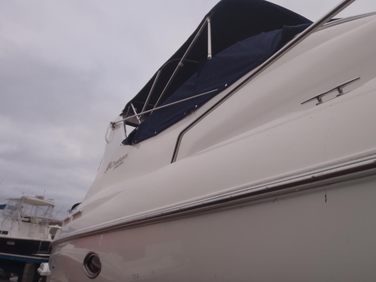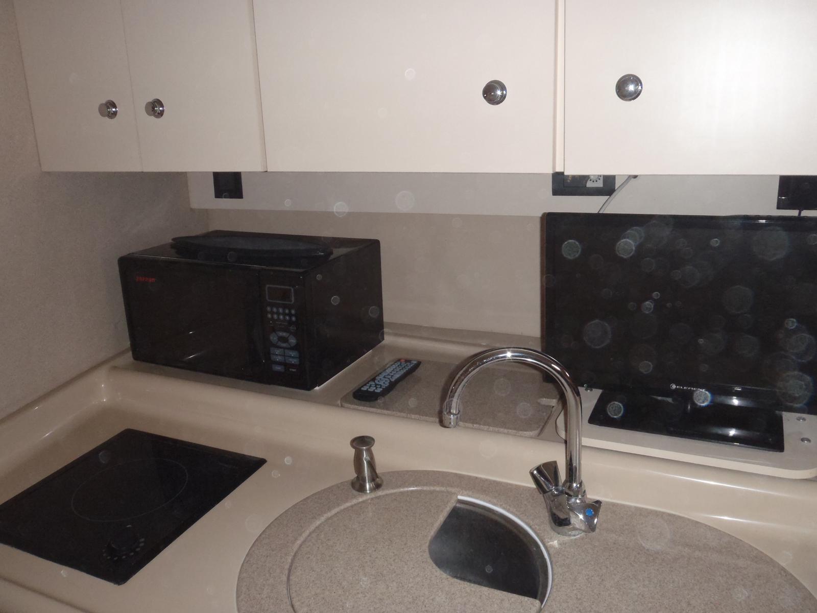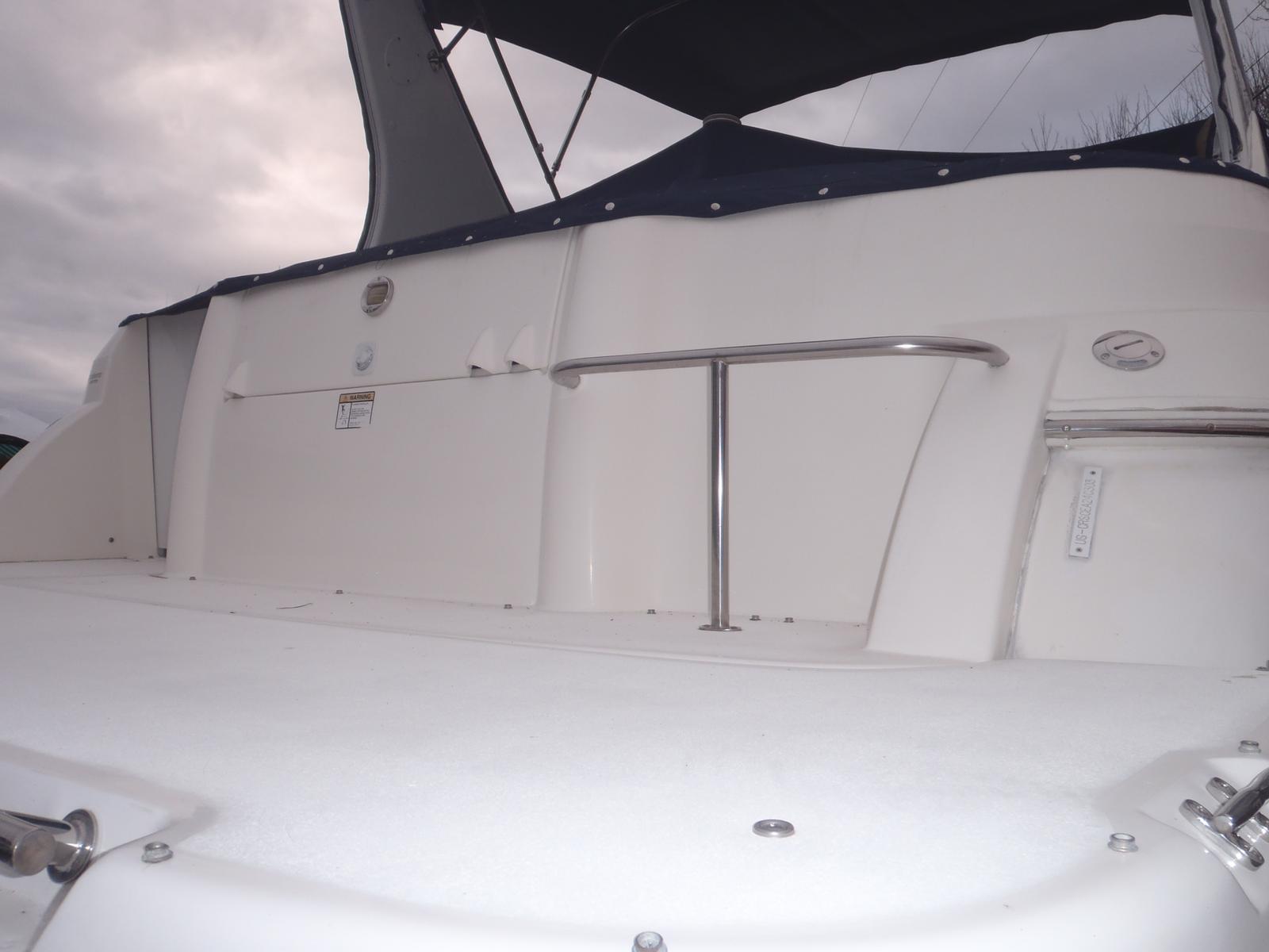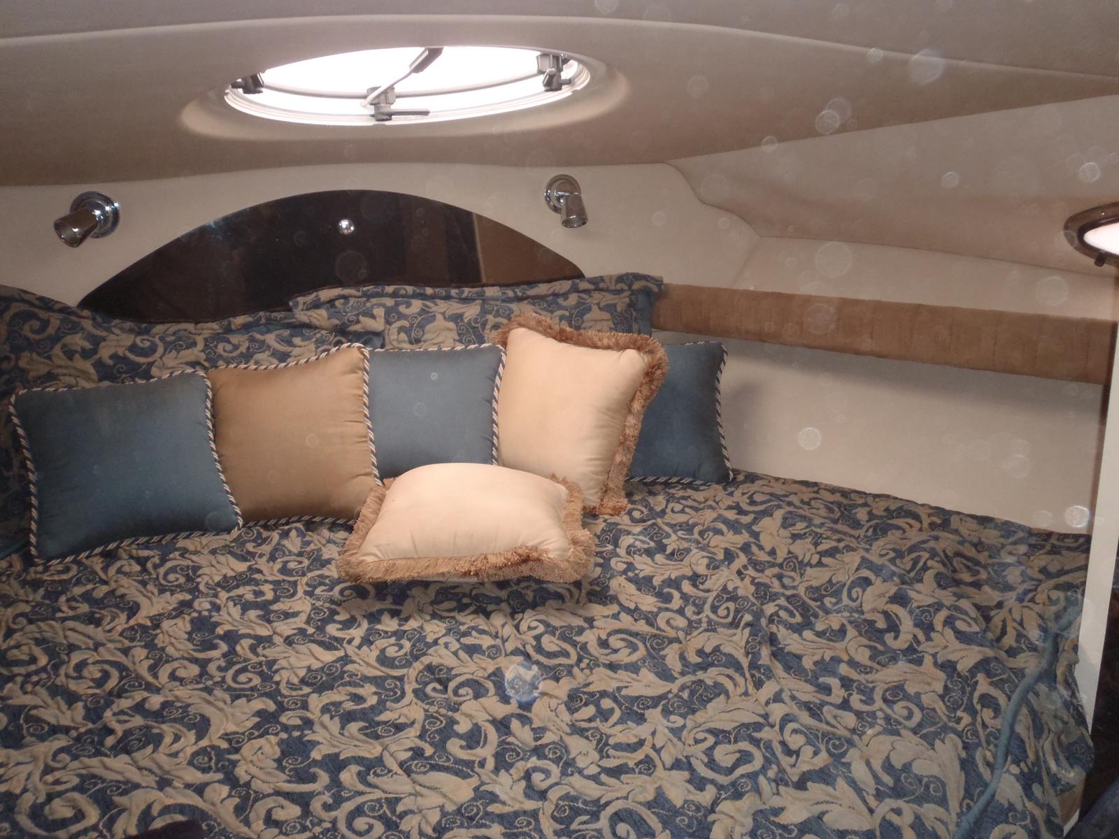 A distinctive boat with sweeping lines to mask her high free-board, the 3075 Express combines the modern styling and upscale amenities common to all late-model Cruisers yachts. Like most family cruisers, she comes with a conventional mid-cabin floor-plan with double-berths fore and aft, a small galley, and a convertible dinette.
