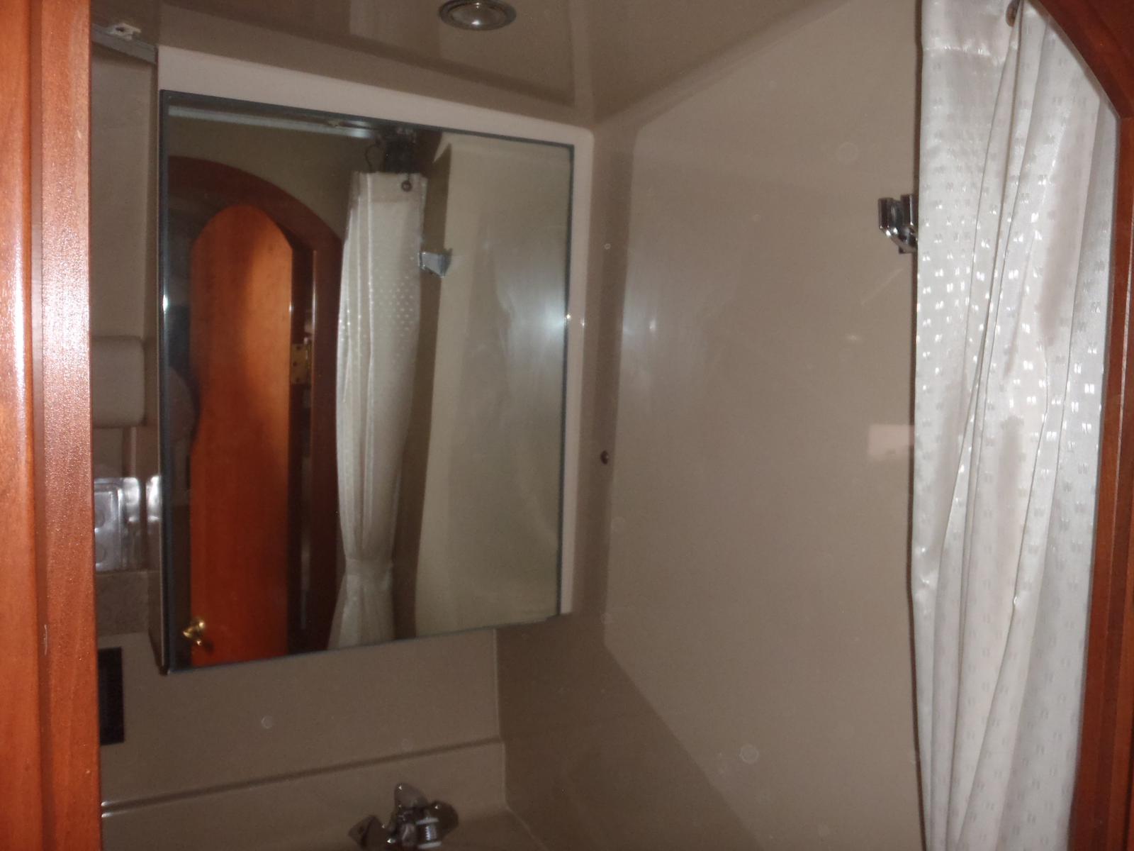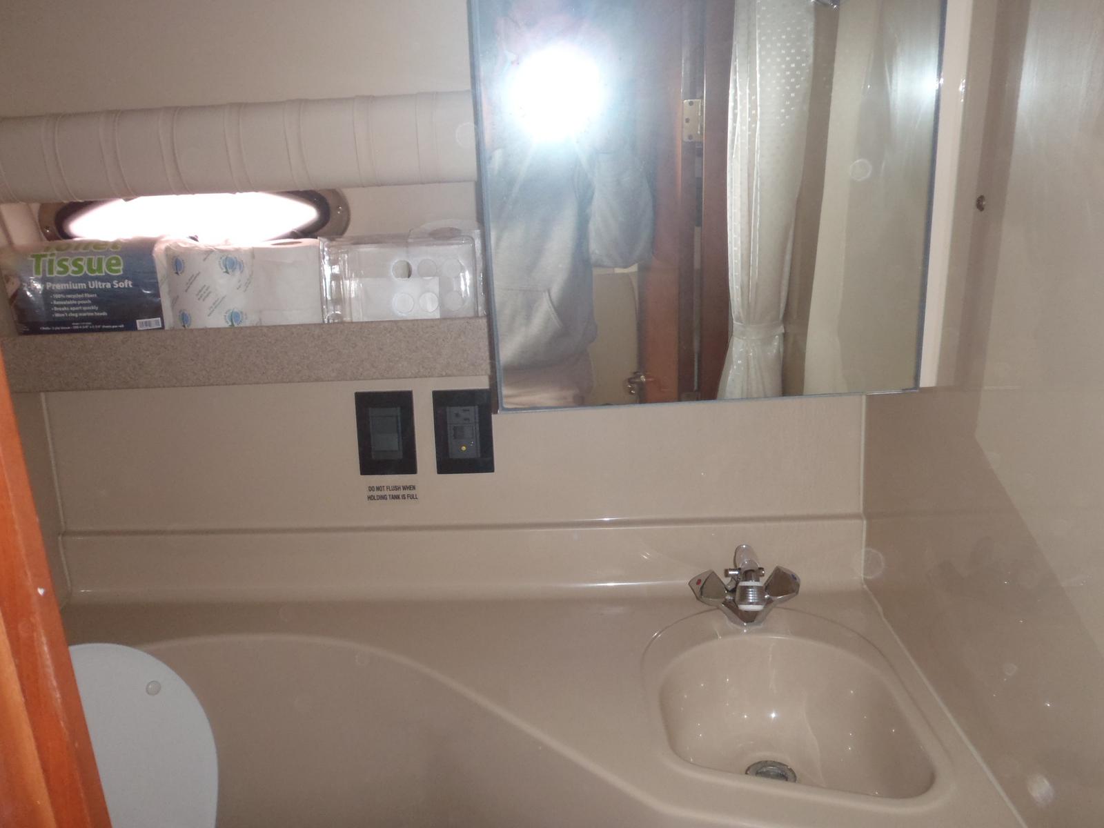 The head compartment, conveniently located to port just down from the companionway steps, is very spacious - always a pleasant surprise in a boat this size. The primary layout for the 3075 Express features a fixed double-berth aft, but owners may select an alternate layout that includes an aft settee that converts to a sleeper.