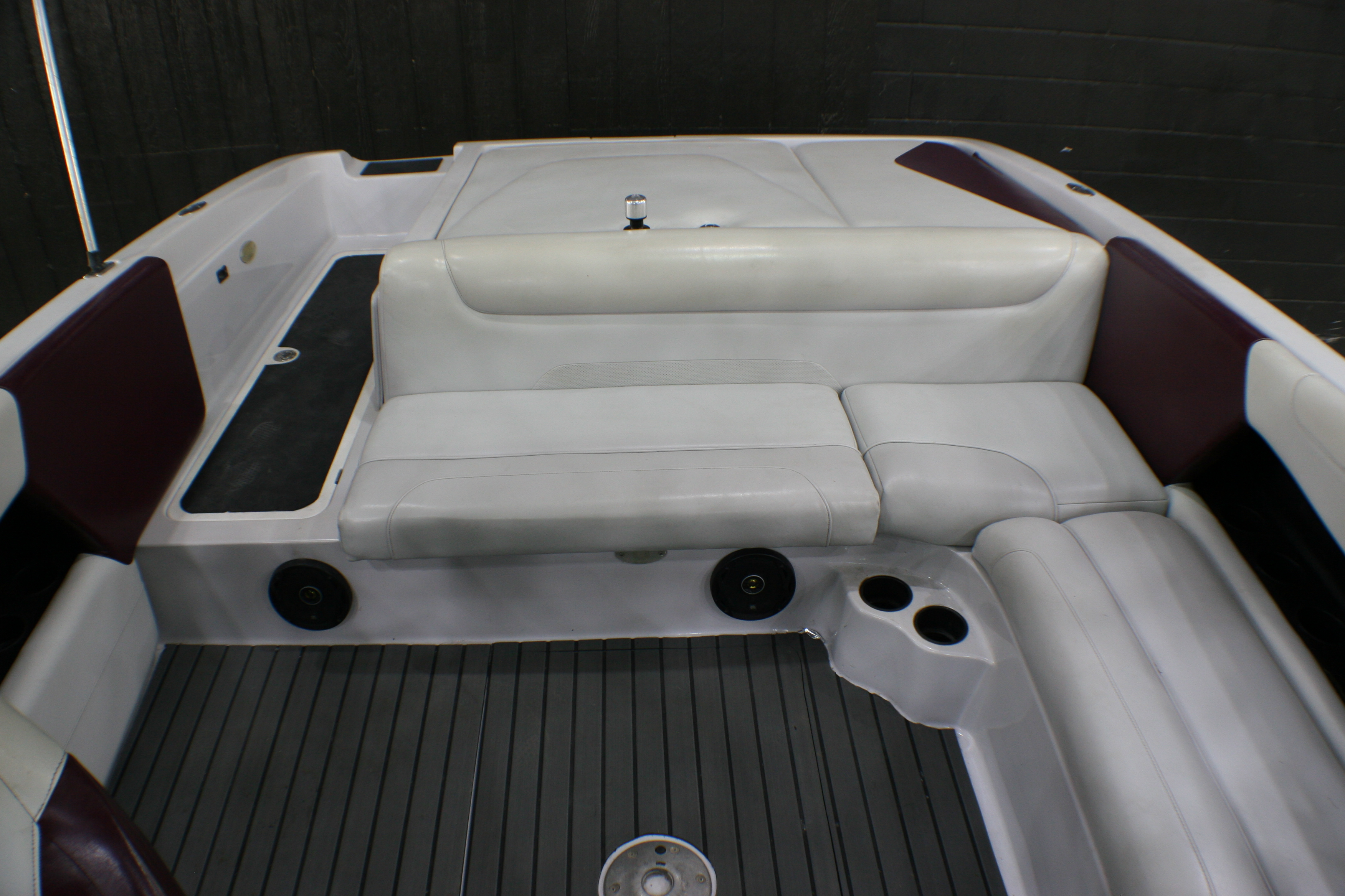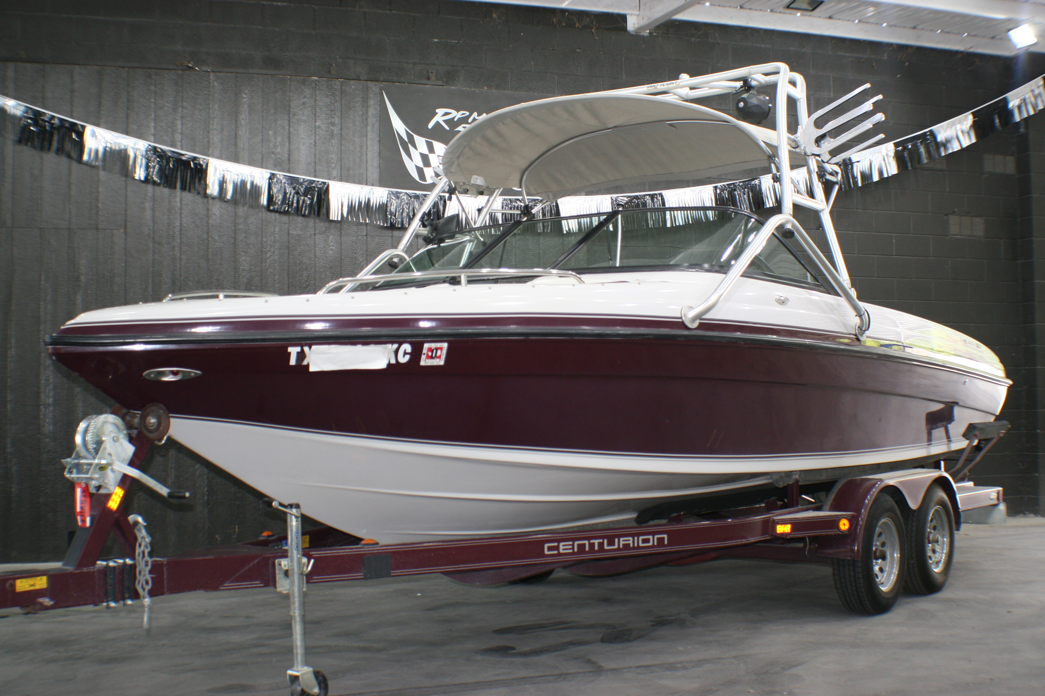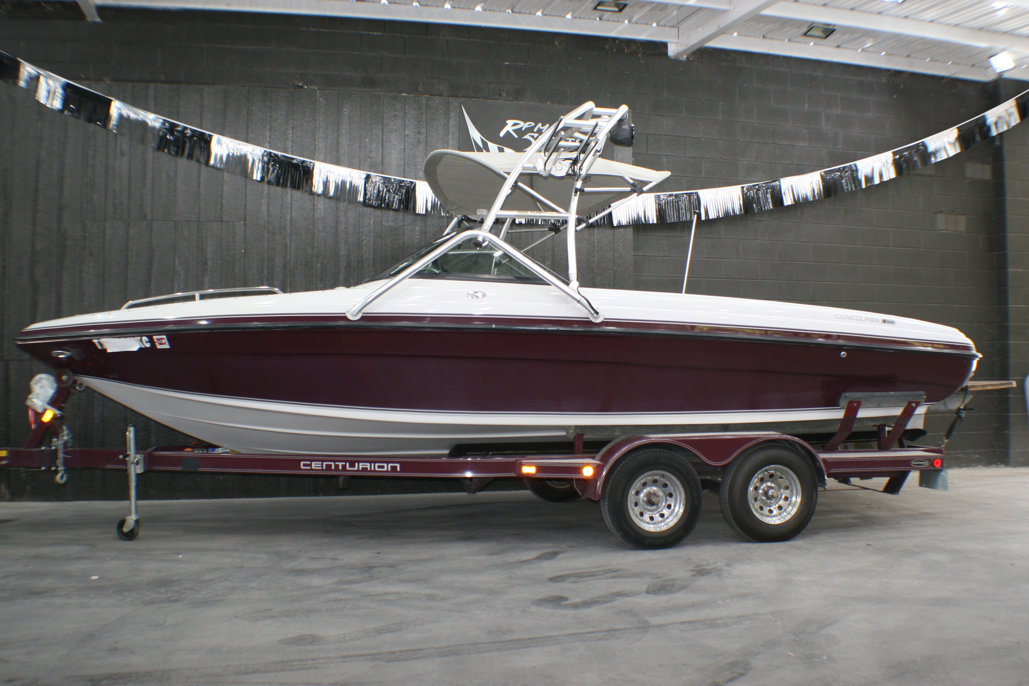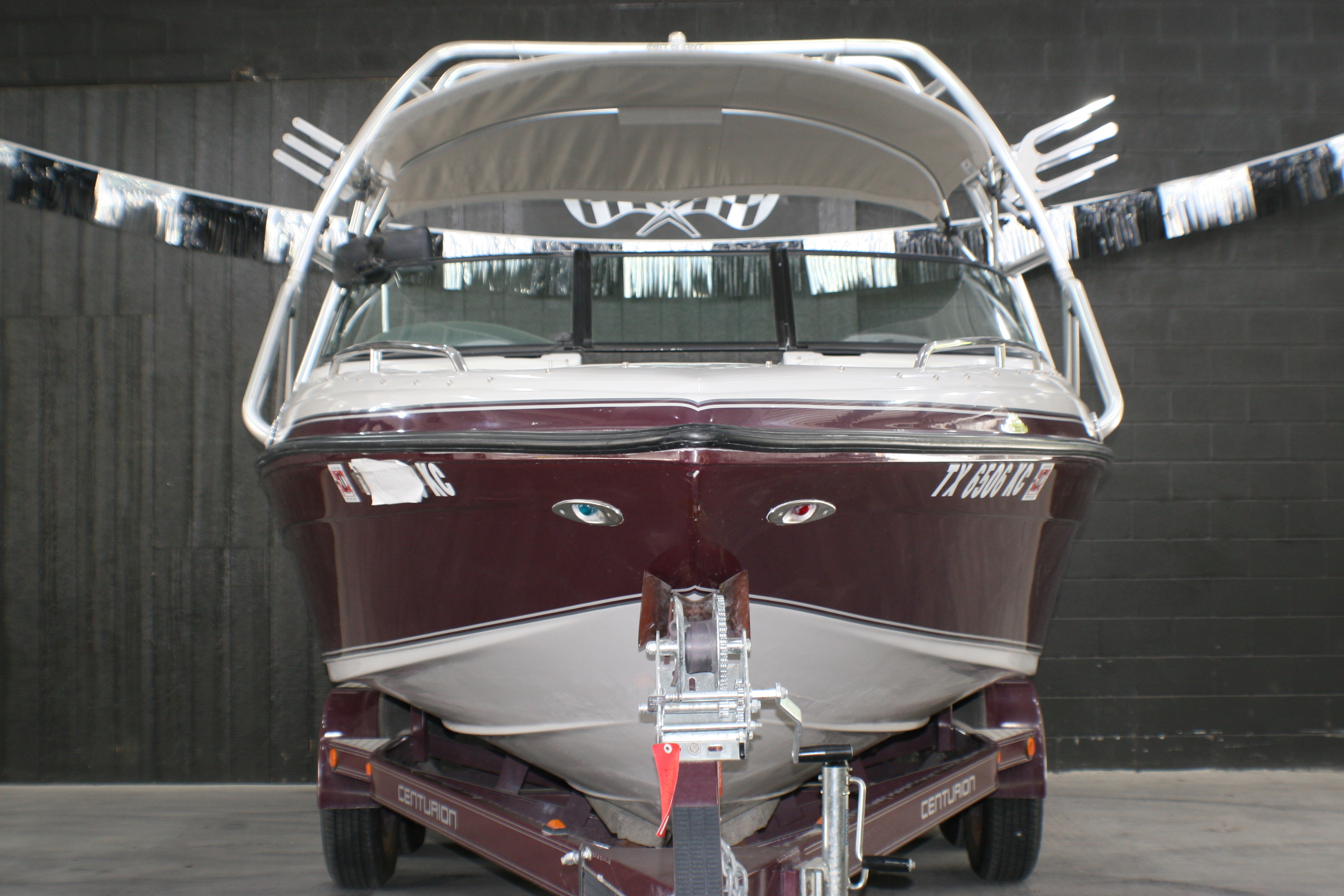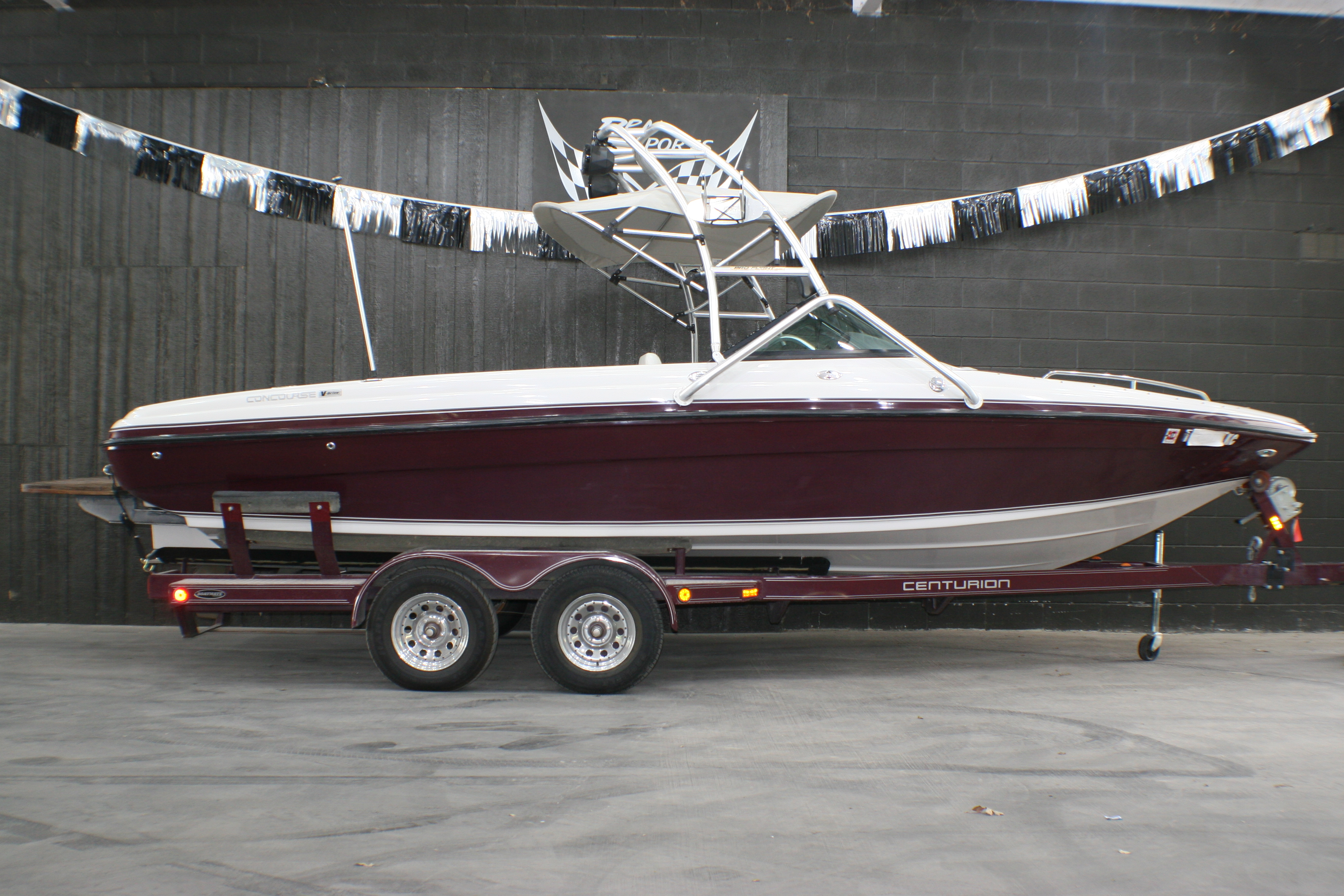I have to say Ski Centurion builds a darn good wakeboard/ski boat. Even though this 23’ Concourse is a 2003, it’s a fantastic looking, great running and in unbelievable condition. It’s fully decked out and powered by a 350 MAG MPI. There’s tons of torque to give a super solid pull, throws a great wake and is topped off with a killer tower, speakers and Bimini top.