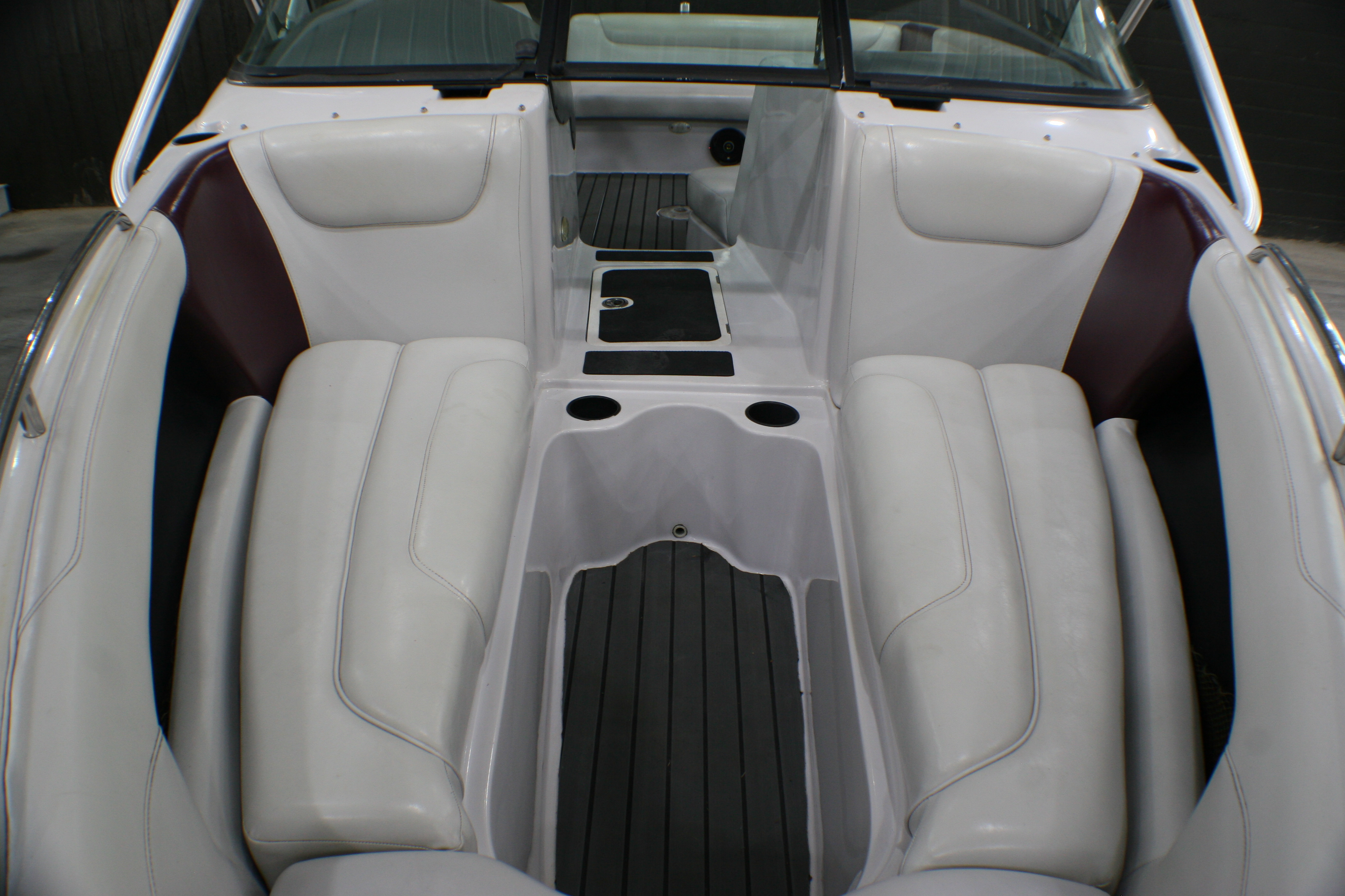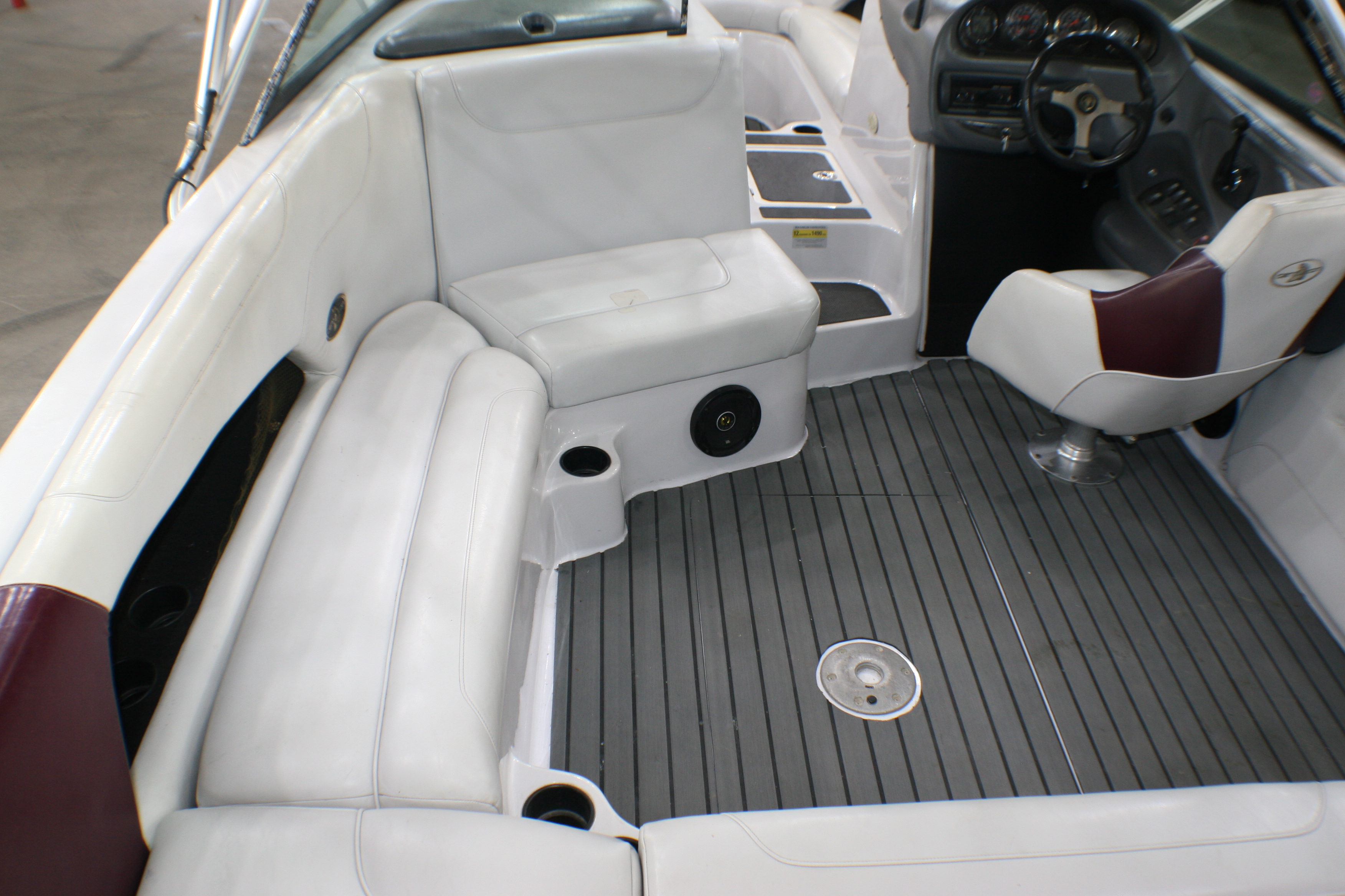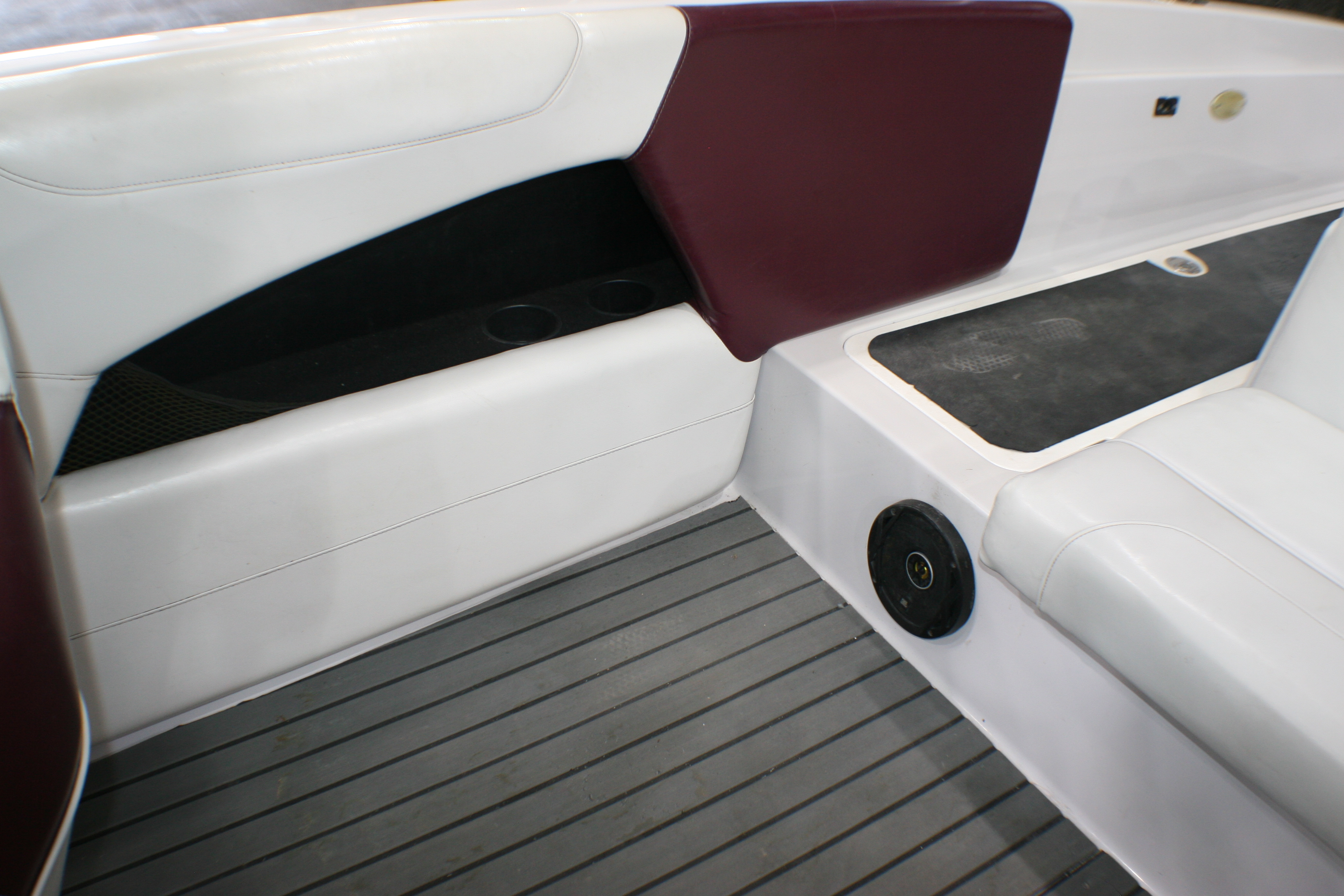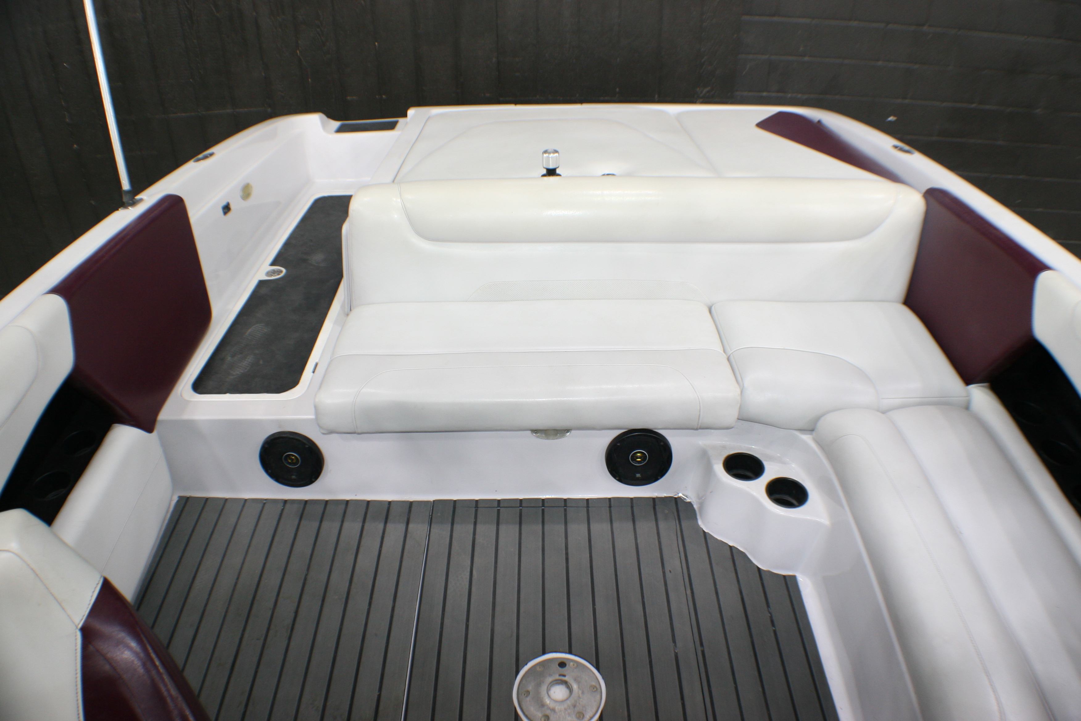 I have to say Ski Centurion builds a darn good wakeboard/ski boat. Even though this 23’ Concourse is a 2003, it’s a fantastic looking, great running and in unbelievable condition. It’s fully decked out and powered by a 350 MAG MPI. There’s tons of torque to give a super solid pull, throws a great wake and is topped off with a killer tower, speakers and Bimini top.