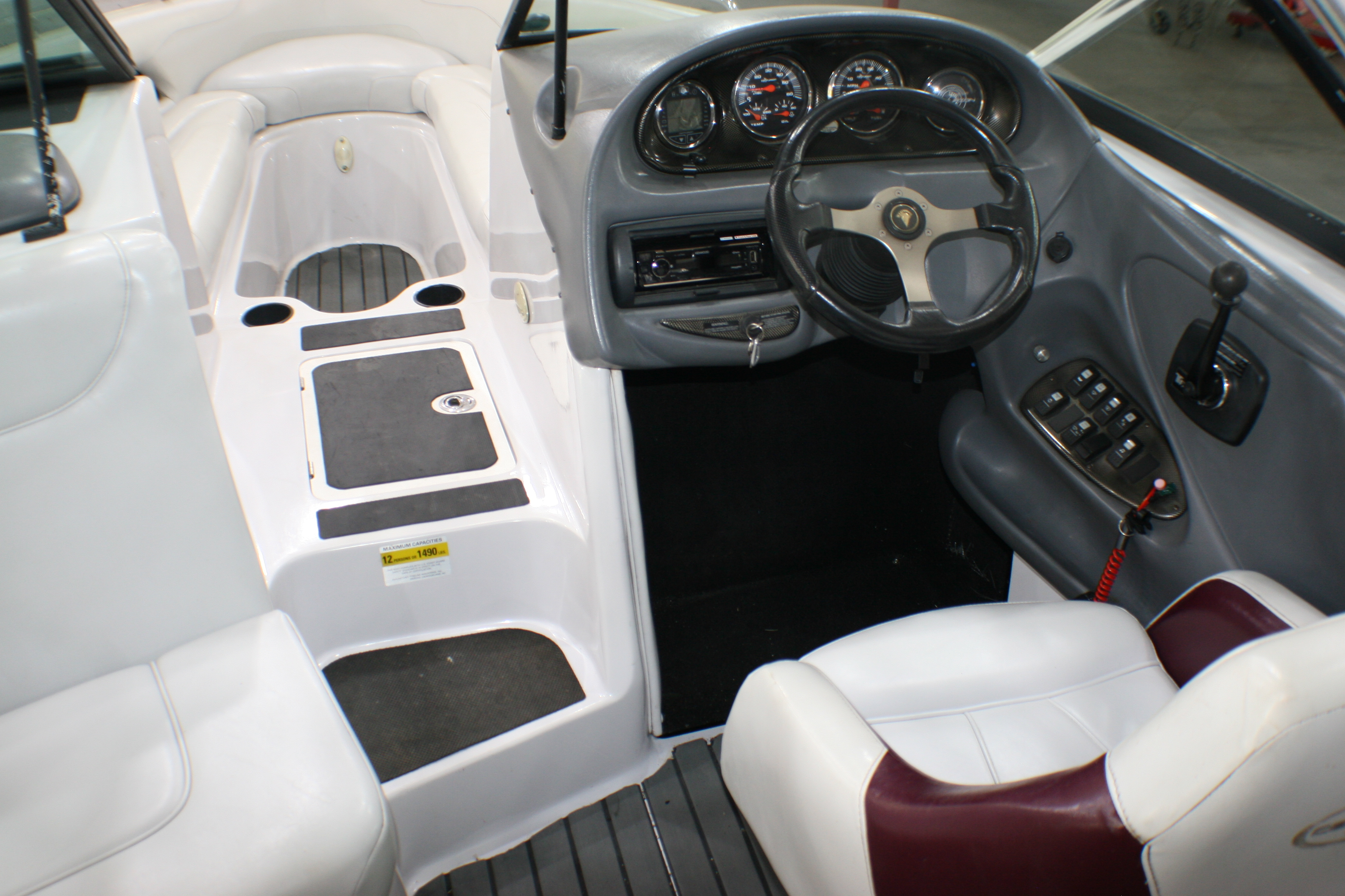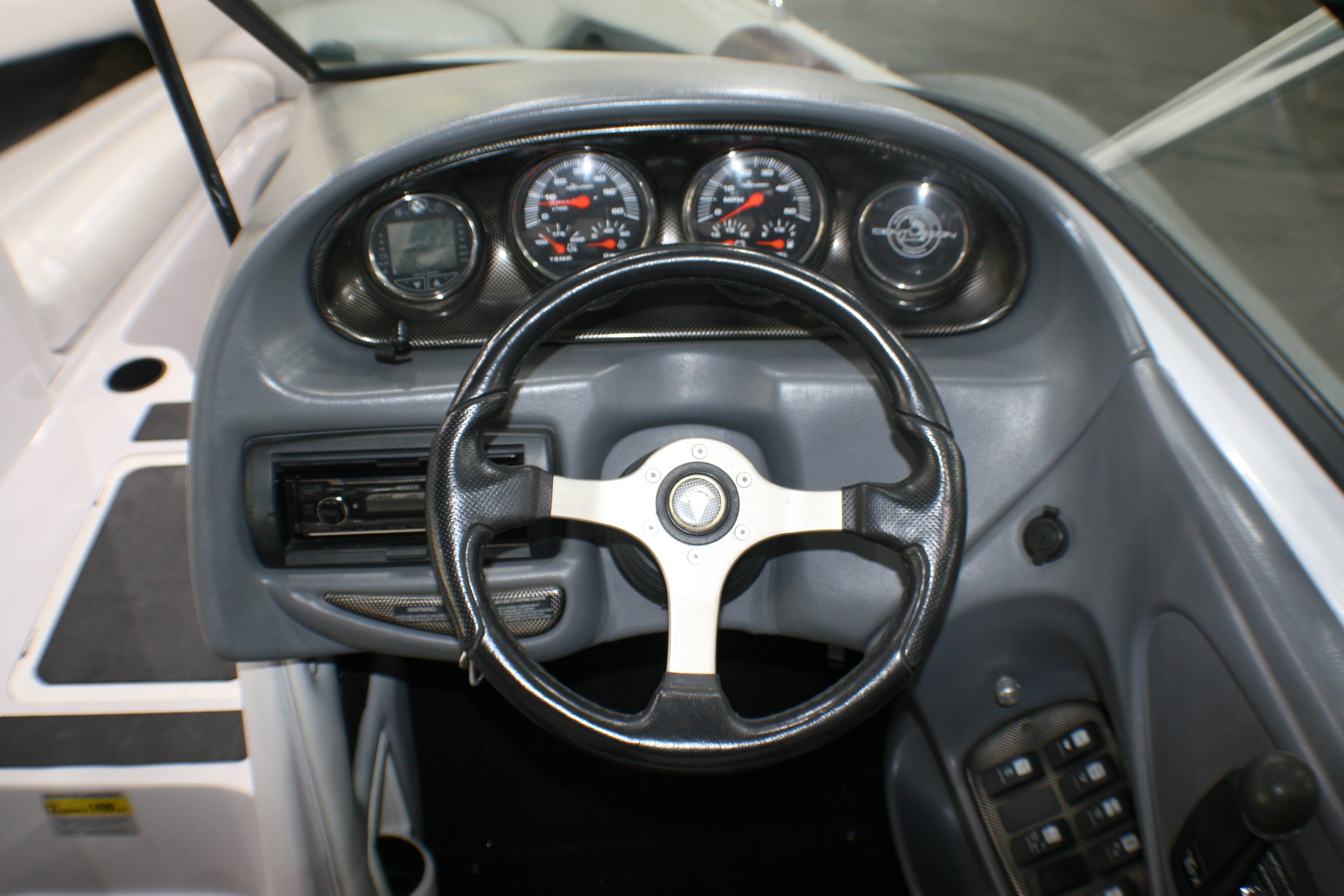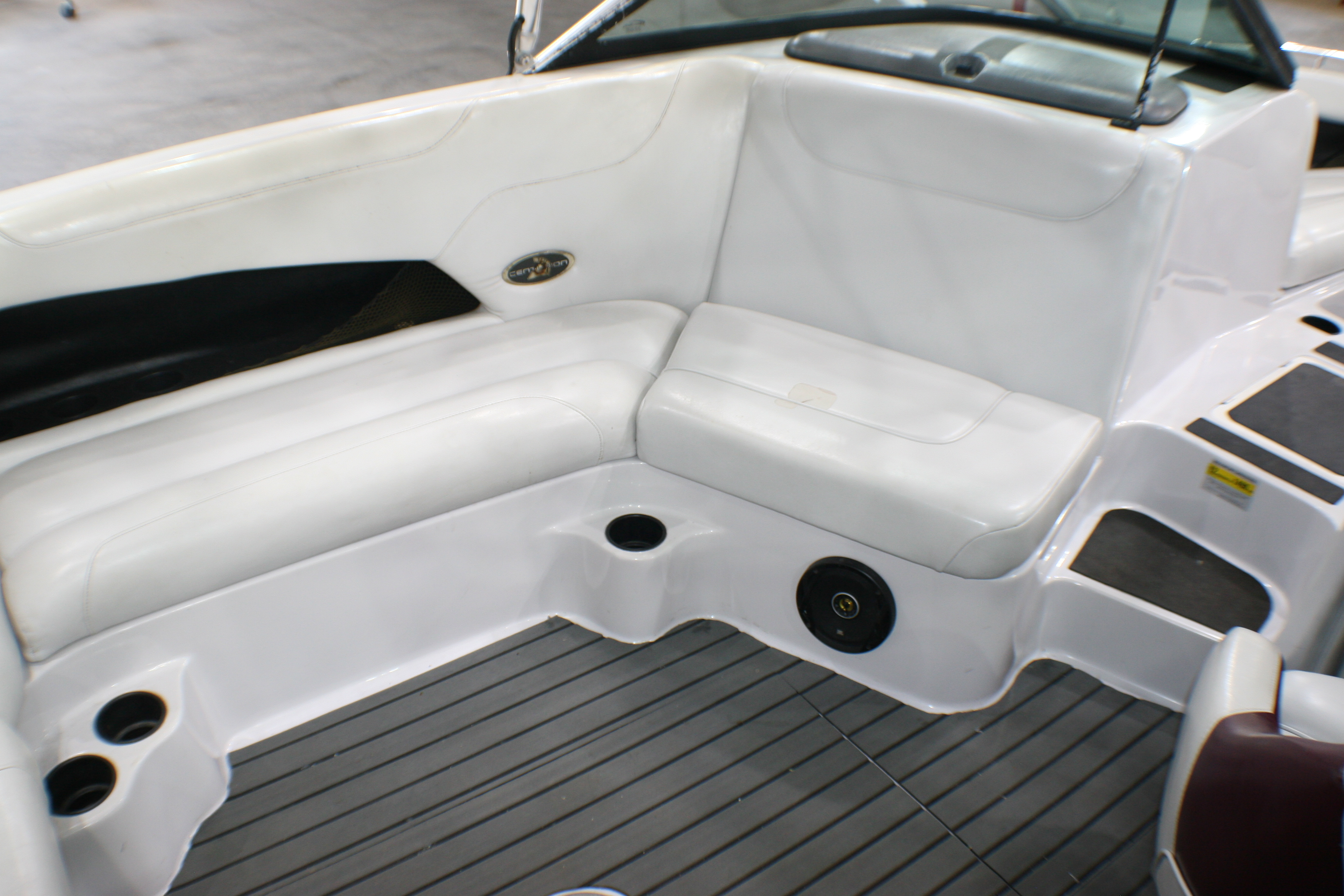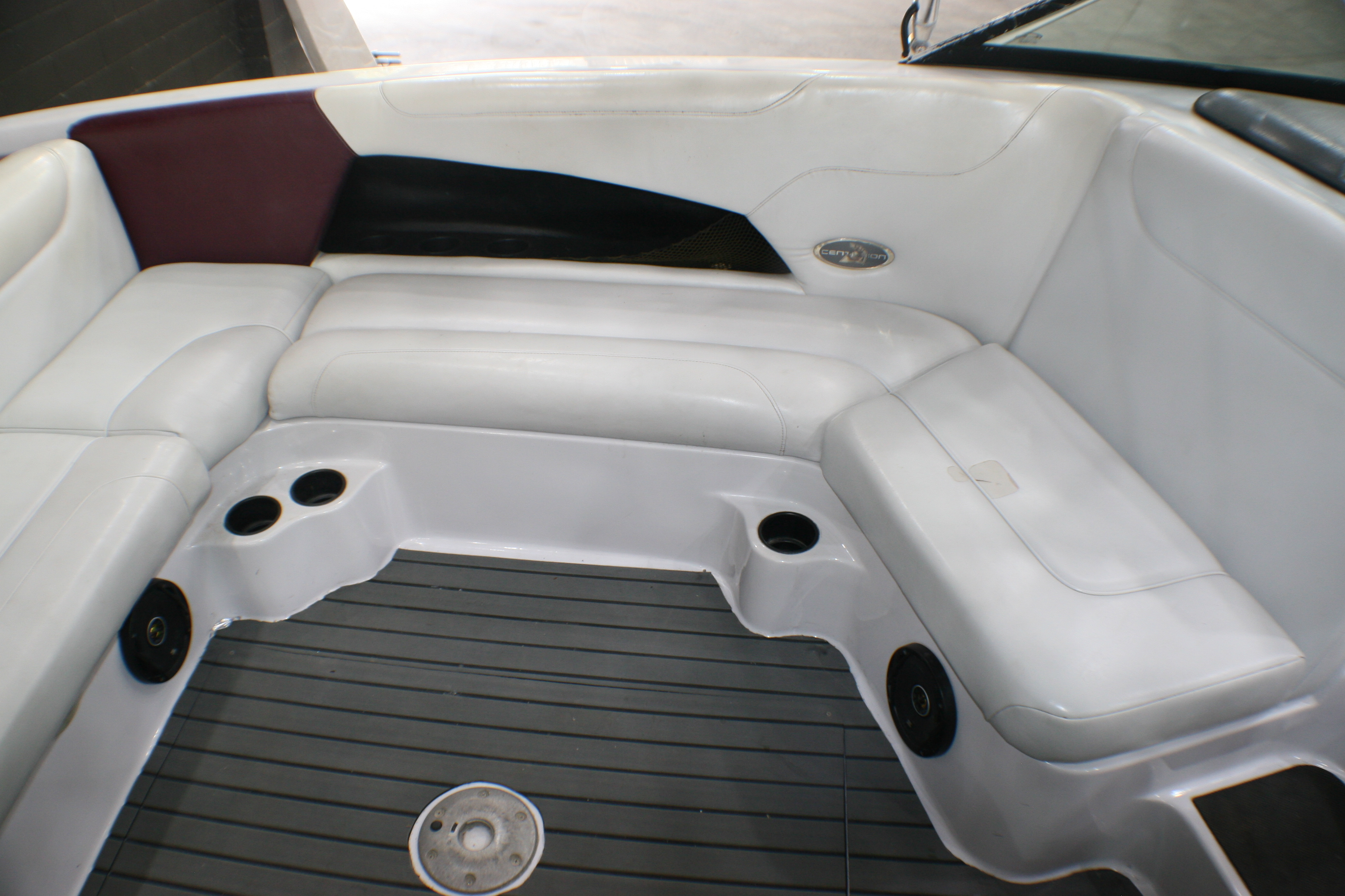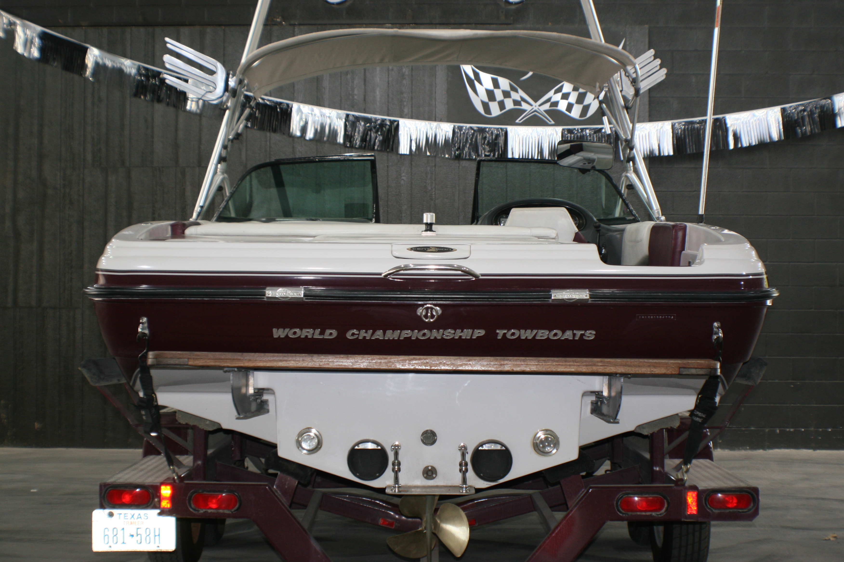 I have to say Ski Centurion builds a darn good wakeboard/ski boat. Even though this 23’ Concourse is a 2003, it’s a fantastic looking, great running and in unbelievable condition. It’s fully decked out and powered by a 350 MAG MPI. There’s tons of torque to give a super solid pull, throws a great wake and is topped off with a killer tower, speakers and Bimini top.