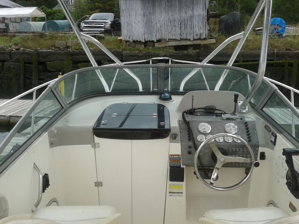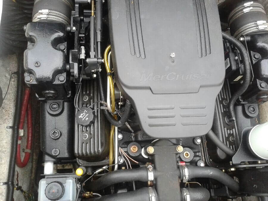 This boat is located in Weymouth, Massachusetts and is in decent condition. She is also equipped with a Mercruiser engine.