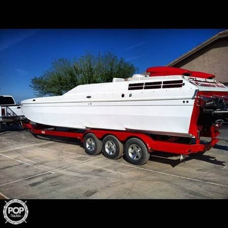This boat is located in Peoria, Arizona and is in great condition. She is also equipped with twin Custom engines.