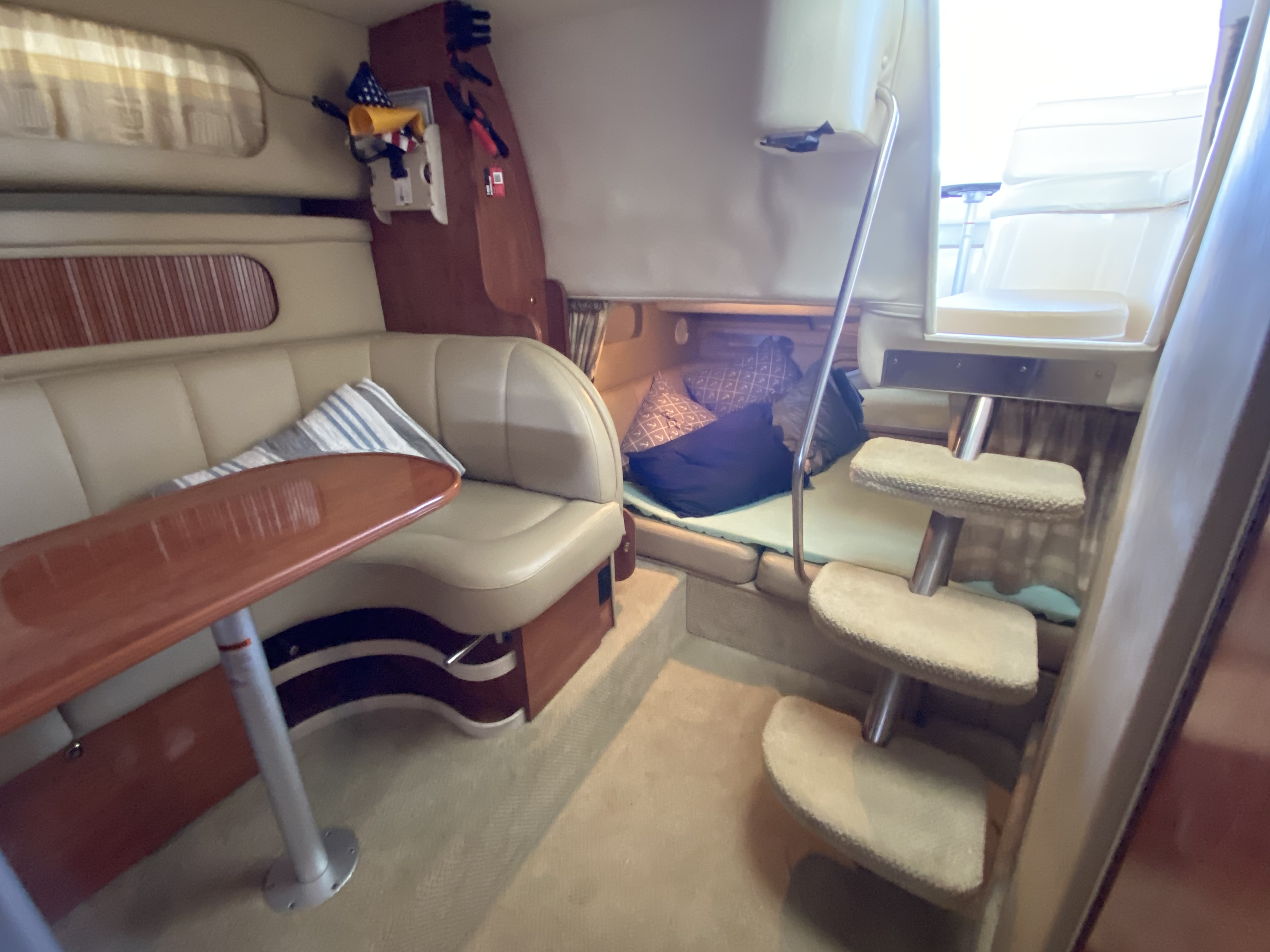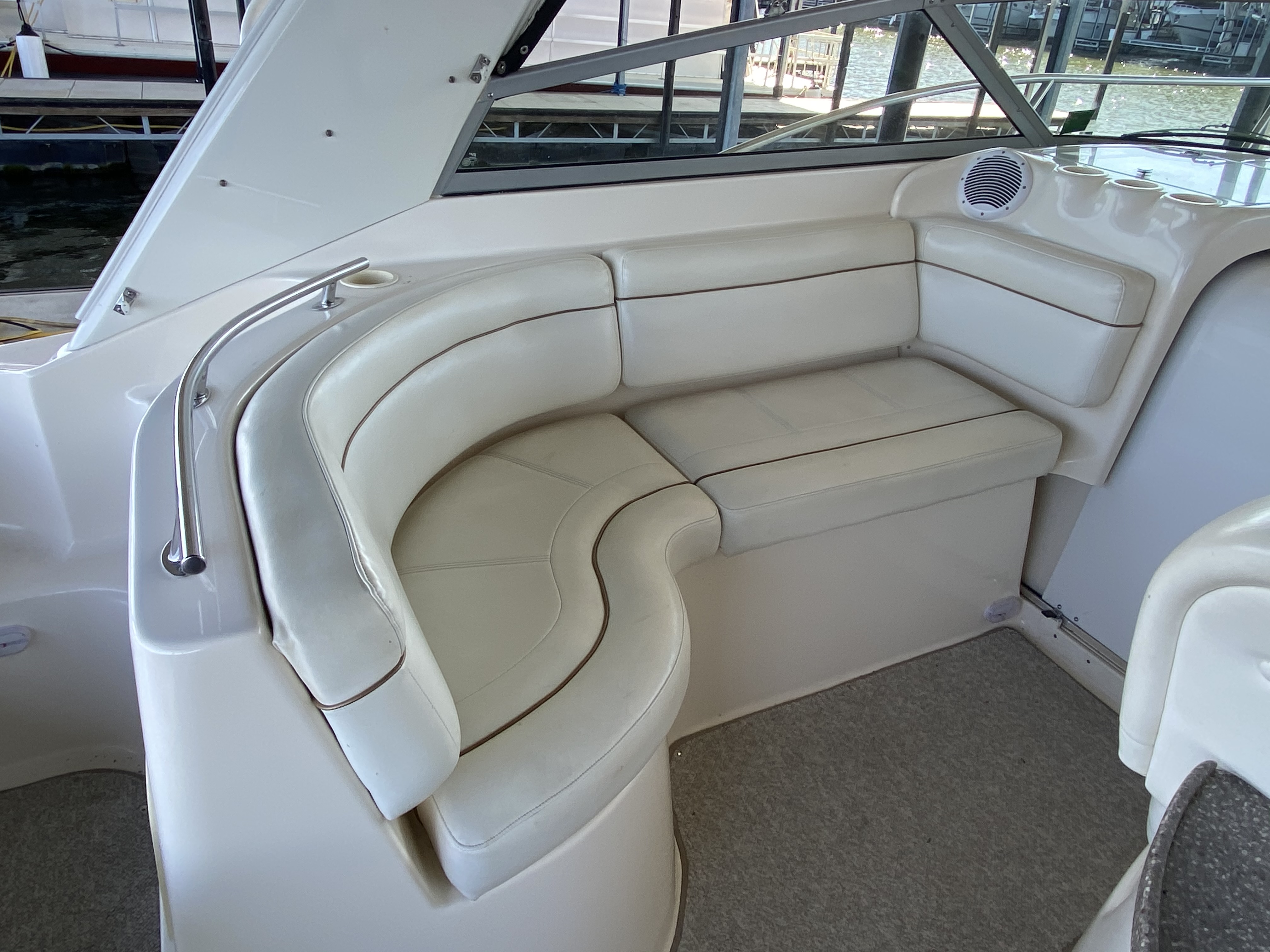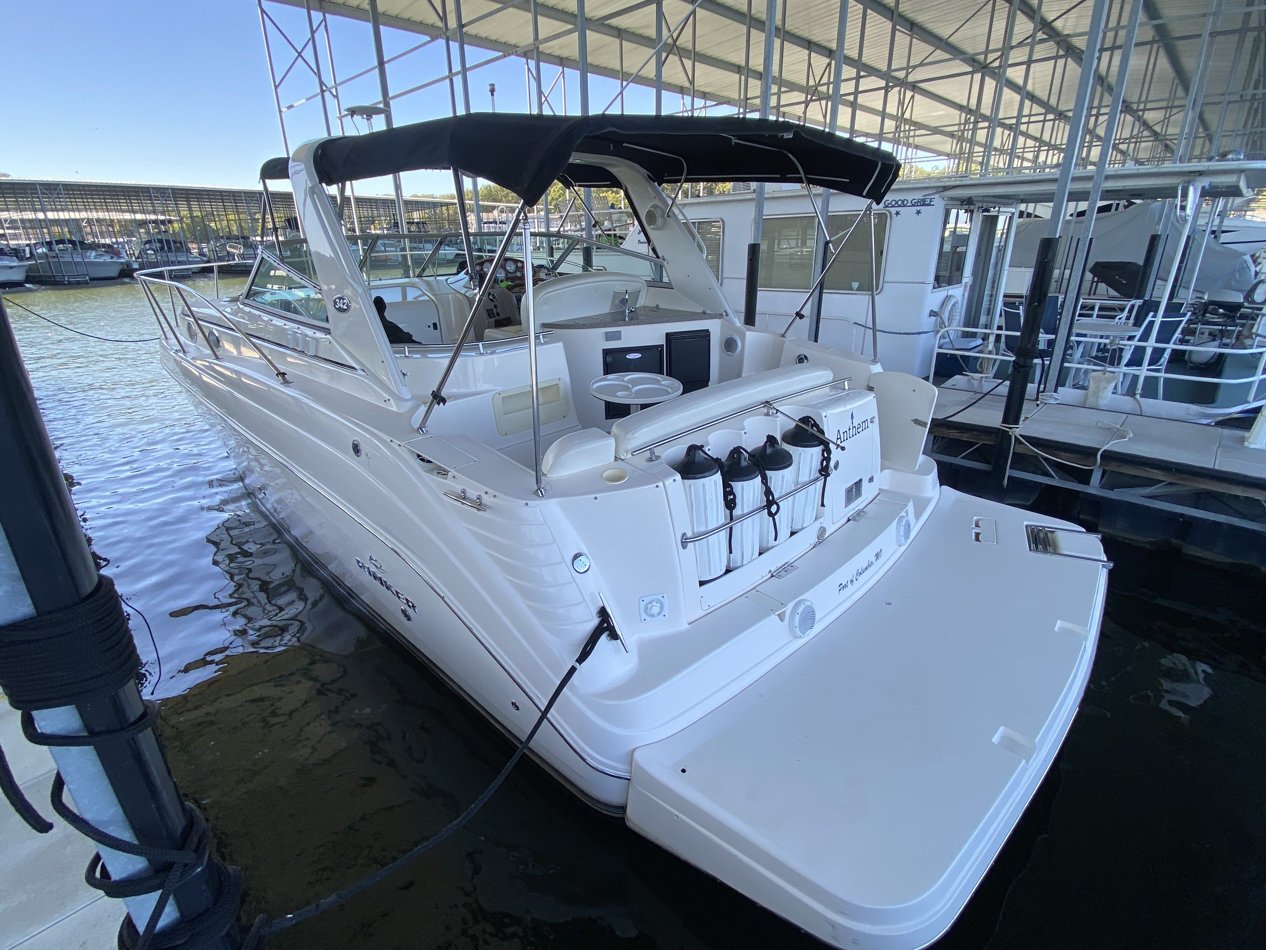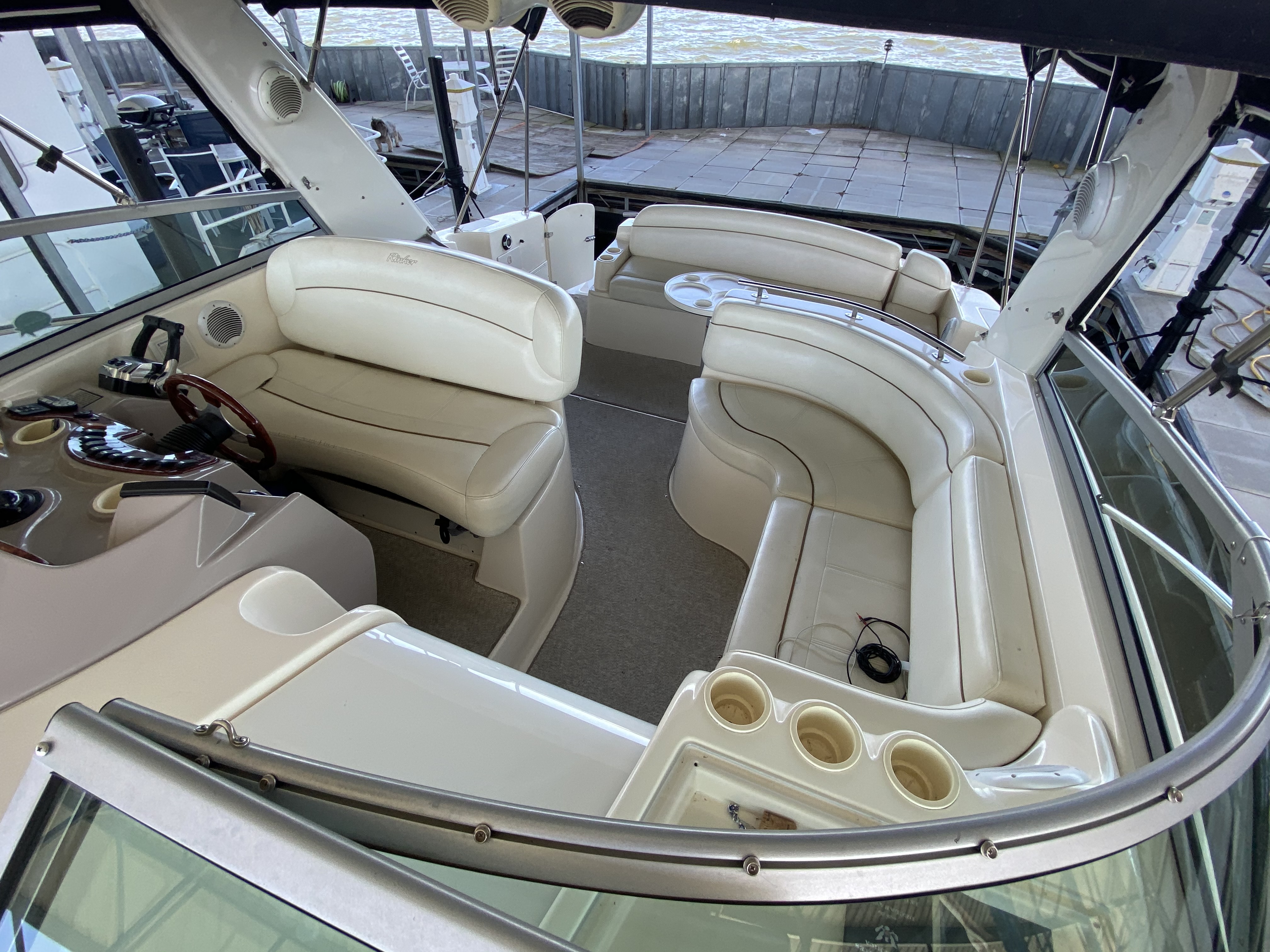 Deck/Hull: Anchor, Pulpit, Dock Power, Compass, Fenders with designated Storage, Spotlight, Windshield Wipers, Shore Water, Wet Bar w/ Sink, Icemaker, and Blender, Sunpad, Swim Platform, Transom Shower w/Hot & Cold Water, Arch