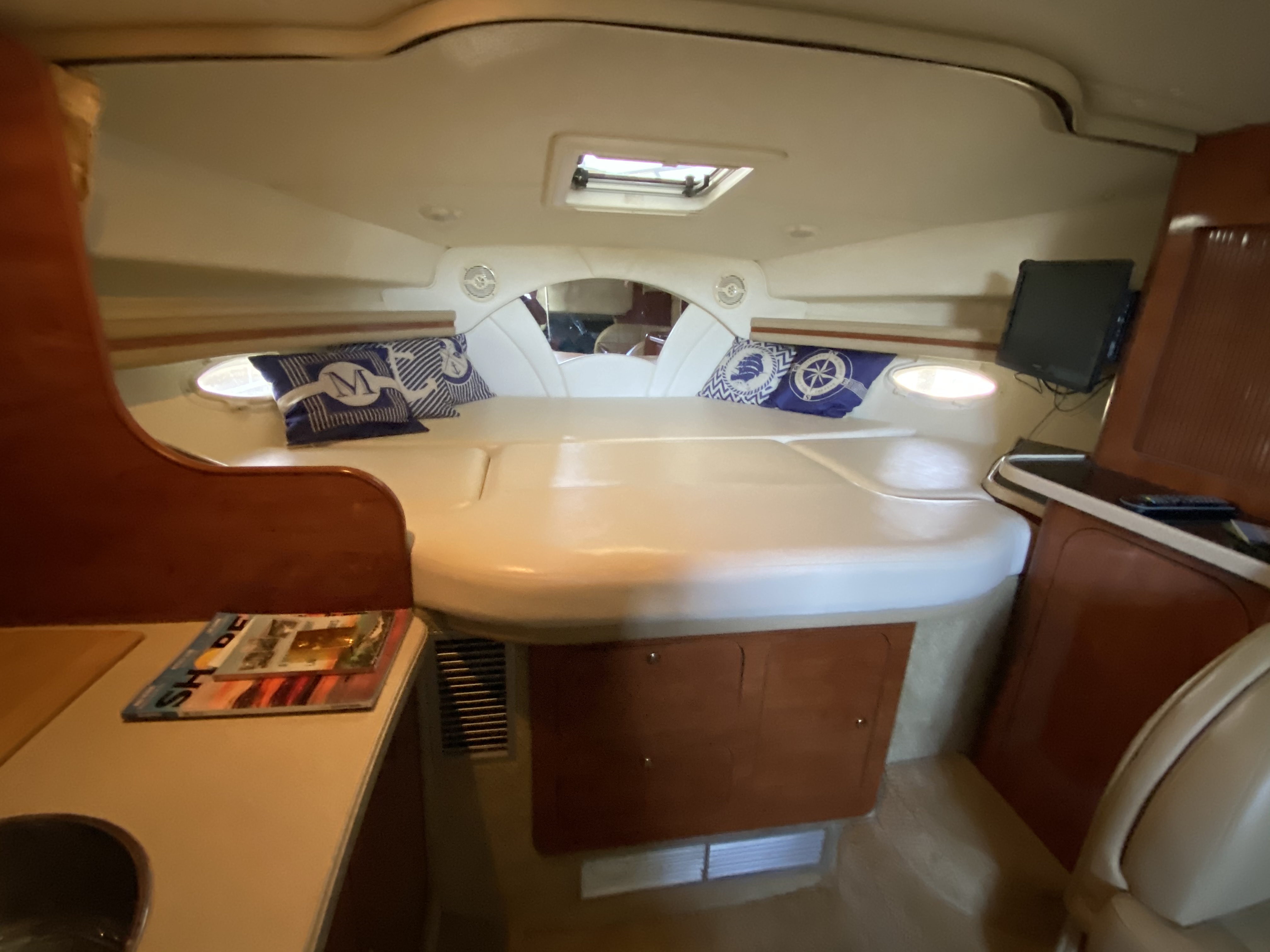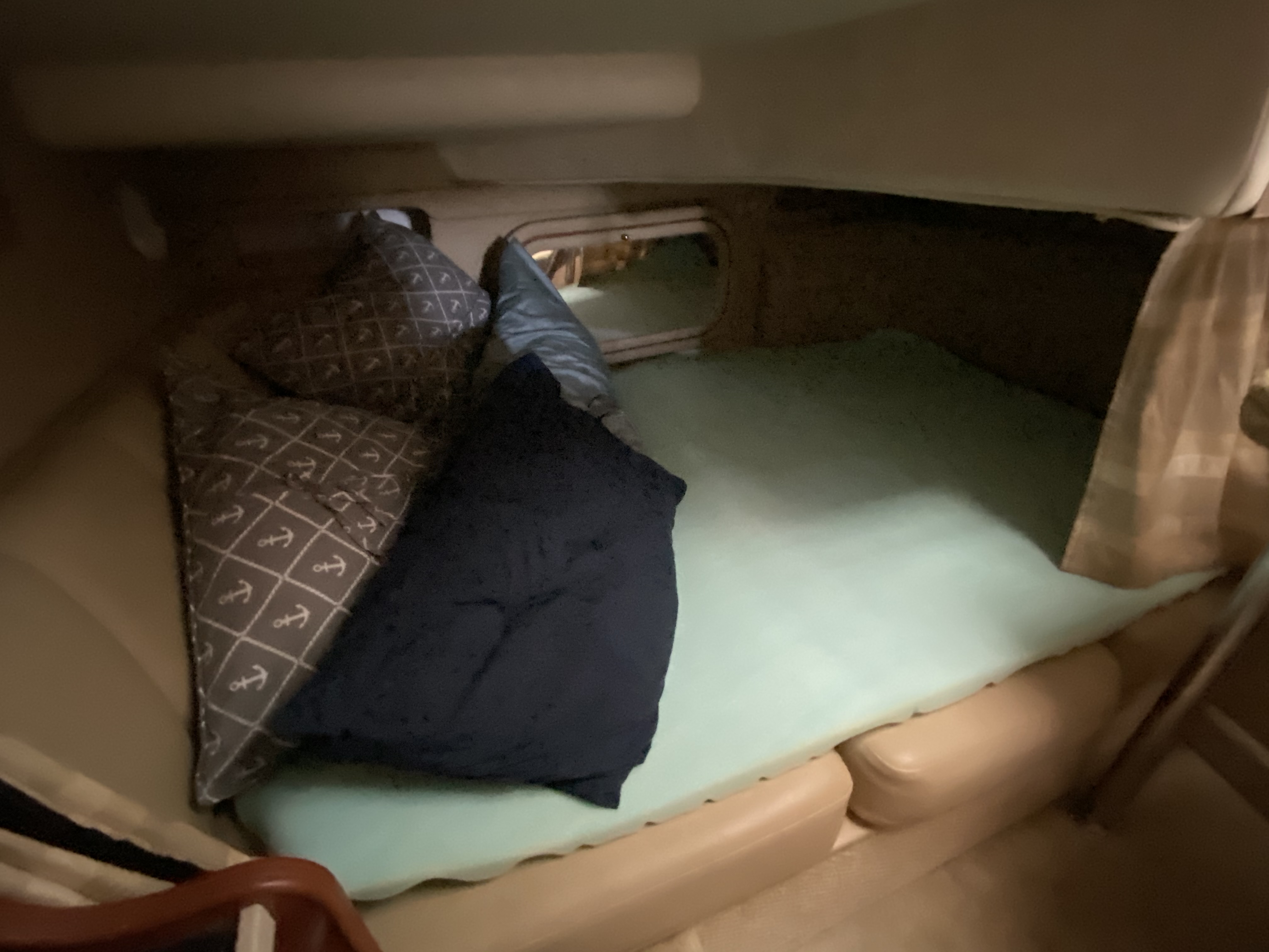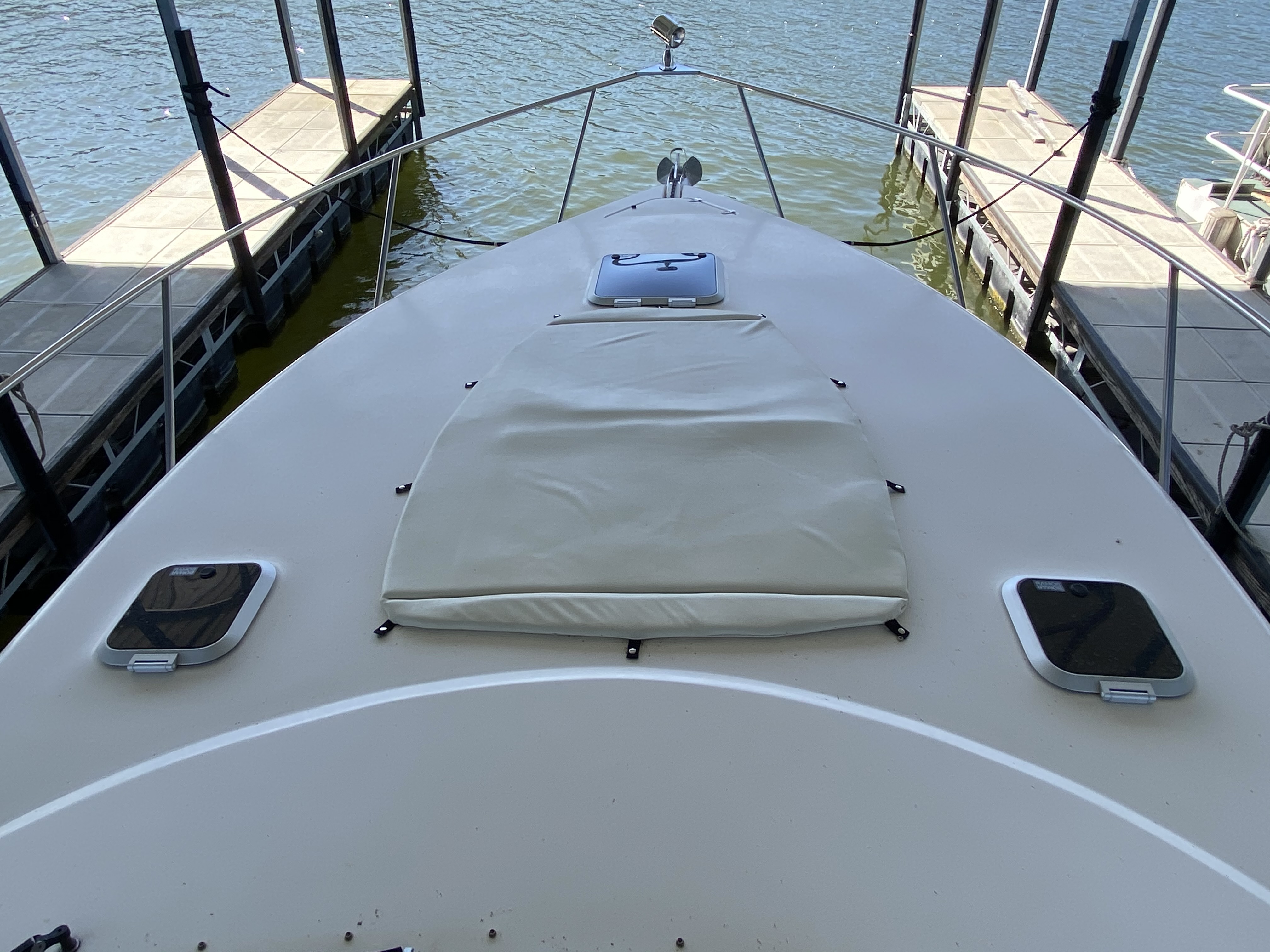 Accommodations: Master Queen Bed, Mid Cabin Queen Bed, Electric Heads, 45 Gallon Holding Tank/Cap, Separate Shower, 51 Gallon Fresh Water, Salon, Flatscreen TV with built-in DVD player, Sony AM/FM/6 Disc CD Changer, USB adapter, Speaker Pod on Arch, Subwoofer, and Transom Speakers.