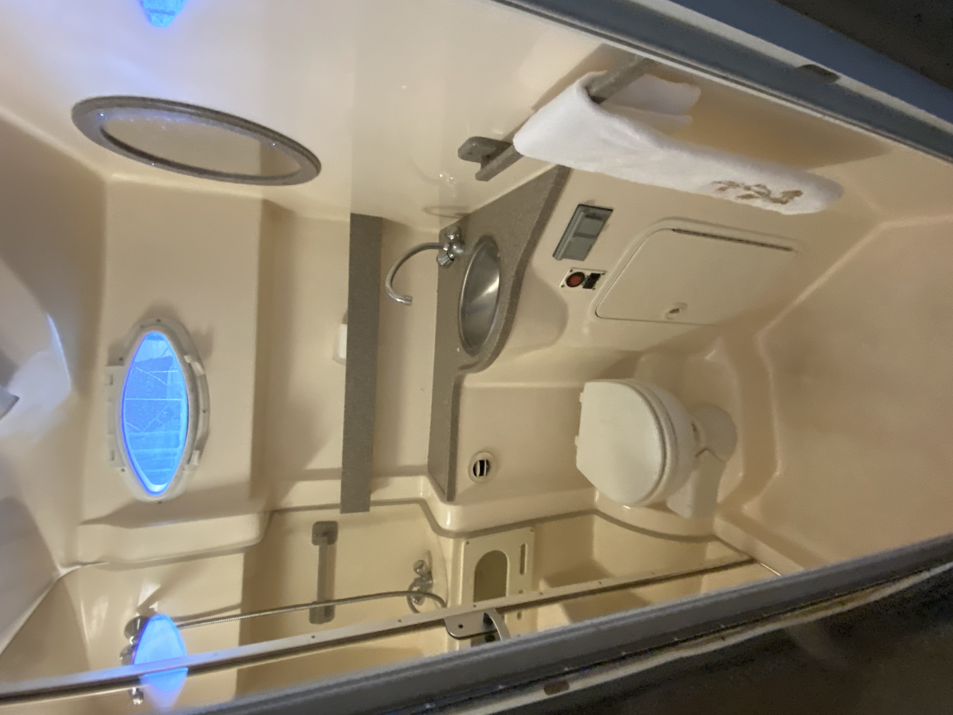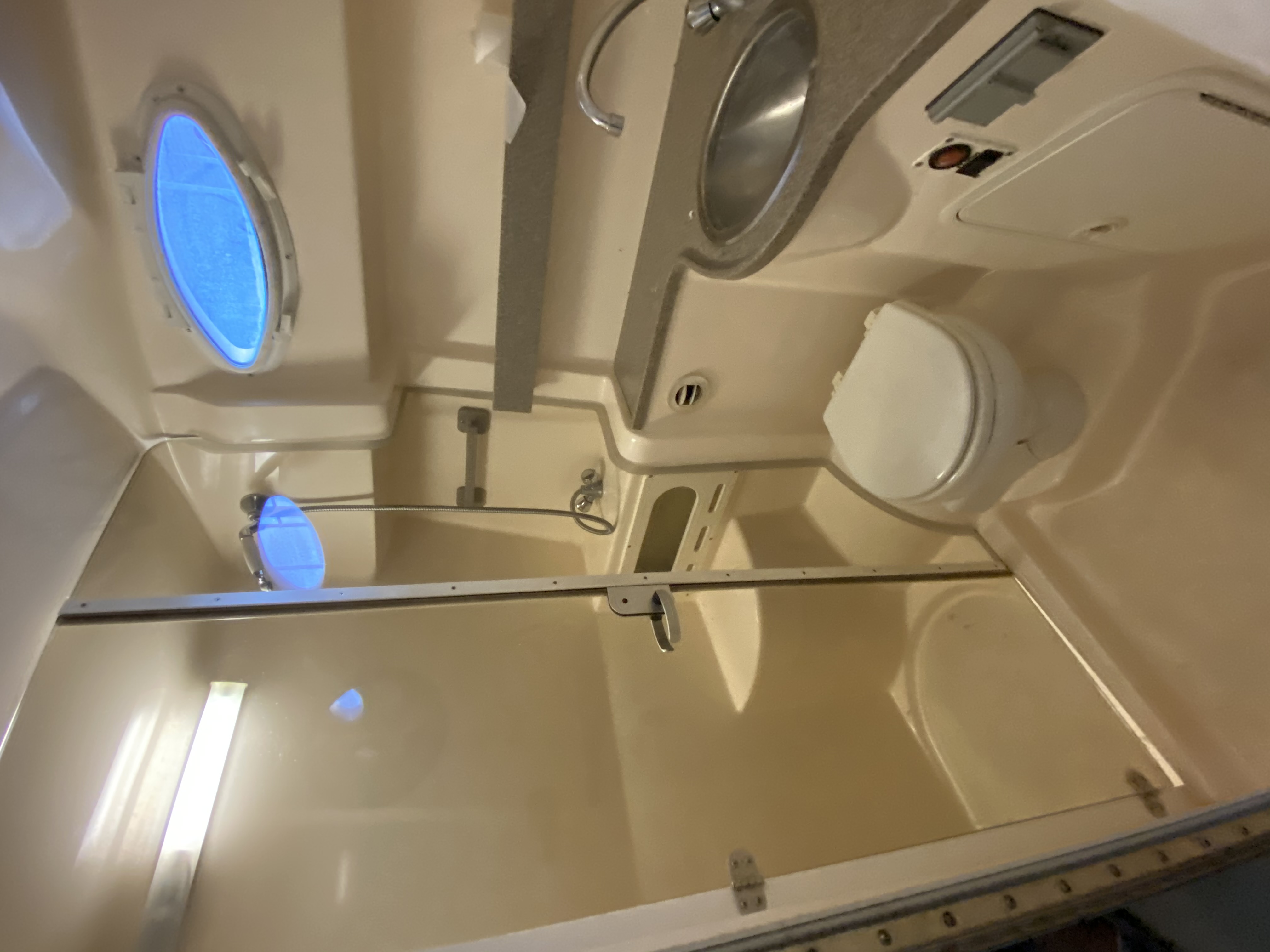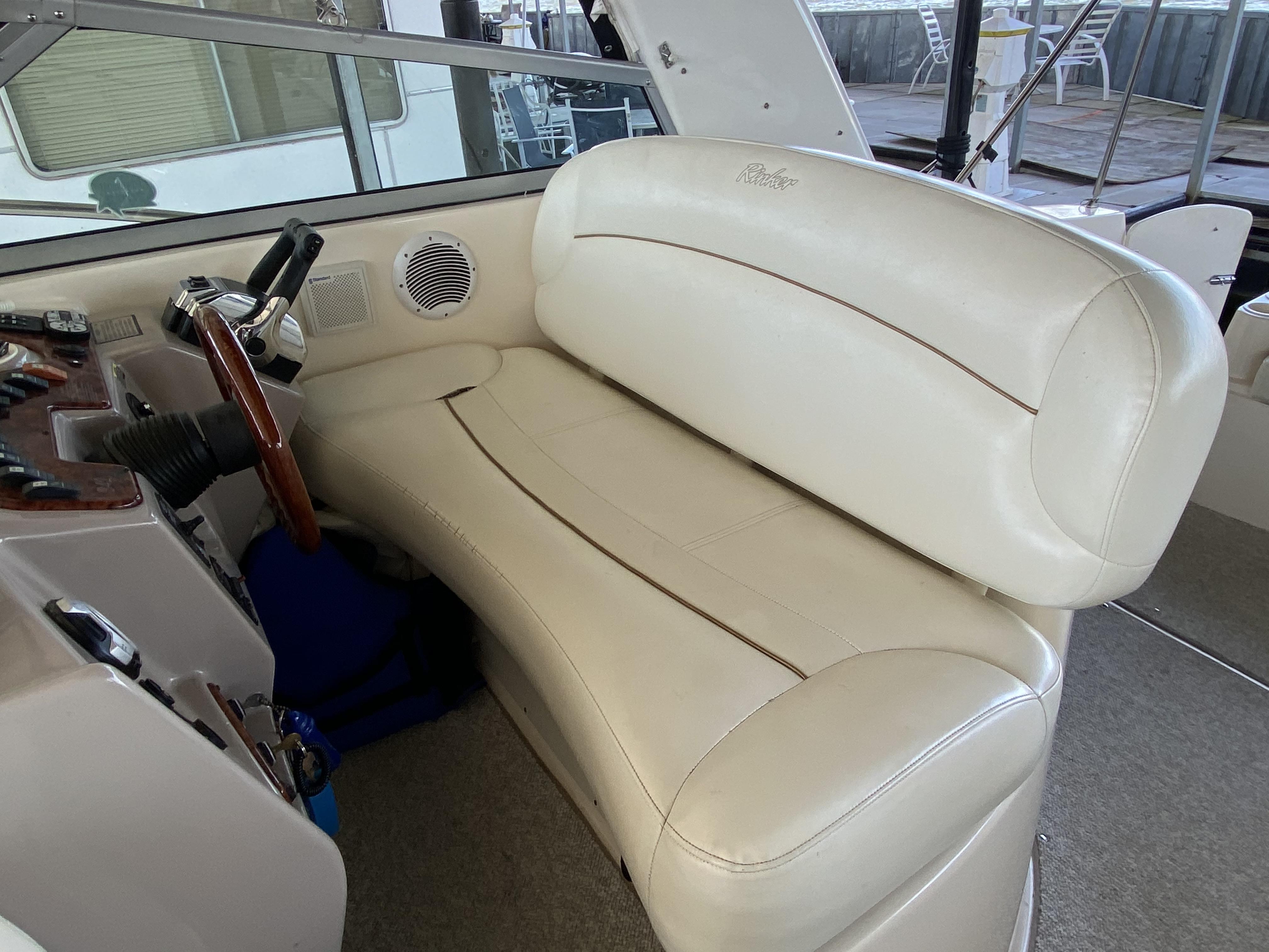 Accommodations: Master Queen Bed, Mid Cabin Queen Bed, Electric Heads, 45 Gallon Holding Tank/Cap, Separate Shower, 51 Gallon Fresh Water, Salon, Flatscreen TV with built-in DVD player, Sony AM/FM/6 Disc CD Changer, USB adapter, Speaker Pod on Arch, Subwoofer, and Transom Speakers.