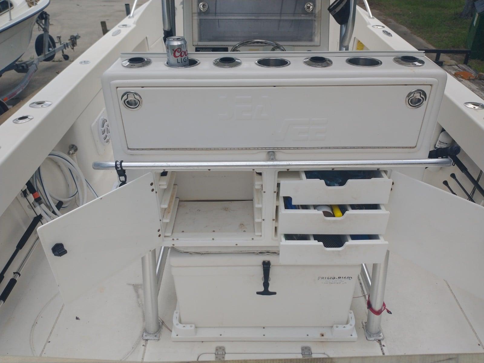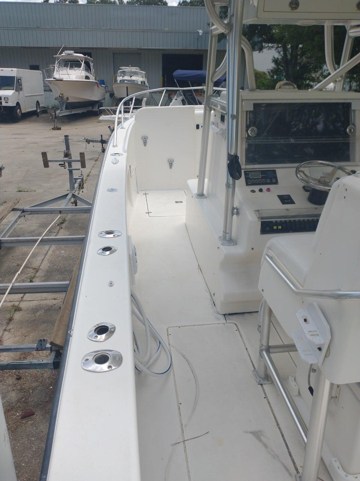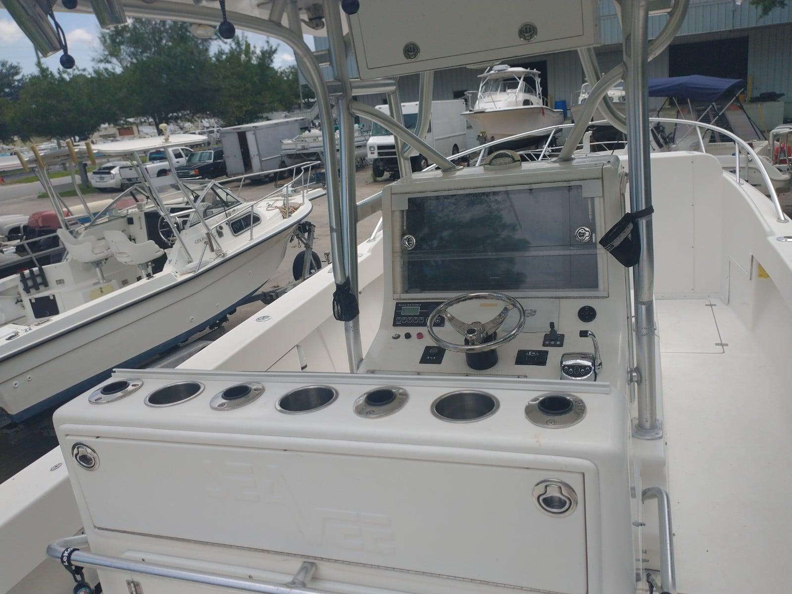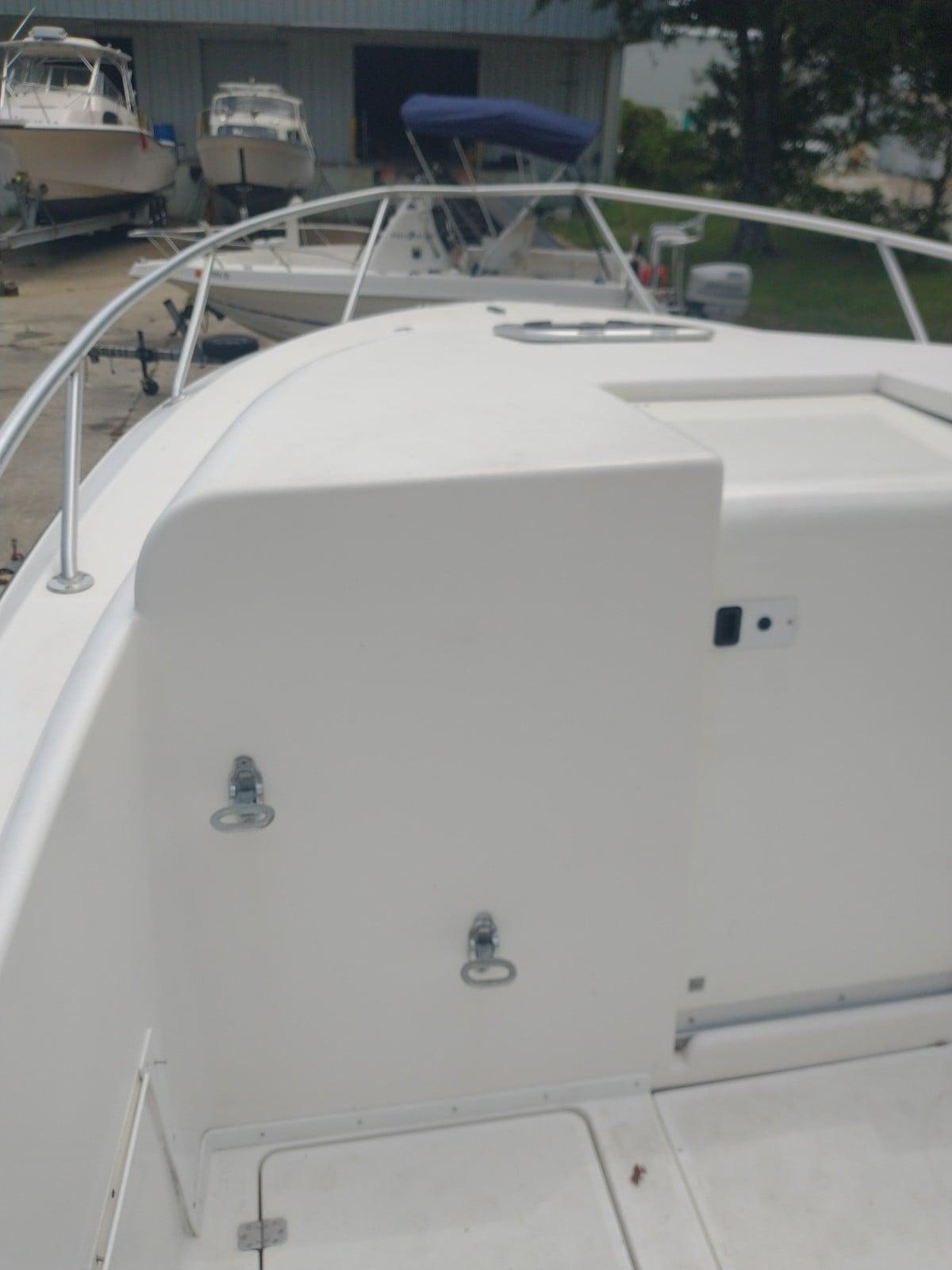 2004 hull, repowered with Cummins QSC 8.3 turbo diesel in 2012. Very seaworthy boat with tons of upgrades including a new 24-inch Garmin 8624 and a Fantom Radar Dome. The diesel engine is perfectly tuned to raise fish and it is super-efficient. In optimal conditions, it gets nearly 2 miles per gallon. With a forward cabin, you have plenty of storage but still have 360-degee fishing.