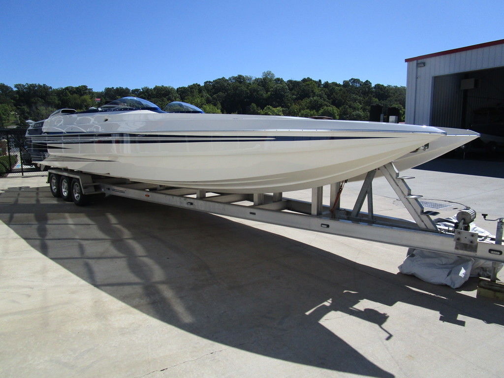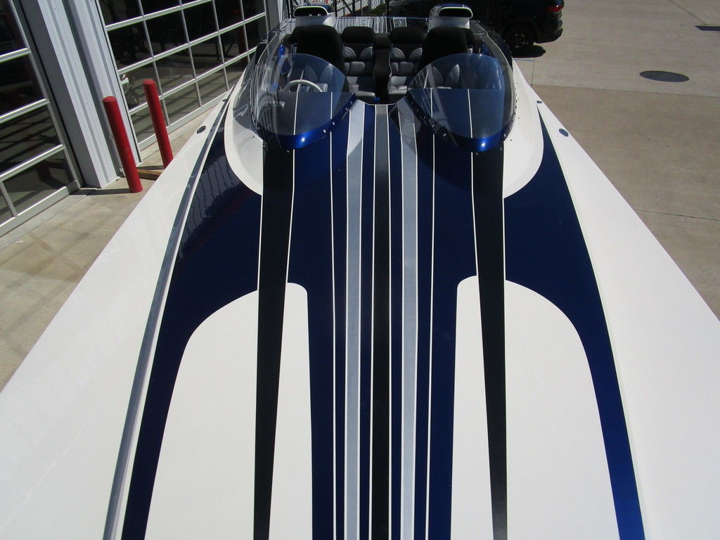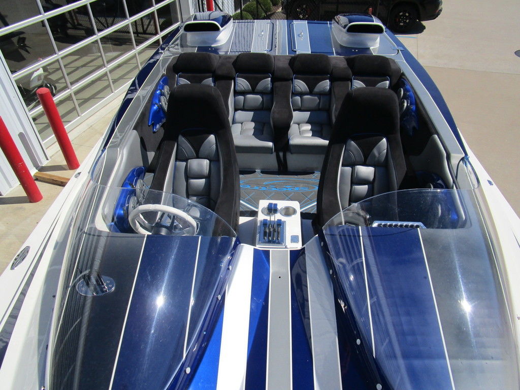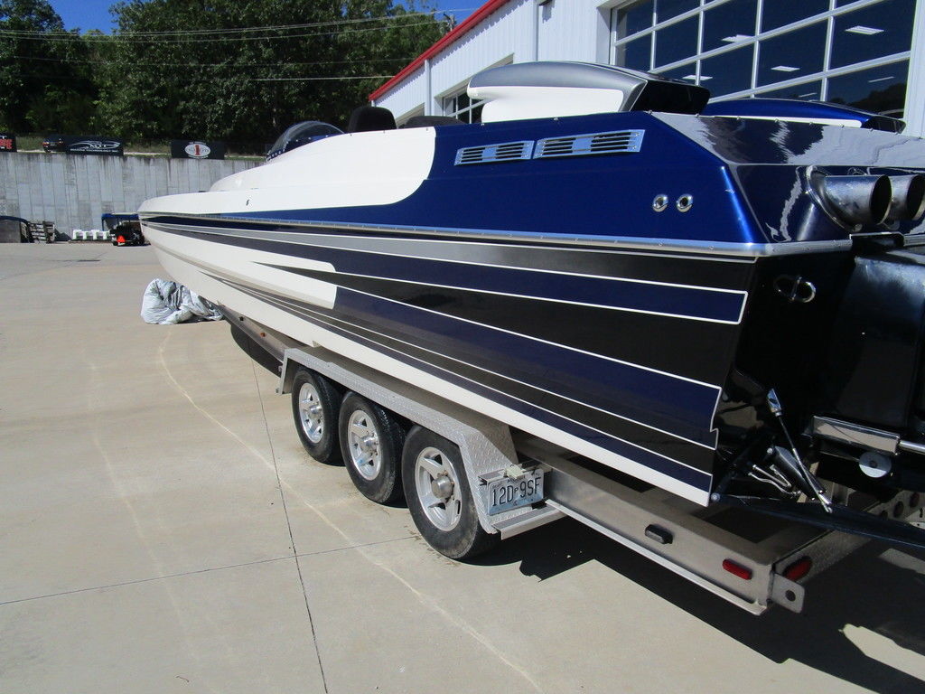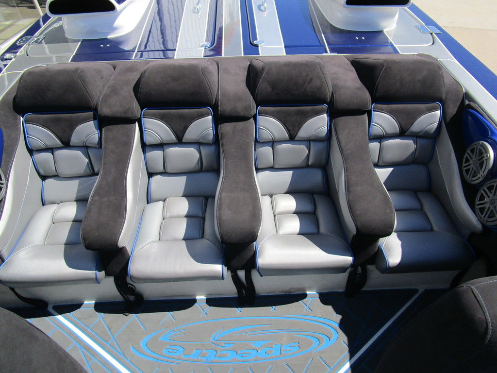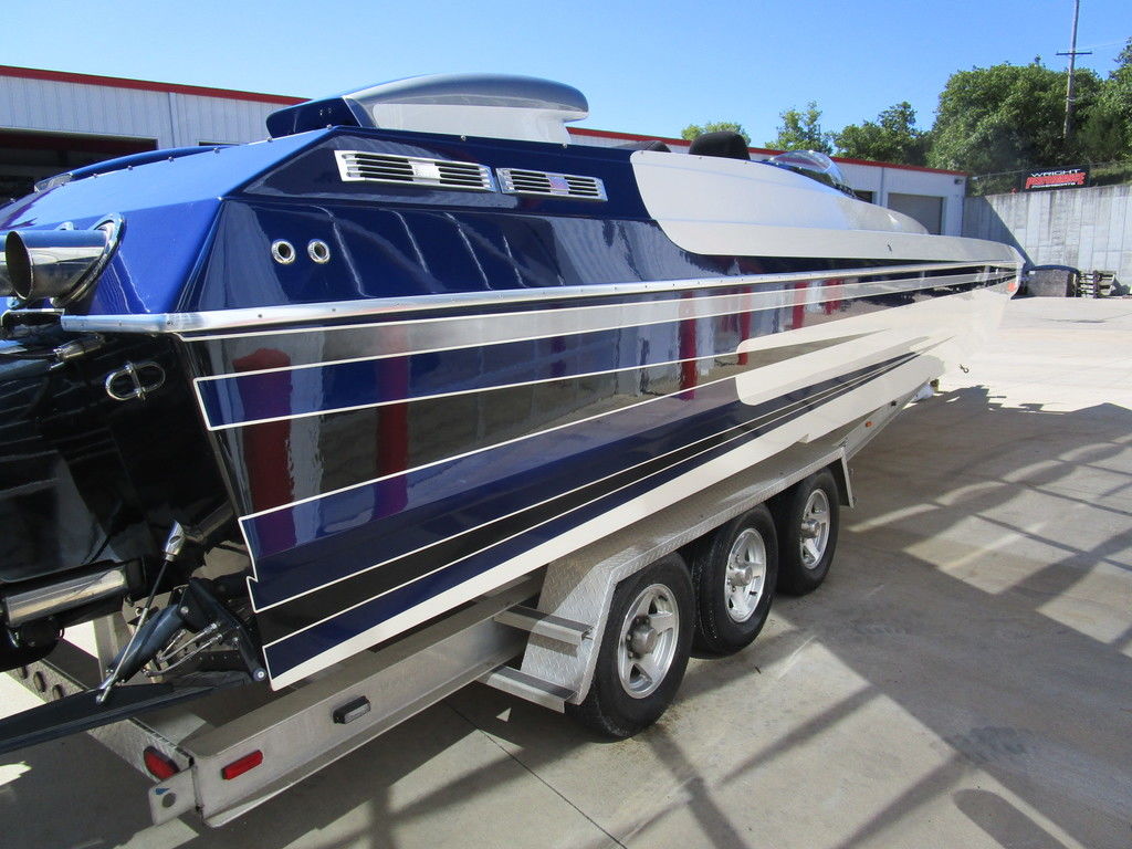 2004 Spectre 36 Poker Run powered by twin Young Performance 1200EFI with 5 hours since refresh, SSM#6 drives, Mercury CNC 5 blade props, tunnel tab, trim tabs, Pro Comp gauges, Standard Horizon CPN700i GPS chartplotter, two person intercom system with headsets, upgraded stereo, carbon fiber dash panels, all new paint, interior, sea deck flooring, stereo in 2018, boat completely re-rigged by HP Mafia in 2019. Aluminum triple axle trailer included.