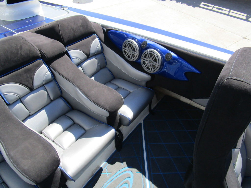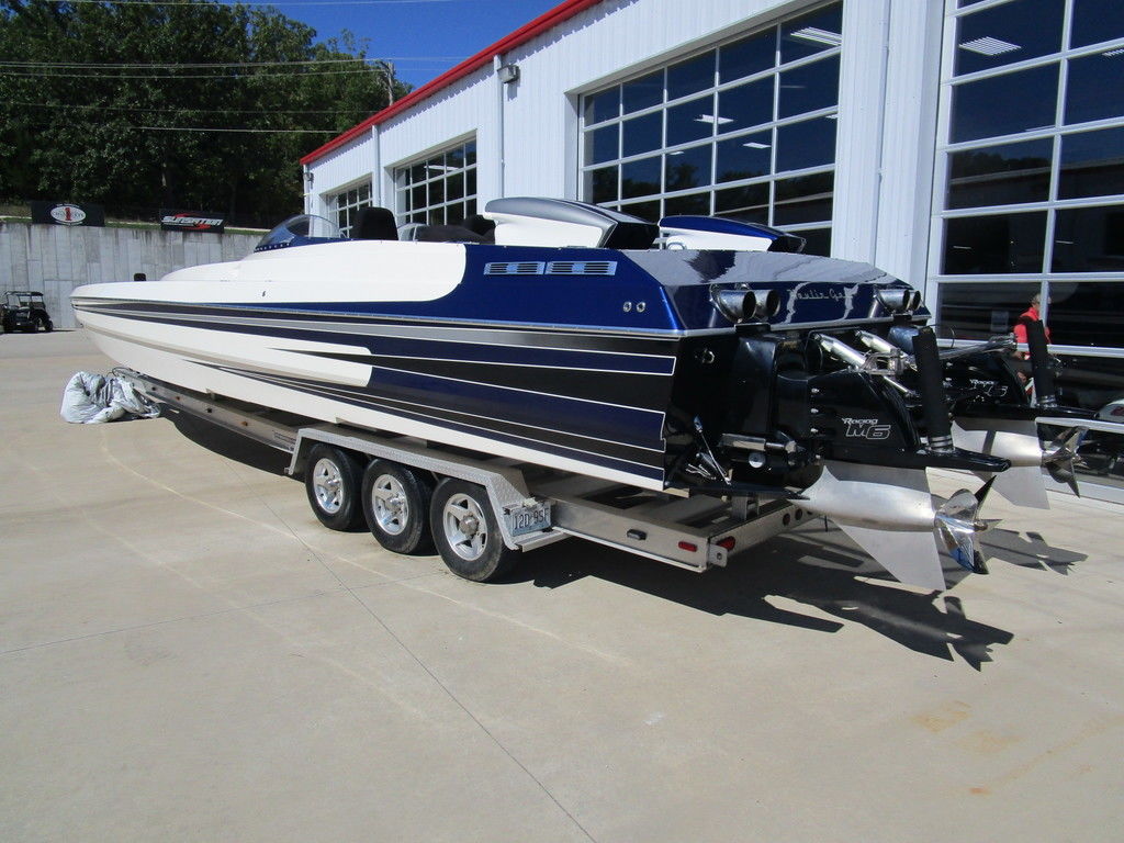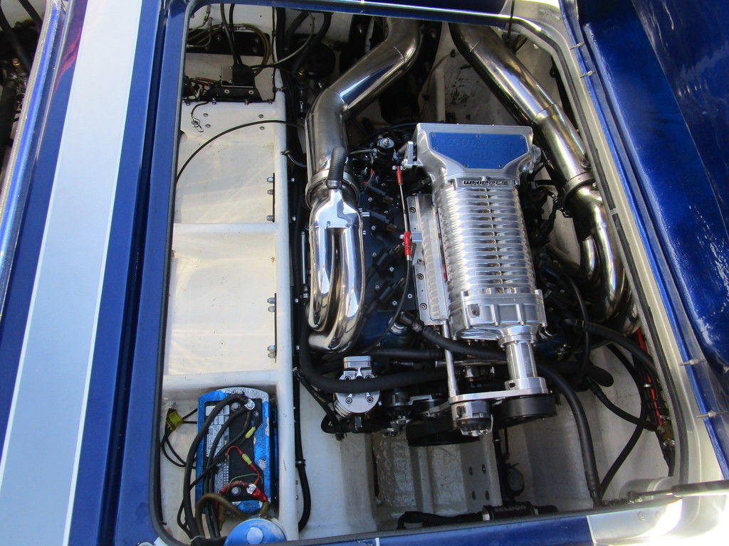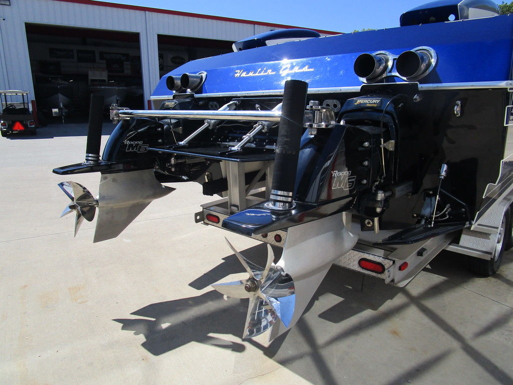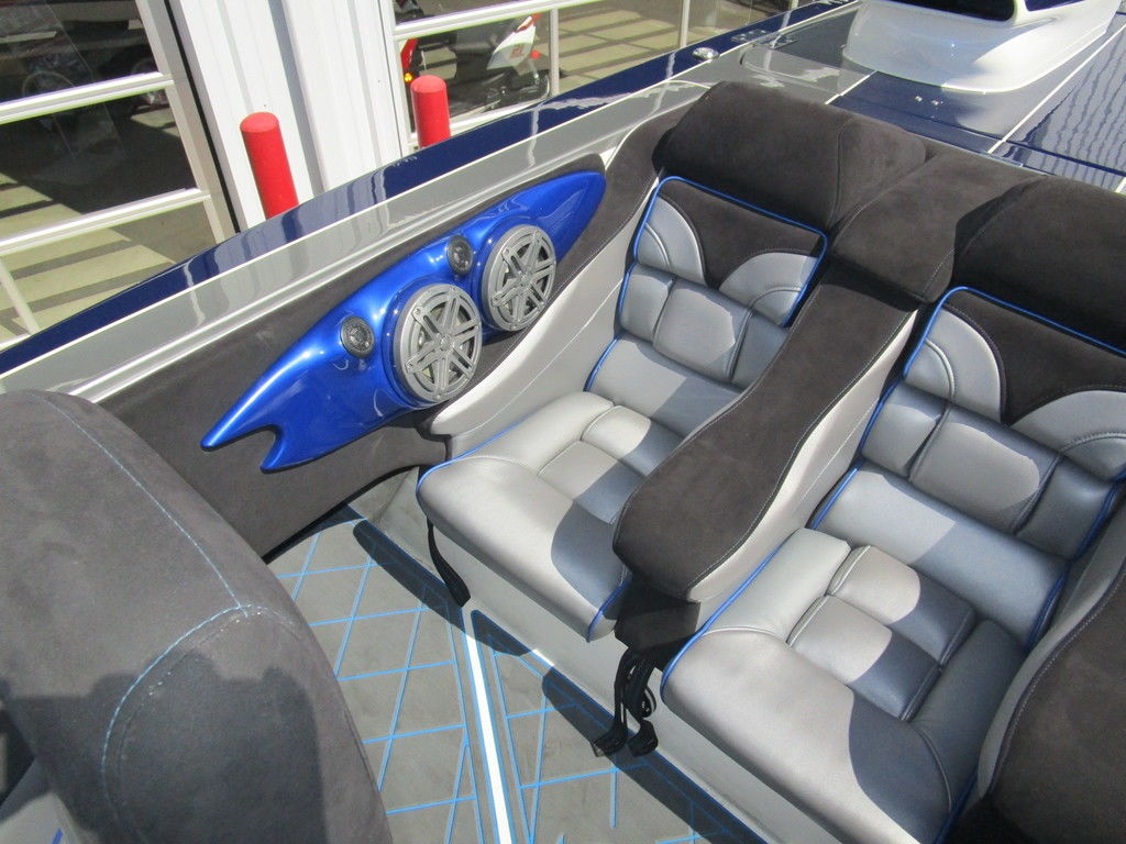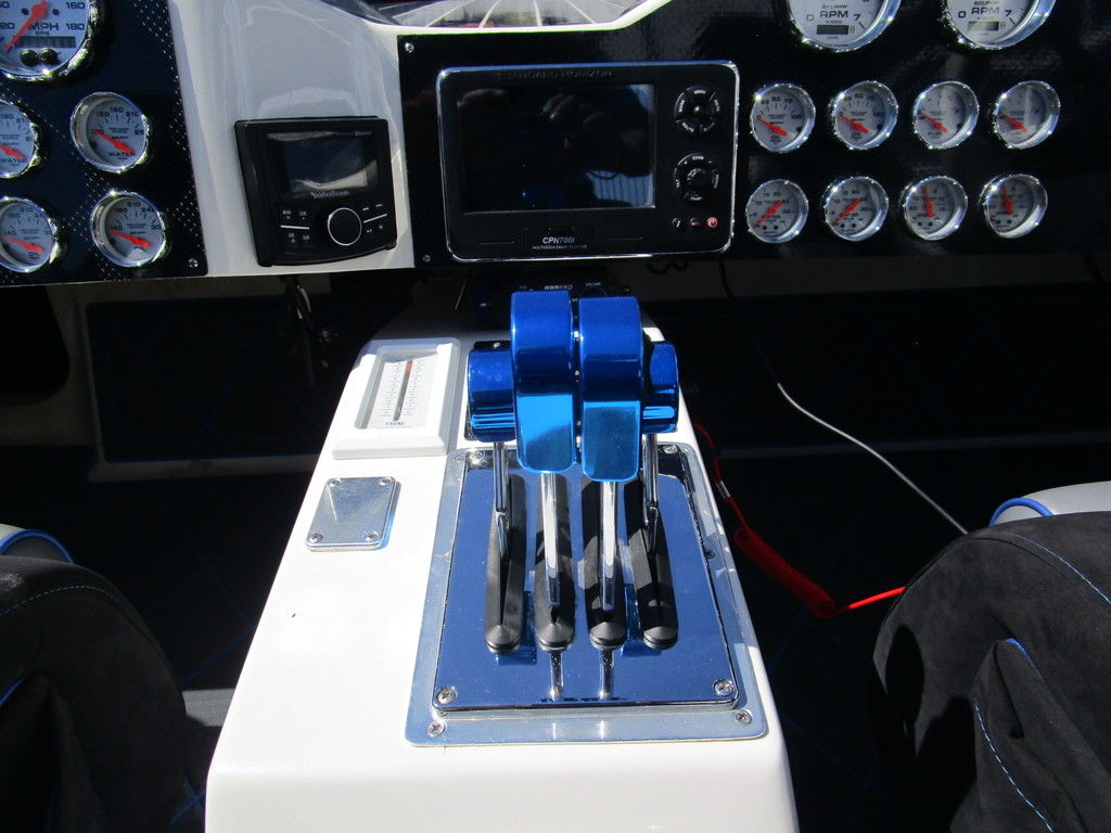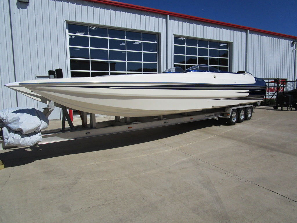 2004 Spectre 36 Poker Run powered by twin Young Performance 1200EFI with 5 hours since refresh, SSM#6 drives, Mercury CNC 5 blade props, tunnel tab, trim tabs, Pro Comp gauges, Standard Horizon CPN700i GPS chartplotter, two person intercom system with headsets, upgraded stereo, carbon fiber dash panels, all new paint, interior, sea deck flooring, stereo in 2018, boat completely re-rigged by HP Mafia in 2019. Aluminum triple axle trailer included.