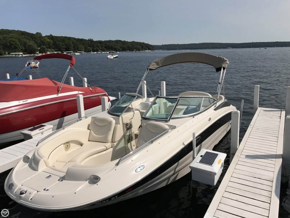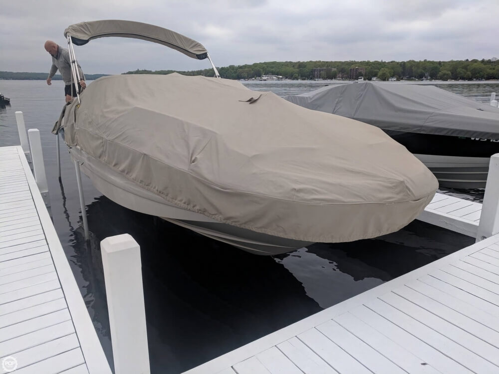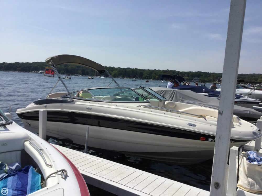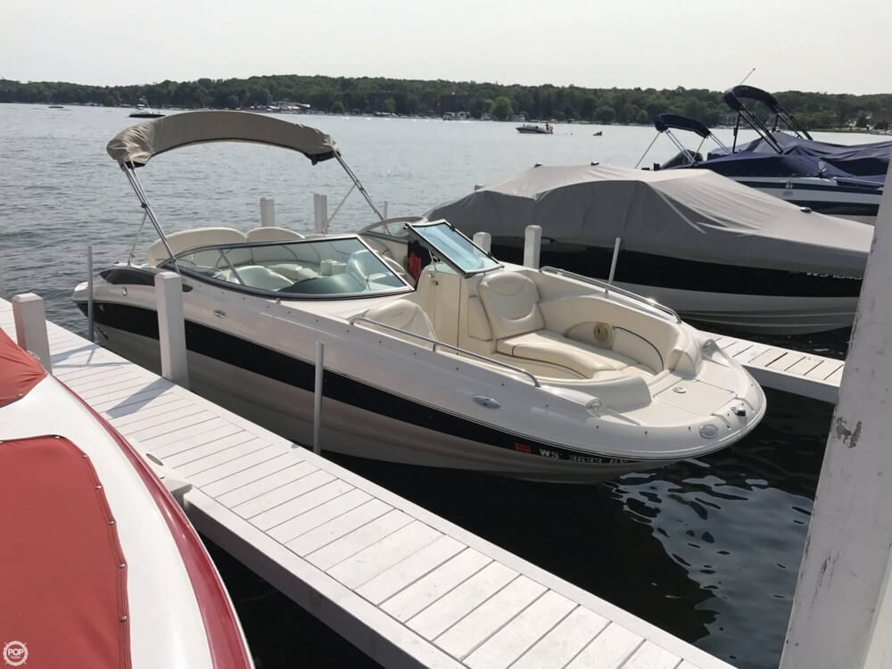 This boat is located in Lake Geneva, Wisconsin and is in good condition. She is also equipped with a Mercruiser engine that has 706 hours.