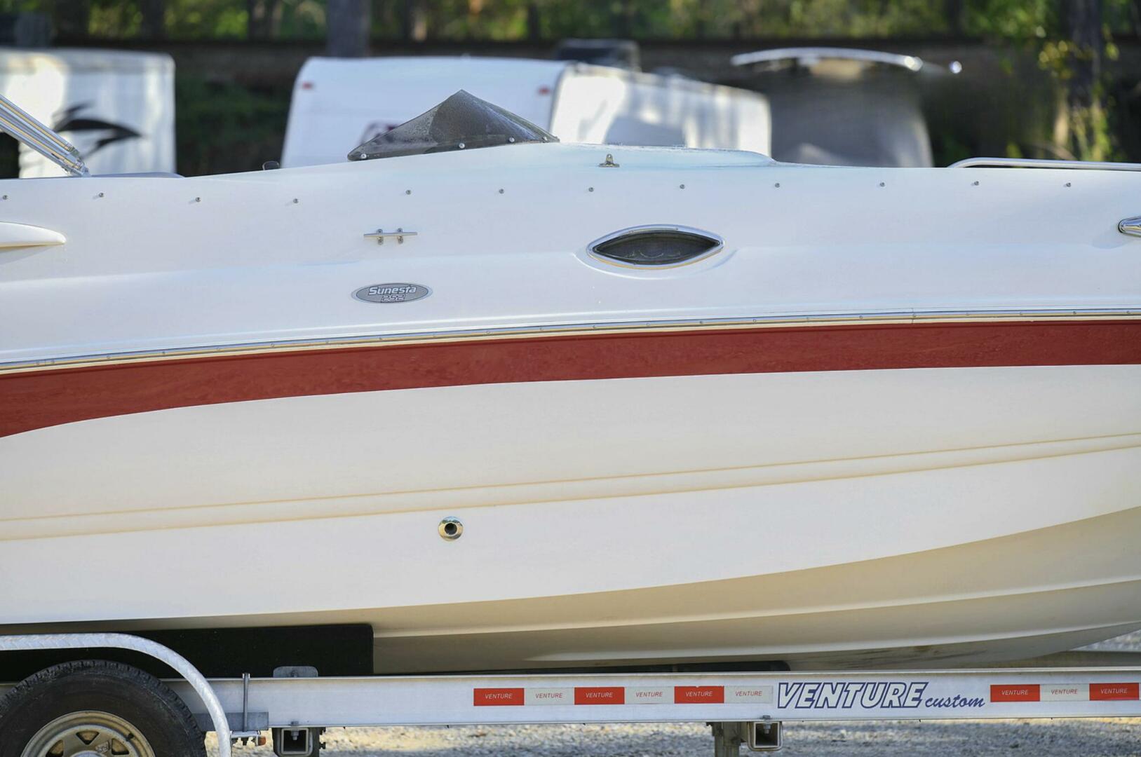 Experience Unforgettable Adventures with this 2005 Chaparral 252 Sunesta – Quality, Comfort, and Fun Await!Introduction:We are excited to present this fantastic 2005 Chaparral 252 Sunesta, a top-quality and well-maintained boat that promises to deliver countless fun-filled adventures. Located in Irmo, South Carolina, this remarkable vessel is priced at $34,230 and comes with a 2017 Venture Trailer, making it a breeze to transport and explore new waters.Vessel Overview:This Chaparral 252 Sunesta showcases the exceptional craftsmanship and design that Chaparral is known for in the marine industry. The boat features a 26-foot overall length and an 8-foot beam, offering ample space for passengers and gear, ensuring an enjoyable experience for everyone on board.Engine Performance:Powered by a Volvo-Penta 5.7 GI-E engine with 295 horsepower and a Duo-prop lower unit, this Chaparral 252 Sunesta delivers impressive performance that is quiet and built to last. The engine allows for smooth cruising, water sports, and exploring new locations.Spacious Open Deck and On-Deck Amenities:The large open deck of this Chaparral 252 Sunesta is perfect for entertaining and relaxing with family and friends. The on-deck sink, built-in cooler, and trash bin make it convenient to serve refreshments and keep the deck clean and organized.Comfortable Bow Seating and Sun Pad:The full bow seating area, complete with sun pad cushions, invites passengers to lounge and soak up the sun. The beach ladder provides easy access to the water from the bow, while the swim ladder off the swim pad at the stern adds convenience for swimmers.User-Friendly Helm Seating and Gauges:The Chaparral 252 Sunesta features ample helm seating and easy access to all the gauges needed for a smooth and enjoyable ride. The user-friendly design allows the captain to focus on the fun while keeping everything under control.Included Trailer:This Chaparral 252 Sunesta has a 2017 galvanized twin-axle Venture Trailer, making it easy to transport the boat to your favorite body of water or discover new spots. The freedom to explore is at your fingertips with this versatile and reliable trailer.If you’re looking for a boat that promises unforgettable adventures, fun, and comfort, look no further than this 2005 Chaparral 252 Sunesta. With its impressive features, well-maintained engine, and included trailer, this vessel is ready to provide countless memories on the water. Don’t miss this fantastic opportunity to own a top-quality Chaparral boat at a competitive price. Call today!