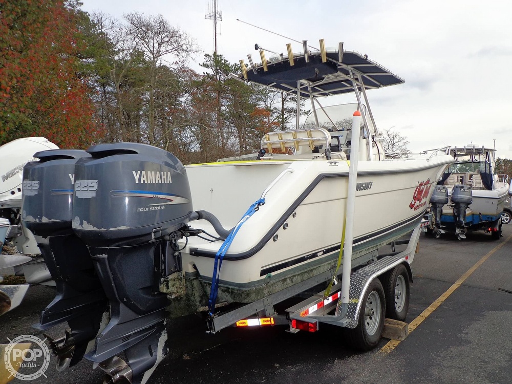 This boat is located in Falmouth, Massachusetts and is in good condition. She is also equipped with twin Yamaha engines that have 925 hours.