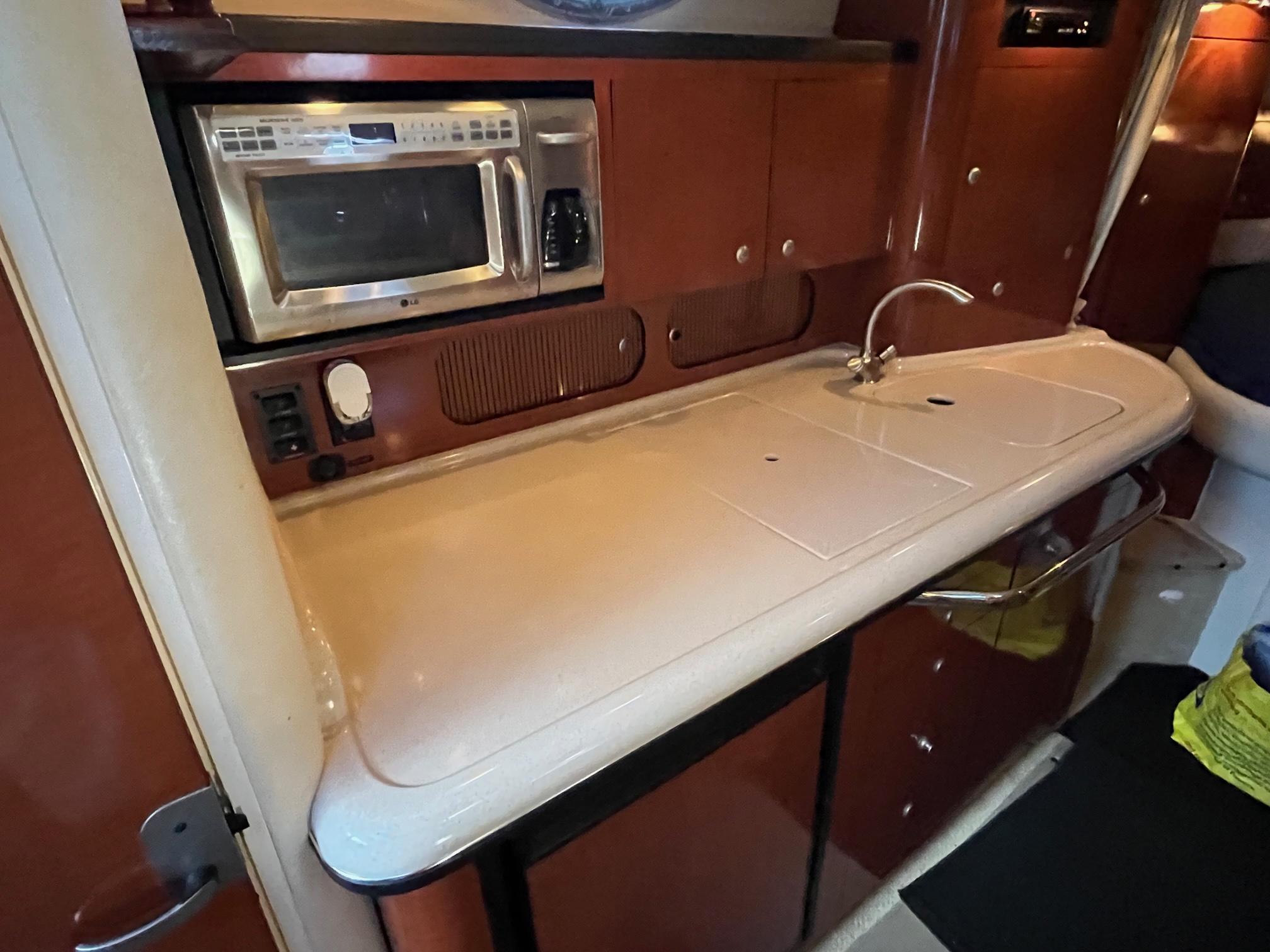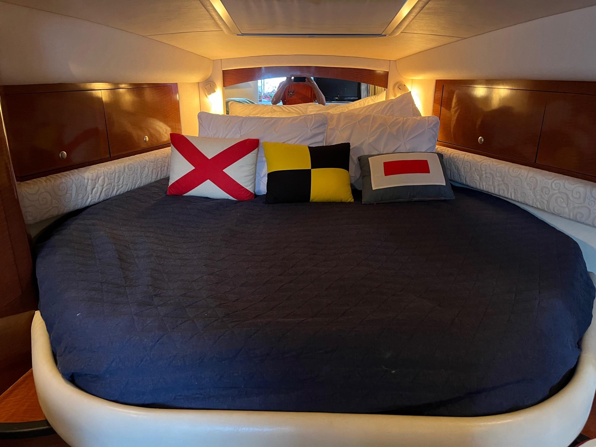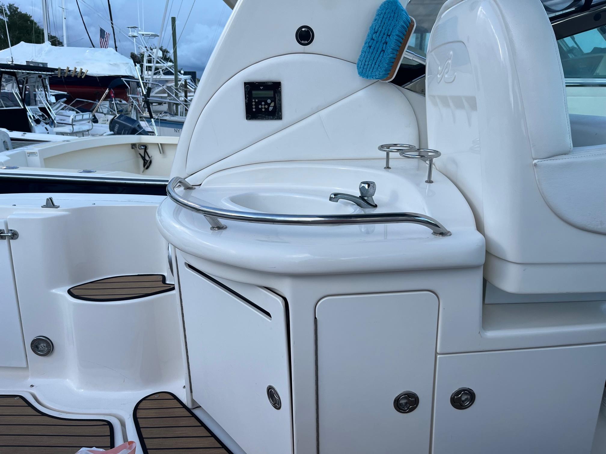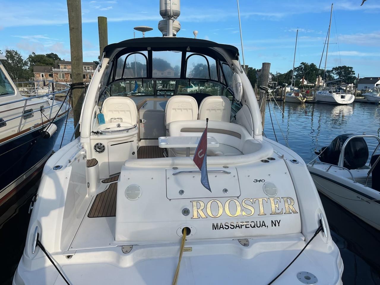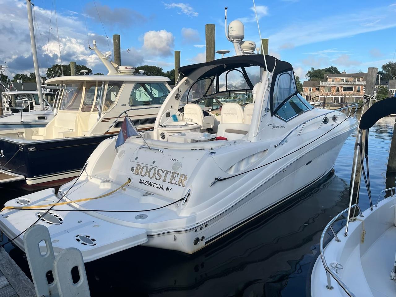 In the 340 Sundancer, high performance, comfort and quality are beautifully combined in one sleek cruising package. Powered by twin 8.1SI MerCruiser V-drives with all new exhaust manifolds and elbows in June 2024 - the 340 Sundancer is the ticket that will let you discover a whole new world of boating. A roomy, redesigned cockpit offers plenty of opportunity to relax, and her sleeping accommodations for six mean family and friends can go right along with you