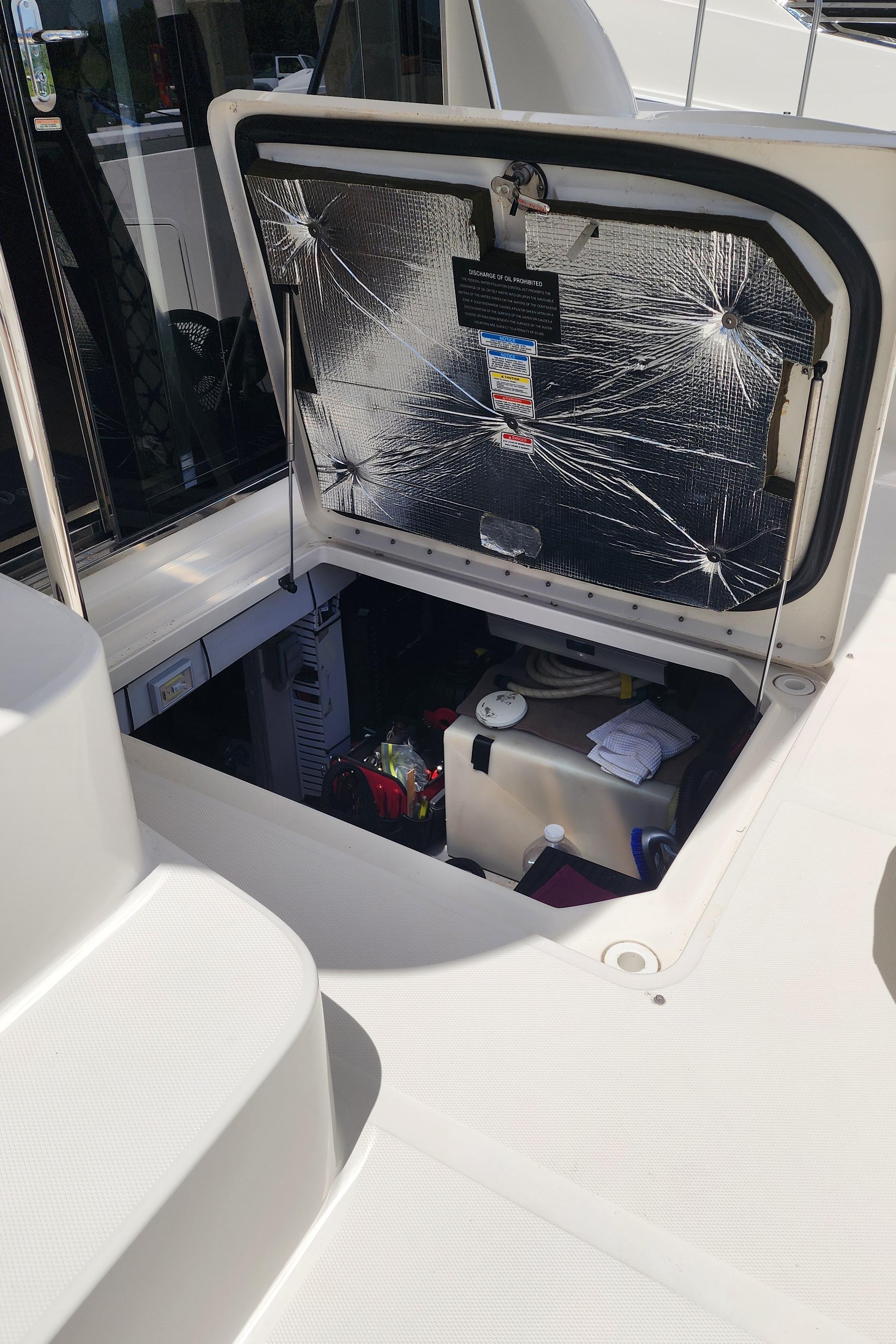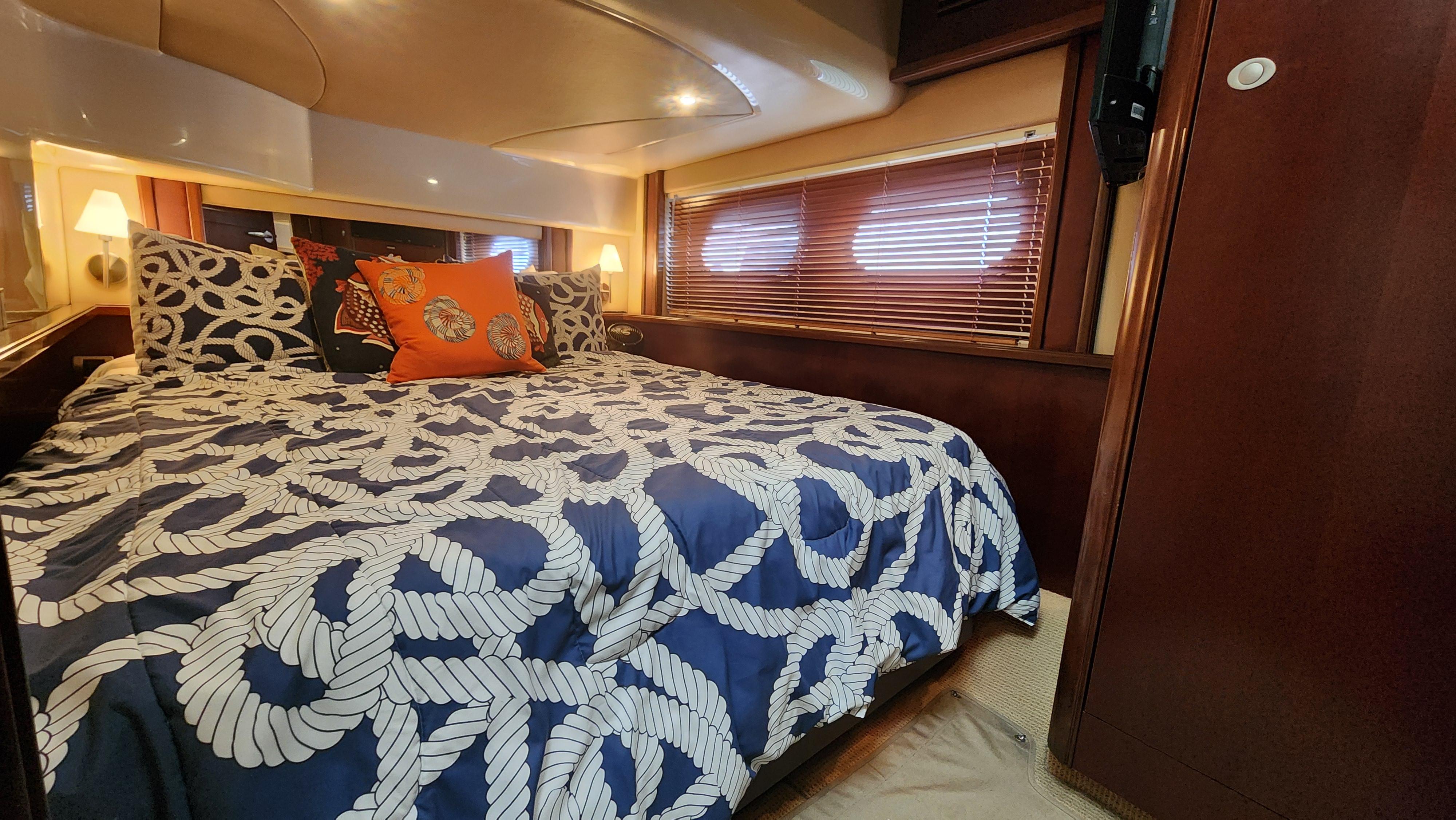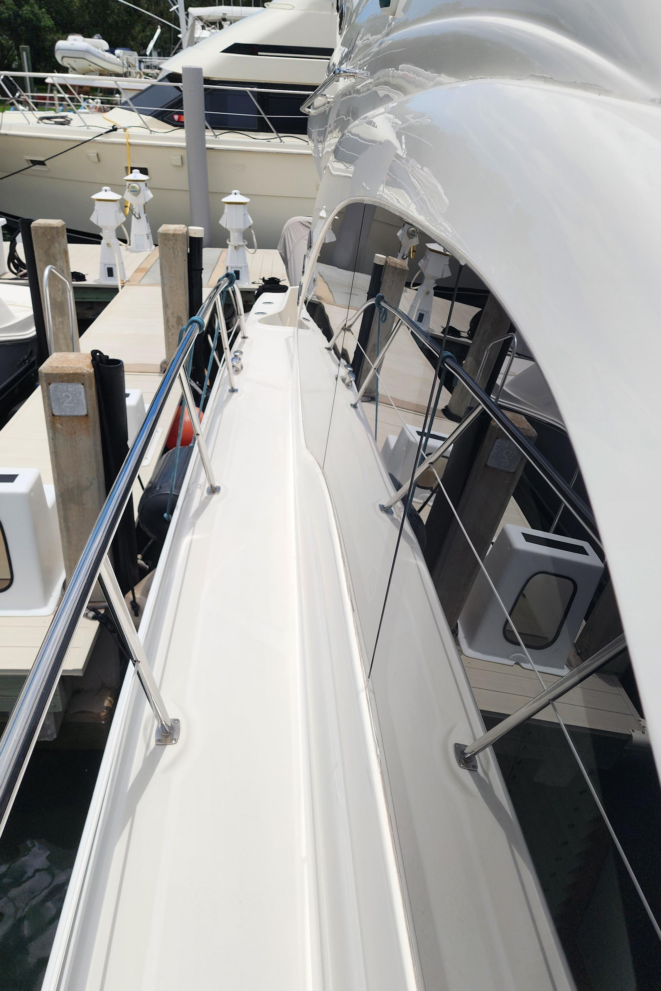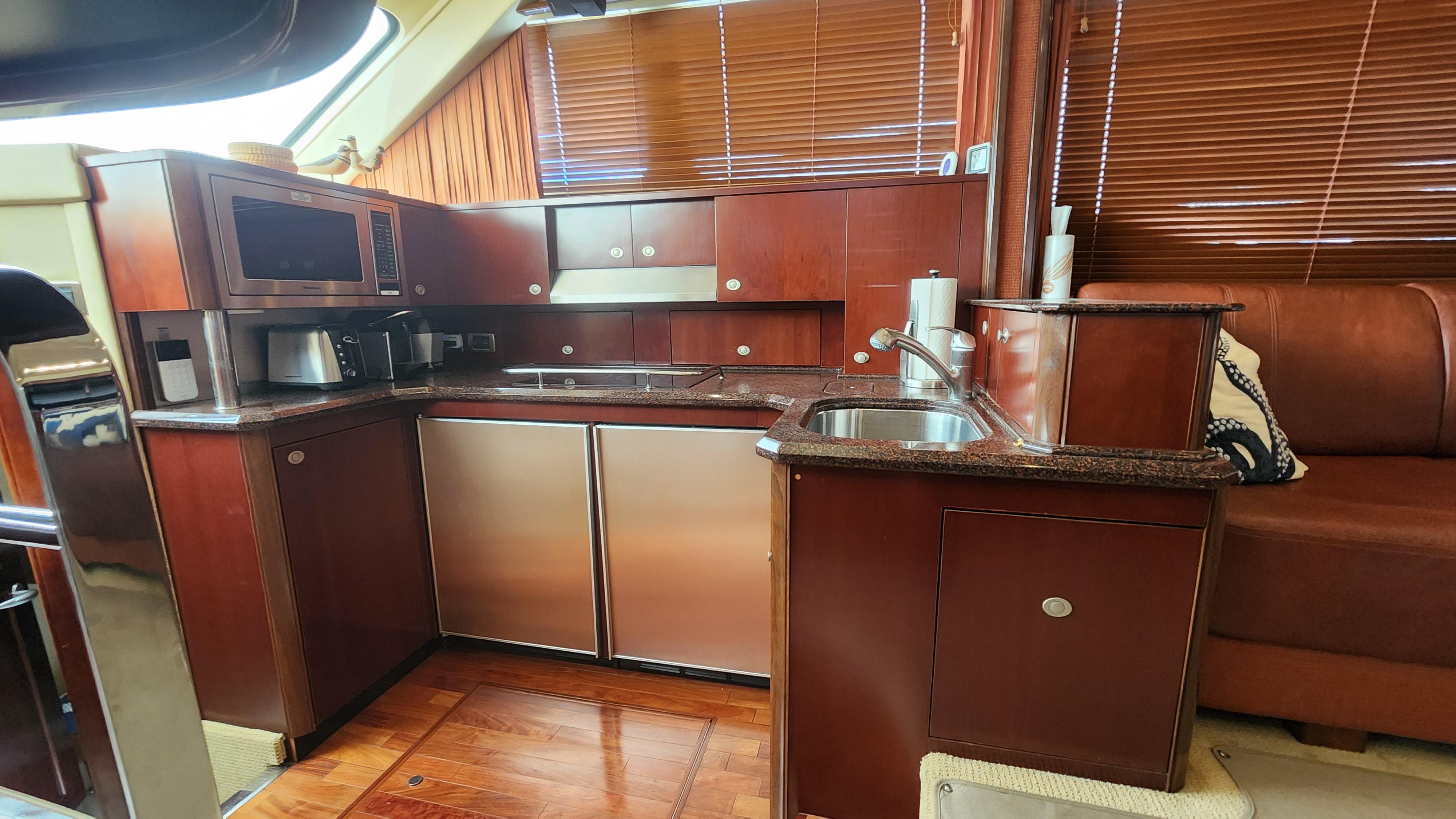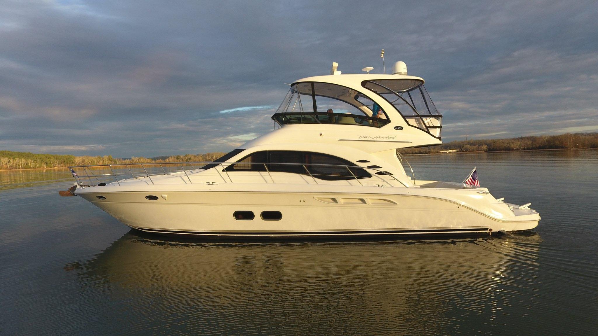The Wine Down spent most of her life in fresh water. She was brought to Sarasota about three years ago. The Wine Down is a perfect example of Sea Rays best build years in the larger yachts. The Gel coat, Stainless steel, and overall build quality is Excellent. There have been many upgrades to the Wine Down including new Garmin electronics, two new integrated fusion stereo systems, all new led lights on the bridge level with changing colors from red, white, or blue. All the interior lights have been upgraded to led. The alternators, belts, batteries, and battery charger have recently been replaced. The Sea Star power steering ram was recently removed and completely rebuilt. The Marquipt davit was stripped, and powder coated. The main engines large exhaust collector tubes have been replaced. Some other recent upgrades include aft deck awning with stainless steel support poles, bridge and aft deck carpet, front window covers in white and black, new helm and upper lounge area covers, aft deck bench cover, and zip in sunshades for the forward bridge area. The boat also comes with spare propellers. The owner has had the boat professionally maintained. It has had regular maintenance checks, washdowns, polishing/waxing, and dive services. She is ready for cruising.