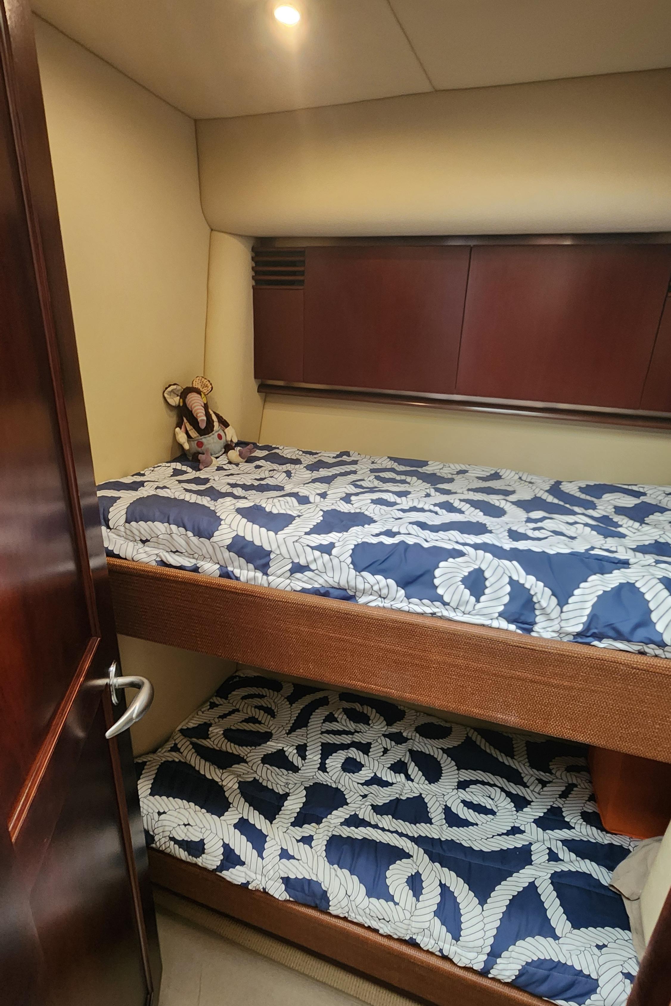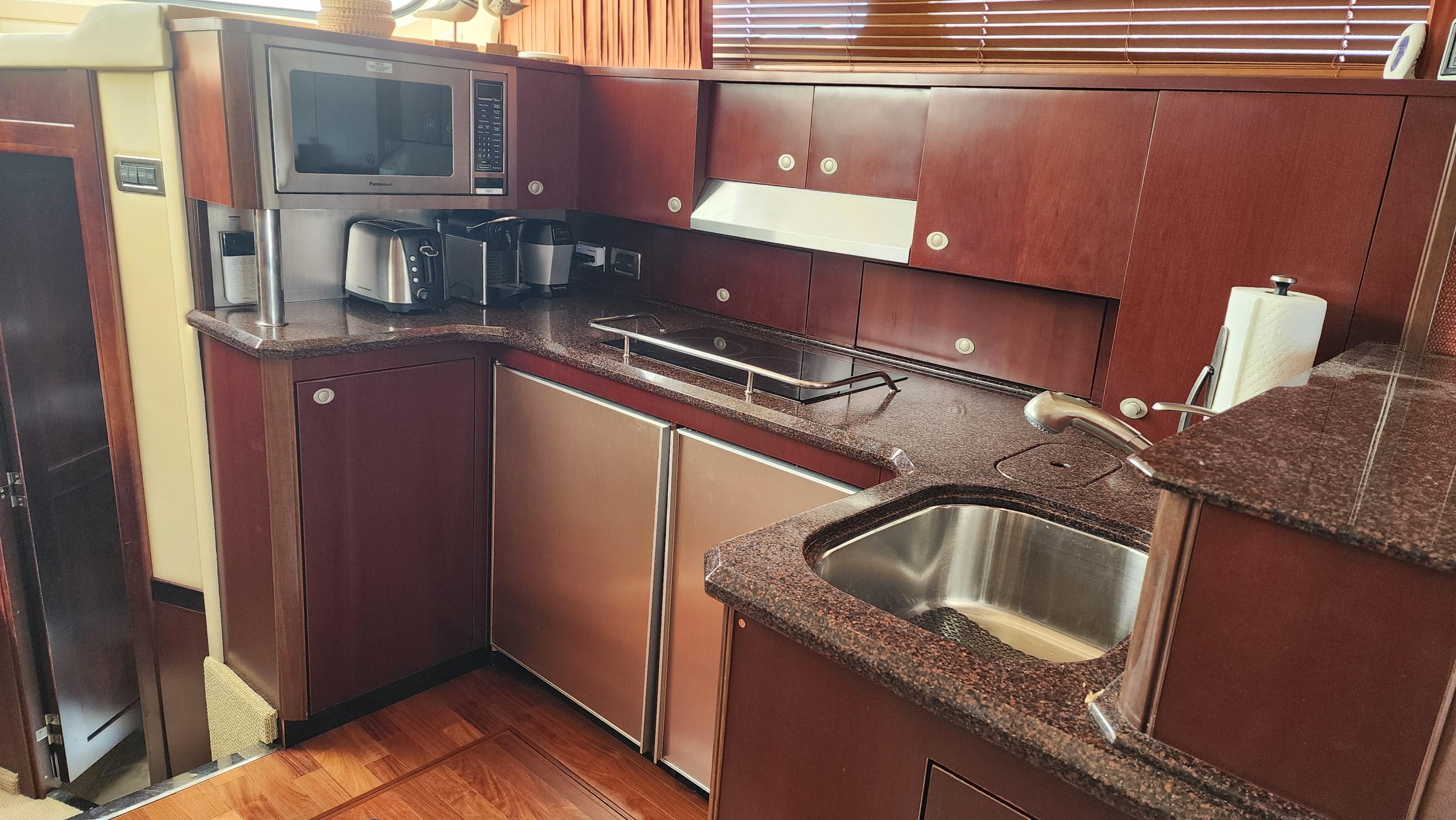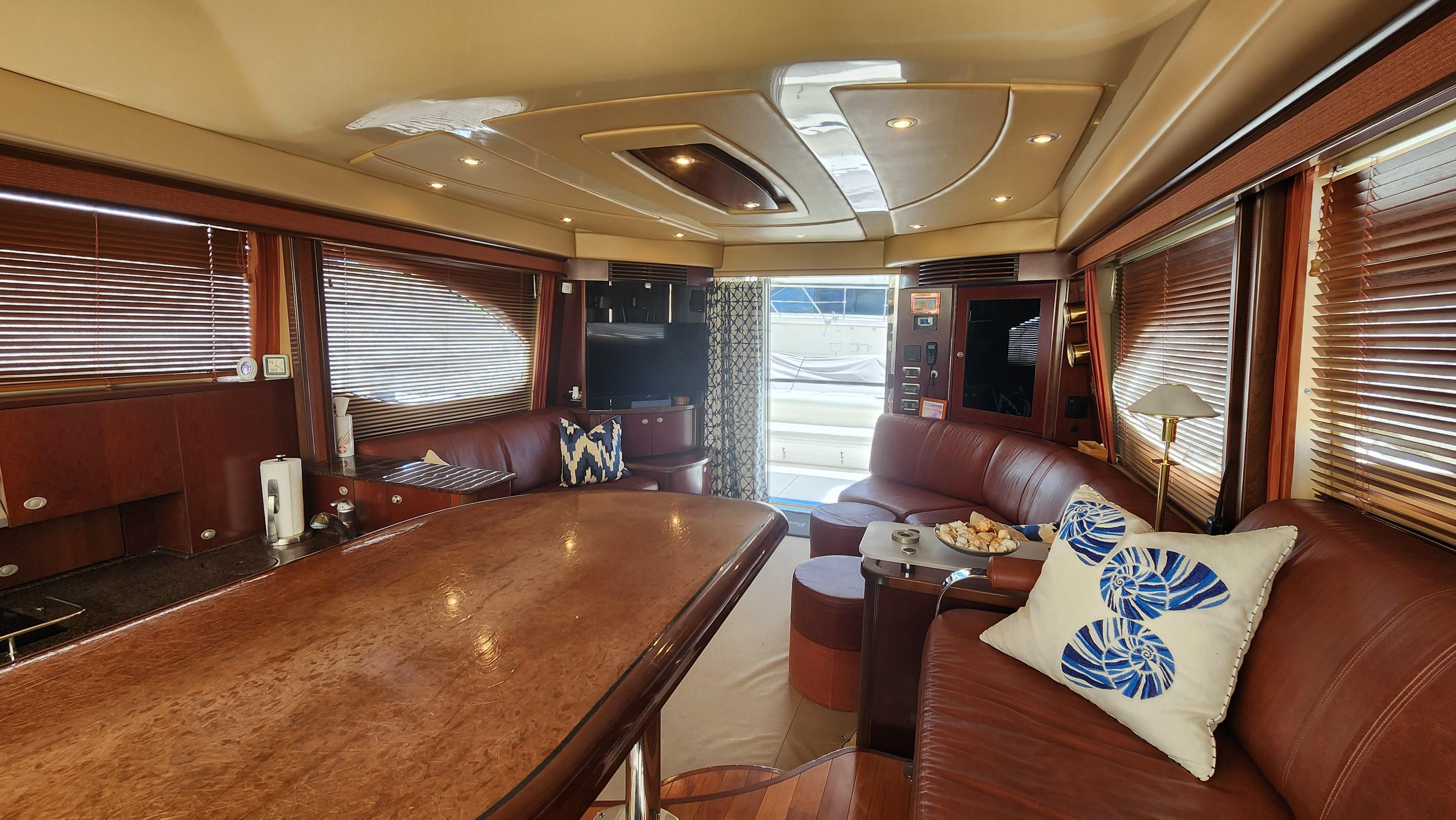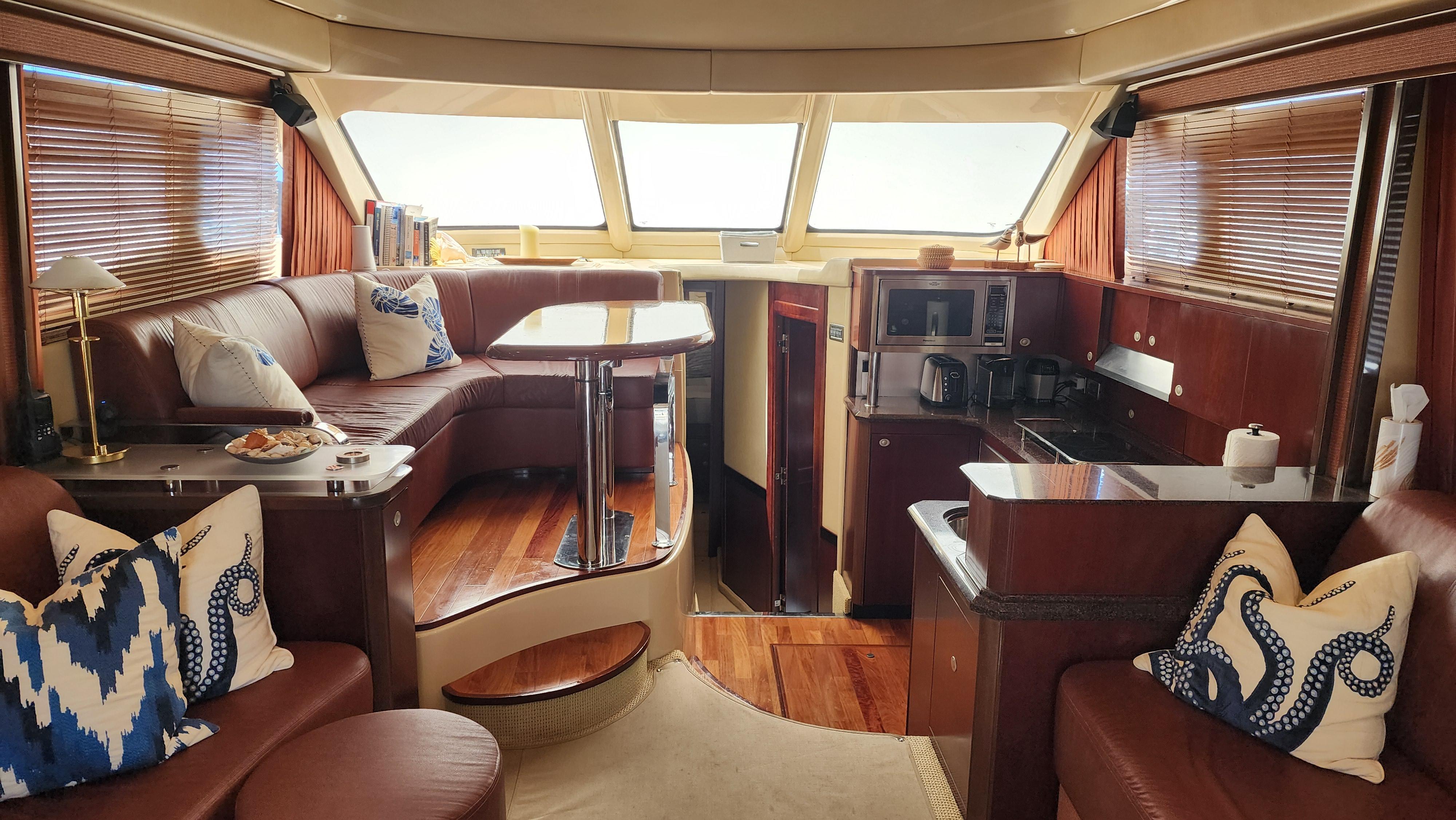 The Wine Down spent most of her life in fresh water. She was brought to Sarasota about three years ago. The Wine Down is a perfect example of Sea Rays best build years in the larger yachts. The Gel coat, Stainless steel, and overall build quality is Excellent. There have been many upgrades to the Wine Down including new Garmin electronics, two new integrated fusion stereo systems, all new led lights on the bridge level with changing colors from red, white, or blue. All the interior lights have been upgraded to led. The alternators, belts, batteries, and battery charger have recently been replaced. The Sea Star power steering ram was recently removed and completely rebuilt. The Marquipt davit was stripped, and powder coated. The main engines large exhaust collector tubes have been replaced. Some other recent upgrades include aft deck awning with stainless steel support poles, bridge and aft deck carpet, front window covers in white and black, new helm and upper lounge area covers, aft deck bench cover, and zip in sunshades for the forward bridge area. The boat also comes with spare propellers. The owner has had the boat professionally maintained. It has had regular maintenance checks, washdowns, polishing/waxing, and dive services. She is ready for cruising.