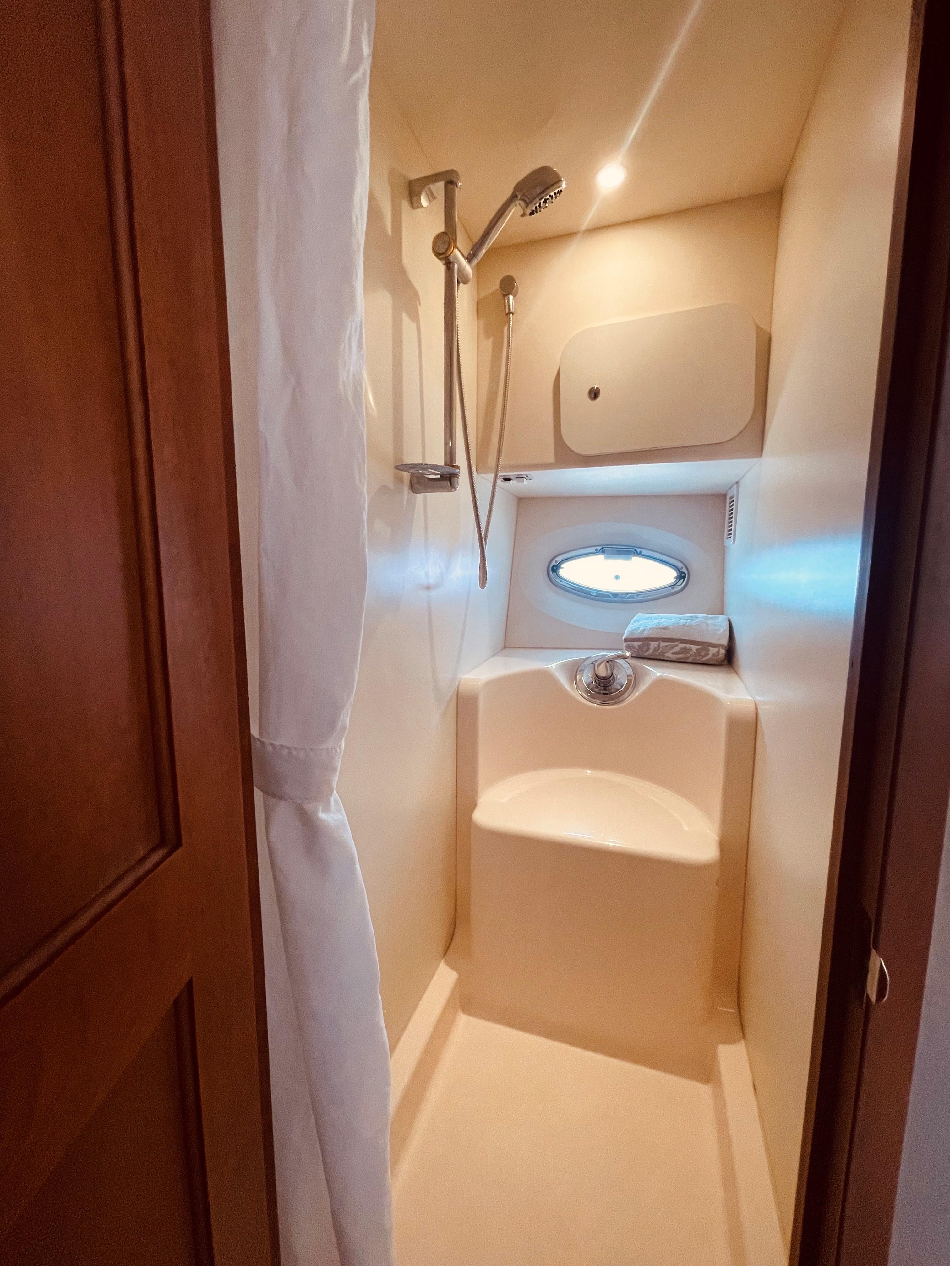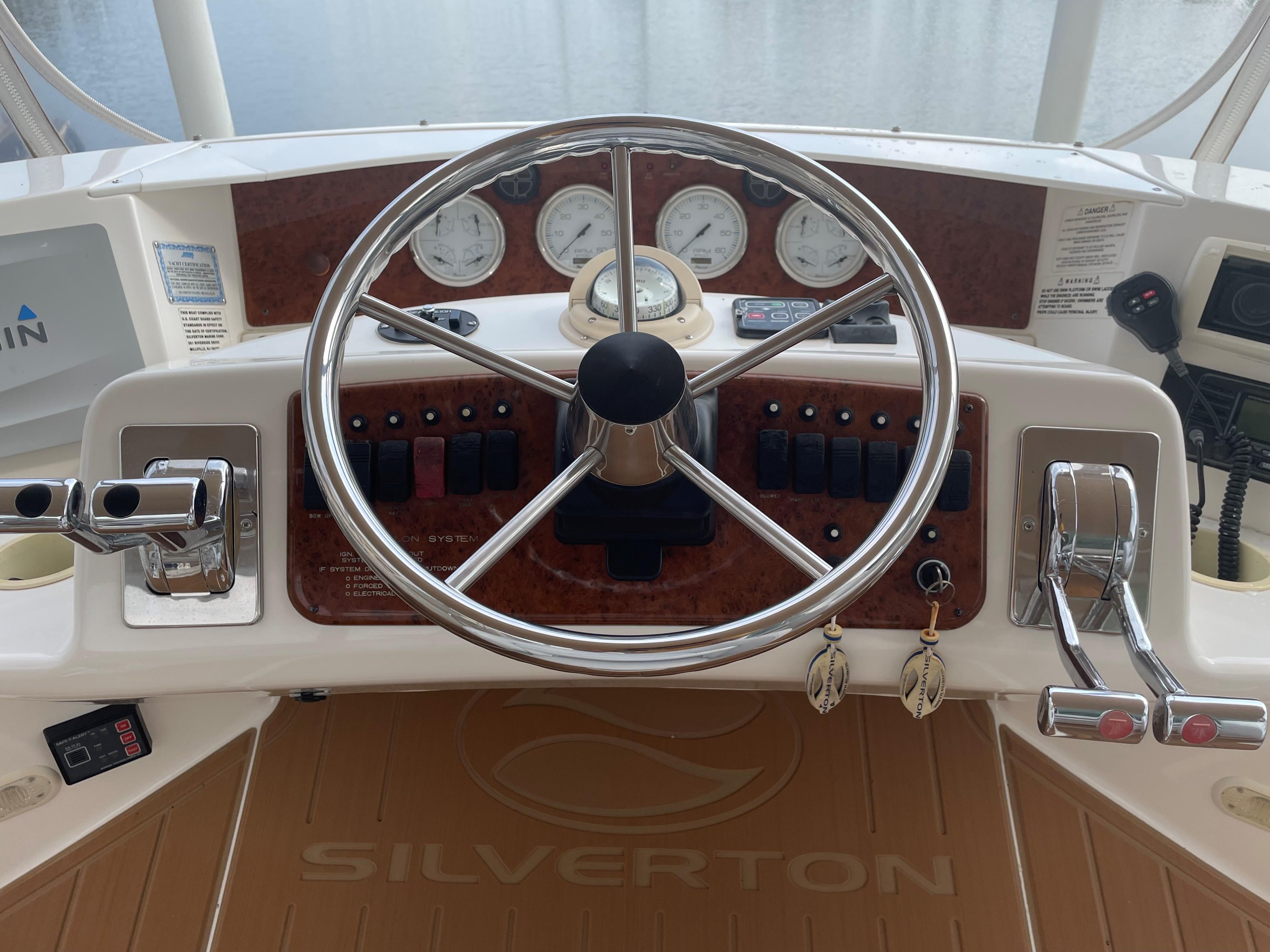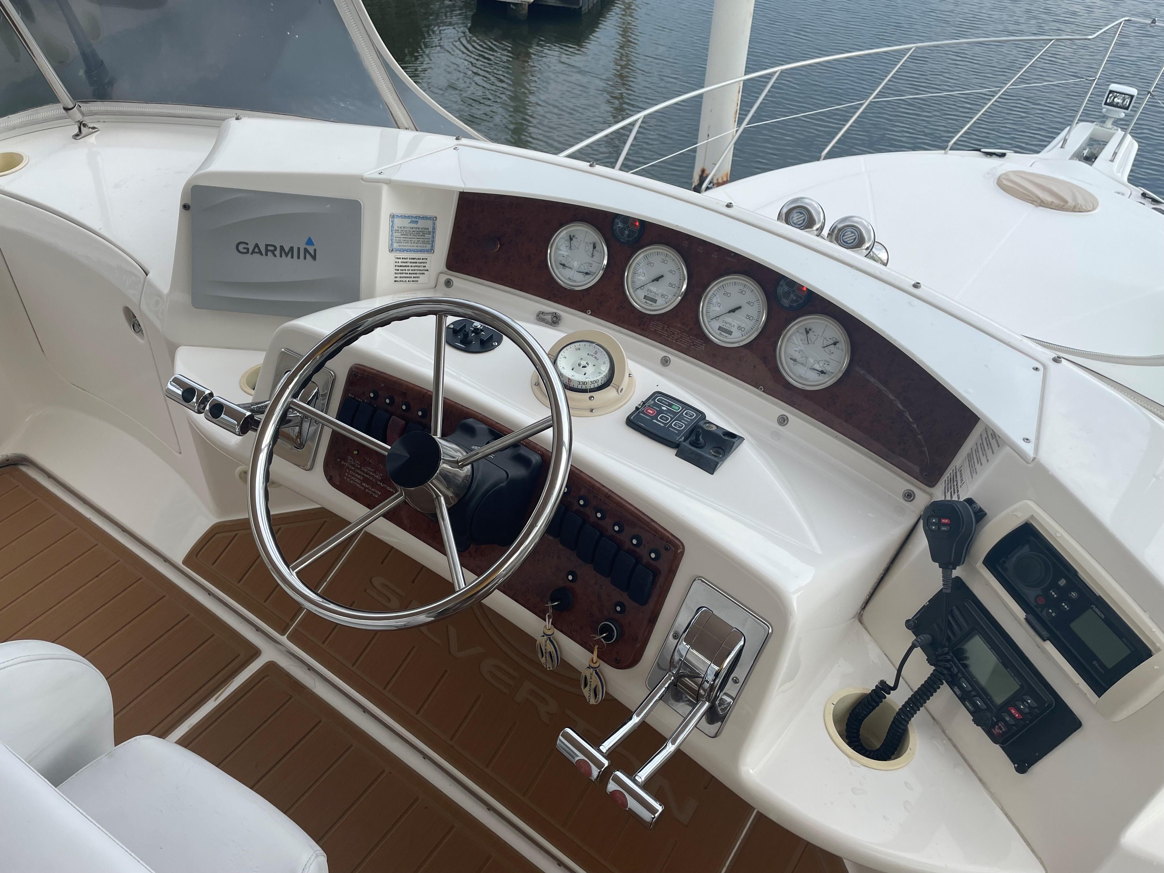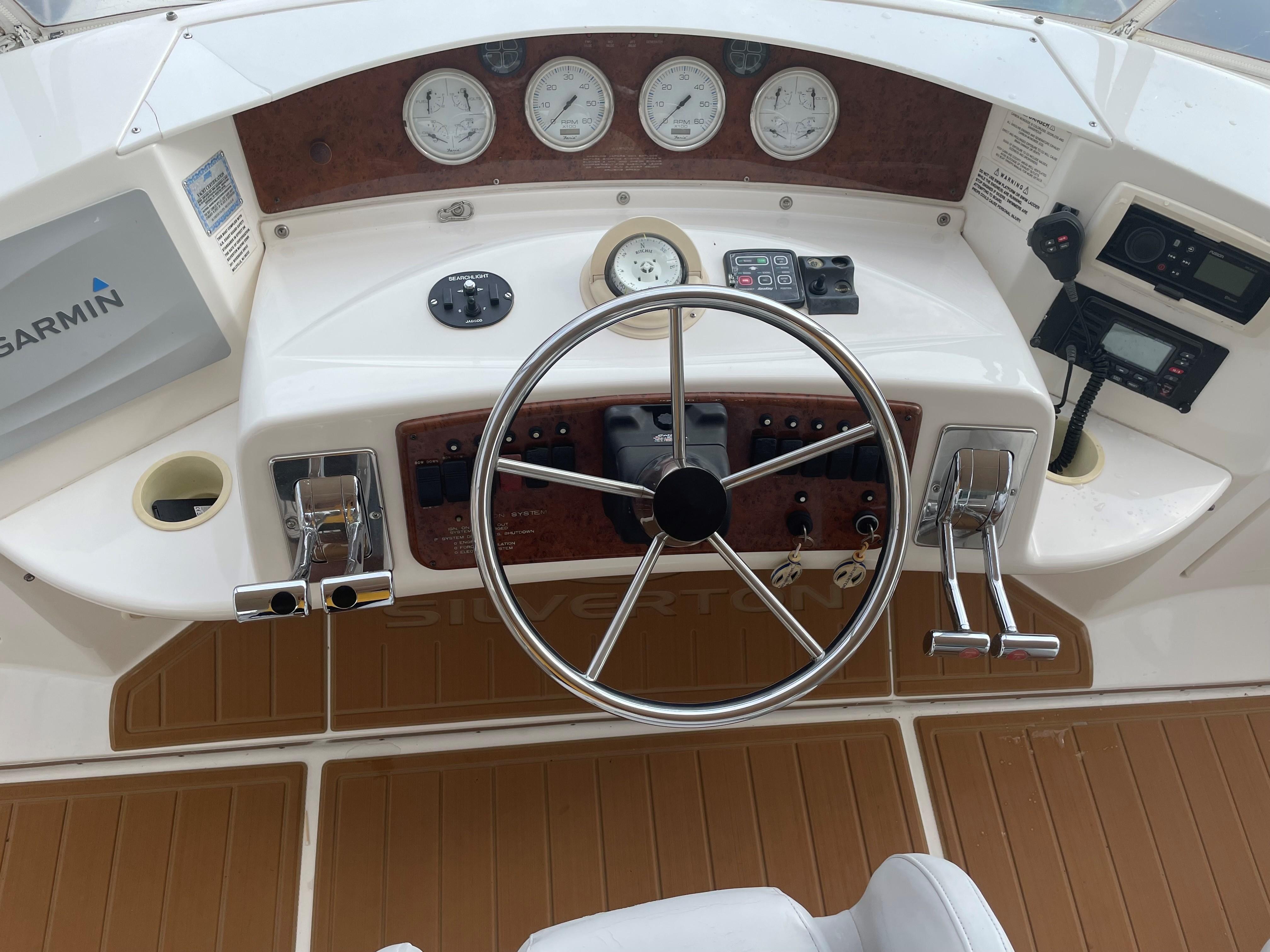 Modern lines and a proven hull grace this comfortable 2-stateroom interior, which features an innovative split head plan with a dry head and vanity to port and a separate stall shower to starboard. The cherry wood salon offers a convertible sofa and plenty of room to entertain. The oversize flybridge with pilot, companion and guest seating rounds out this value-packed model. Silverton engineers along with the help of noted designer Donald Blount & Associates have created an easily driven hull that performs well with smaller displacement engines providing better economy and increased range. Shallow propeller tunnels have lowered the drive angle to increase efficiency and reduce the draft as well. Silverton's evolution of design and 35 years of experience will deliver the best 34 Convertible ever and at a price that will make it irresistible.
