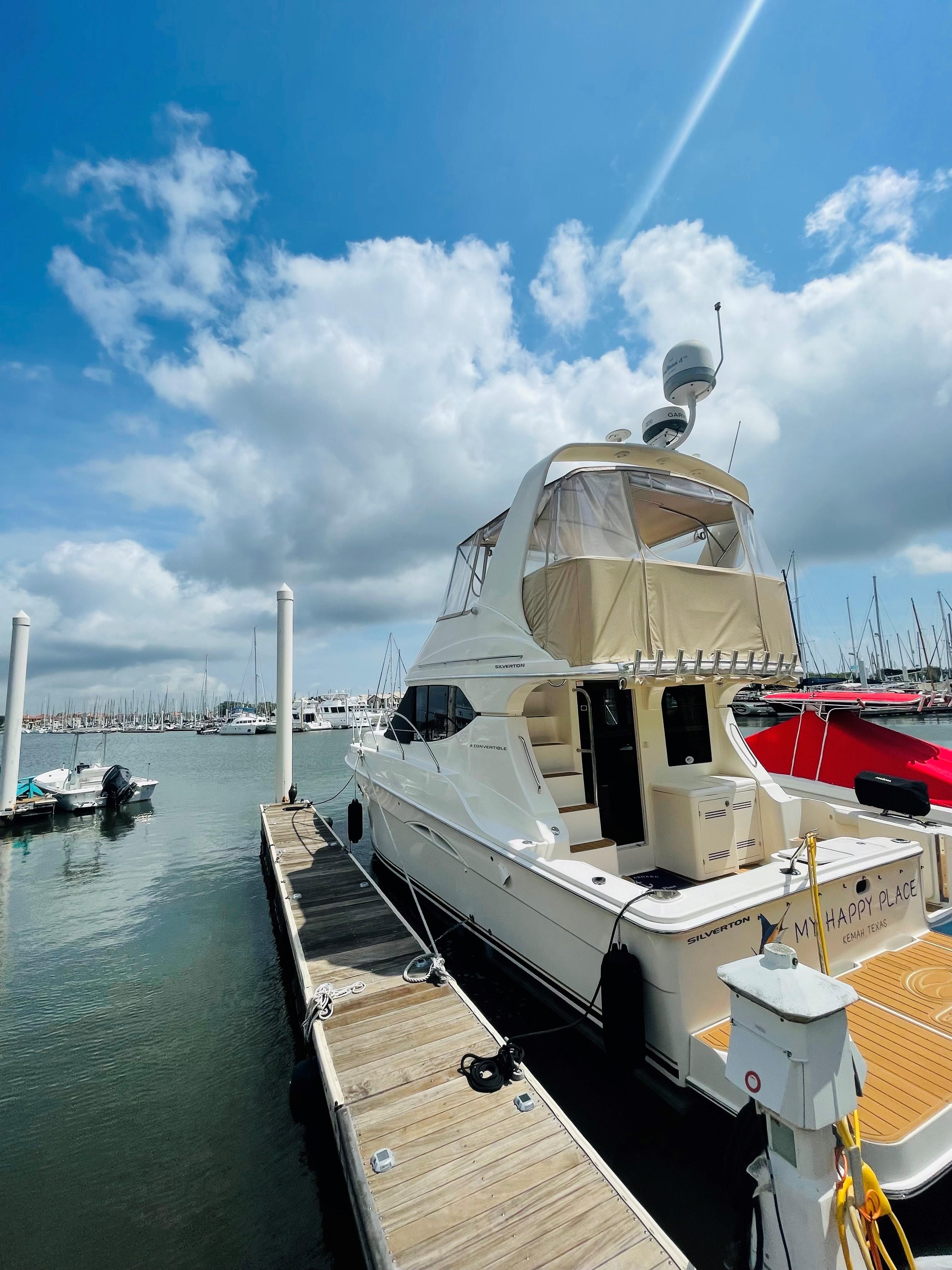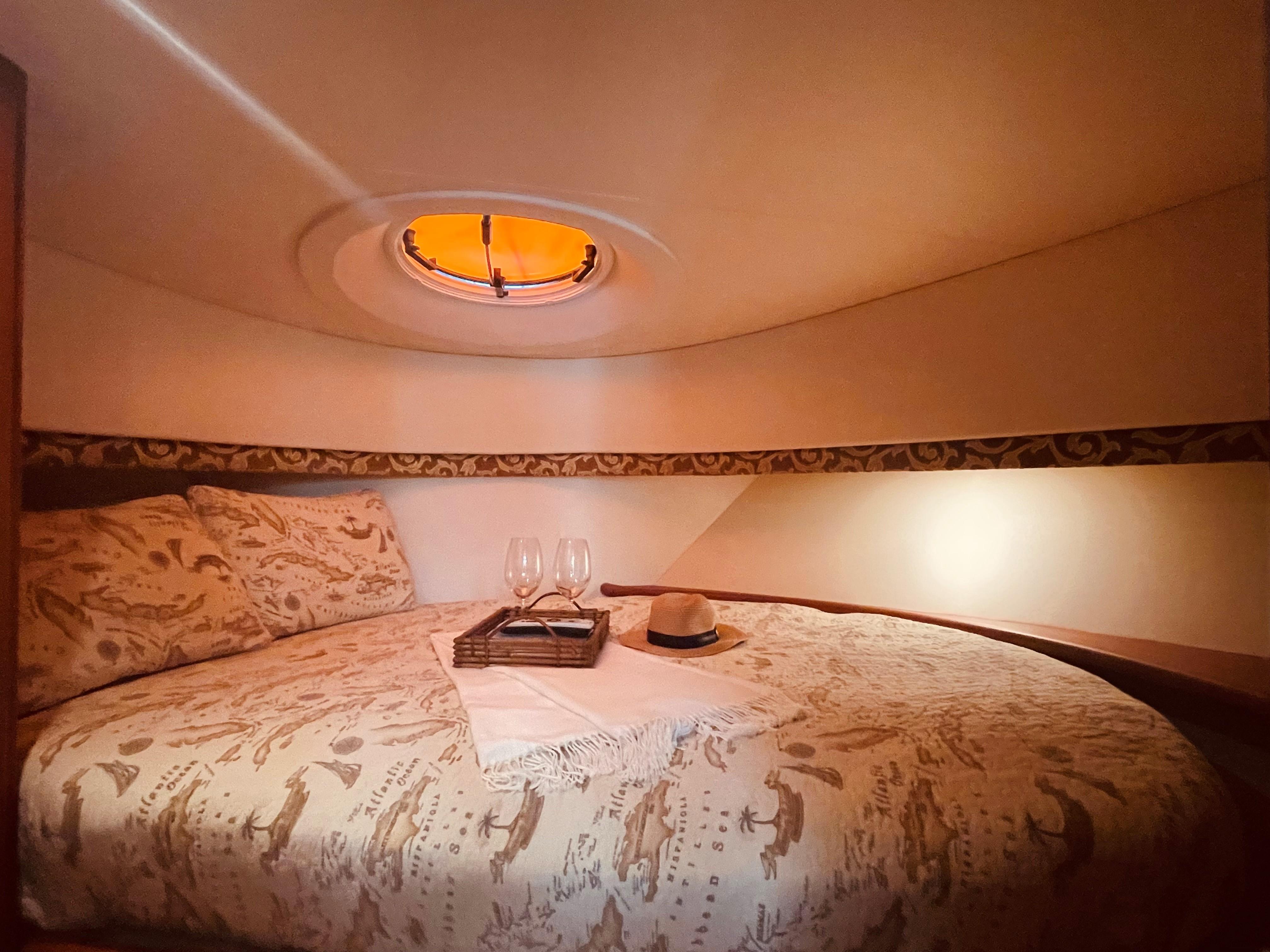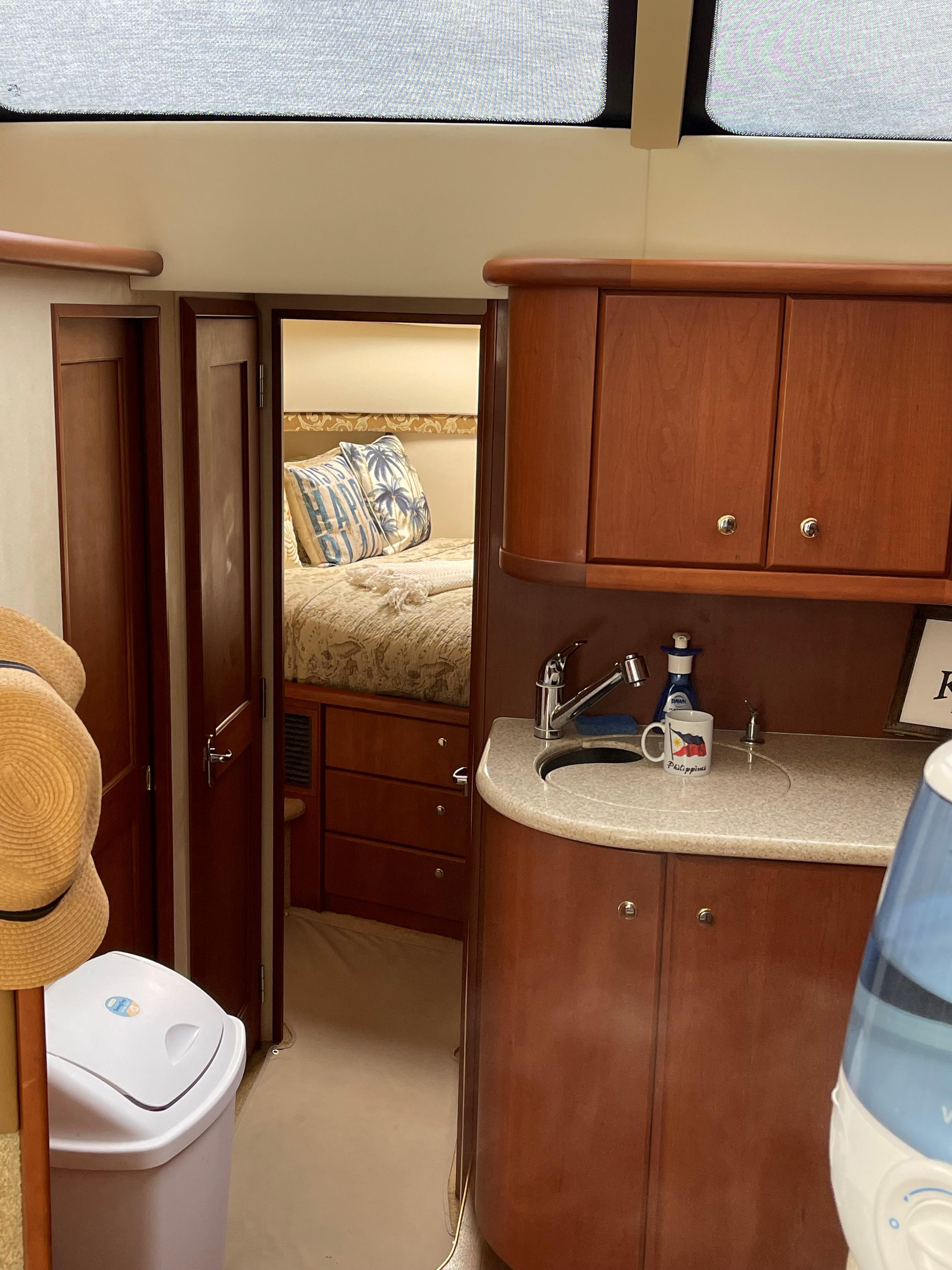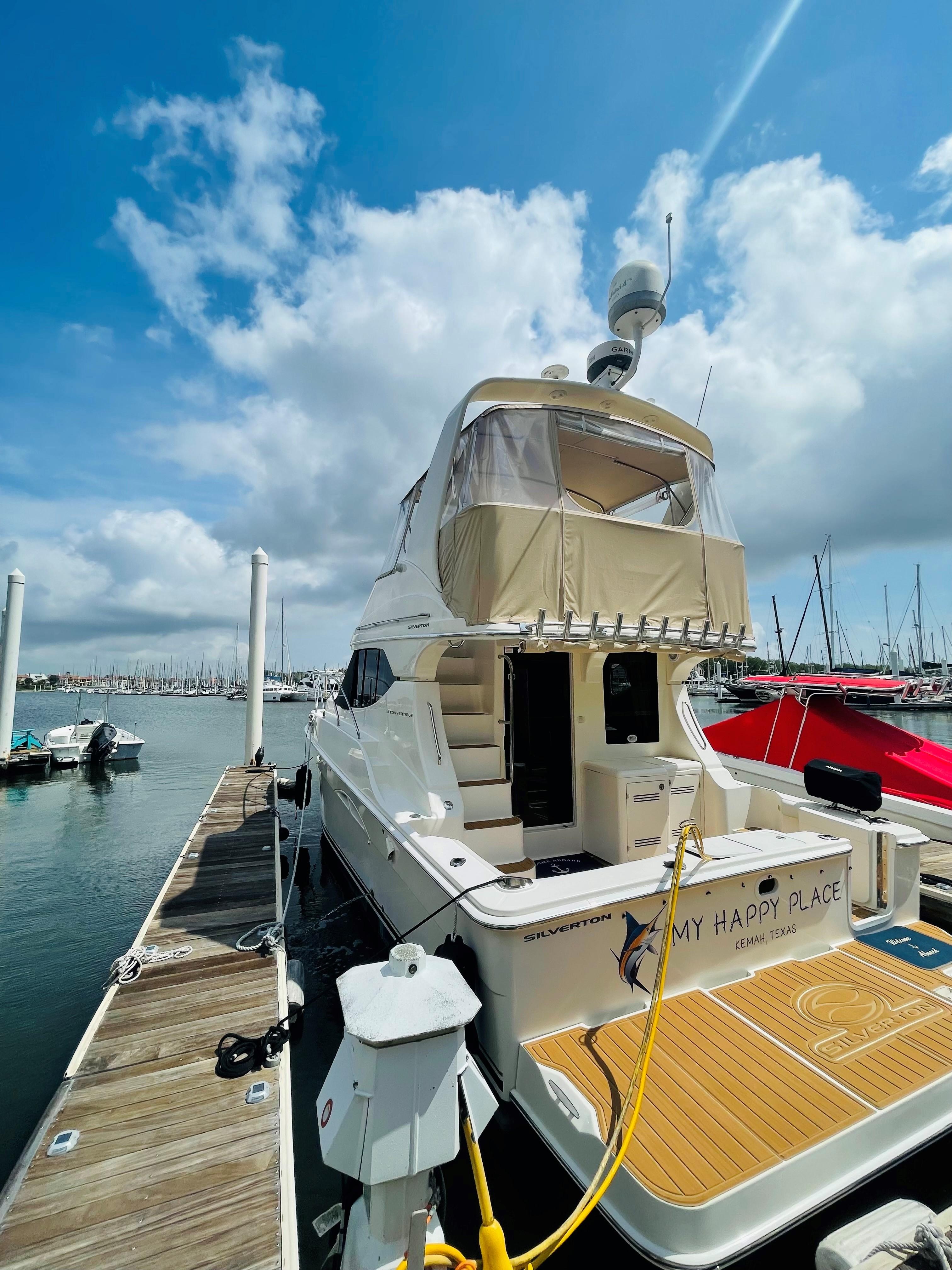 Modern lines and a proven hull grace this comfortable 2-stateroom interior, which features an innovative split head plan with a dry head and vanity to port and a separate stall shower to starboard. The cherry wood salon offers a convertible sofa and plenty of room to entertain. The oversize flybridge with pilot, companion and guest seating rounds out this value-packed model. Silverton engineers along with the help of noted designer Donald Blount & Associates have created an easily driven hull that performs well with smaller displacement engines providing better economy and increased range. Shallow propeller tunnels have lowered the drive angle to increase efficiency and reduce the draft as well. Silverton's evolution of design and 35 years of experience will deliver the best 34 Convertible ever and at a price that will make it irresistible.