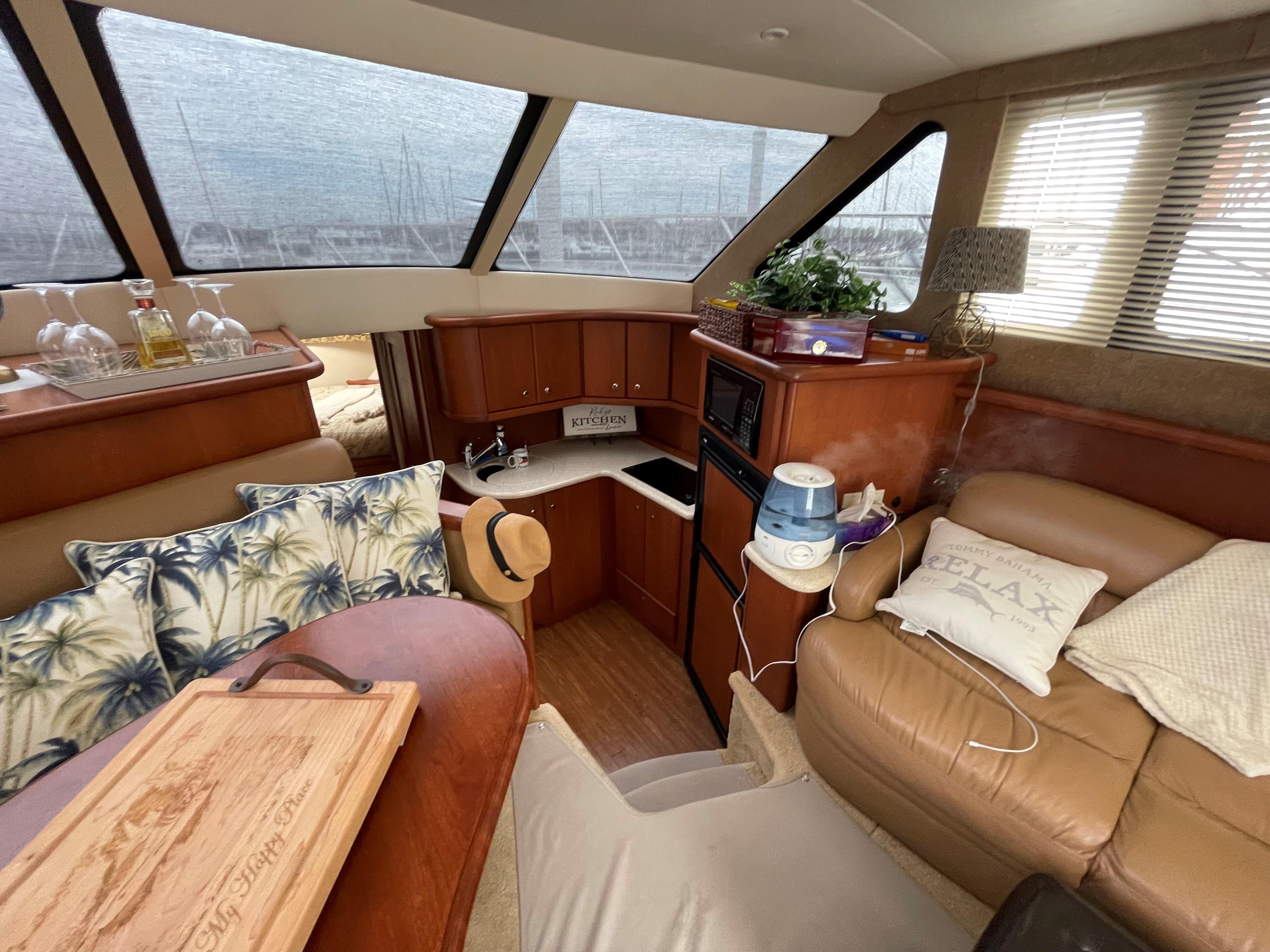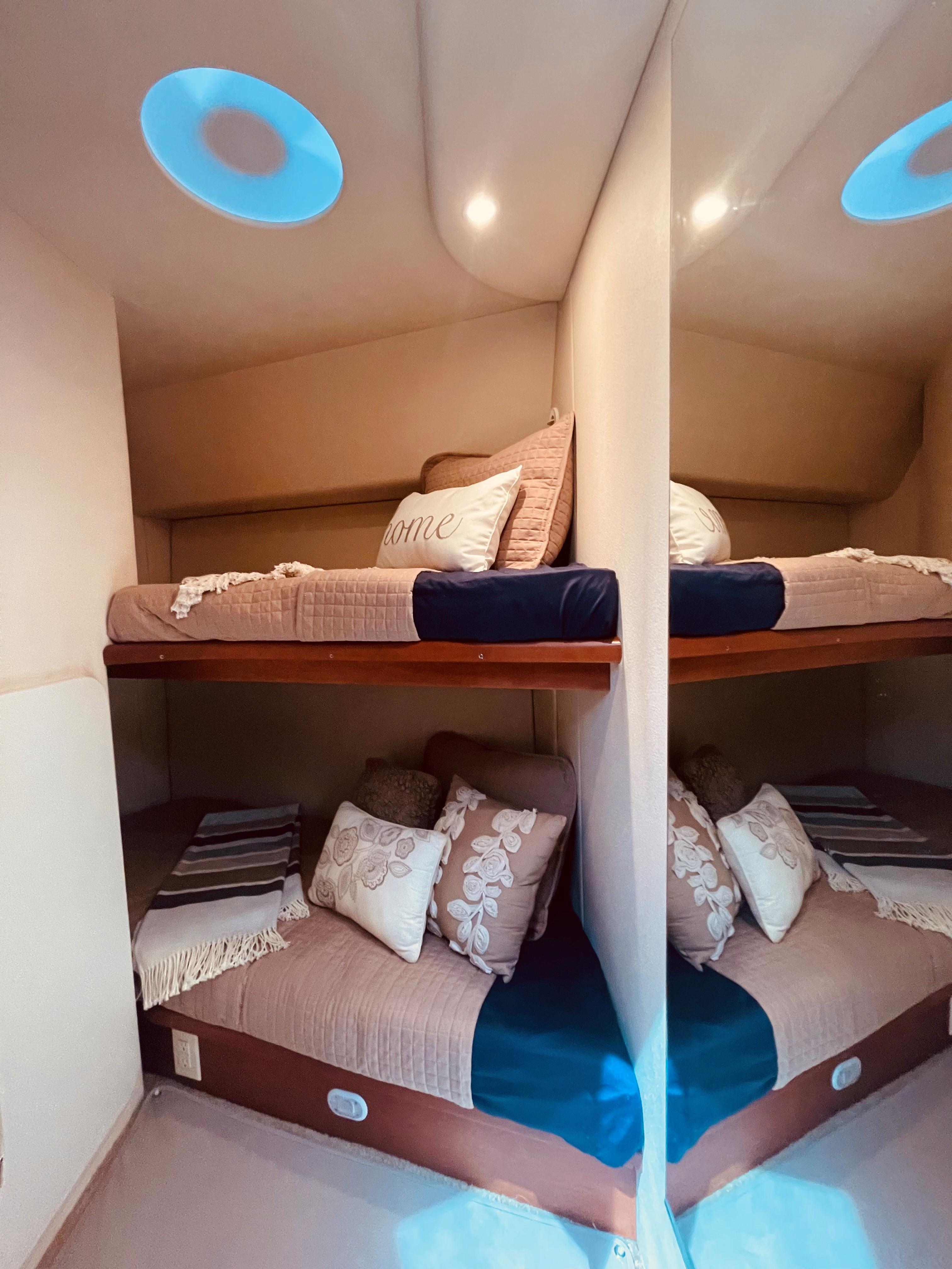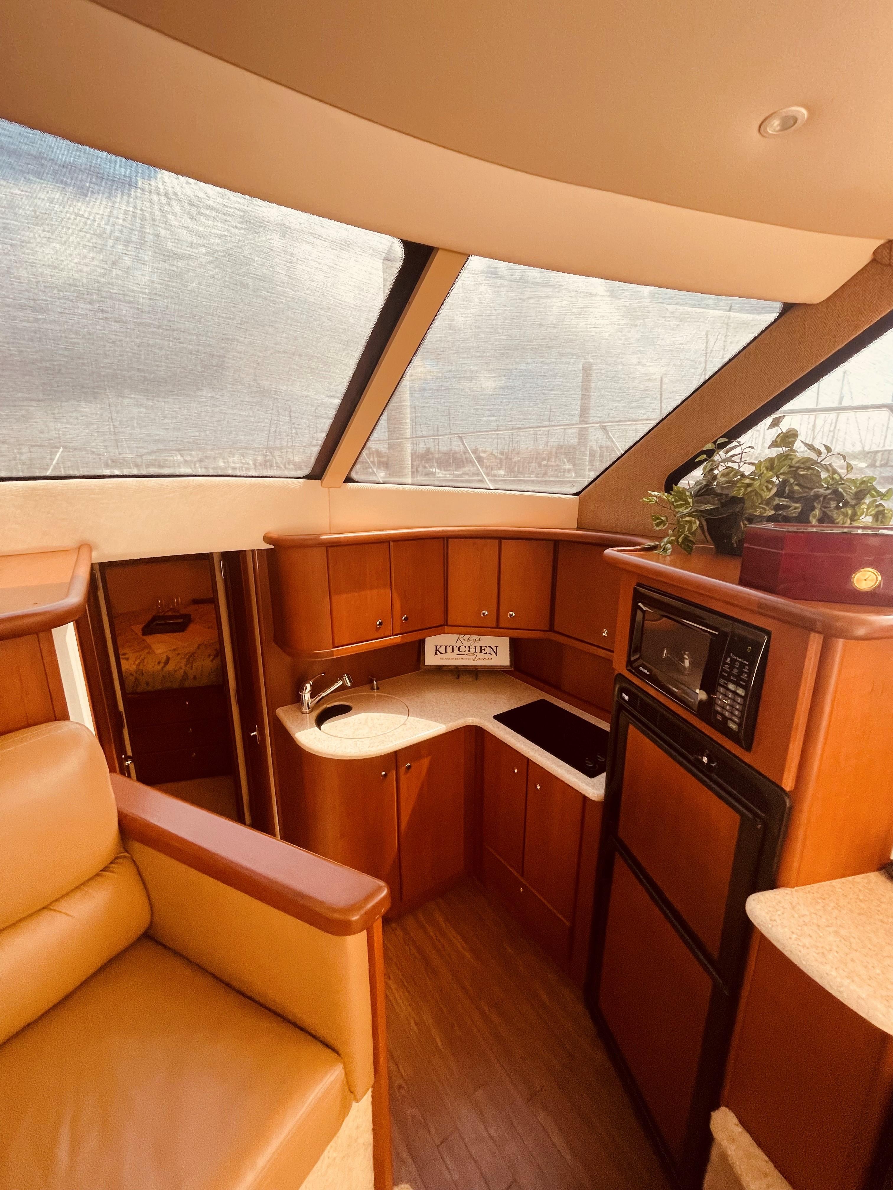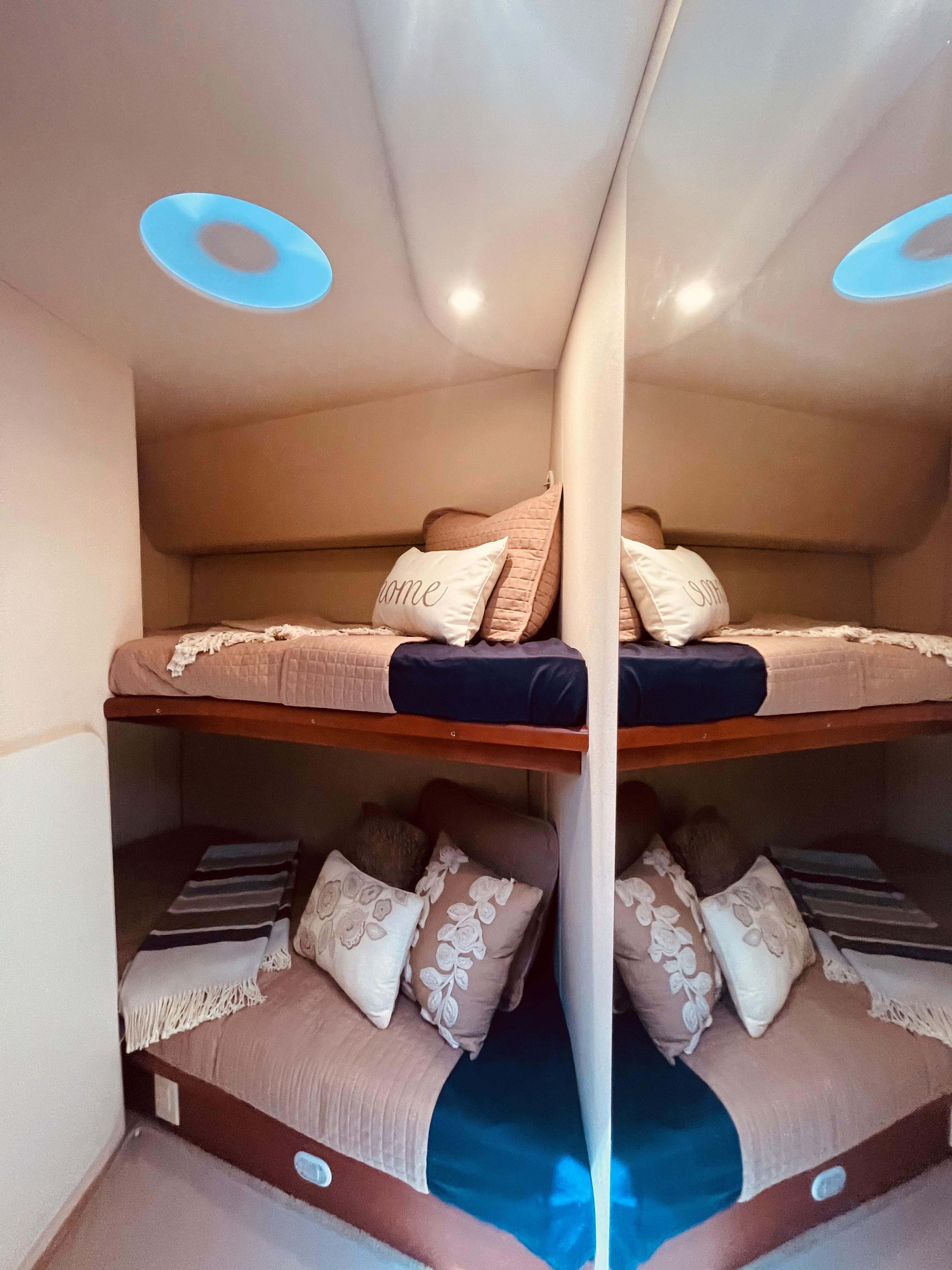 Modern lines and a proven hull grace this comfortable 2-stateroom interior, which features an innovative split head plan with a dry head and vanity to port and a separate stall shower to starboard. The cherry wood salon offers a convertible sofa and plenty of room to entertain. The oversize flybridge with pilot, companion and guest seating rounds out this value-packed model. Silverton engineers along with the help of noted designer Donald Blount & Associates have created an easily driven hull that performs well with smaller displacement engines providing better economy and increased range. Shallow propeller tunnels have lowered the drive angle to increase efficiency and reduce the draft as well. Silverton's evolution of design and 35 years of experience will deliver the best 34 Convertible ever and at a price that will make it irresistible.