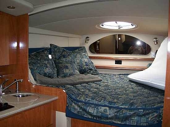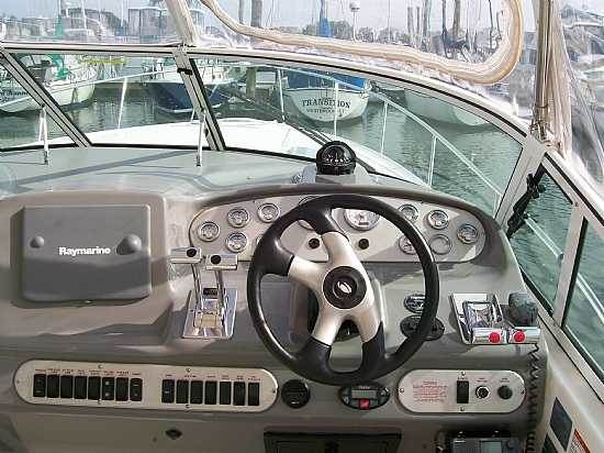 Satellite-Ready Stereo Sound System, TV, DVD Player, Seawatch 21", GPS, Fish/Depthfinder, VHF Radio, Carpeting, Full Galley with Stove, Microwave, 2 Refrigerators (one up top), H&C Water, Coffee Maker, Head, Shower, Sleeps 4+, A/C Reverse-Cycle to Heat, Humidity Sensor, Leather Couch & Seating, Lots of Storage, Hydraulic Steering, Bilge Pumps, Coast Guard Safety Package, 2 Anchors, Windlass, Halon, Swim Platform, Trim Tabs, 3 Batteries, Dockside