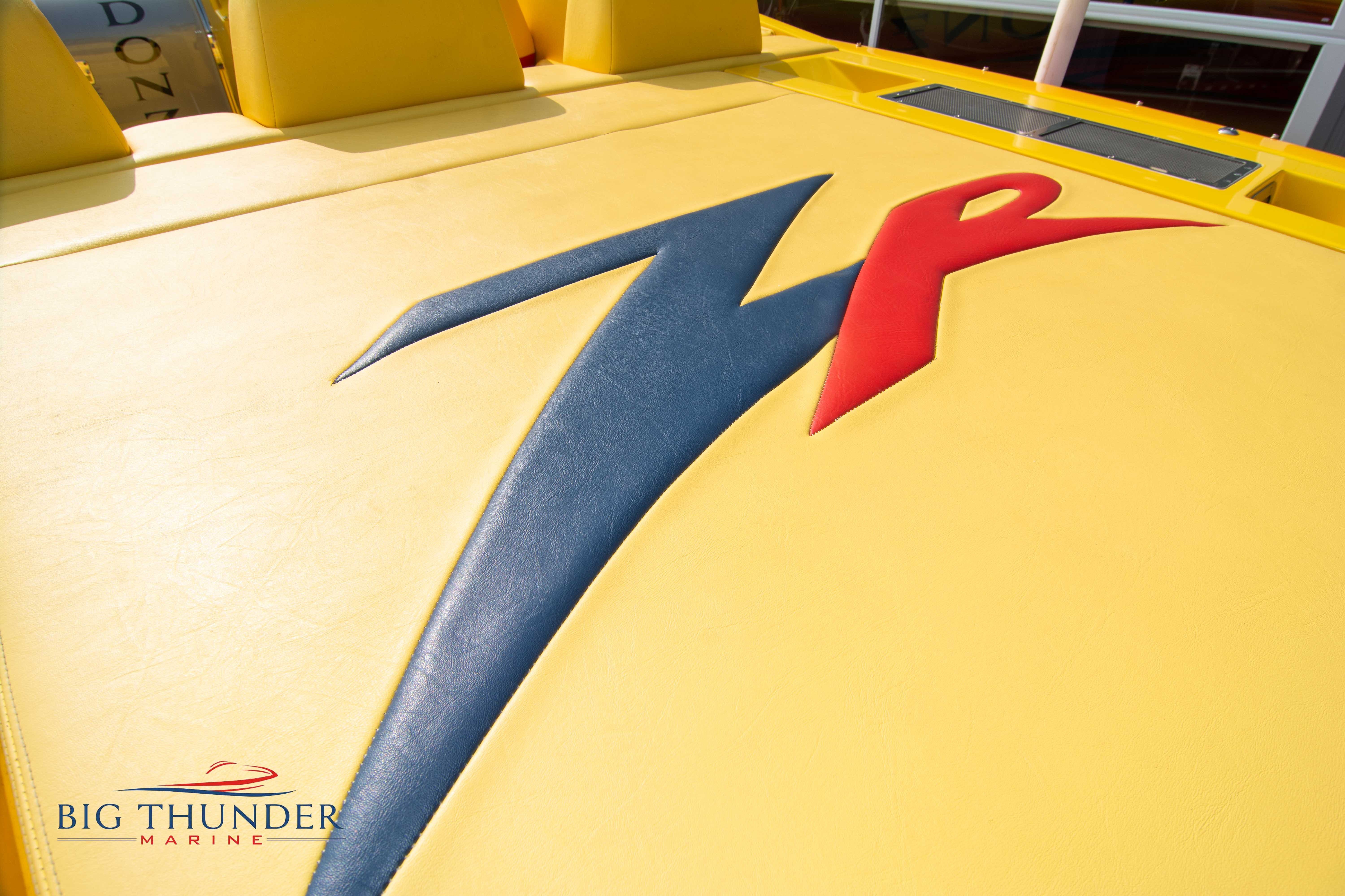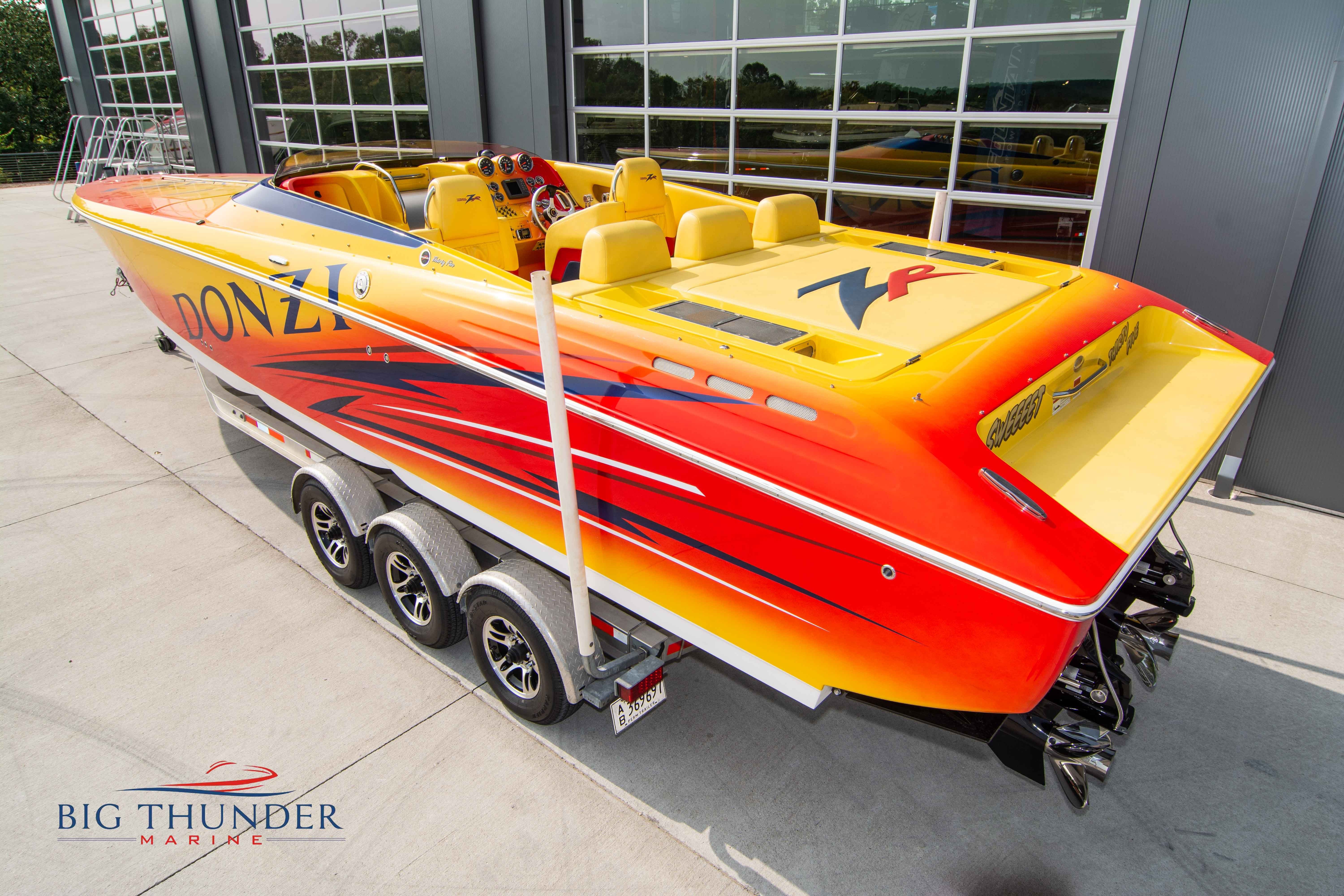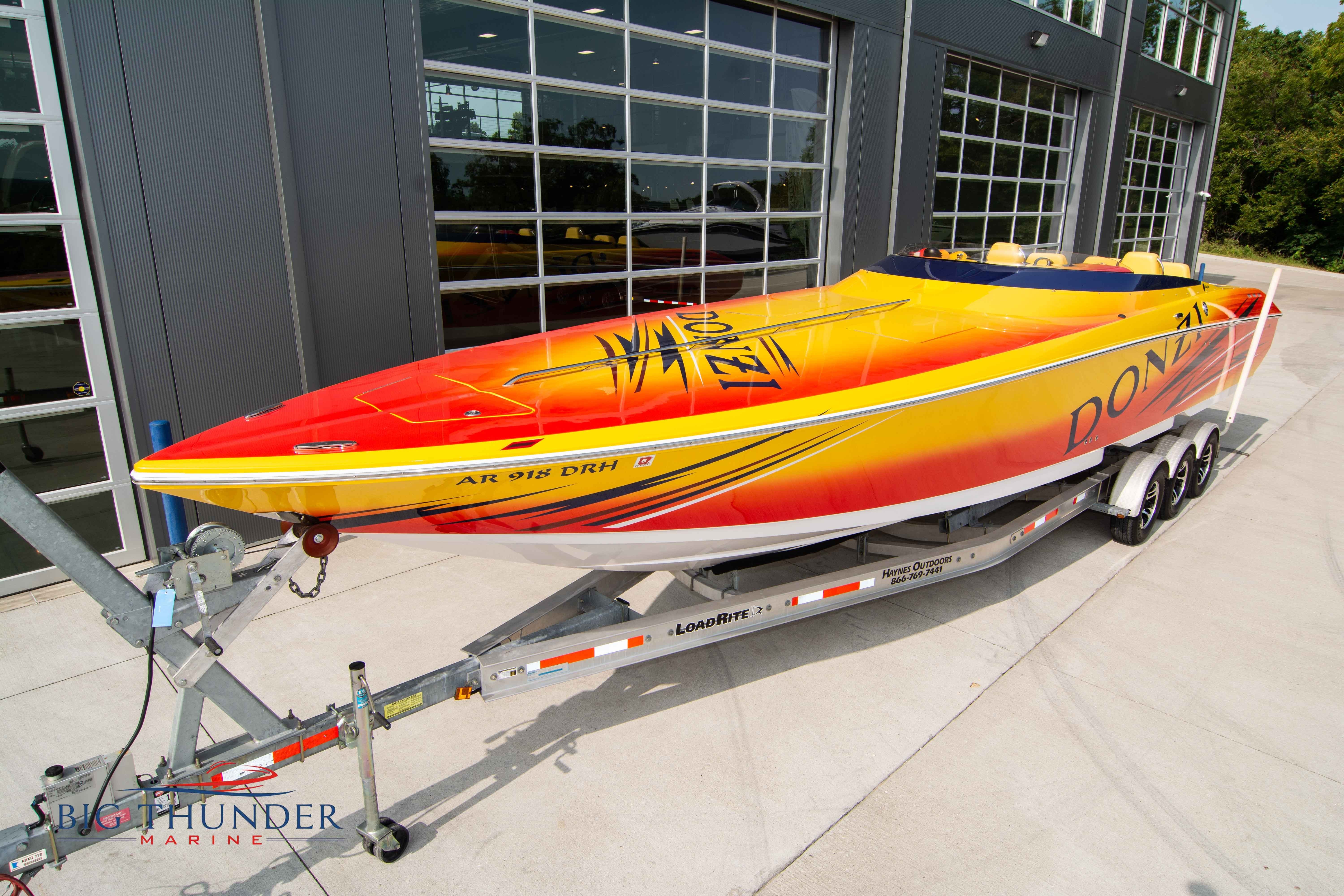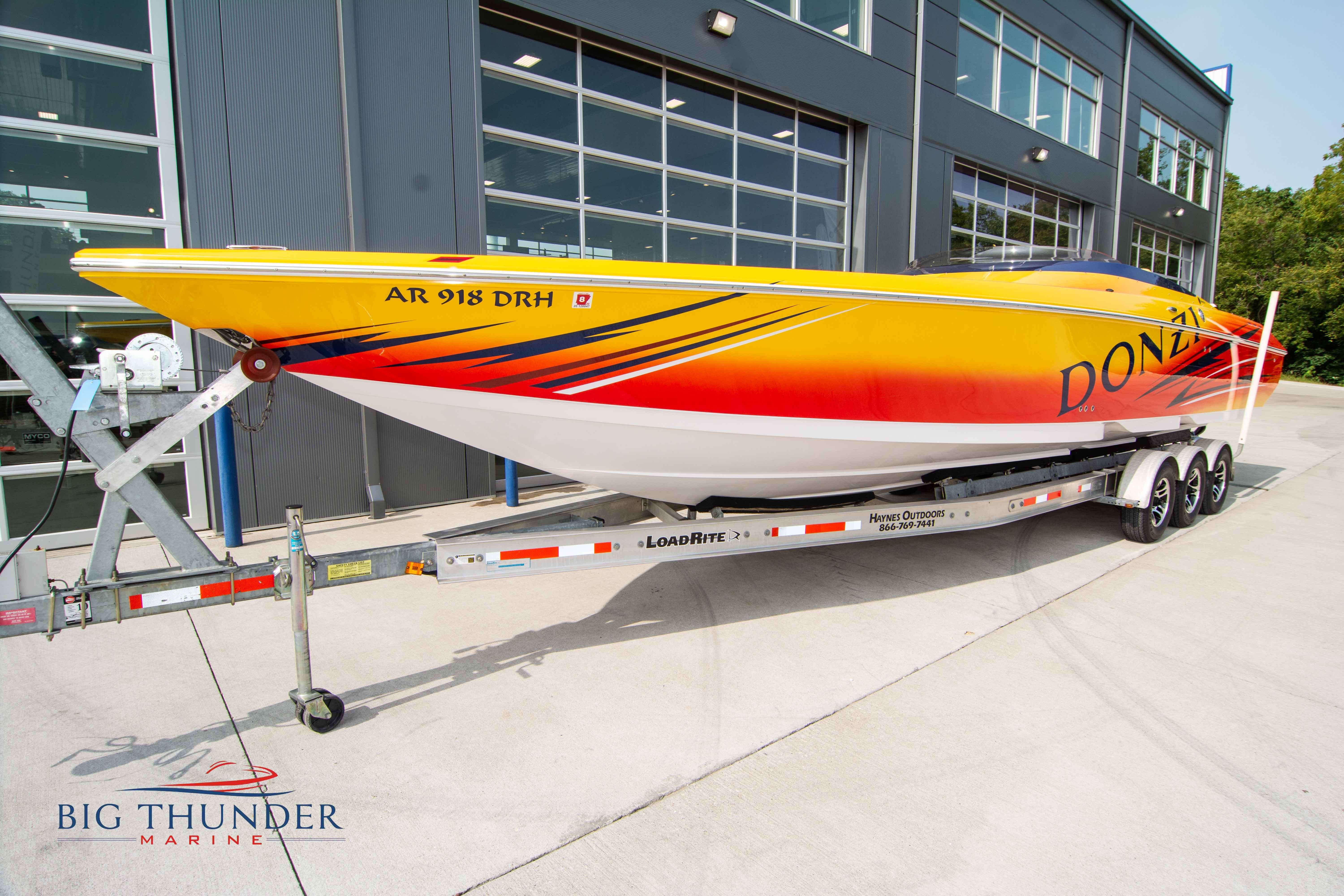 2006 Donzi 35 ZR Mercury Racing HP525EFI (435 on boat - top ends 65 hours ago - 83 mph) XR drives, 30 pitch Maximus 5 blade props, 280 K planes, mechanical drive/tab indicators, Latham hydraulic steering, Livorsi gauges, GPS speedometer, Lowrance GPS, depth sounder, halon system, silent choice exhaust, Fusion/JL Audio stereo with helm remote, electric bolsters, cockpit carpet, cockpit cover, new bimini top, cabin sink, shore power with AC/heat, battery charger, marine head, Load Rite aluminum trailer with aluminum rims included.