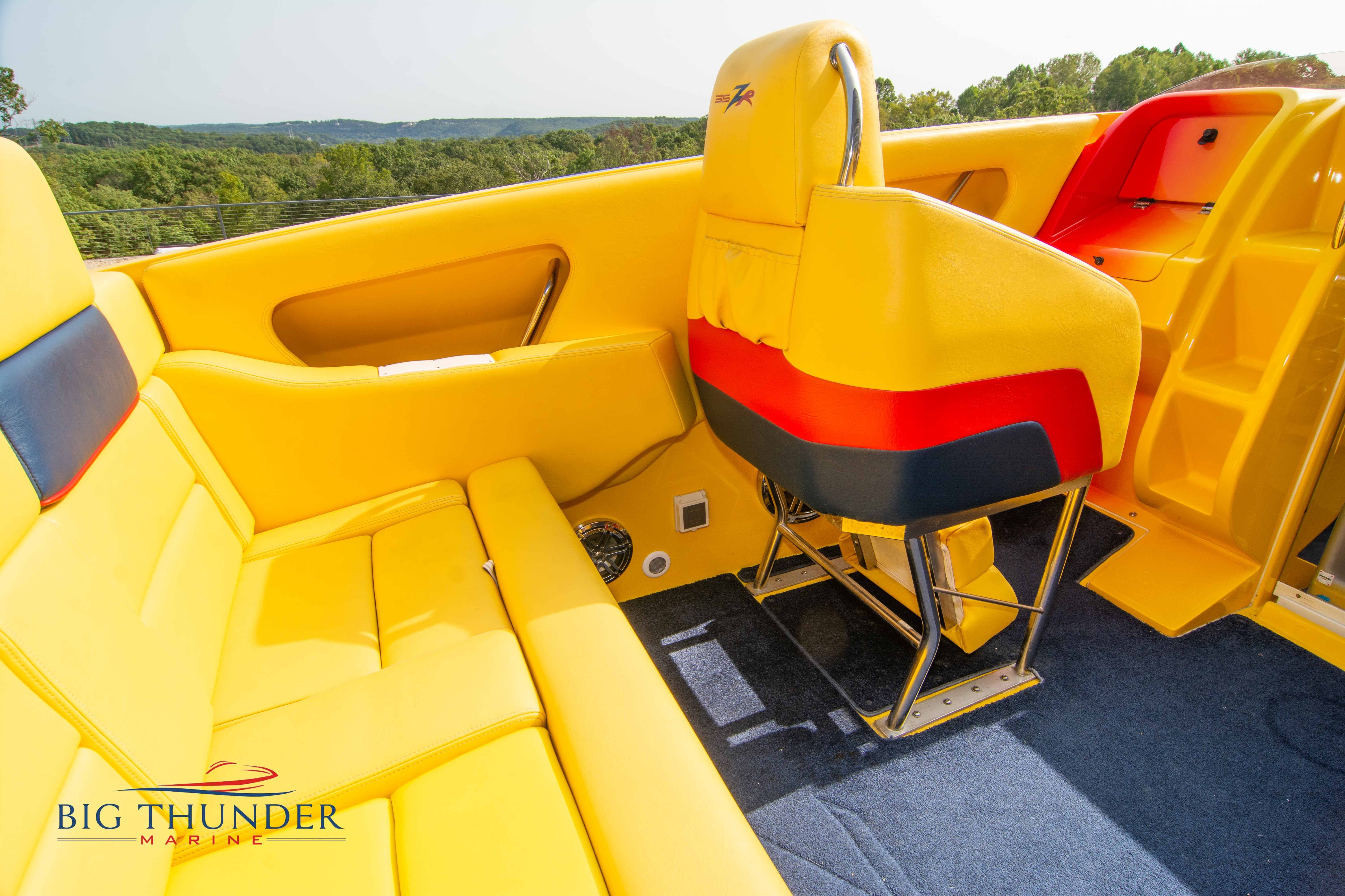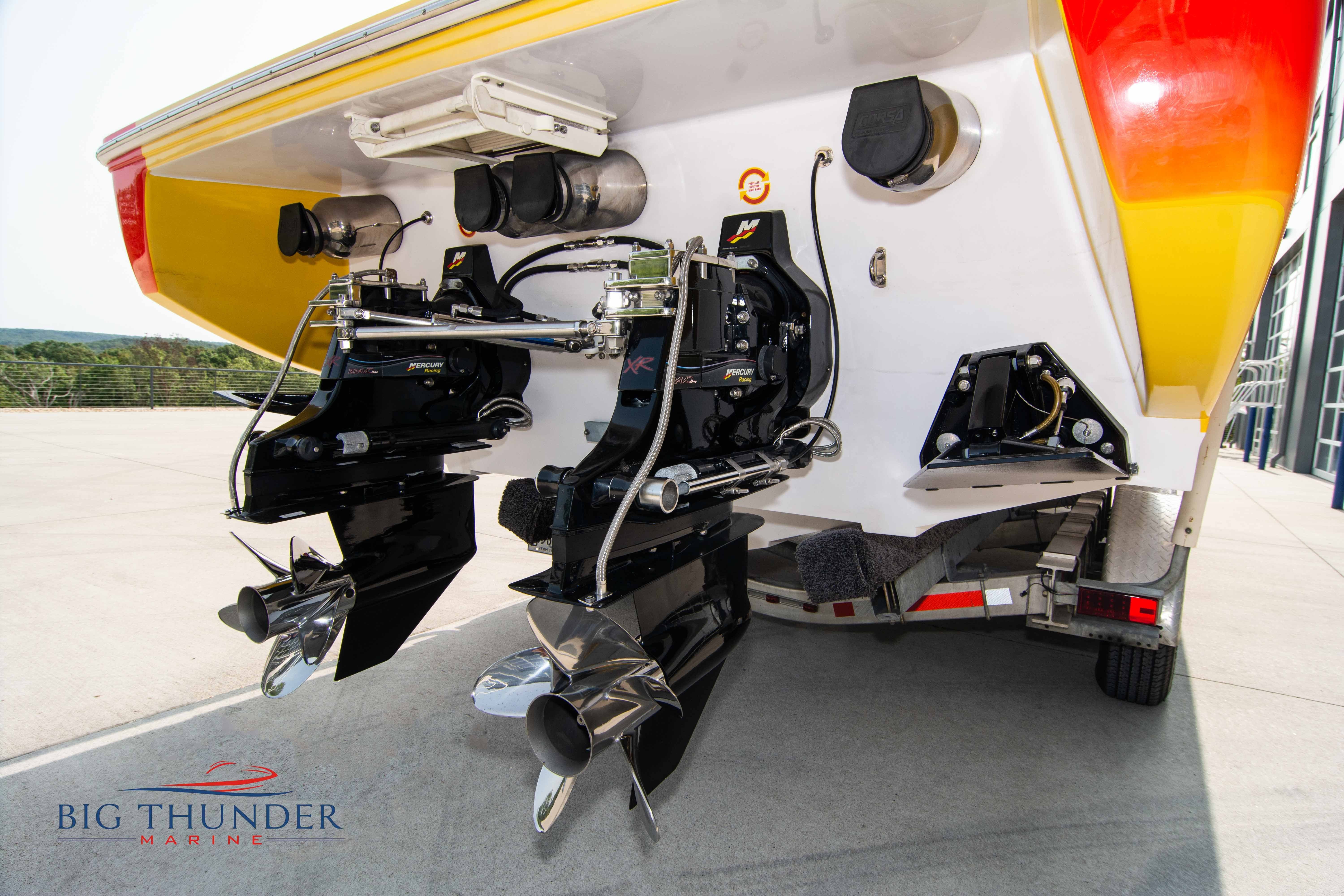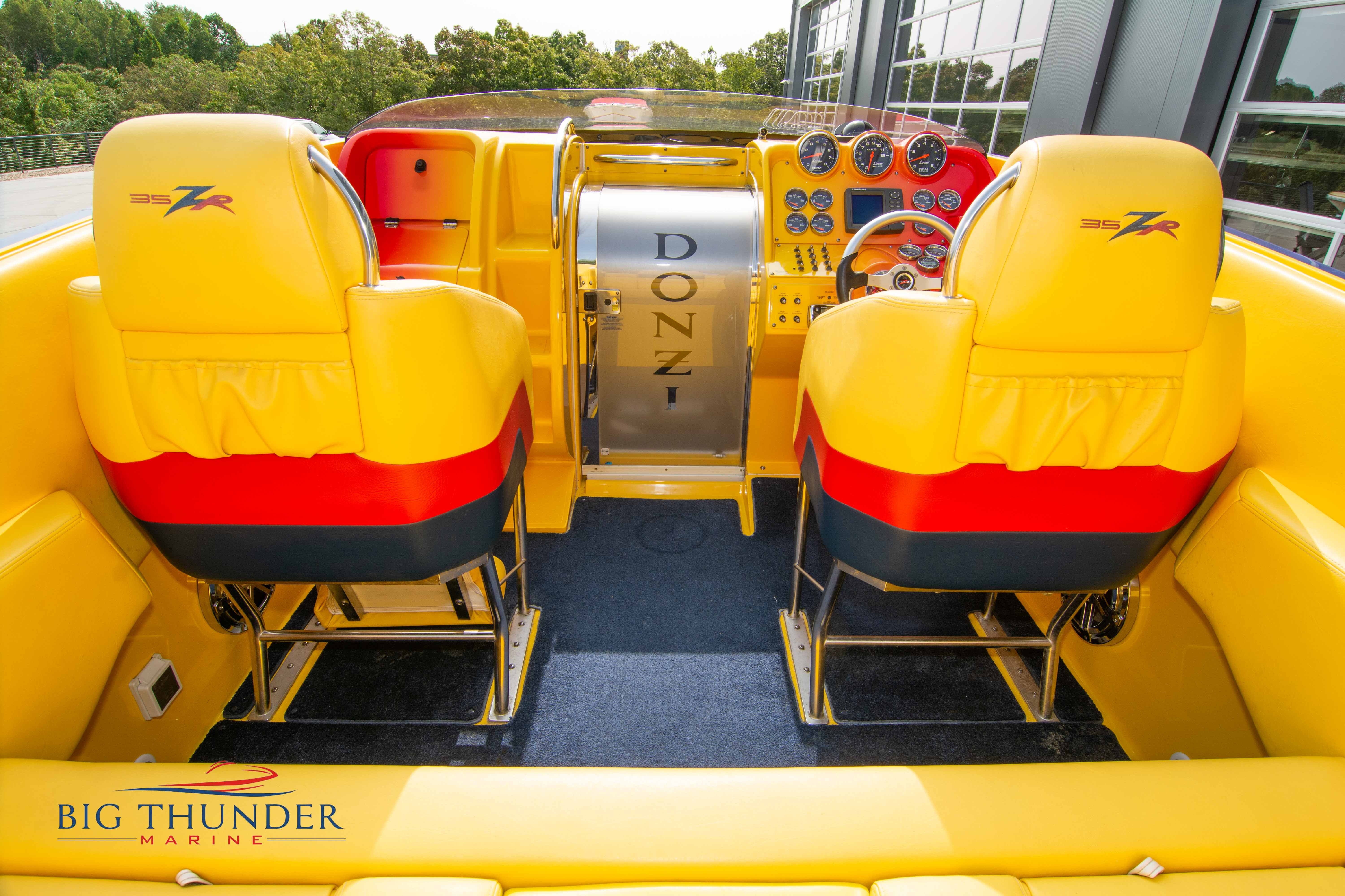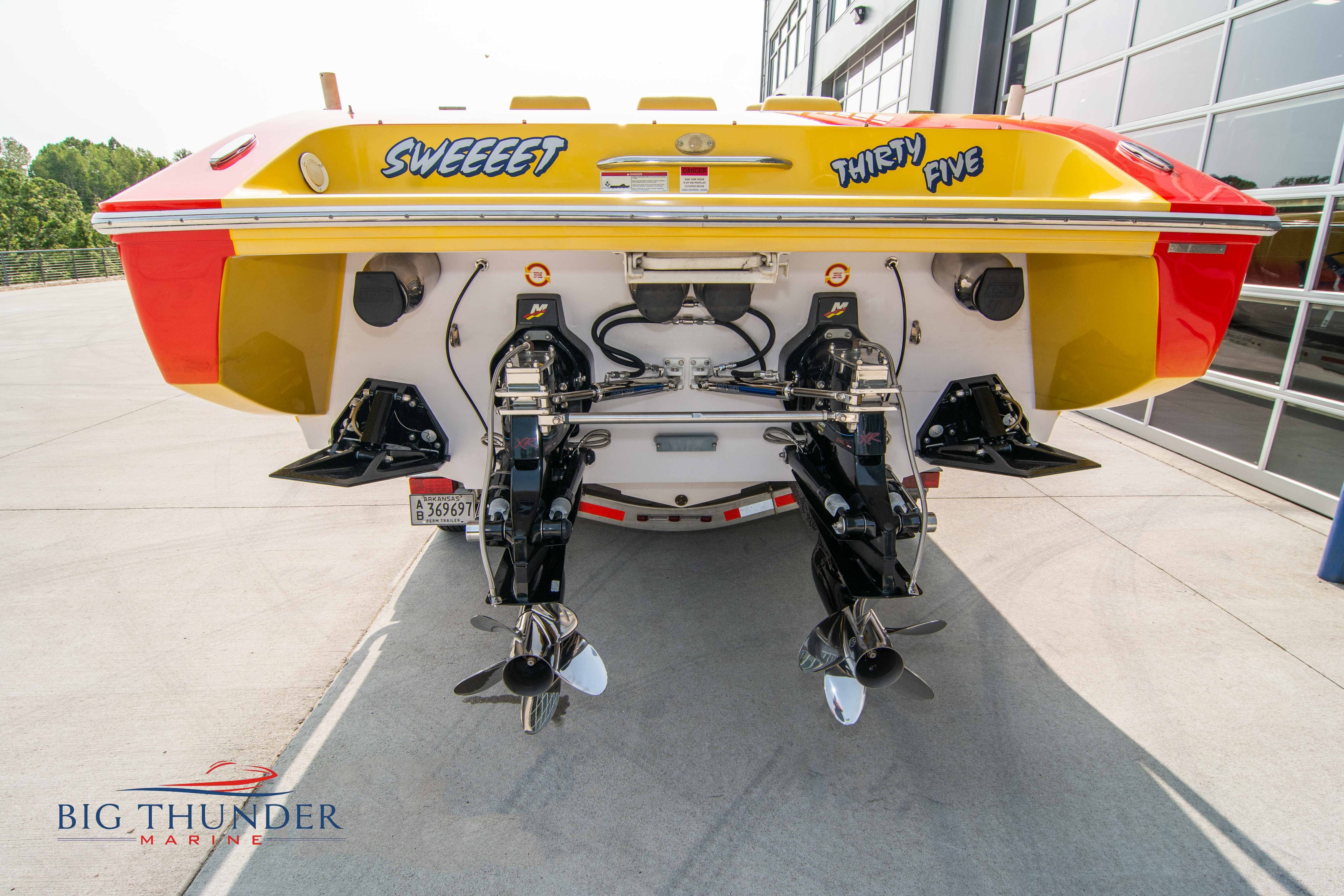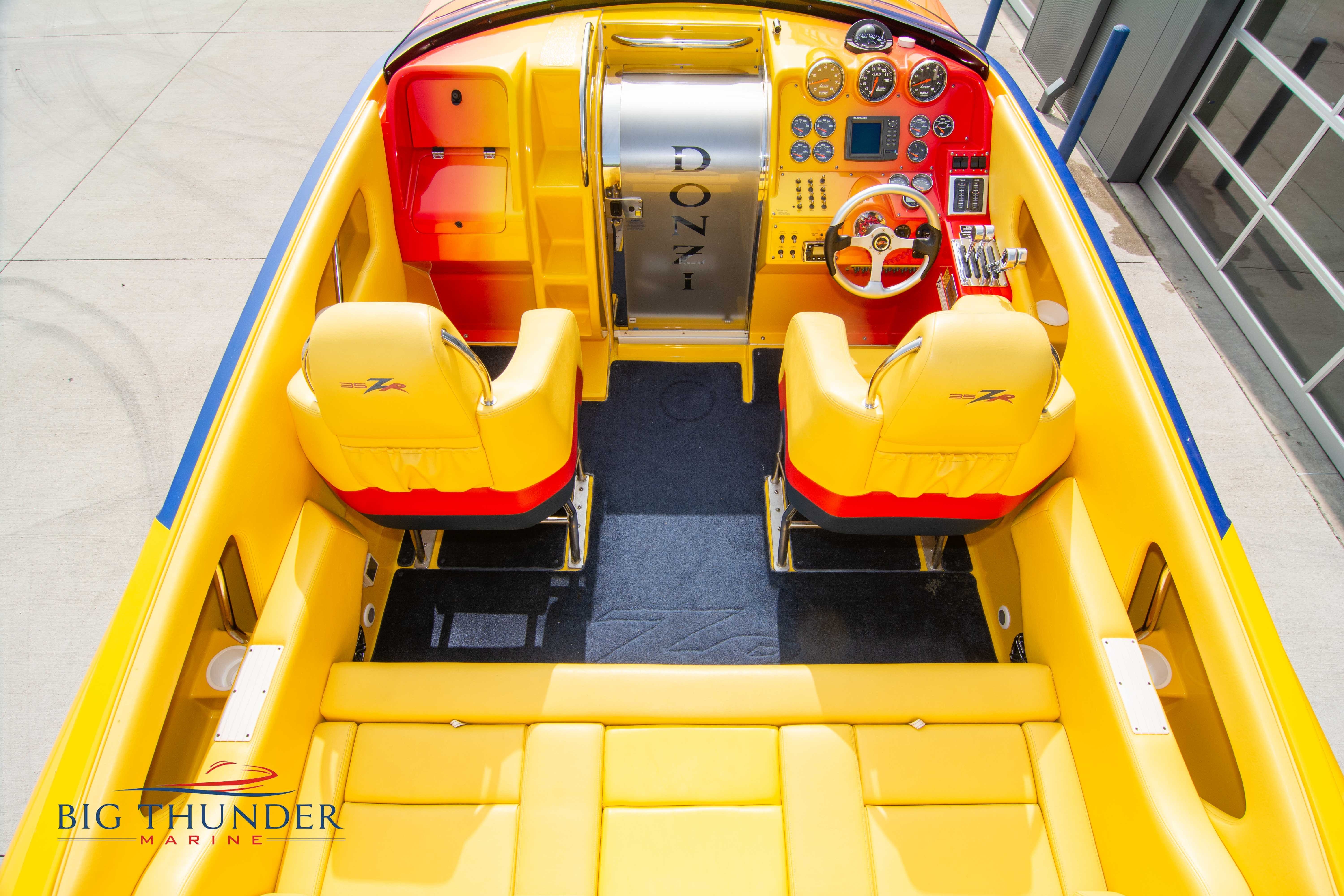 2006 Donzi 35 ZR Mercury Racing HP525EFI (435 on boat - top ends 65 hours ago - 83 mph) XR drives, 30 pitch Maximus 5 blade props, 280 K planes, mechanical drive/tab indicators, Latham hydraulic steering, Livorsi gauges, GPS speedometer, Lowrance GPS, depth sounder, halon system, silent choice exhaust, Fusion/JL Audio stereo with helm remote, electric bolsters, cockpit carpet, cockpit cover, new bimini top, cabin sink, shore power with AC/heat, battery charger, marine head, Load Rite aluminum trailer with aluminum rims included.