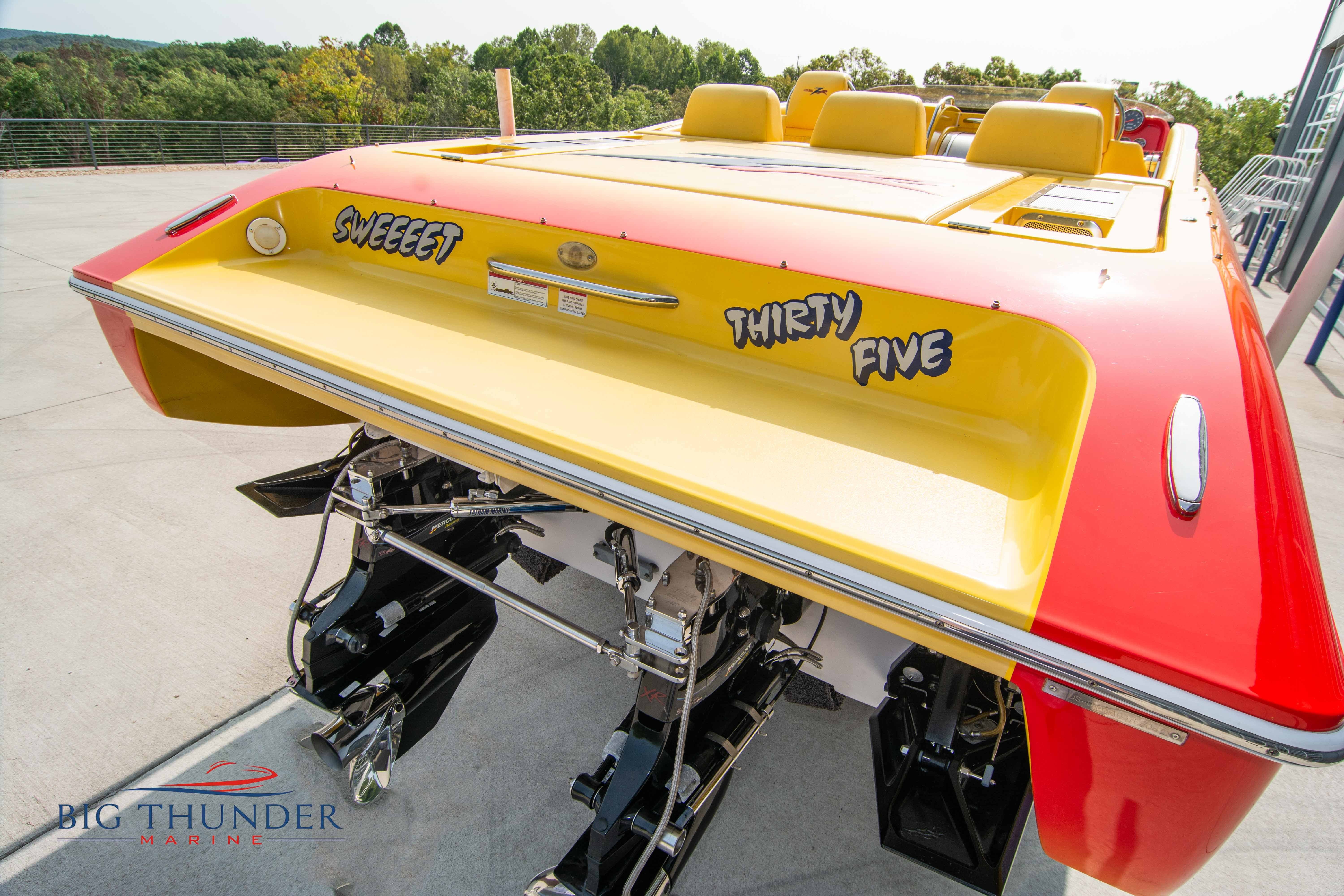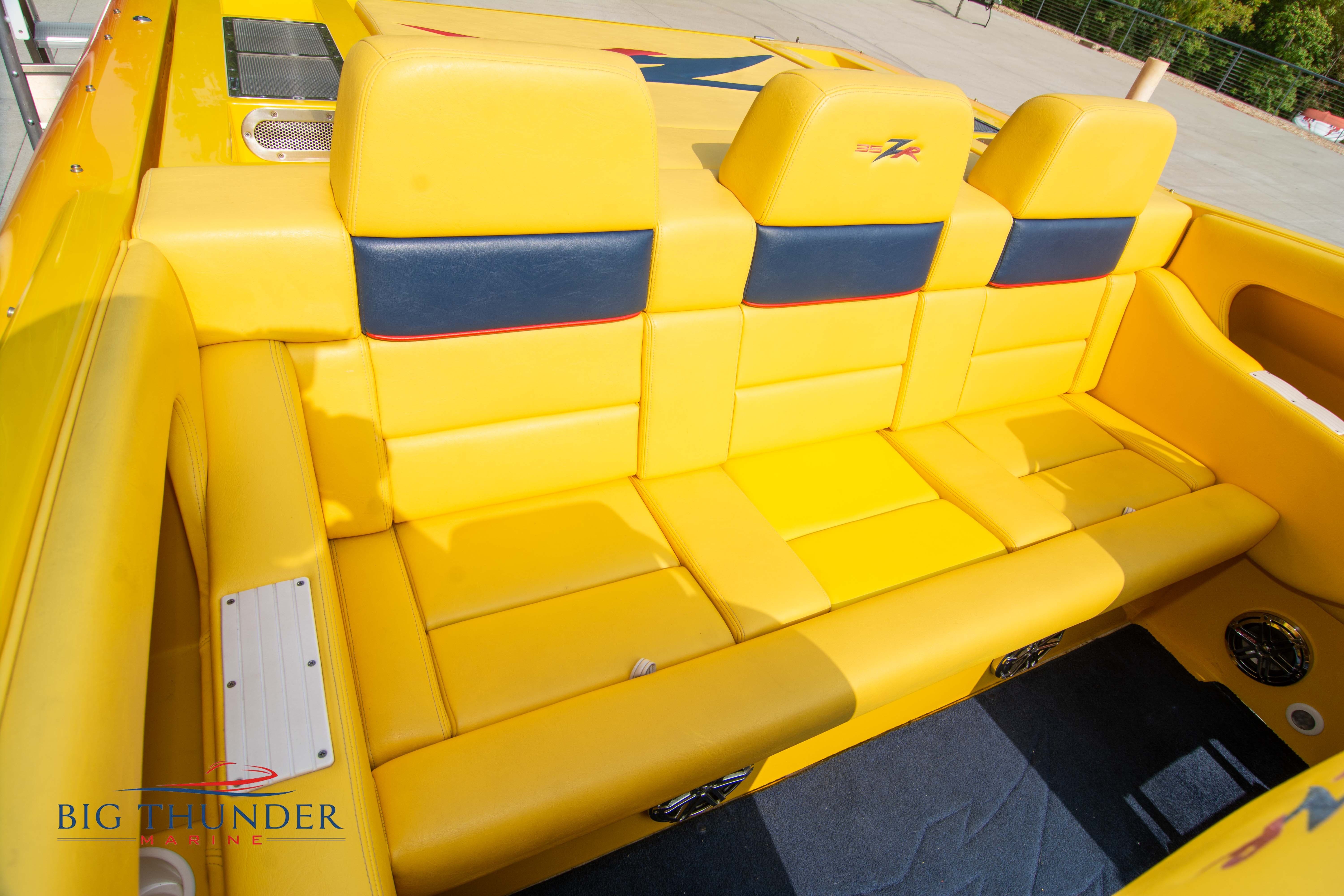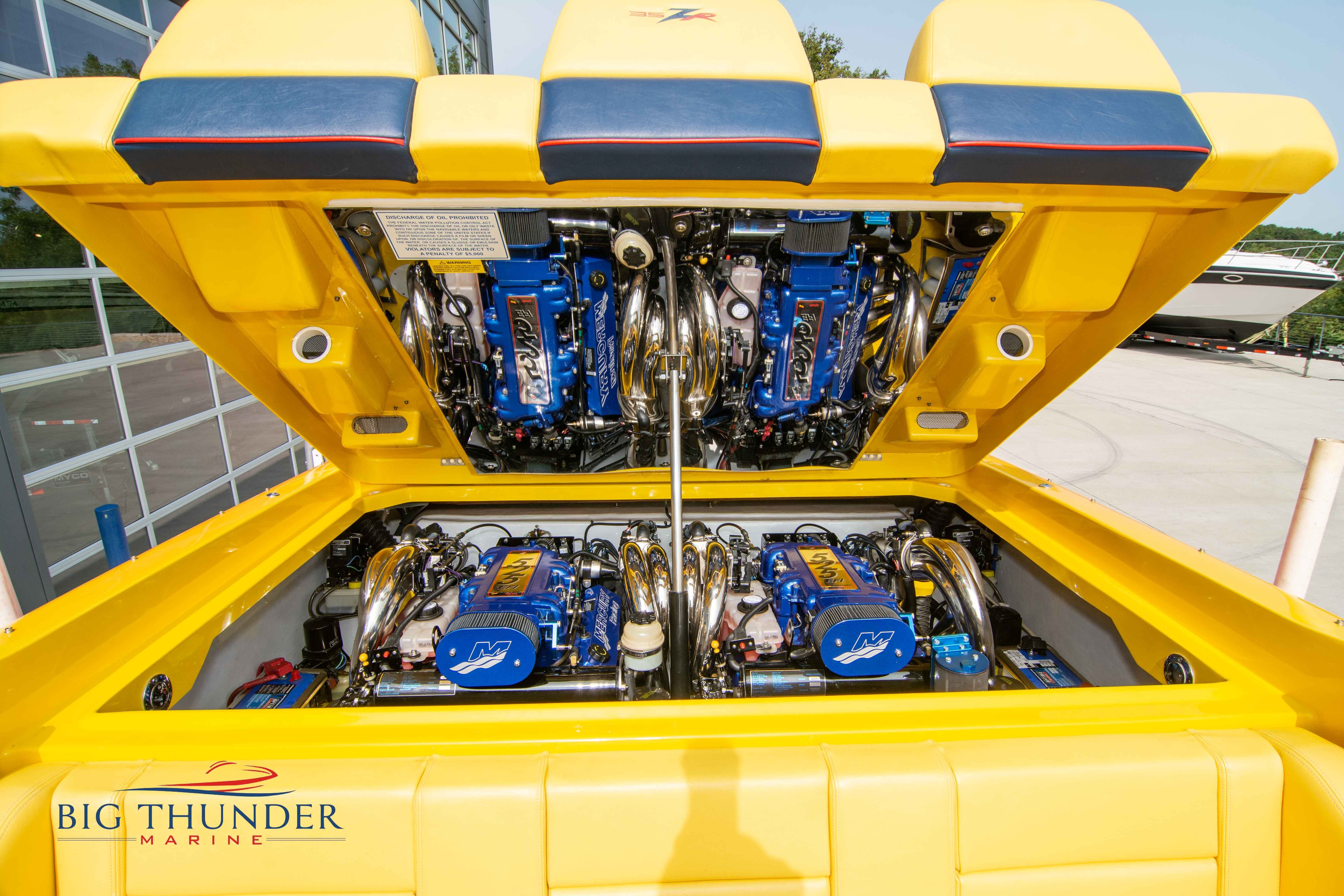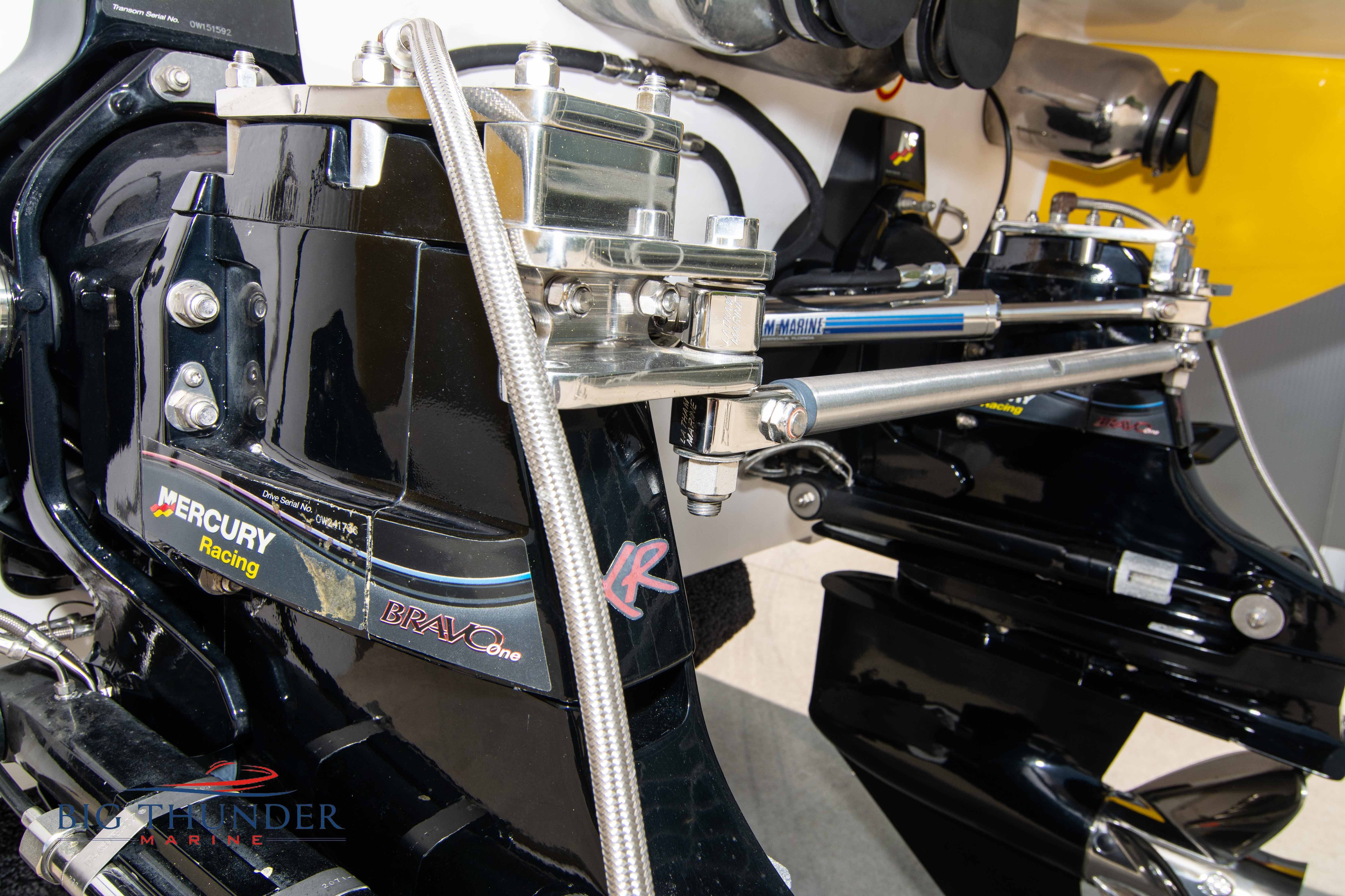 2006 Donzi 35 ZR Mercury Racing HP525EFI (435 on boat - top ends 65 hours ago - 83 mph) XR drives, 30 pitch Maximus 5 blade props, 280 K planes, mechanical drive/tab indicators, Latham hydraulic steering, Livorsi gauges, GPS speedometer, Lowrance GPS, depth sounder, halon system, silent choice exhaust, Fusion/JL Audio stereo with helm remote, electric bolsters, cockpit carpet, cockpit cover, new bimini top, cabin sink, shore power with AC/heat, battery charger, marine head, Load Rite aluminum trailer with aluminum rims included.