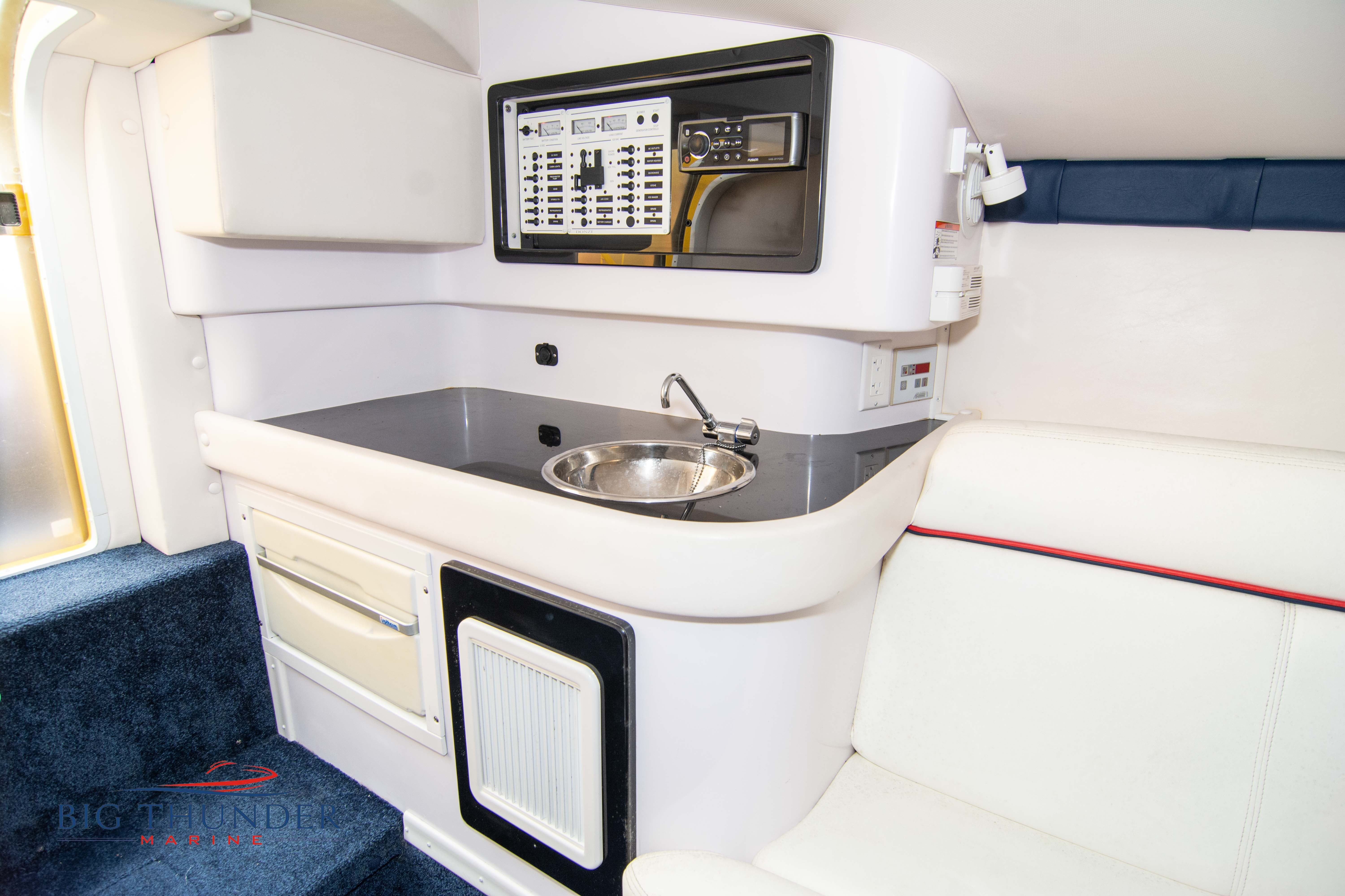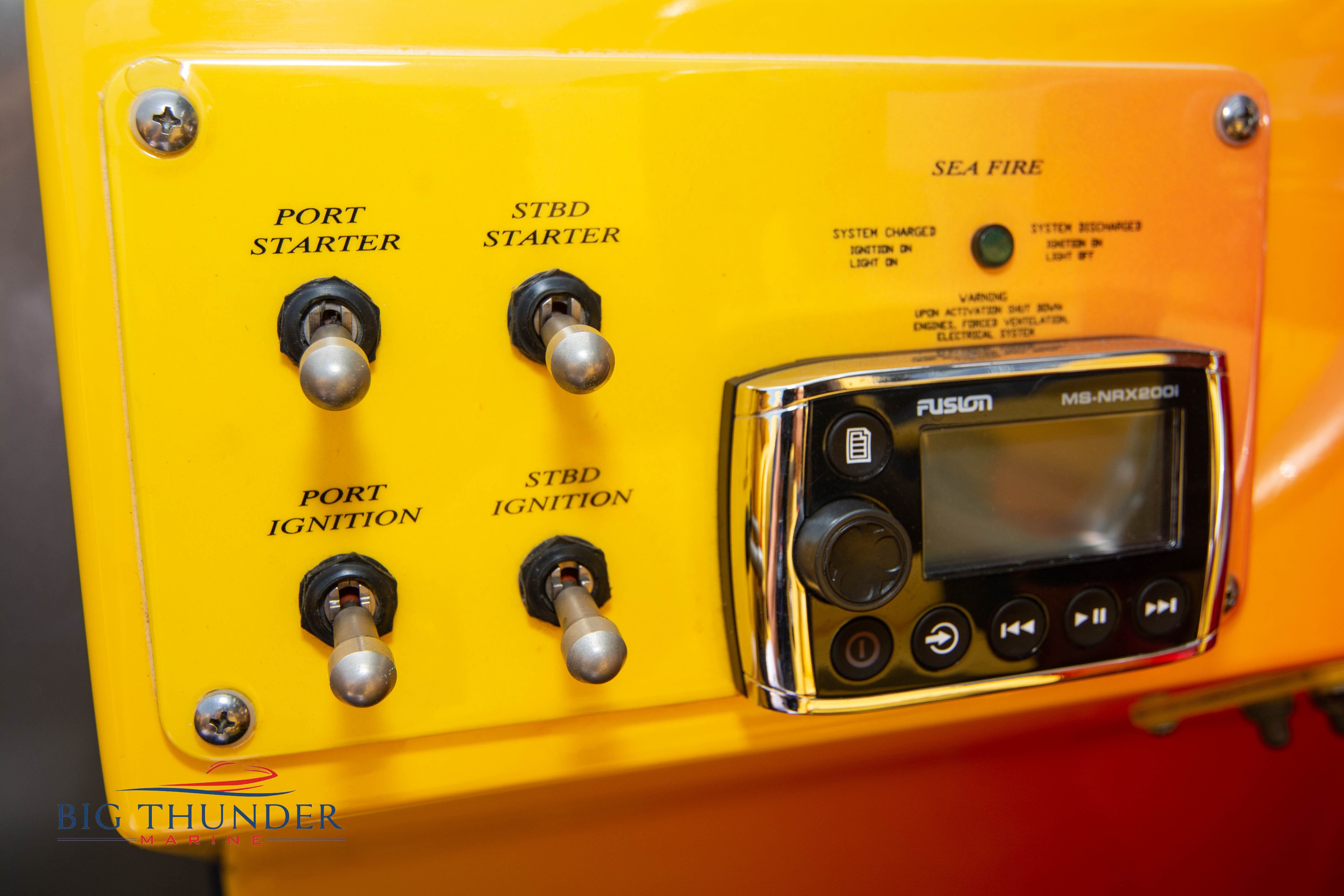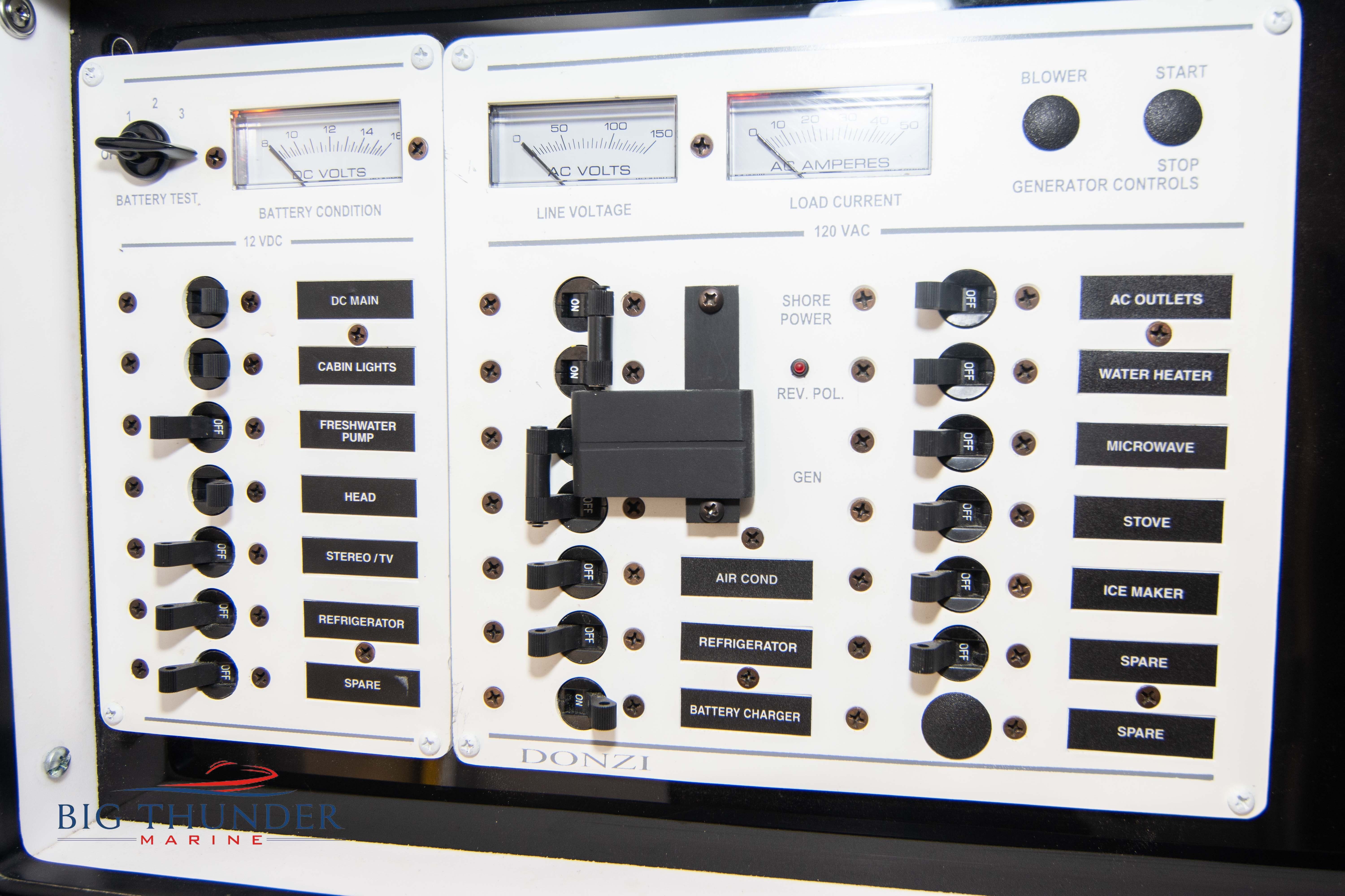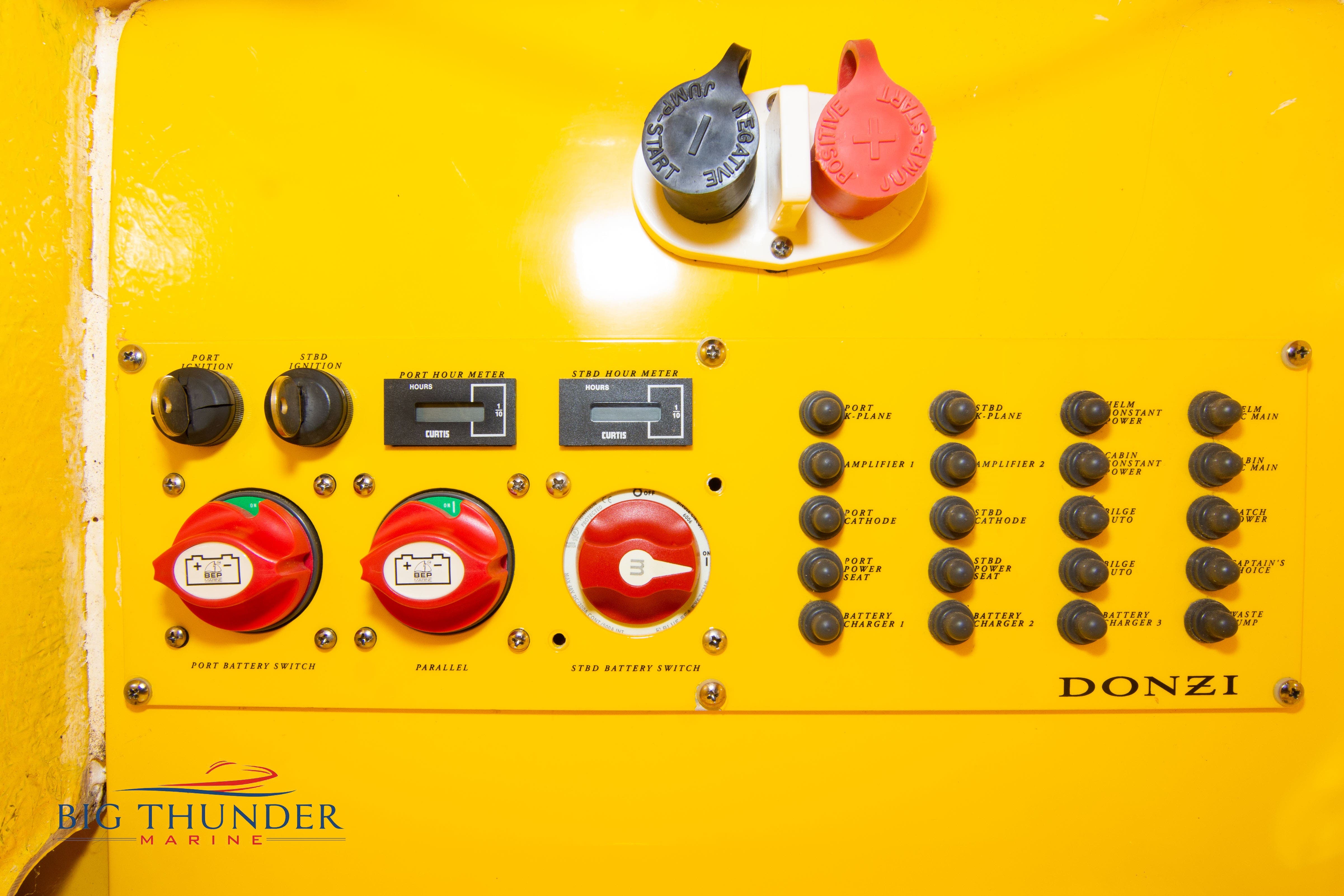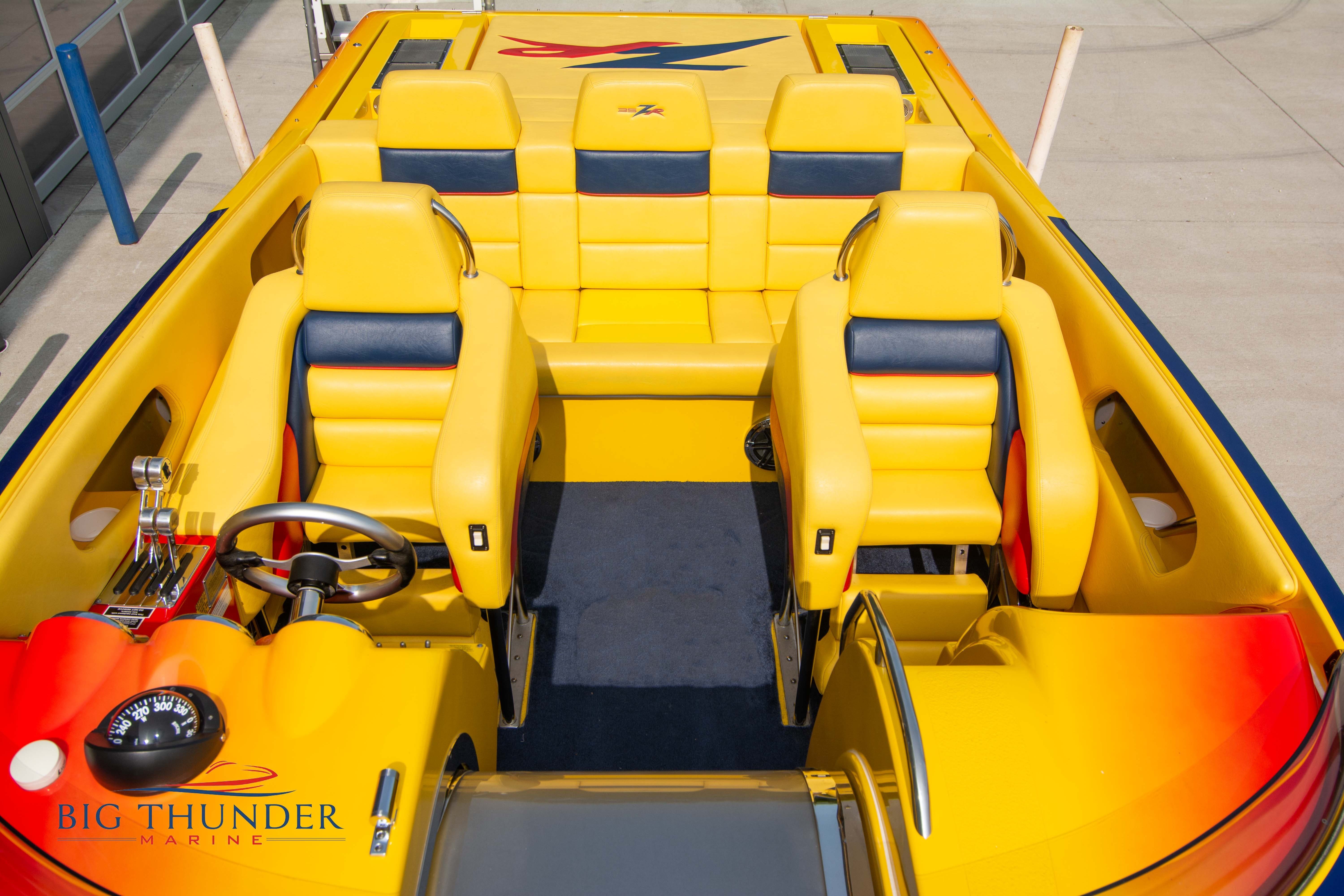 2006 Donzi 35 ZR Mercury Racing HP525EFI (435 on boat - top ends 65 hours ago - 83 mph) XR drives, 30 pitch Maximus 5 blade props, 280 K planes, mechanical drive/tab indicators, Latham hydraulic steering, Livorsi gauges, GPS speedometer, Lowrance GPS, depth sounder, halon system, silent choice exhaust, Fusion/JL Audio stereo with helm remote, electric bolsters, cockpit carpet, cockpit cover, new bimini top, cabin sink, shore power with AC/heat, battery charger, marine head, Load Rite aluminum trailer with aluminum rims included.