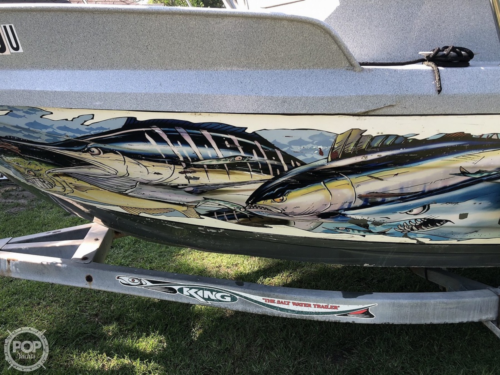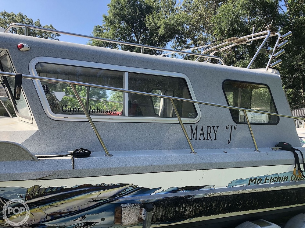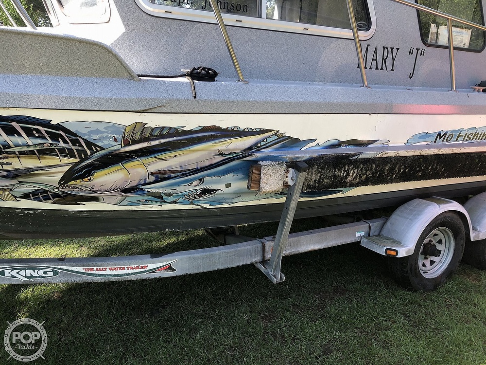 All Aluminum boat with graphics on the side that can easily come off.You can take this one 90 miles off shore or more without any worries of troubles