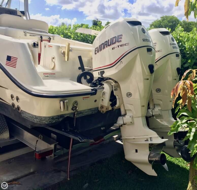 This boat is located in Miami, Florida and is in great condition. She is also equipped with twin Evinrude engines that have 1,570 hours.