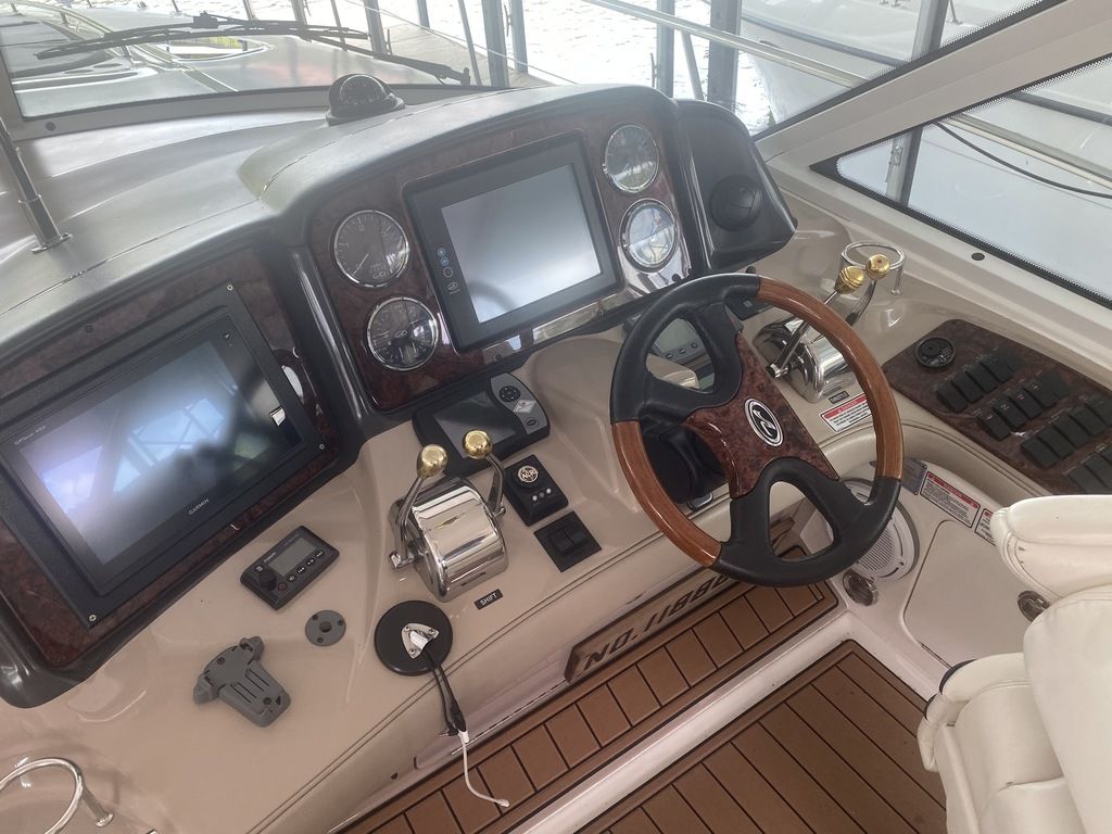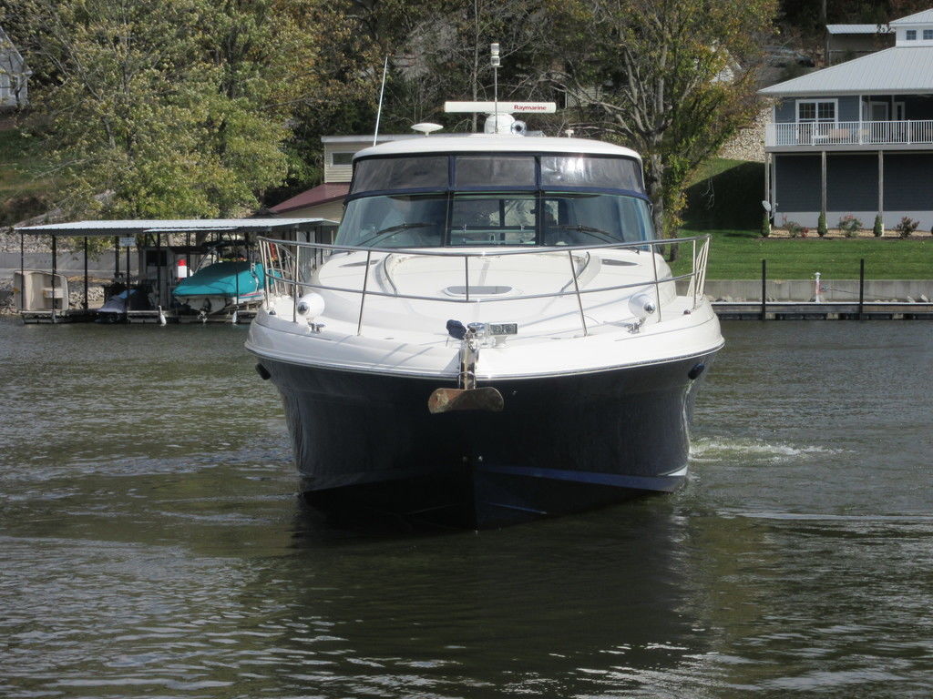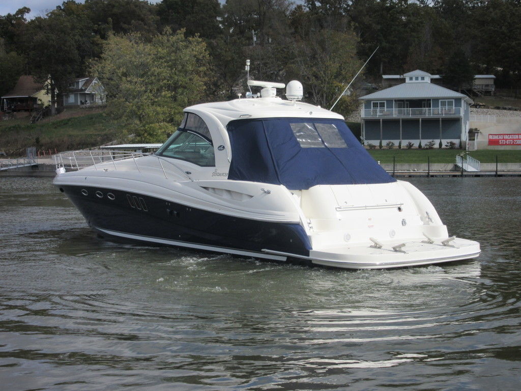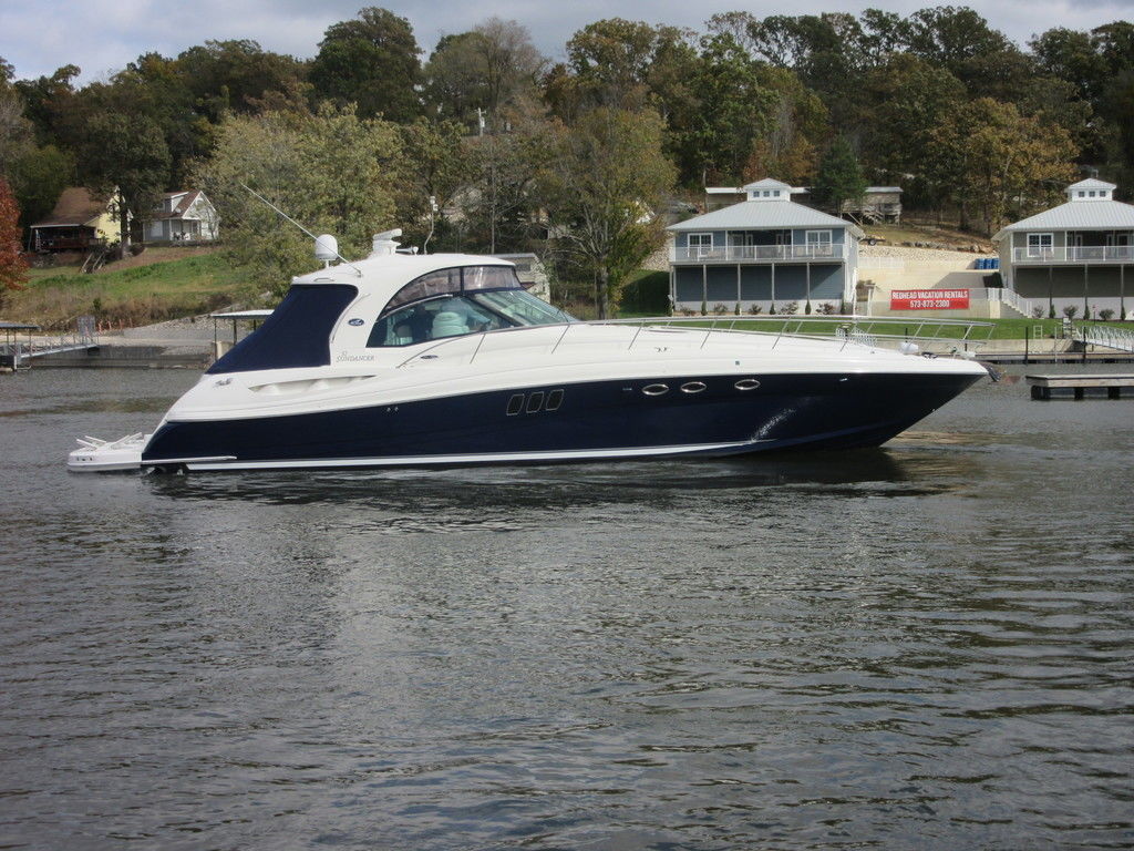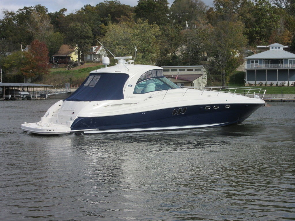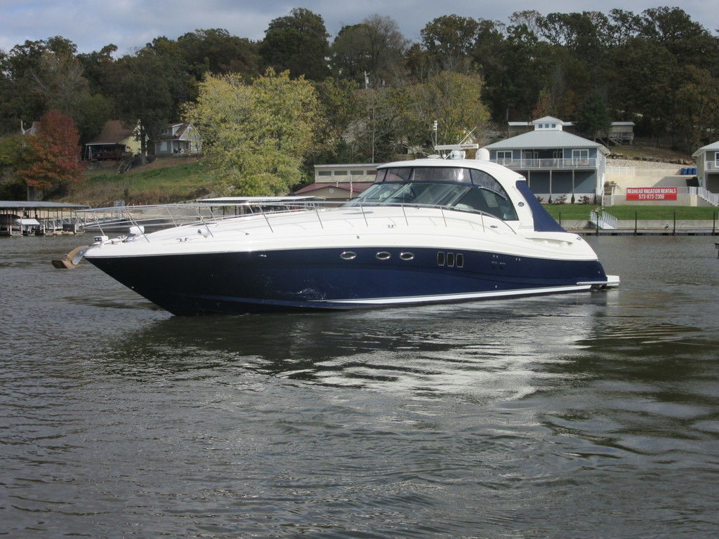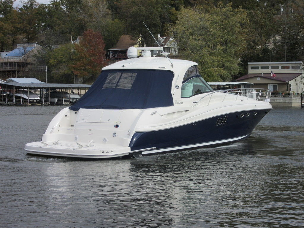 2006 FRESH WATER ONLY 2 OWNER Sea Ray 52 Sundancer powered by twin Cummins QSM-11 Diesel V-drives with 870 hours, Onan diesel generator with 2803 hours, bow thruster, hydraulic swim platform, cockpit A/C & heat, Smartcraft, Raymarine E120 GPS/Chartplotter/Radar with 4kW open array, Raymarine auto pilot, VHF radio, Sea Ray Navigator II GPS/Chartplotter, Fusion/JL Audio stereo system, cockpit TV, wetbar with refrigerator, ice maker, and sink, remote spotlight, two burner stove, coffee maker, microwave/convection oven, under counter refrigerator and freezer, and sink. Trac Vision satellite TV, Salon 30” LCD flatscreen with Bose Lifestyle sound system, 17” LCD TV/DVD combo in master stateroom, two 14” LCD TV/DVD combos, two full heads with Vacuflush toilets and full showers, central vacuum system, washer/dryer, Cablemaster Glenndinning 50 Amp 75’ shore power cord, and windlass anchor. September 2017 new bottom paint, buff and wax, new hull stripes, new props, original props included for spares, 700 hour service performed by Mid-South Cummins. All trades considered, financing and transportation available.