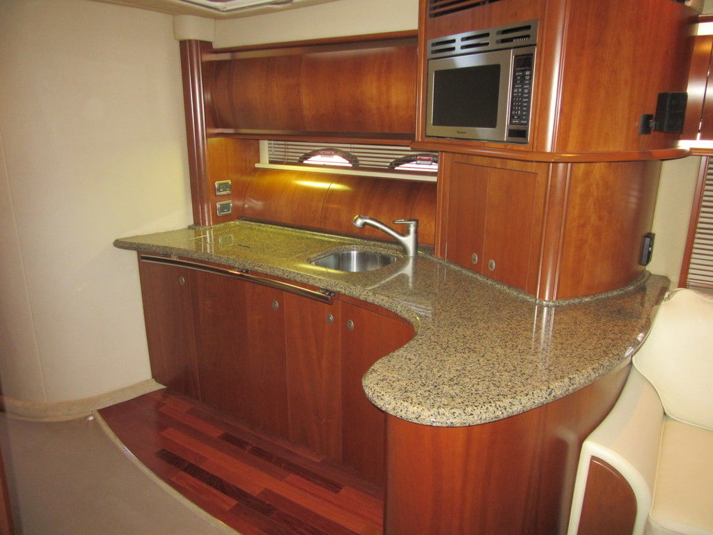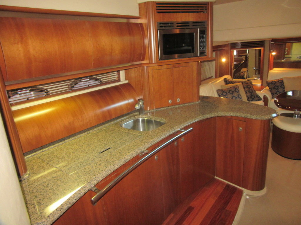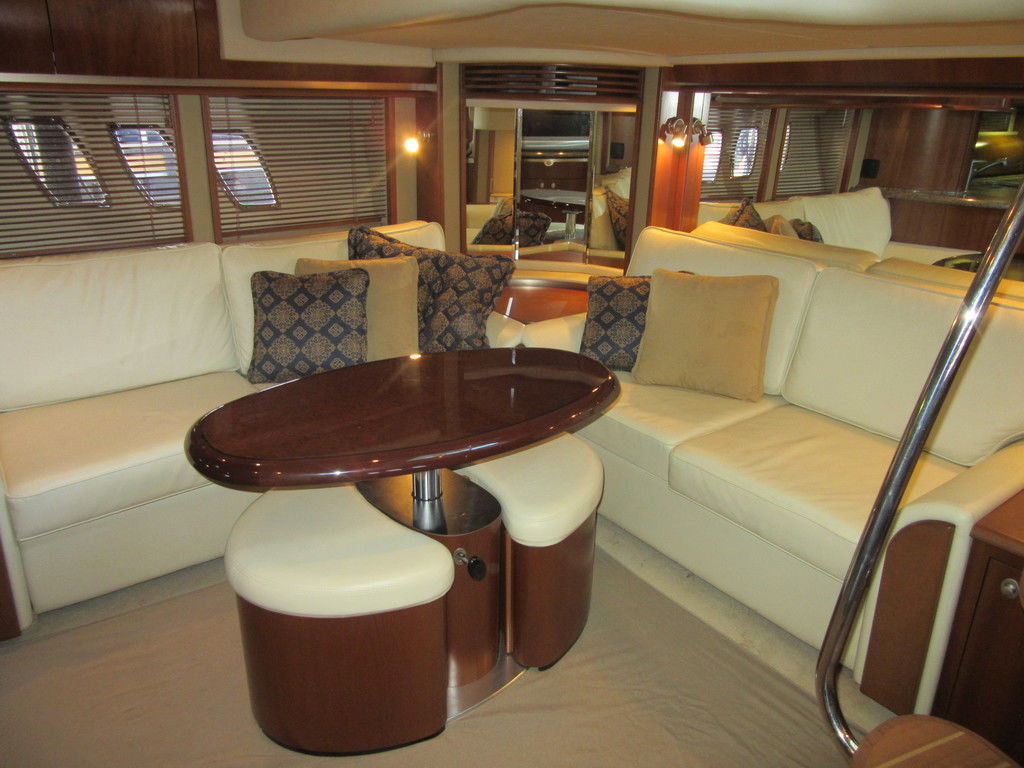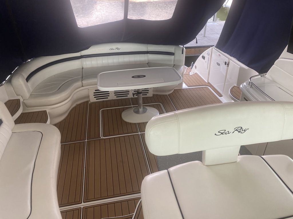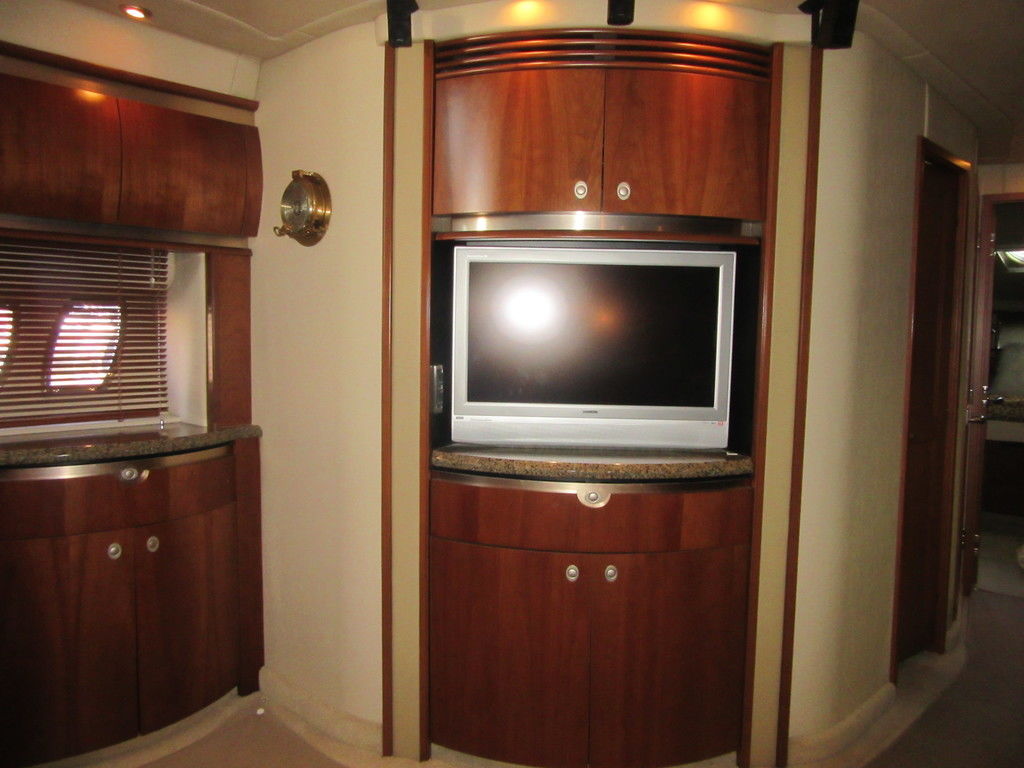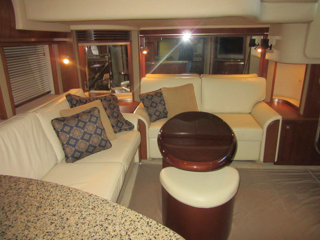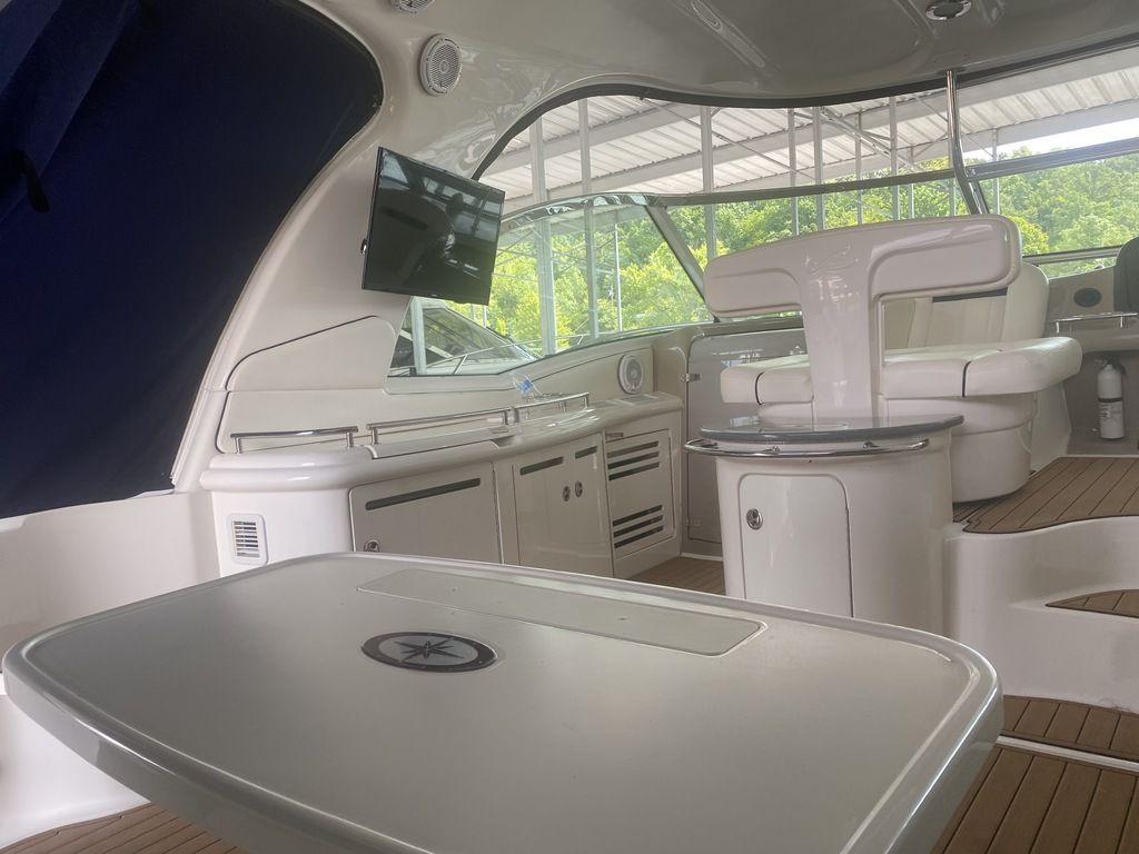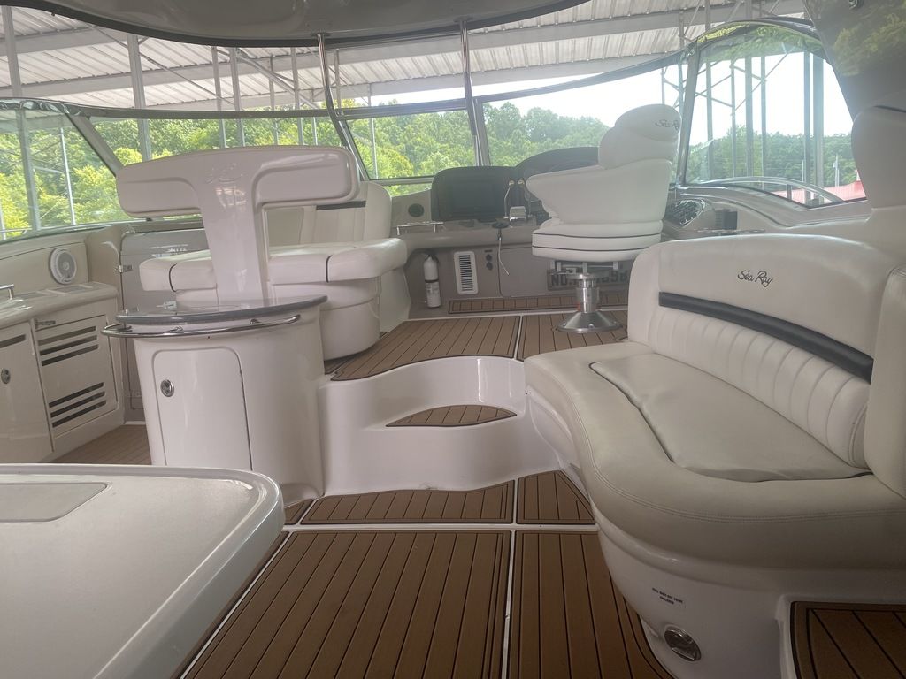2006 FRESH WATER ONLY 2 OWNER Sea Ray 52 Sundancer powered by twin Cummins QSM-11 Diesel V-drives with 870 hours, Onan diesel generator with 2803 hours, bow thruster, hydraulic swim platform, cockpit A/C & heat, Smartcraft, Raymarine E120 GPS/Chartplotter/Radar with 4kW open array, Raymarine auto pilot, VHF radio, Sea Ray Navigator II GPS/Chartplotter, Fusion/JL Audio stereo system, cockpit TV, wetbar with refrigerator, ice maker, and sink, remote spotlight, two burner stove, coffee maker, microwave/convection oven, under counter refrigerator and freezer, and sink. Trac Vision satellite TV, Salon 30” LCD flatscreen with Bose Lifestyle sound system, 17” LCD TV/DVD combo in master stateroom, two 14” LCD TV/DVD combos, two full heads with Vacuflush toilets and full showers, central vacuum system, washer/dryer, Cablemaster Glenndinning 50 Amp 75’ shore power cord, and windlass anchor. September 2017 new bottom paint, buff and wax, new hull stripes, new props, original props included for spares, 700 hour service performed by Mid-South Cummins. All trades considered, financing and transportation available.