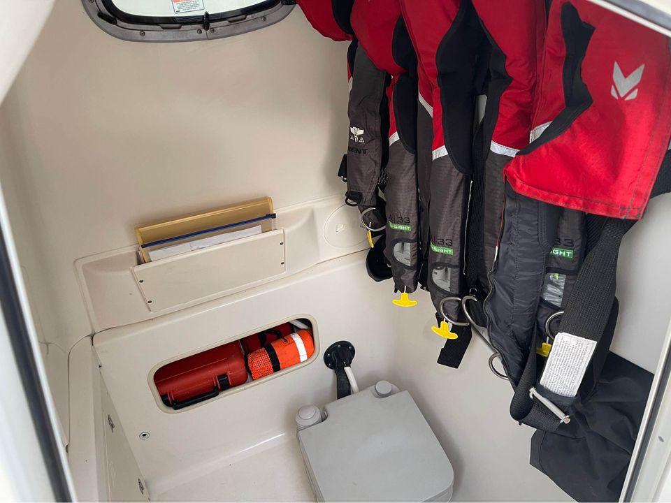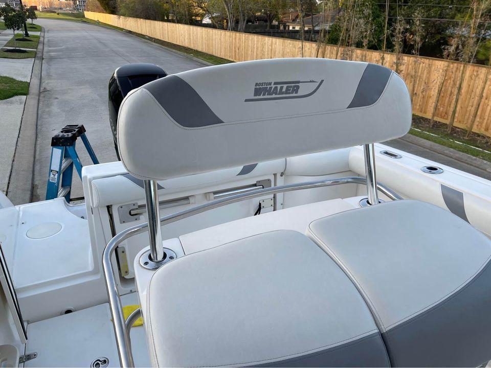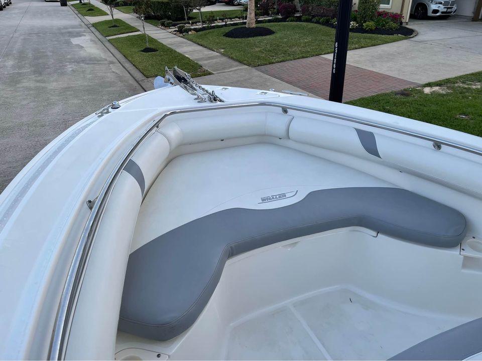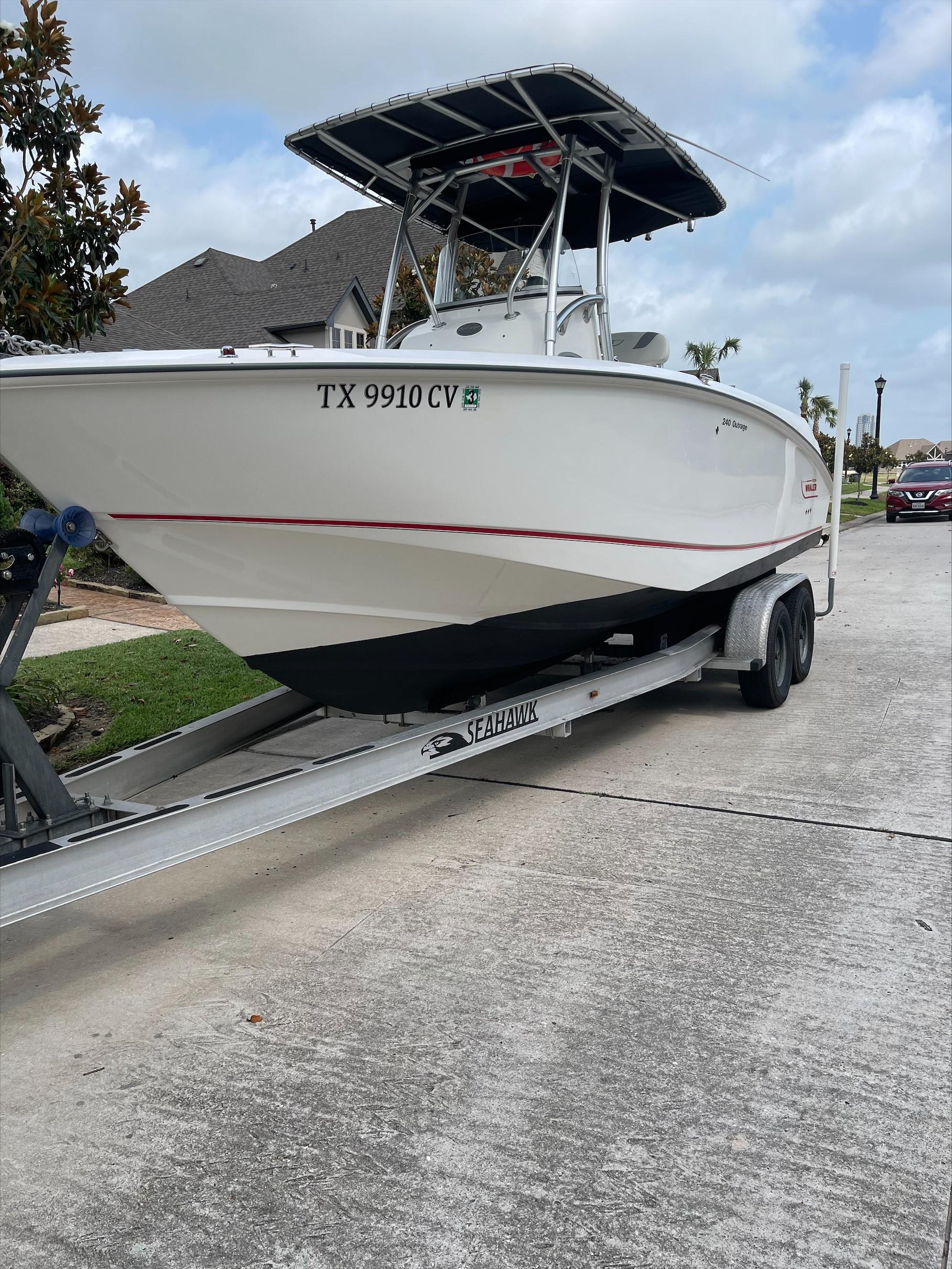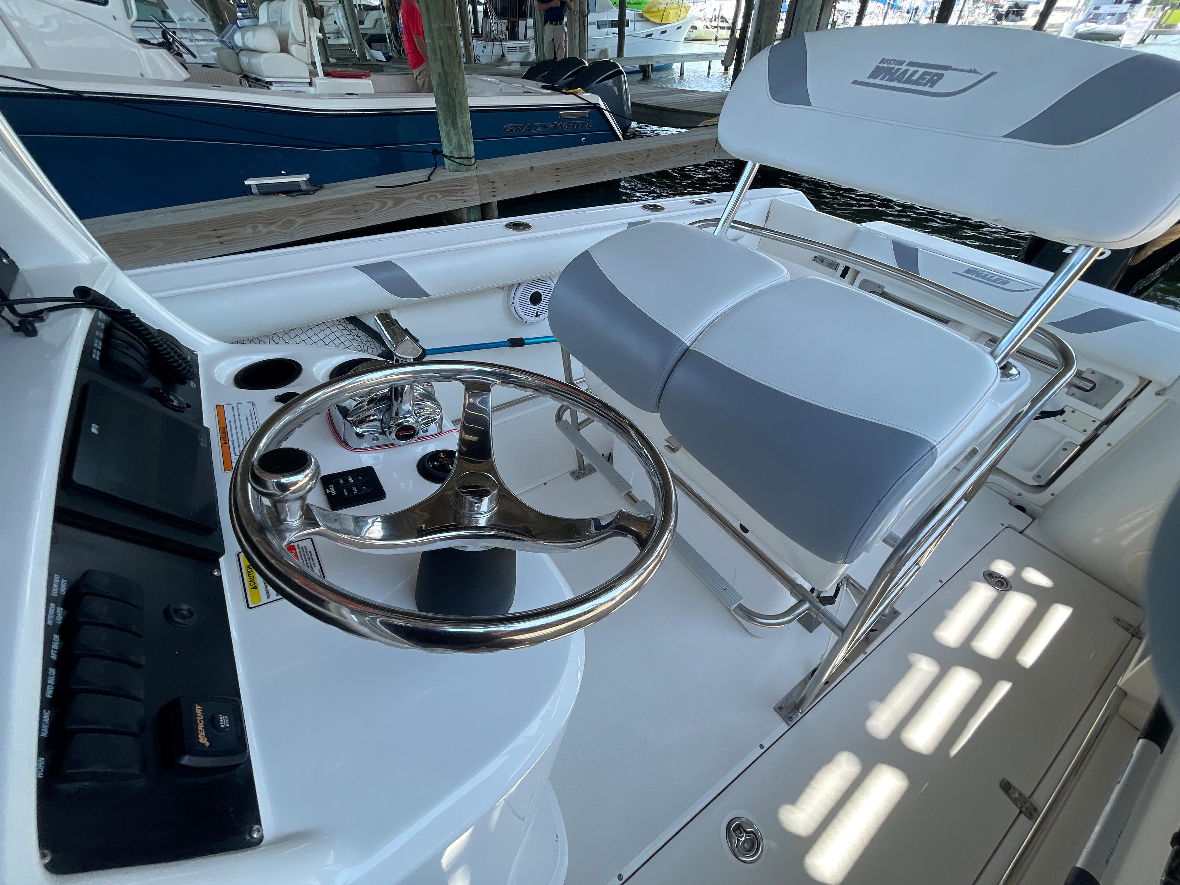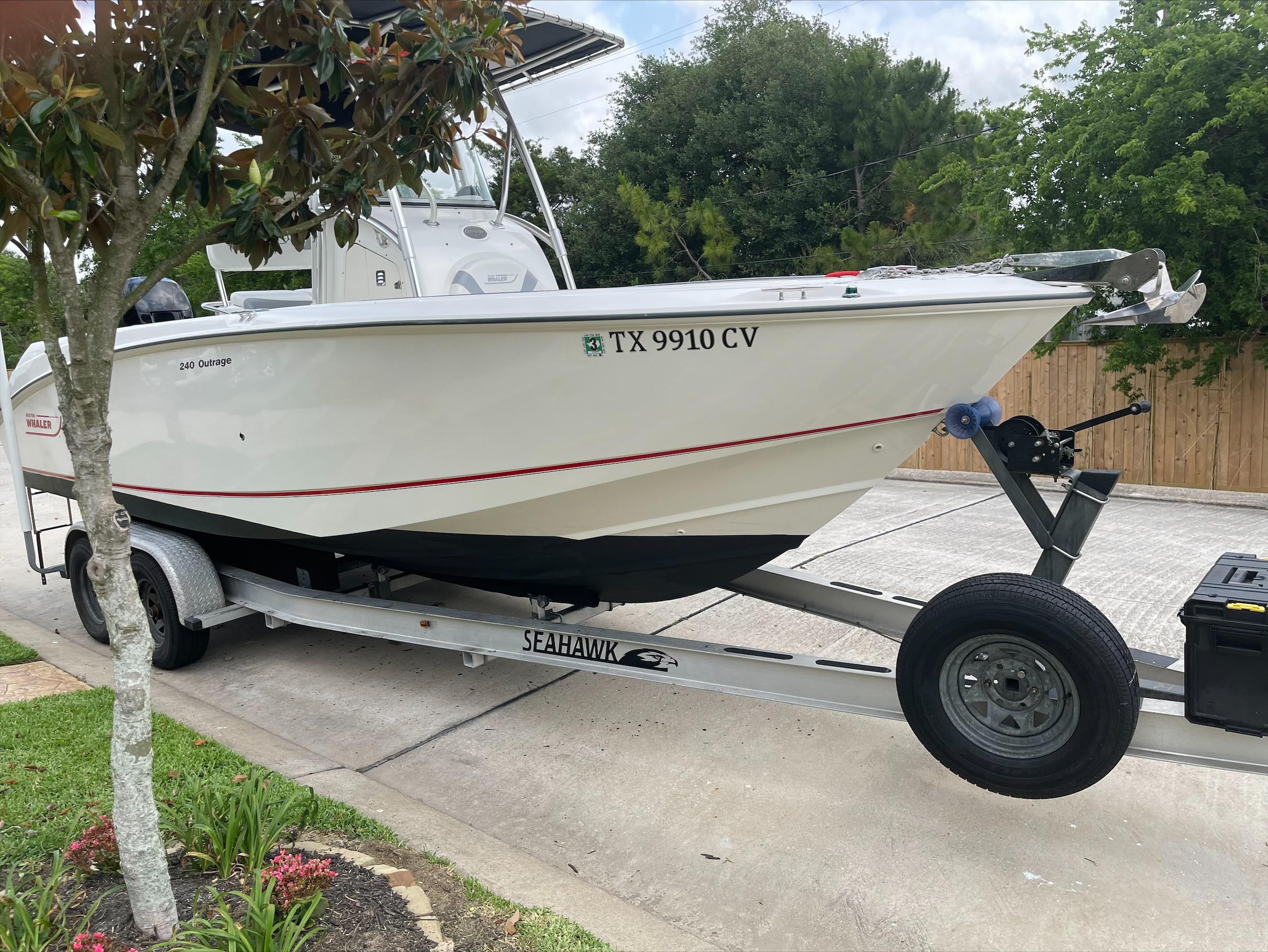 With big-boat standard features in an easily trailerable package, the Boston Whaler 240 Outrage is ready for serious bluewater fishing right out of the box. Its wide beam provides plenty of space for 360-degree fishing for up to a dozen avid anglers - made to feel comfortable and secure, thanks to high interior freeboard, stainless steel toe rails and aft coaming bolsters. There's ample storage for everyone's gear, including rod holders at the gunnels and transom, as well as under-gunnel rod racks, plus port and starboard fishboxes to hold the day's catch. An enclosed head / storage area helps keep the fun going all day long without heading back to shore. And getting in and out of the boat is easy, with a convenient transom door and integral swim platform with grab rail and stainless steel swim ladder. Select from a host of options, including dual engines, leaning post options and much more.