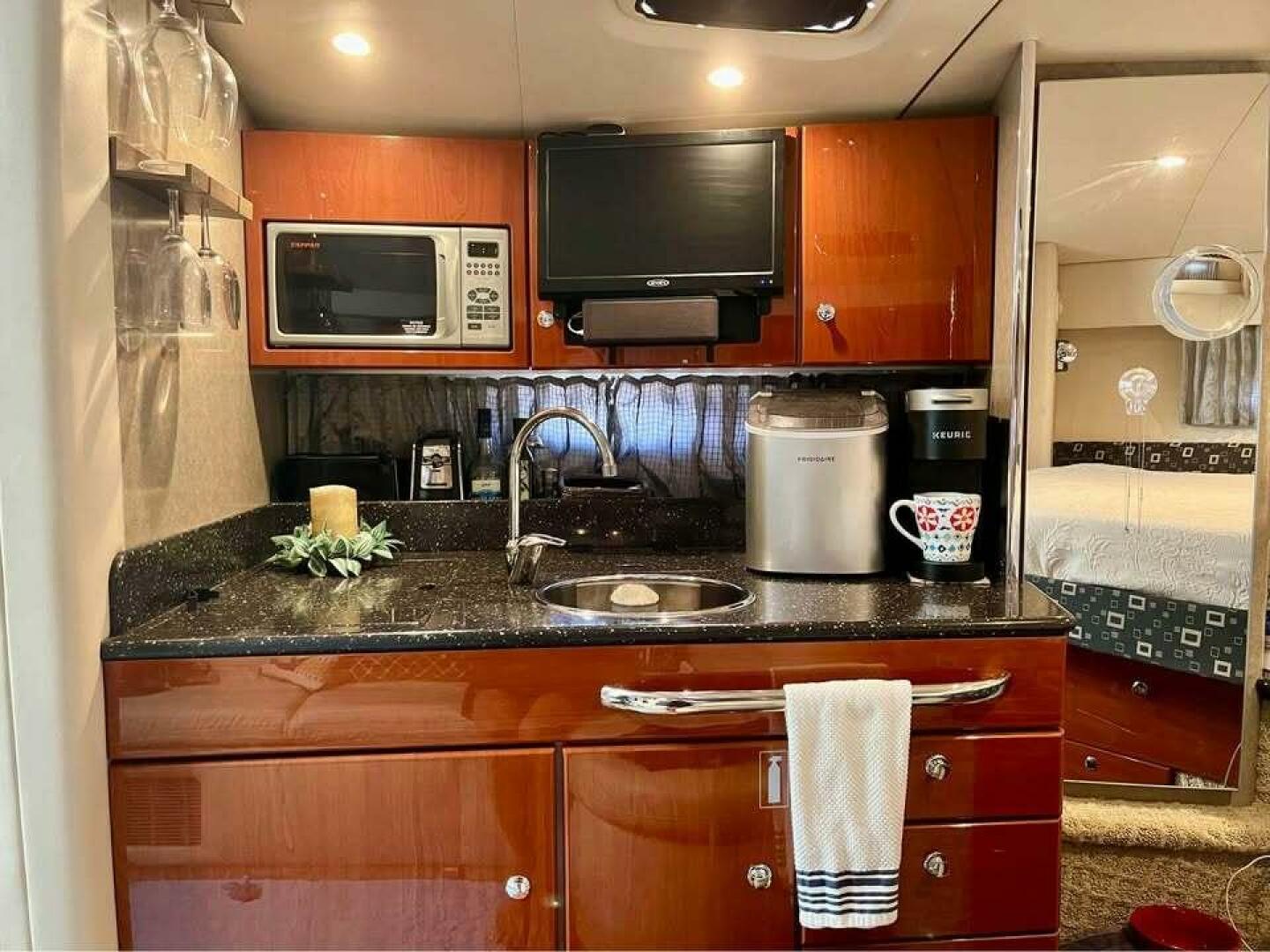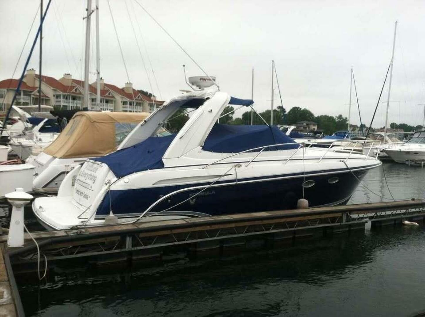 Formula Performance Cruisers for 2007 bring a new level of freedom to your on-water adventures. With proven structural integrity, responsive handling and the smooth, Formula ride, there can be no doubt that a Formula Cruiser is extremely rewarding to own and to enjoy. Formula 31 PCs are renowned for sleek, contemporary styling and superior features throughout. Creative cockpit seating arrangements offer friendly gathering areas, from the adjustable double helm and portside lounge to the U-shaped seating with tables and filler cushions aft. All lounges are properly proportioned and expertly upholstered — so comfortable for everyone aboard.The integrated wet bar is central for easy entertaining with the sink and trash receptacle neatly concealed under a hinged Corian countertop. At the helm, the new wood-grain dash panel and steering wheel are presented in today’s lighter tones. Formula Cruisers provide a number of premium upgrades in the luxurious cabin including the latest in complete audio systems and LCD flatscreen technology. Selection of a designer decor theme reflects each owner’s personal preference in color and style. High gloss cherry wood-grain cabinetry and privacy doors are complemented by genuine Corian countertops, handcrafted to perfection by Formula.This boat is a FRESH WATER ONLY and has everything one could imagine including new Biminis, new Eisen glass, new cockpit covers. New HVAC and interior fridge in 2023. Aft fridge. TONS of storage! New bow cushions and covers. New outdrives 10/21 at 135 hours. Twin 320HP MerCruiser 6.2 engines with ONLY 317 hours each, generator, bow thruster, electric windlass, automatic bilge heater. 31 PC SPECIFICATIONSNMMA Yacht CertificationImron Standard graphic & cockpit accent stripingPressure-treated Perma Panel™structural hull matrixFoam-filled hull cavitiesChemically bonded & thru-bolted deck-to-hull jointHeavy-duty PVC gunwale w/stainless steel insertIntegrated bow platformElectric windlass w/200 chain & polished stainless-steel anchorConcealed anchor davit w/fiberglass chain lockerStainless steel hardware & 316L stainless steel welded railsStainless steel fuel fills w/integral ventsTwo Bomar cabin venting hatches w/screensForward Bomar cabin venting hatch w/integrated Oceanaire rollout SKY screen & privacy shadeSix polished stainless steel port lights w/screensNonskid deck center walkway & walk-aroundTwo Dri-Fast foam deck sun pads w/316L stainless steel railsTinted, tempered curved-glass windshield w/center walk-thruWindshield wiperRadar arch w/mast lightPolished air hornIntegrated swim platform w/concealed 316L stainless steel swim ladderTransom shower w/hot & cold controls120V shore power w/galvanic isolator & monitor & two 30-amp cordsPolished stainless steel shore power & cable TV & telephone hookups & polished chromed city water inlet.