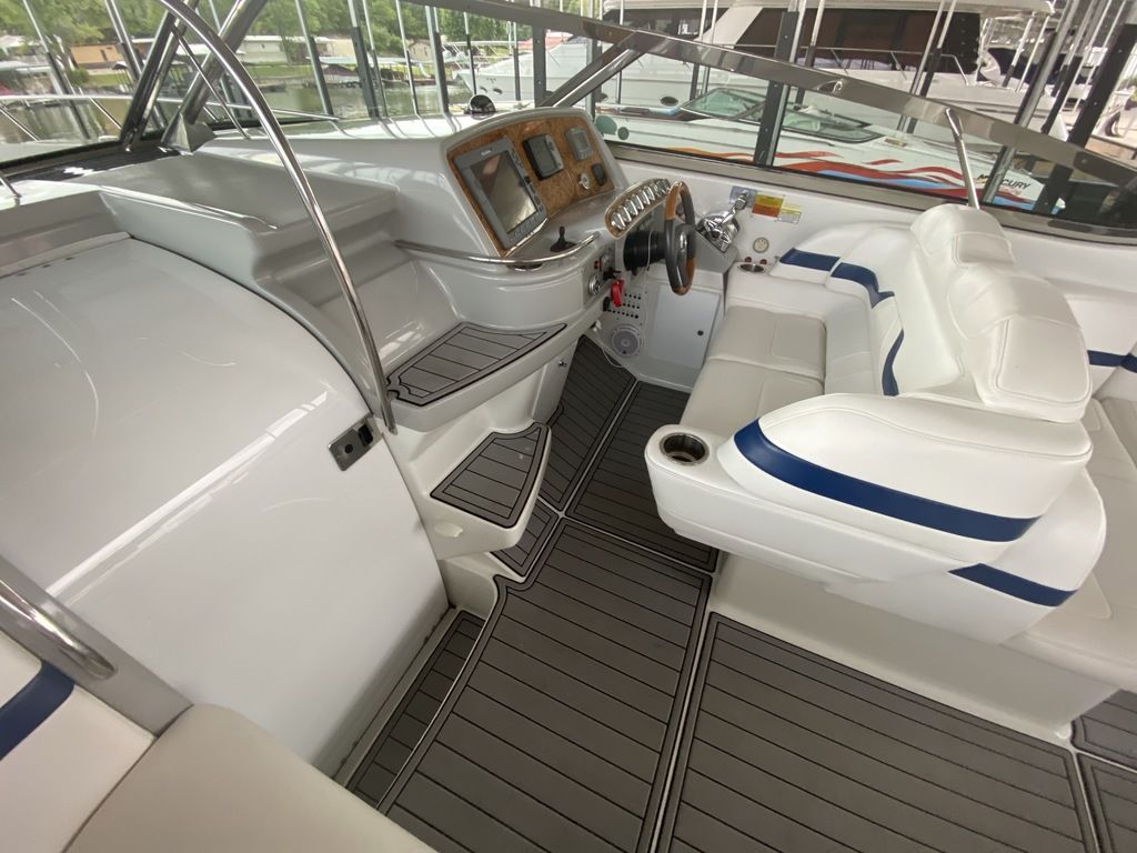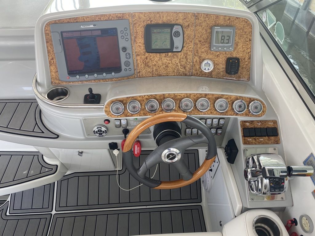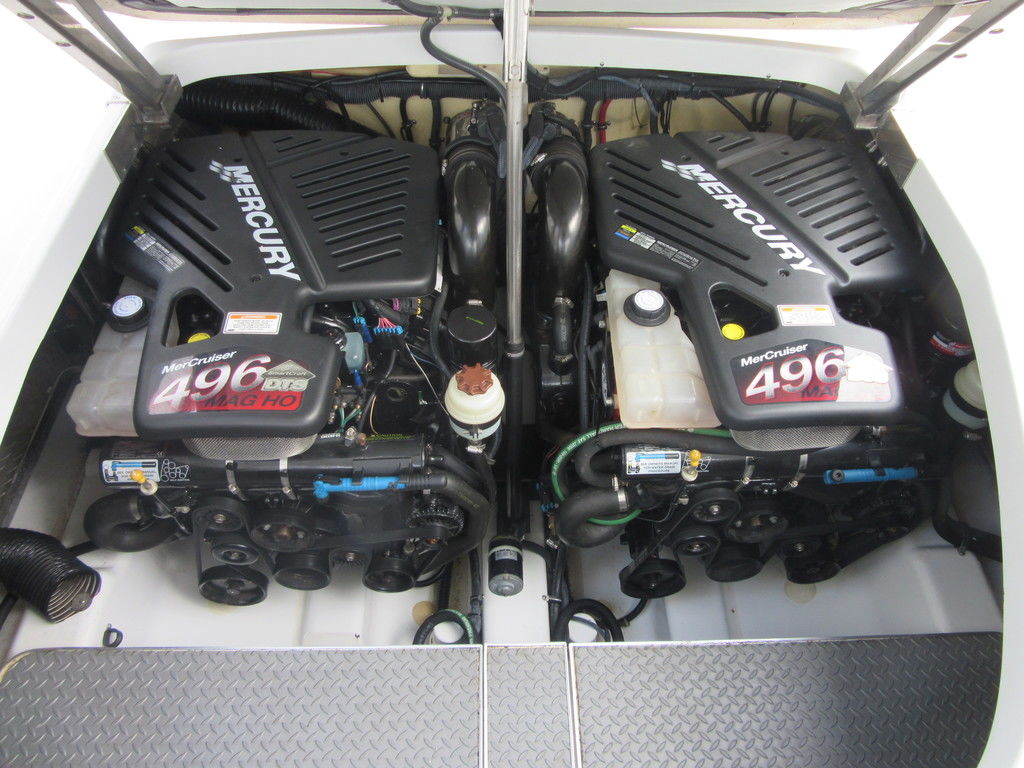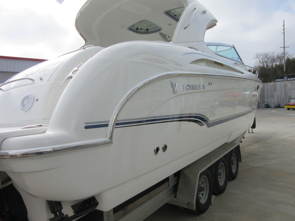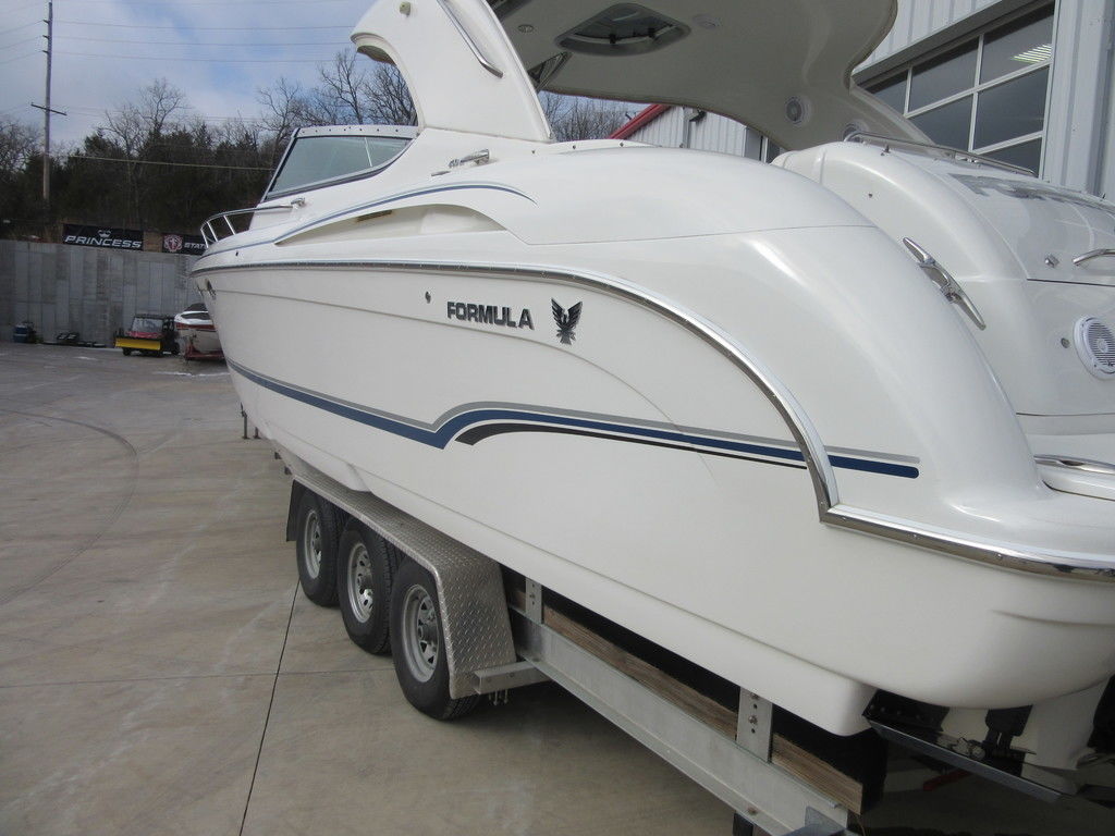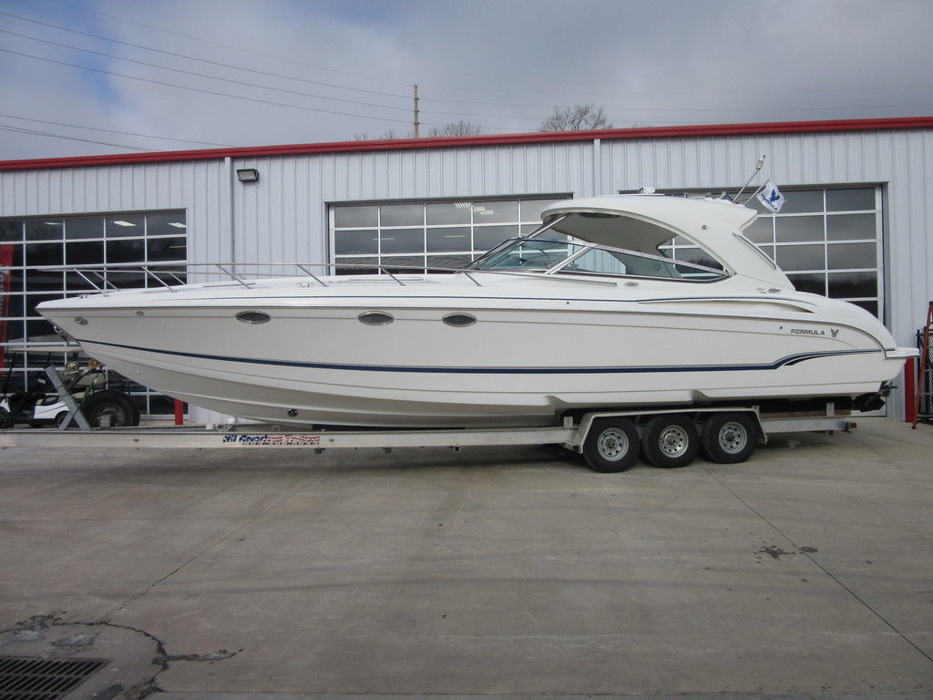 2007 Formula 400SS powered by twin Mercruiser 496Mag HO with 524 hours, Bravo III sterndrives, tie bar, drive showers, trim tabs, Kohler 7.3Kw generator, shore power, battery charger, switchable exhaust, remote spotlight, halon system, fume detector, Smartcraft Vesselview, Raymarine C80 Chartplotter/GPS, Raymarine Tri-data, bow thruster, DTS controls, LED tab indicators, all chain windlass w/ chain counter, VHF radio, JL Audio sound system, double-wide helm seat with flip up bolsters, two cockpit tables w/ filler cushions, cockpit wetbar with sink, refrigerator, and trash, cockpit carpet, cockpit cover, Hardtop with full enclosures, TV/DVD, full size cabin refrigerator/freezer, microwave, electric stove, Air conditioning/heat, vacuflush head, fresh and waste water tank monitors. Financing and transportation available.