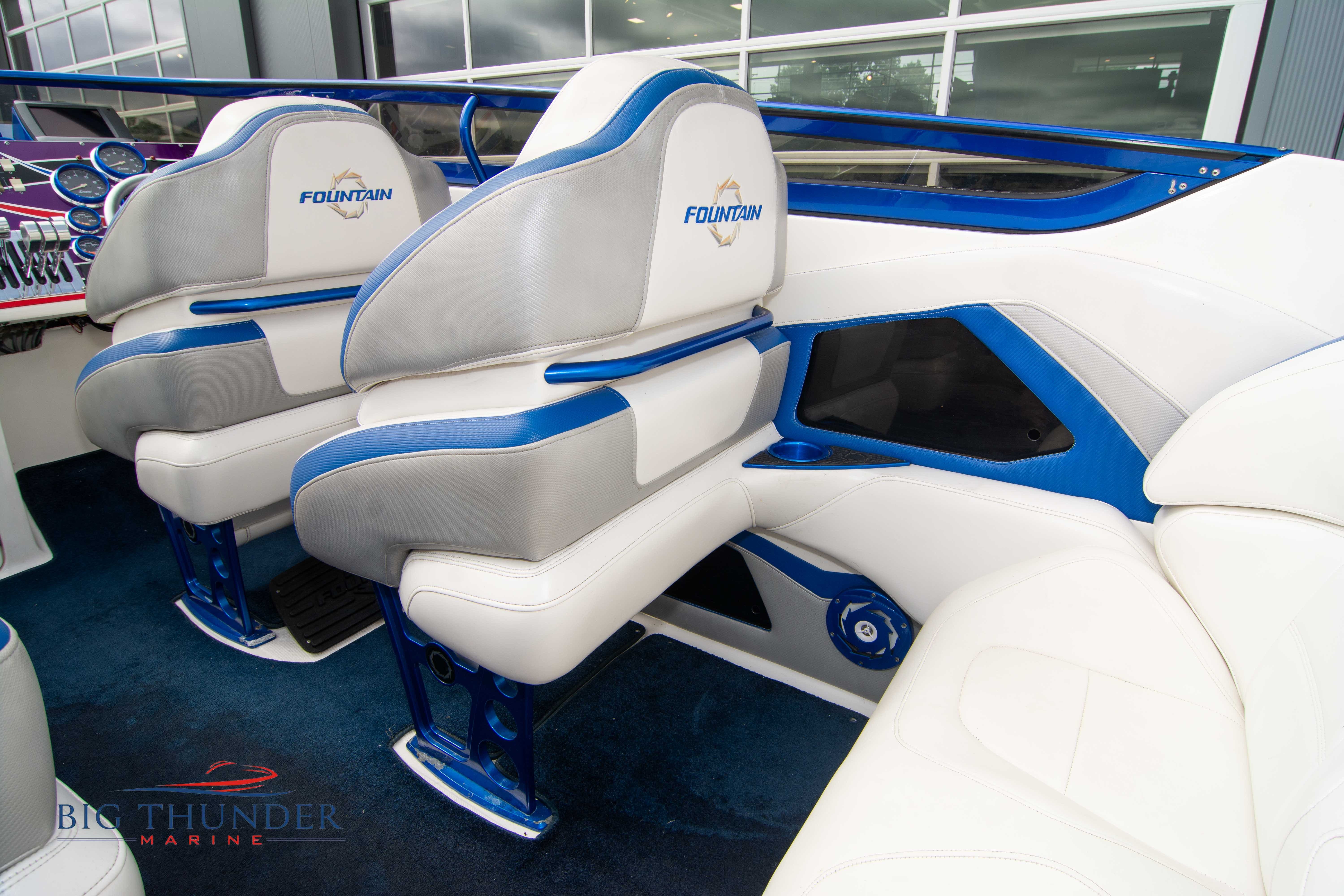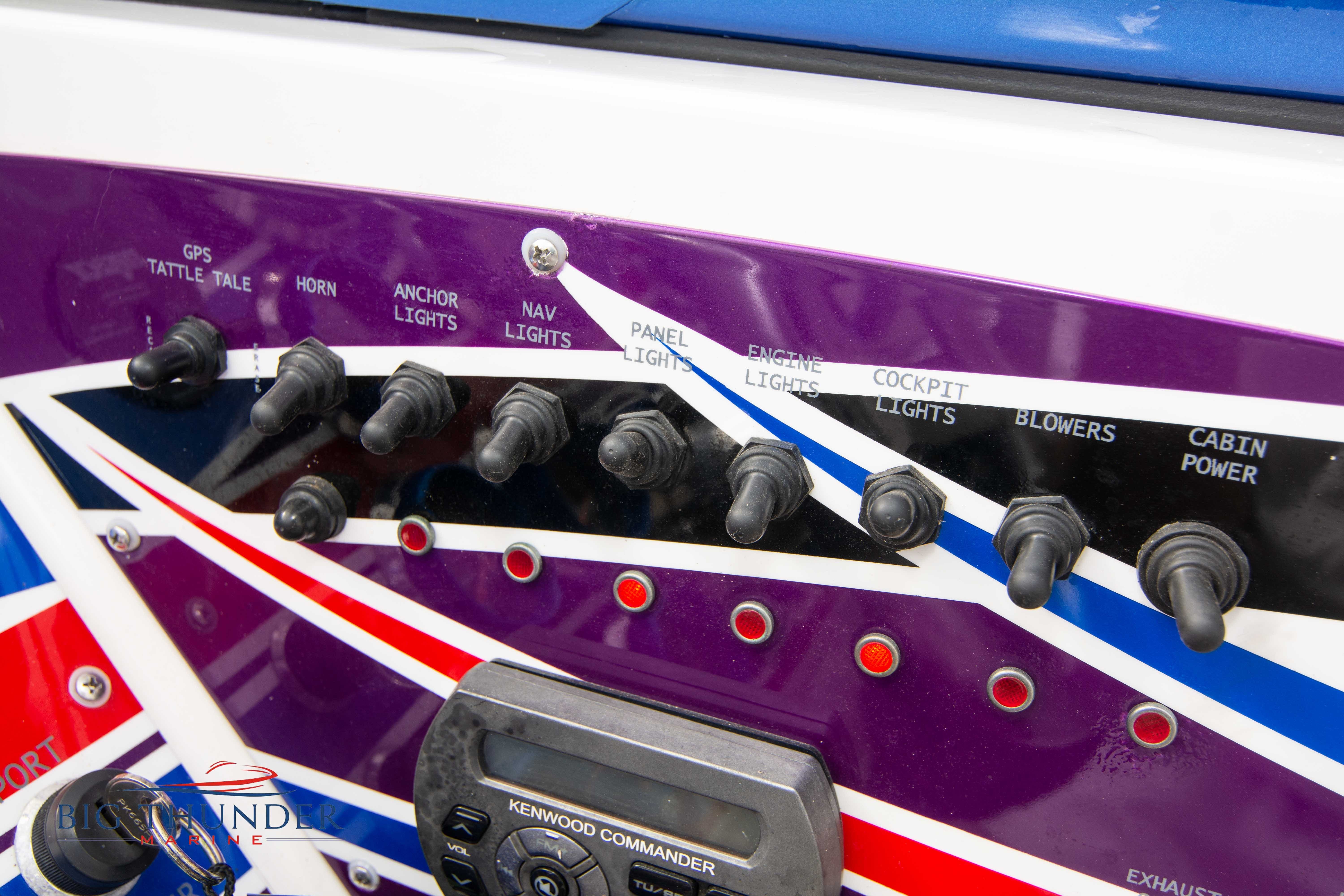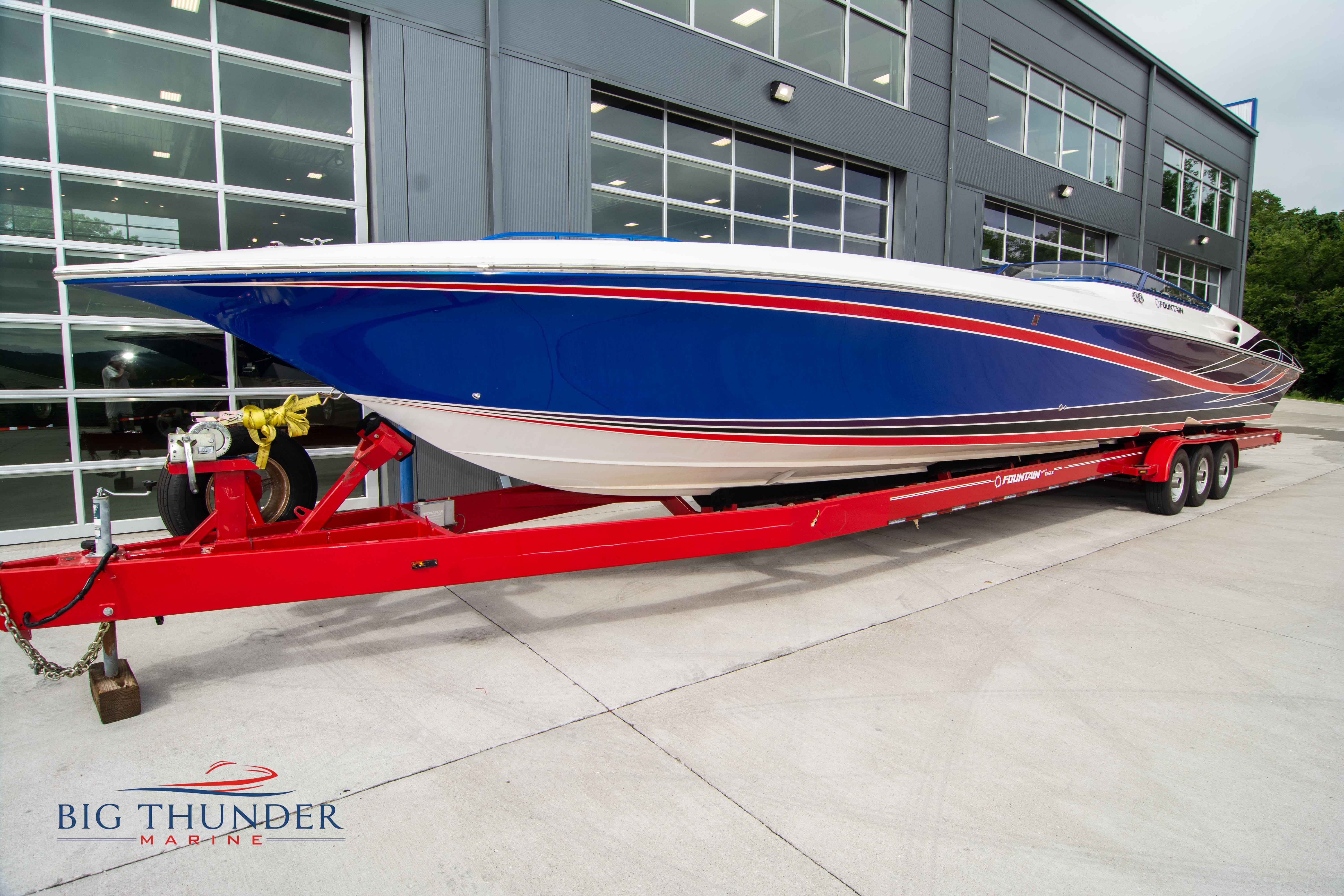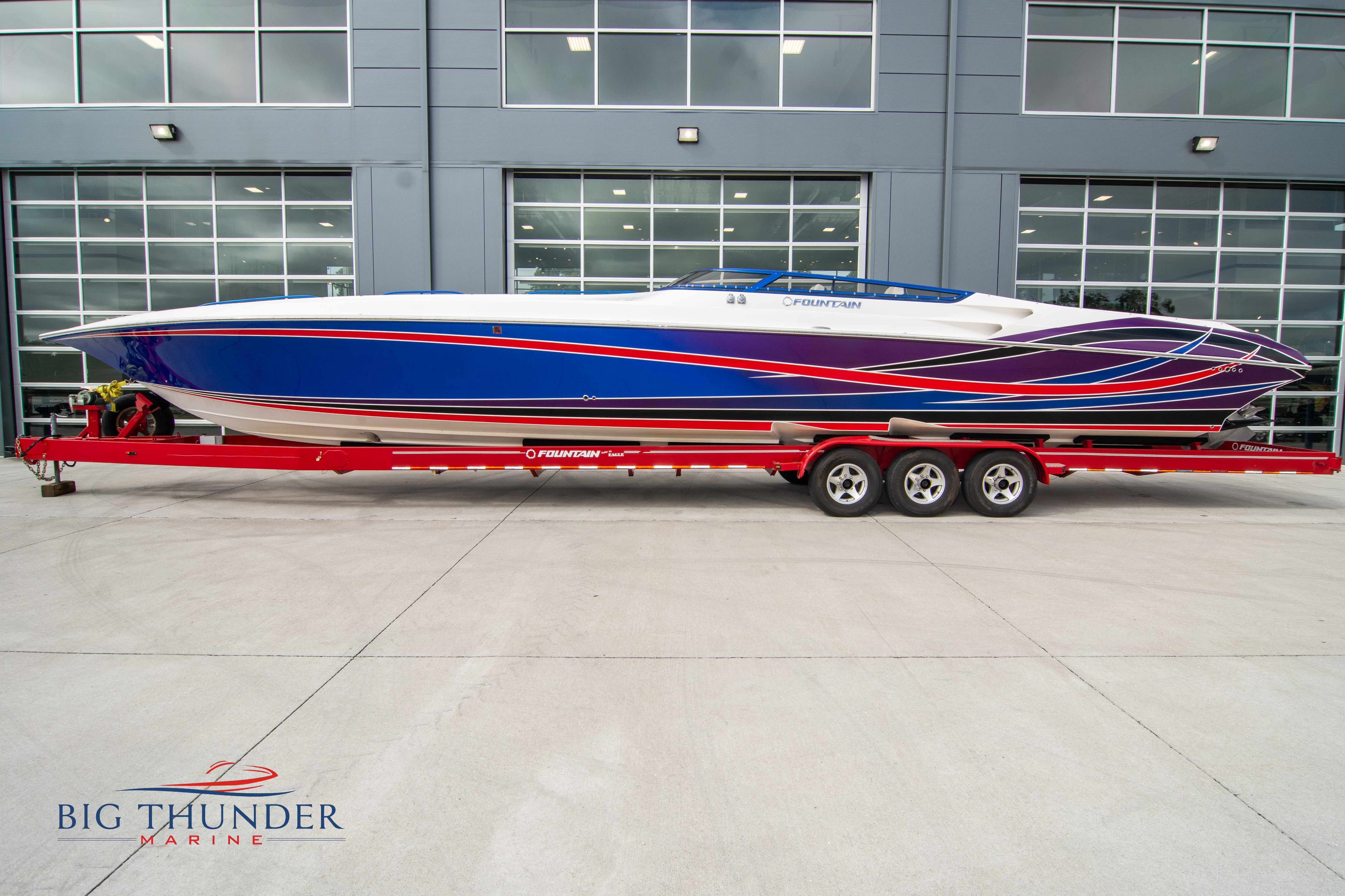 2007 Fountain 47 Lighting, Xtreme Graphics-fx paint, Triple 525 EFI, (437 hours - top ends done 40 hours ago), XR drives, Maximus 32 pitch props, sport master lowers, 280 K planes, mechanical tab/drive indicators, rear ladder, rear transom shower, cockpit carpet, Garmin GPSmap 5208, Livorsi gauges, compass, bow thruster, trim in handle, AC/heat, Kohler gen, dual burner stove, Kenwood head unit with drivers remote, vacu flush head, hot water heater, halon, sea strainers, Pro Tournament 360 battery charger, Triple axle trailer included. We consider all trades 2000+ model year, financing, delivery, registration and inspections available.