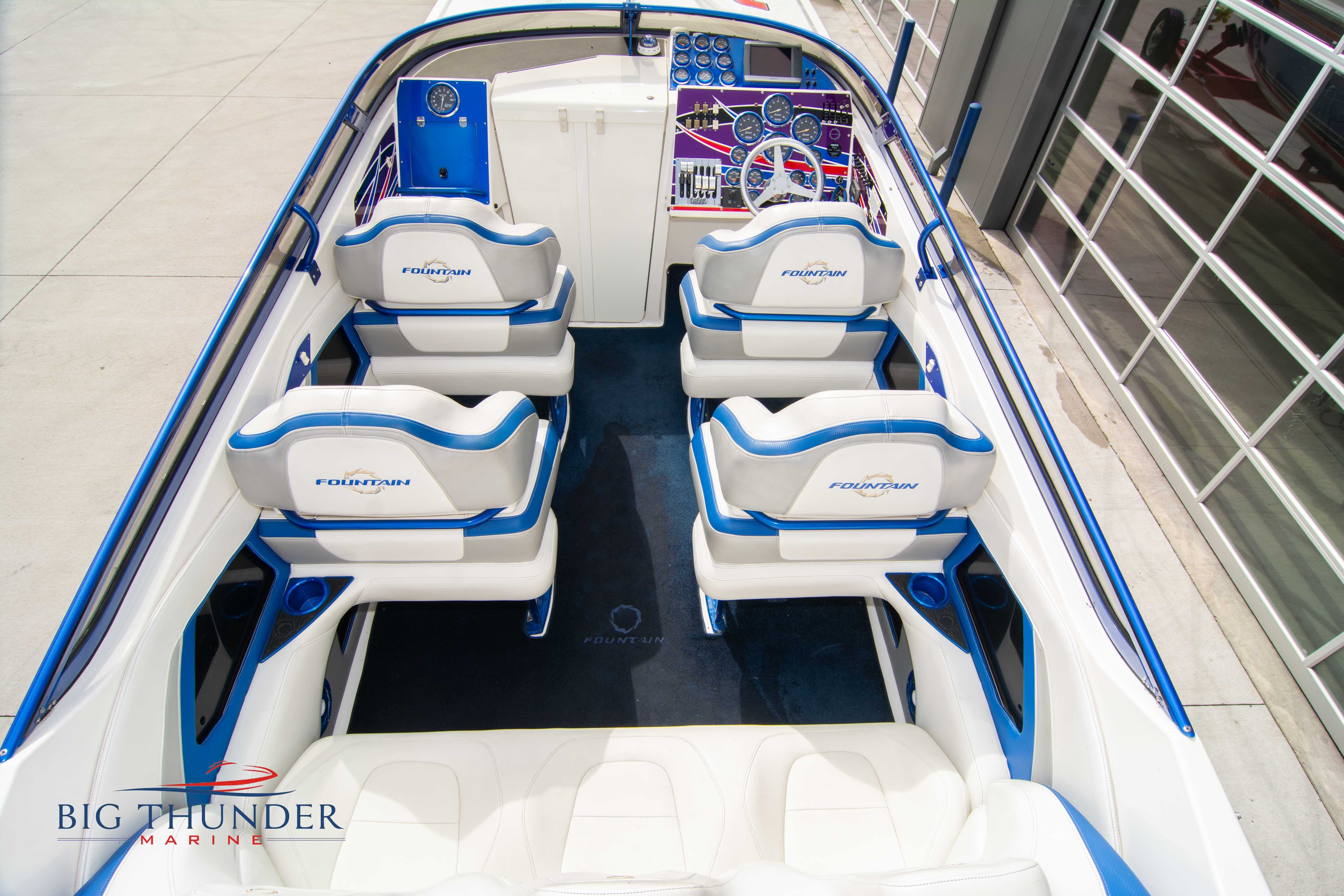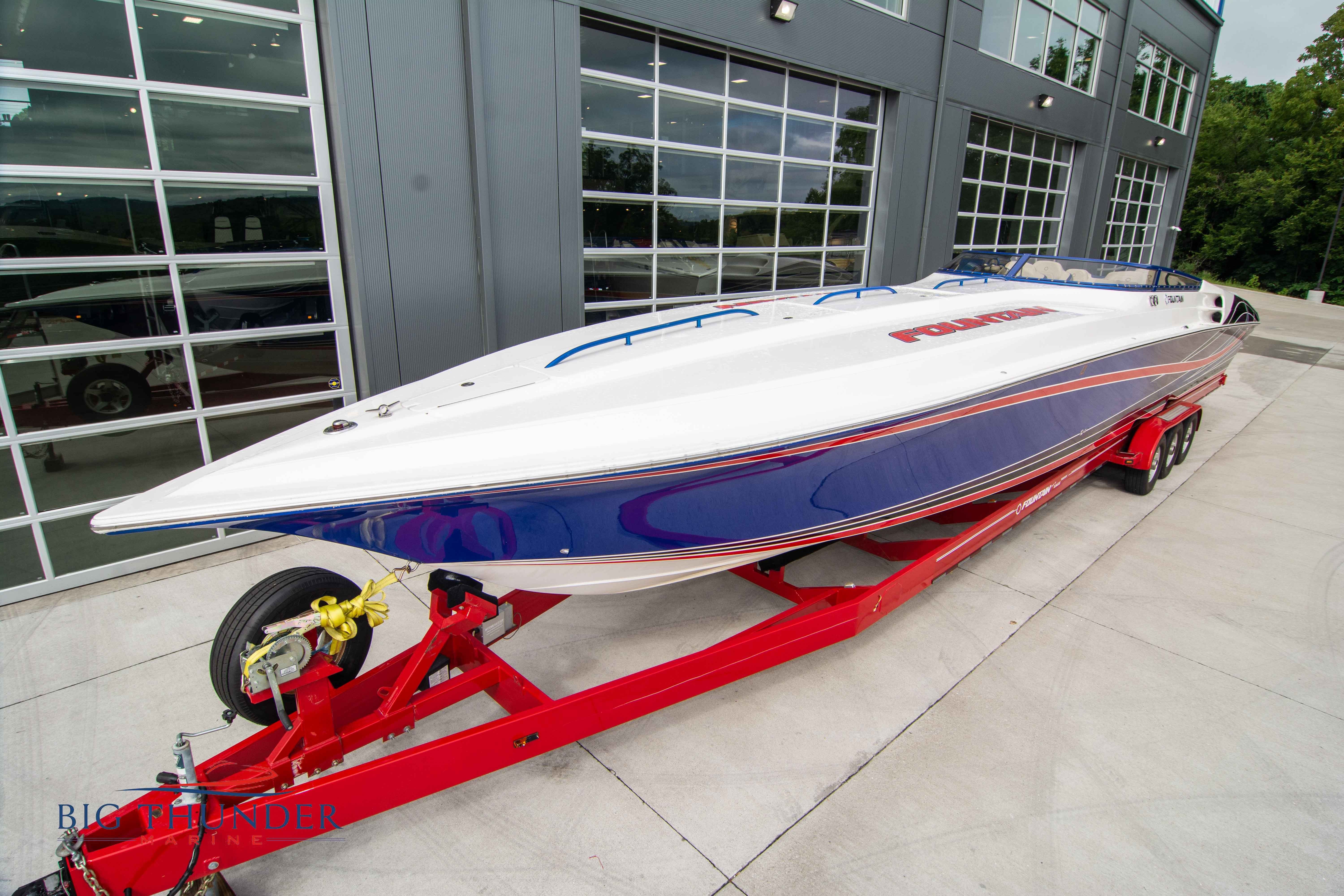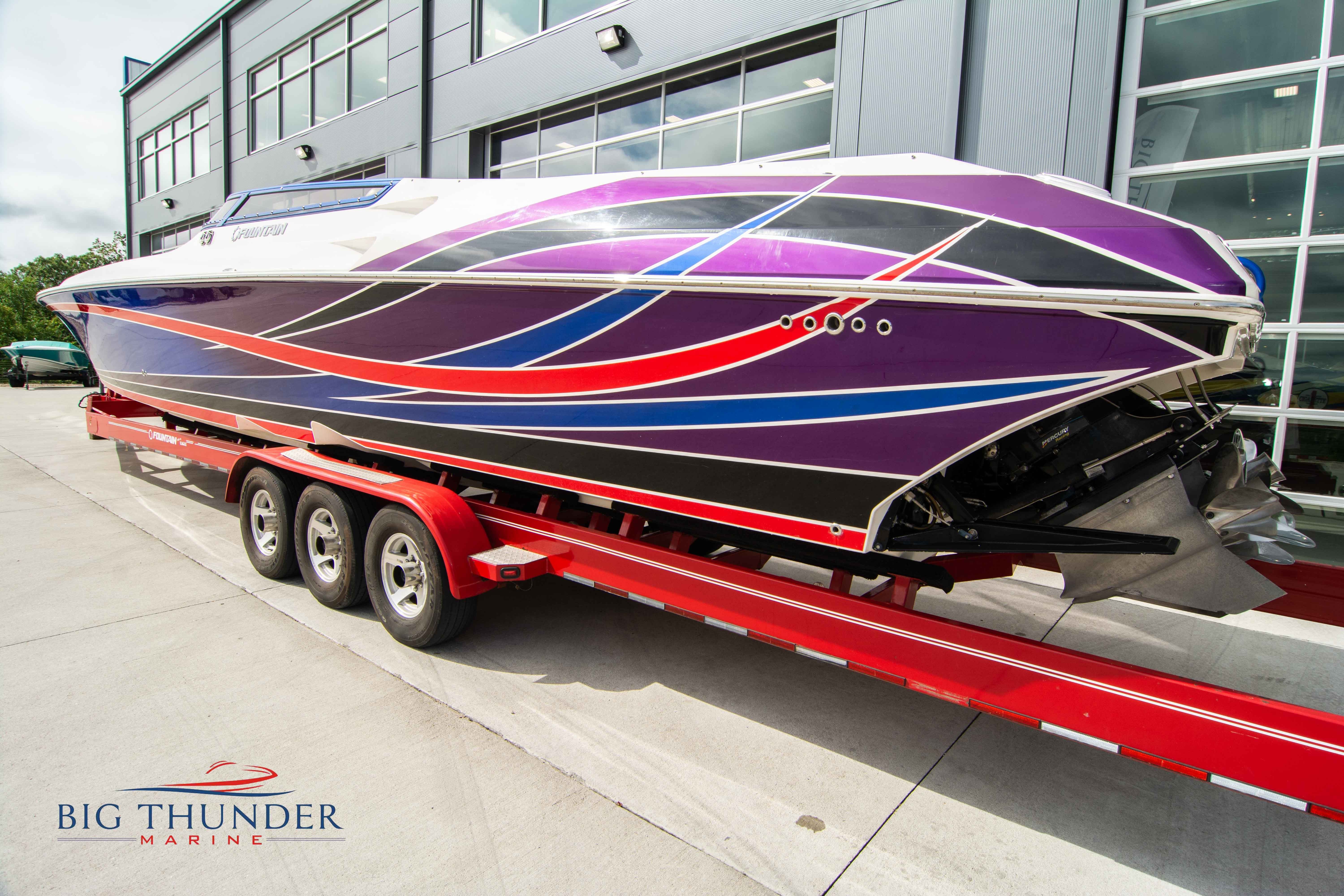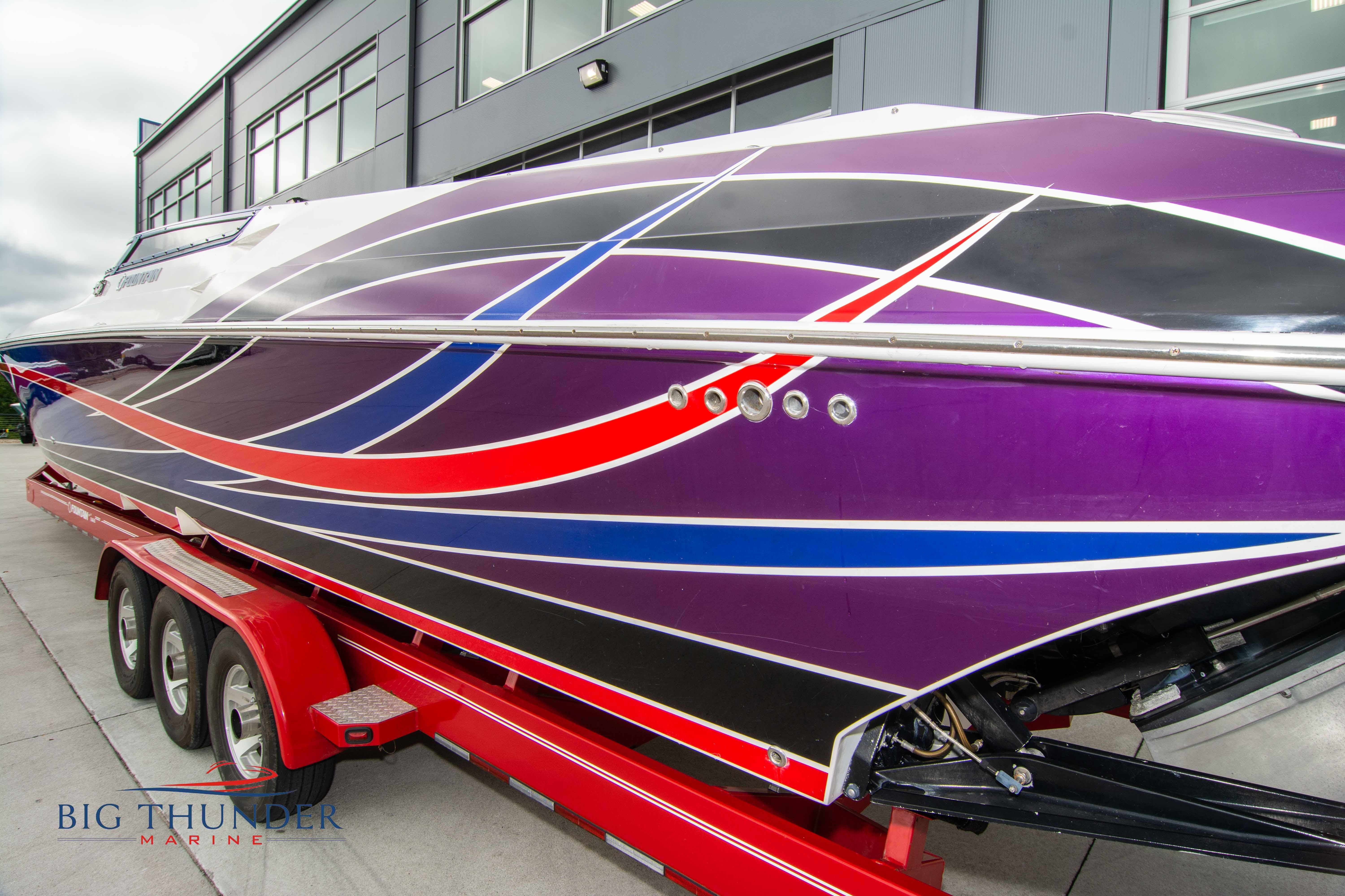 2007 Fountain 47 Lighting, Xtreme Graphics-fx paint, Triple 525 EFI, (437 hours - top ends done 40 hours ago), XR drives, Maximus 32 pitch props, sport master lowers, 280 K planes, mechanical tab/drive indicators, rear ladder, rear transom shower, cockpit carpet, Garmin GPSmap 5208, Livorsi gauges, compass, bow thruster, trim in handle, AC/heat, Kohler gen, dual burner stove, Kenwood head unit with drivers remote, vacu flush head, hot water heater, halon, sea strainers, Pro Tournament 360 battery charger, Triple axle trailer included. We consider all trades 2000+ model year, financing, delivery, registration and inspections available.