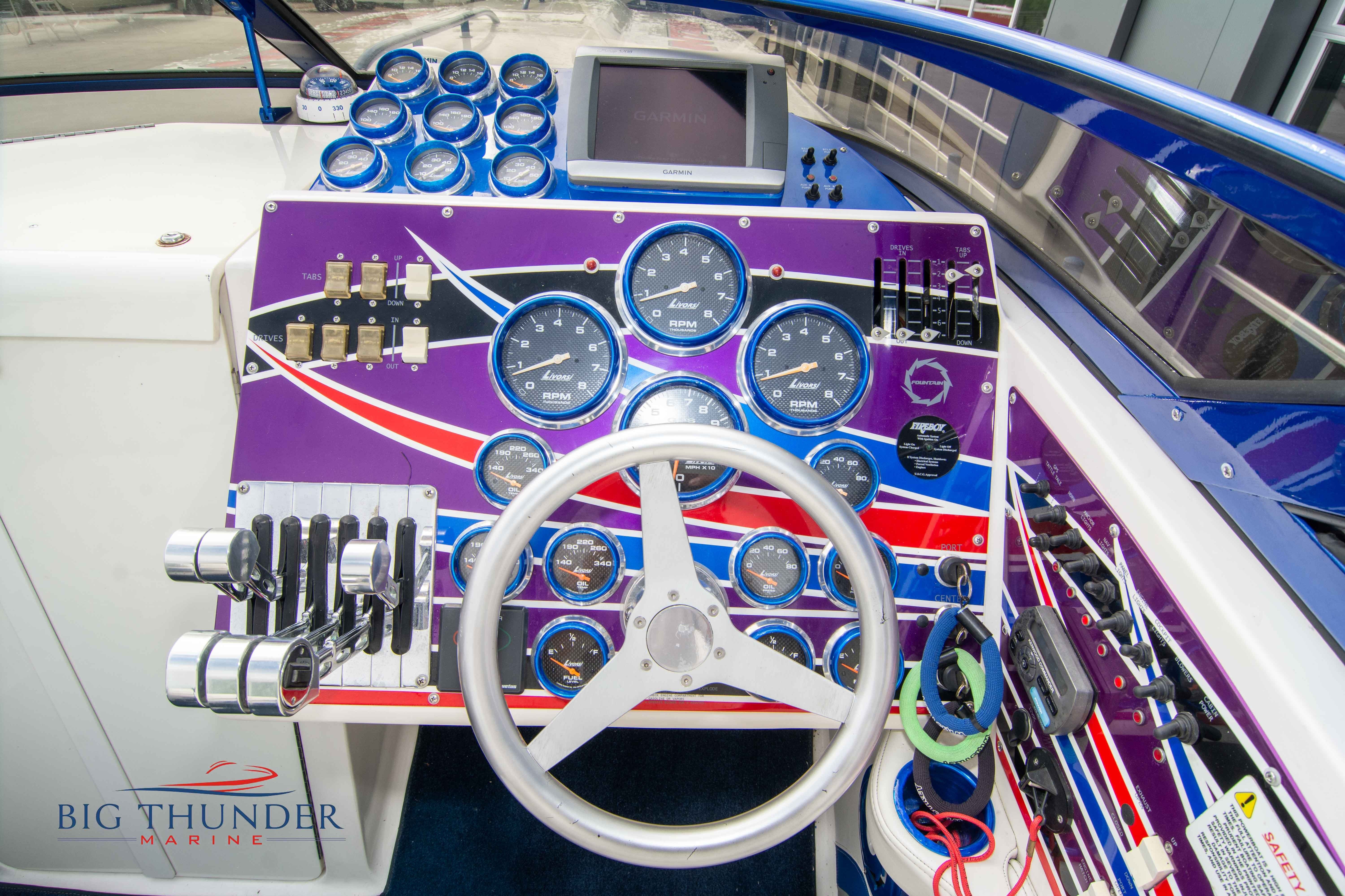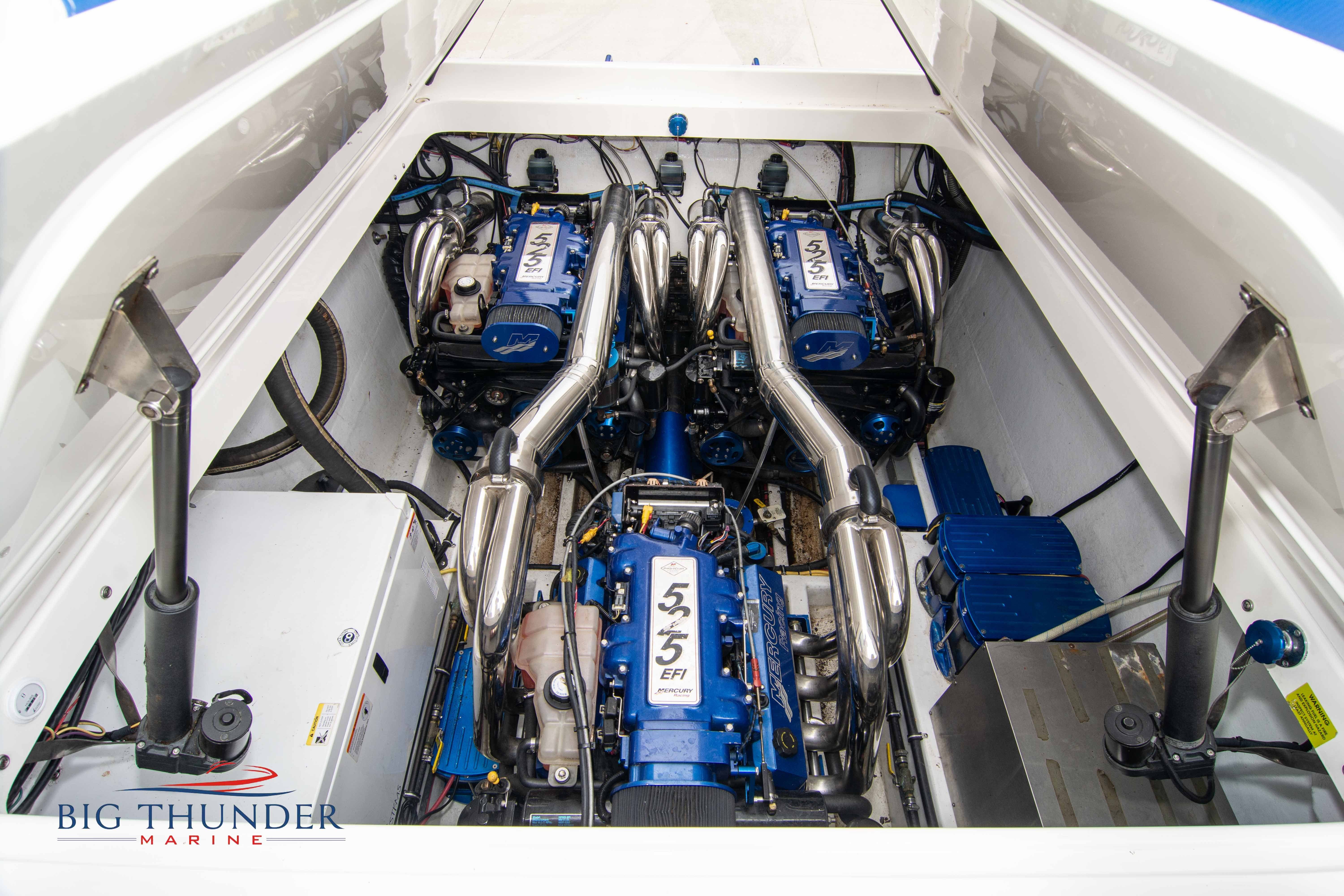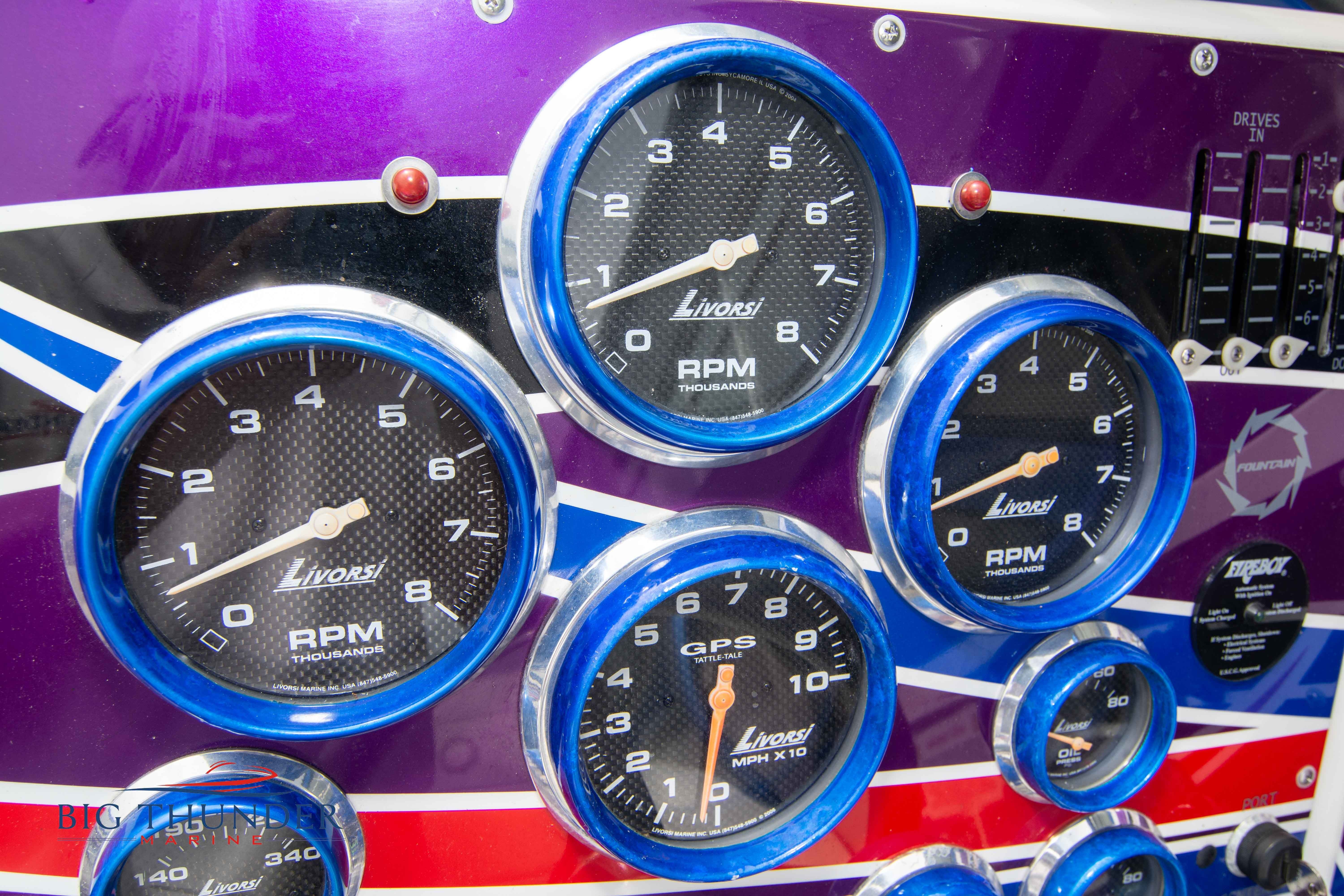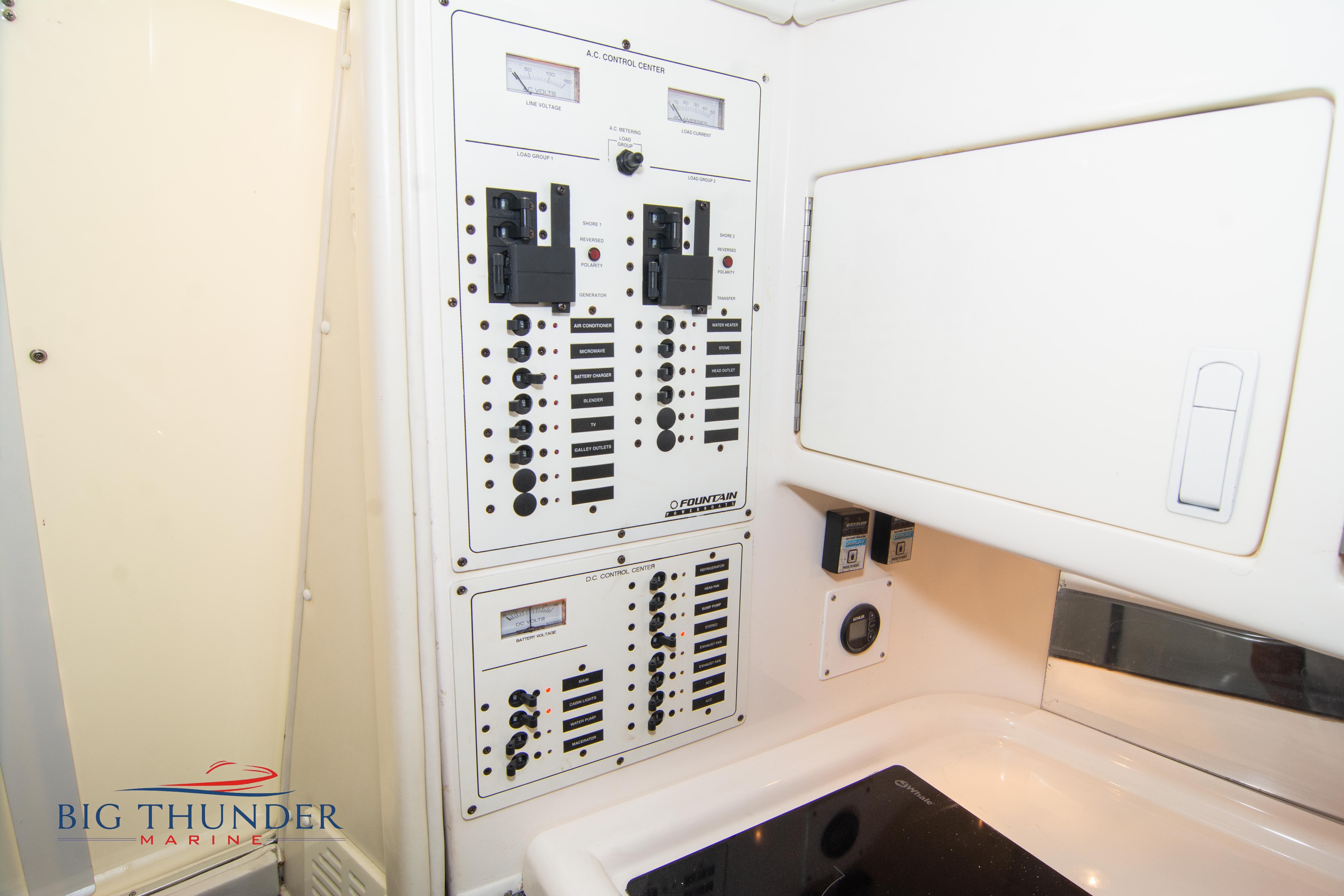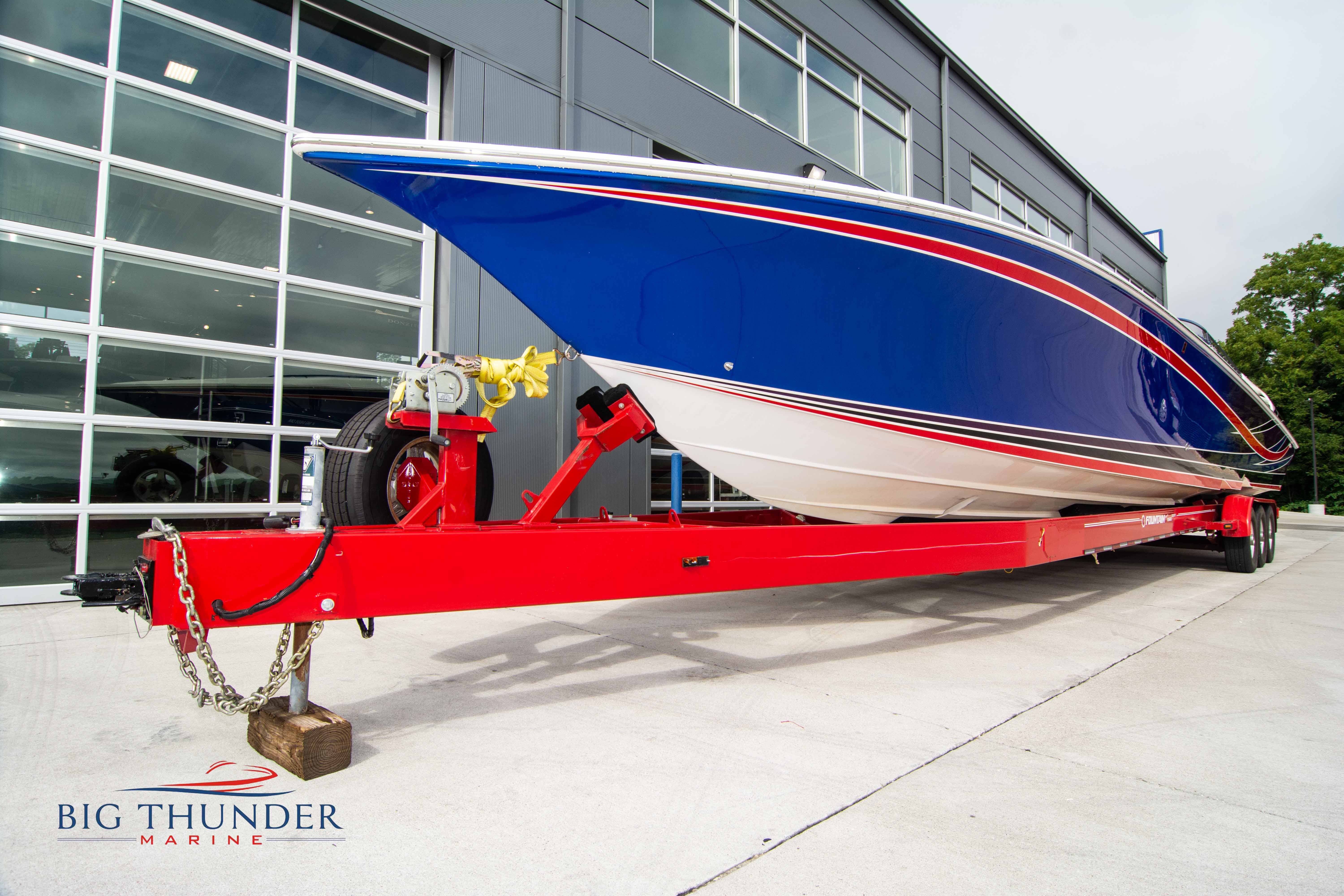 2007 Fountain 47 Lighting, Xtreme Graphics-fx paint, Triple 525 EFI, (437 hours - top ends done 40 hours ago), XR drives, Maximus 32 pitch props, sport master lowers, 280 K planes, mechanical tab/drive indicators, rear ladder, rear transom shower, cockpit carpet, Garmin GPSmap 5208, Livorsi gauges, compass, bow thruster, trim in handle, AC/heat, Kohler gen, dual burner stove, Kenwood head unit with drivers remote, vacu flush head, hot water heater, halon, sea strainers, Pro Tournament 360 battery charger, Triple axle trailer included. We consider all trades 2000+ model year, financing, delivery, registration and inspections available.