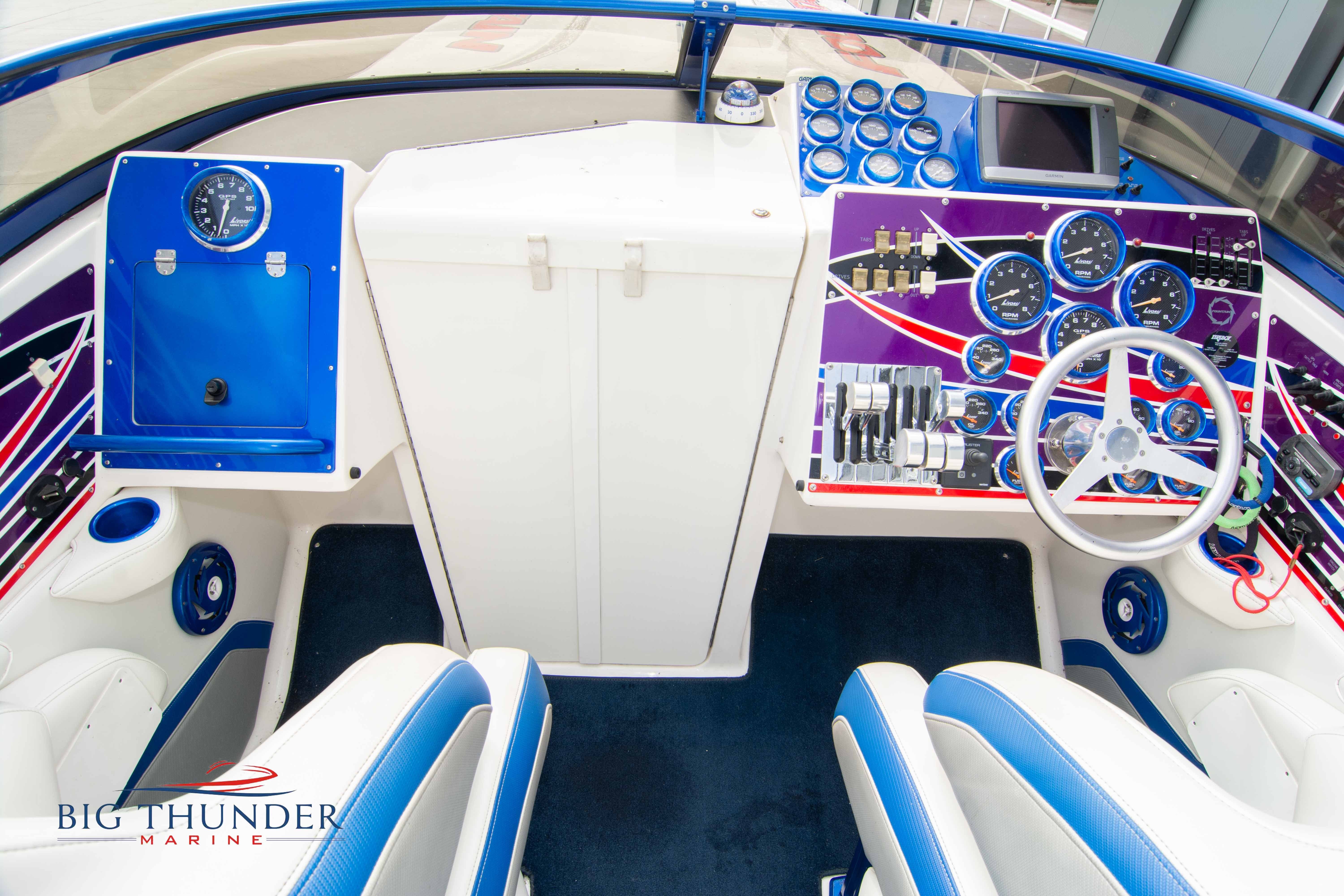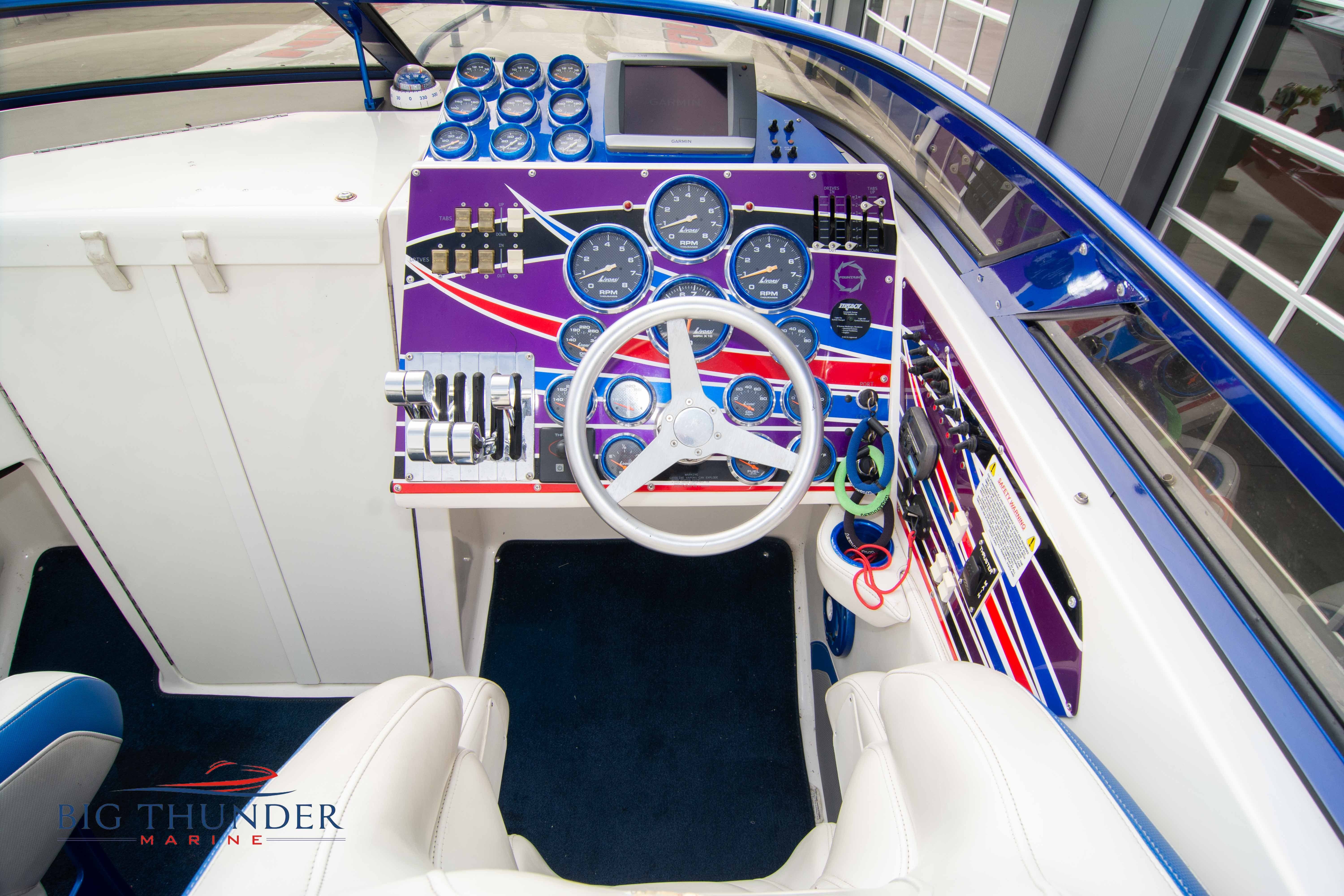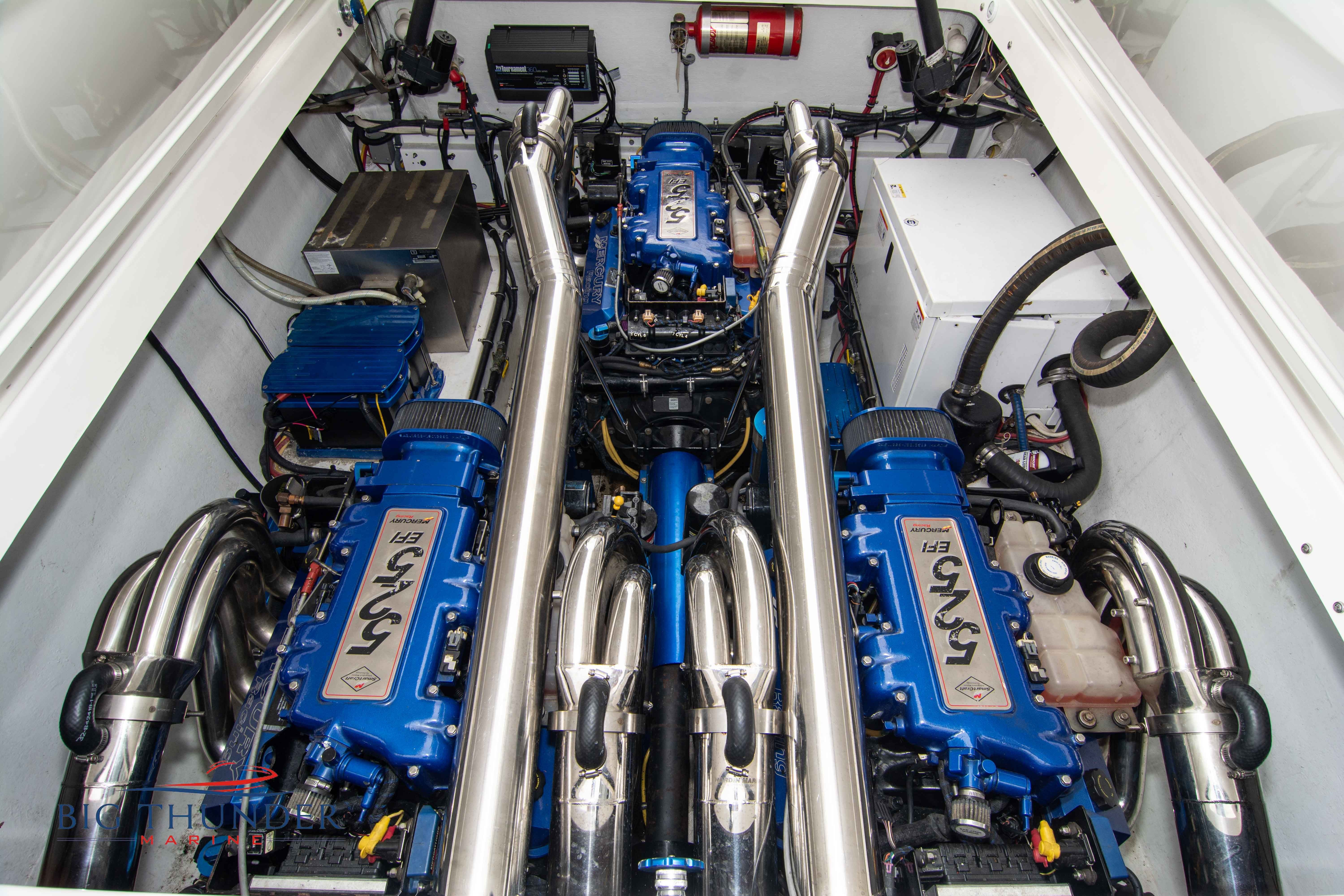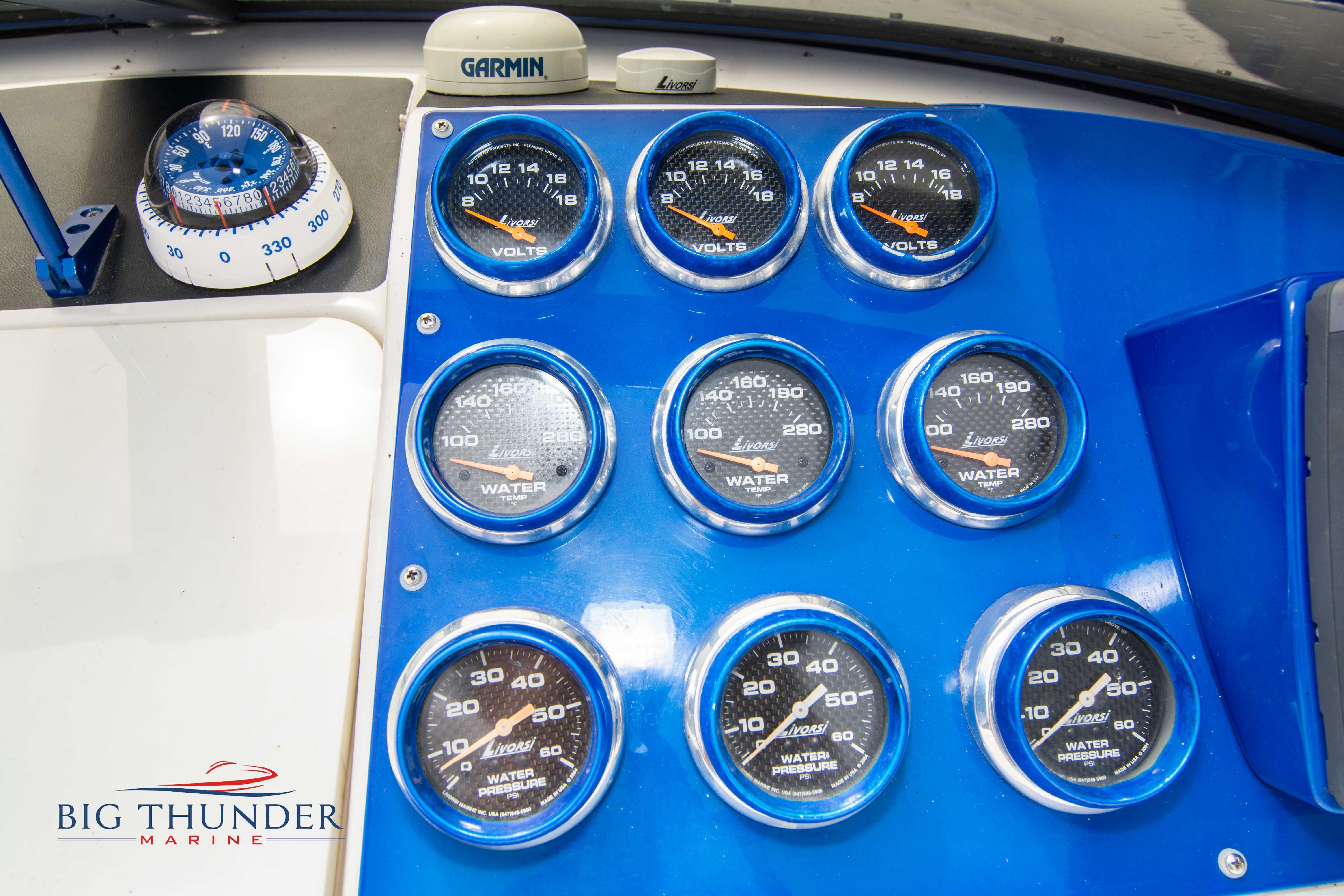 2007 Fountain 47 Lighting, Xtreme Graphics-fx paint, Triple 525 EFI, (437 hours - top ends done 40 hours ago), XR drives, Maximus 32 pitch props, sport master lowers, 280 K planes, mechanical tab/drive indicators, rear ladder, rear transom shower, cockpit carpet, Garmin GPSmap 5208, Livorsi gauges, compass, bow thruster, trim in handle, AC/heat, Kohler gen, dual burner stove, Kenwood head unit with drivers remote, vacu flush head, hot water heater, halon, sea strainers, Pro Tournament 360 battery charger, Triple axle trailer included. We consider all trades 2000+ model year, financing, delivery, registration and inspections available.