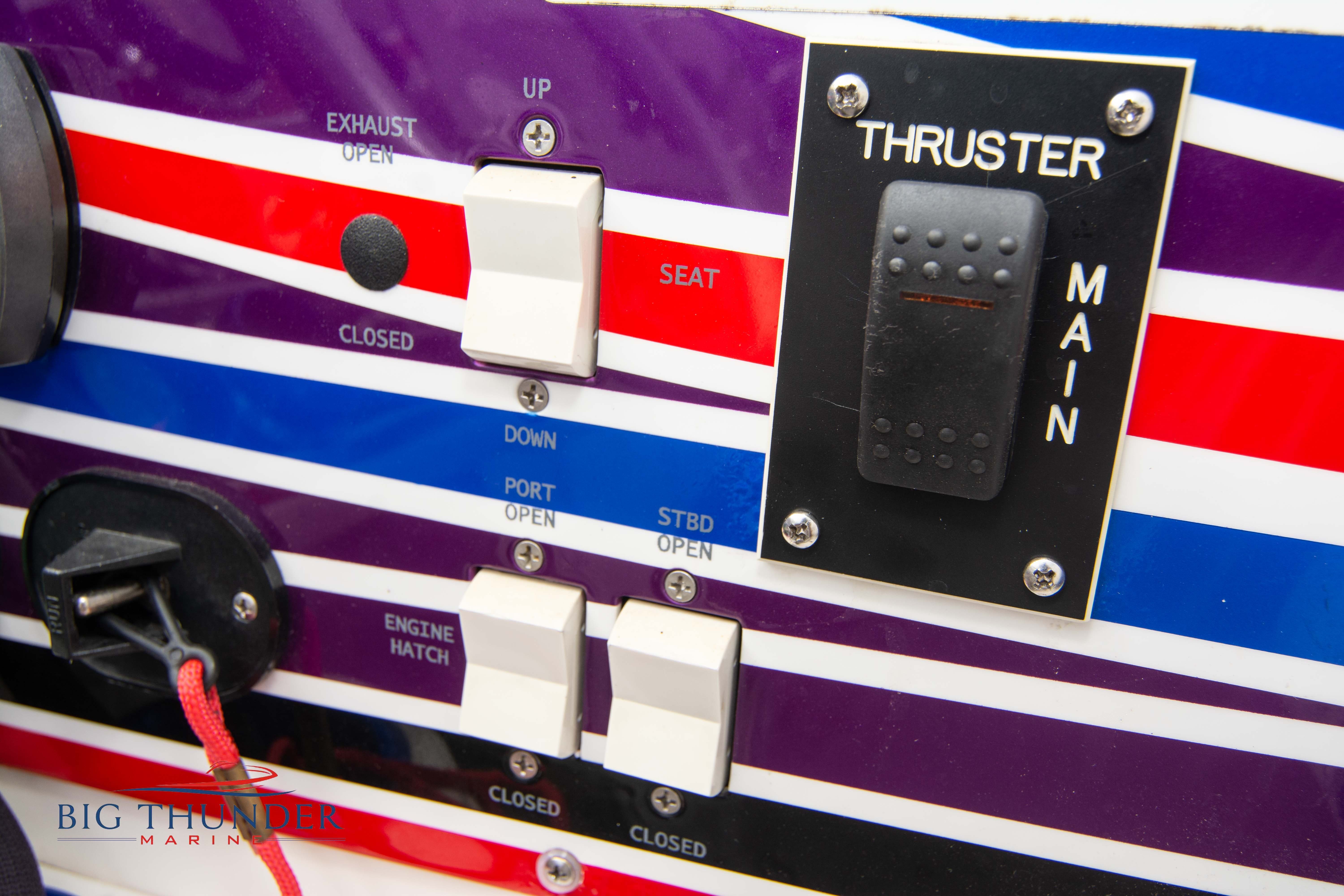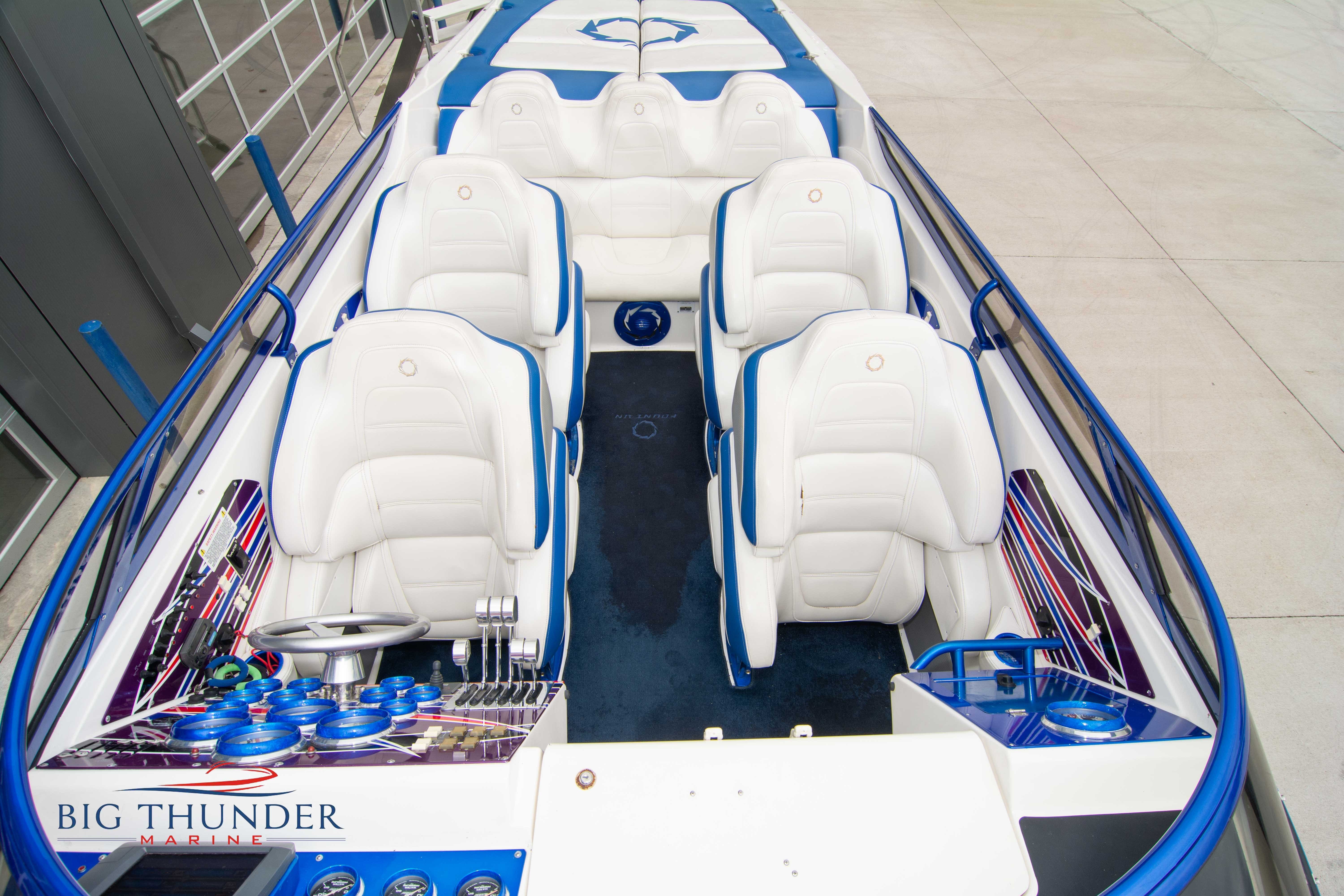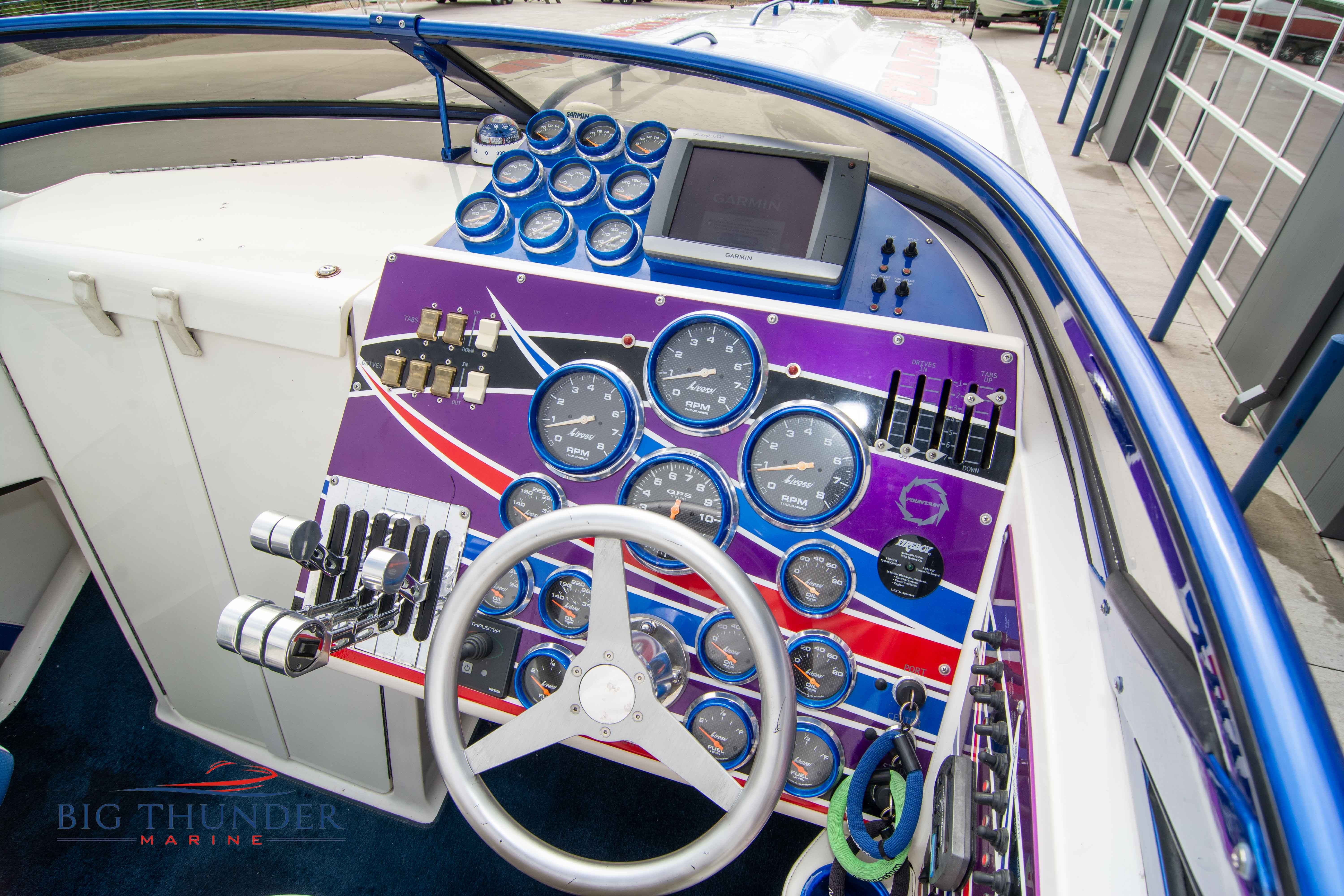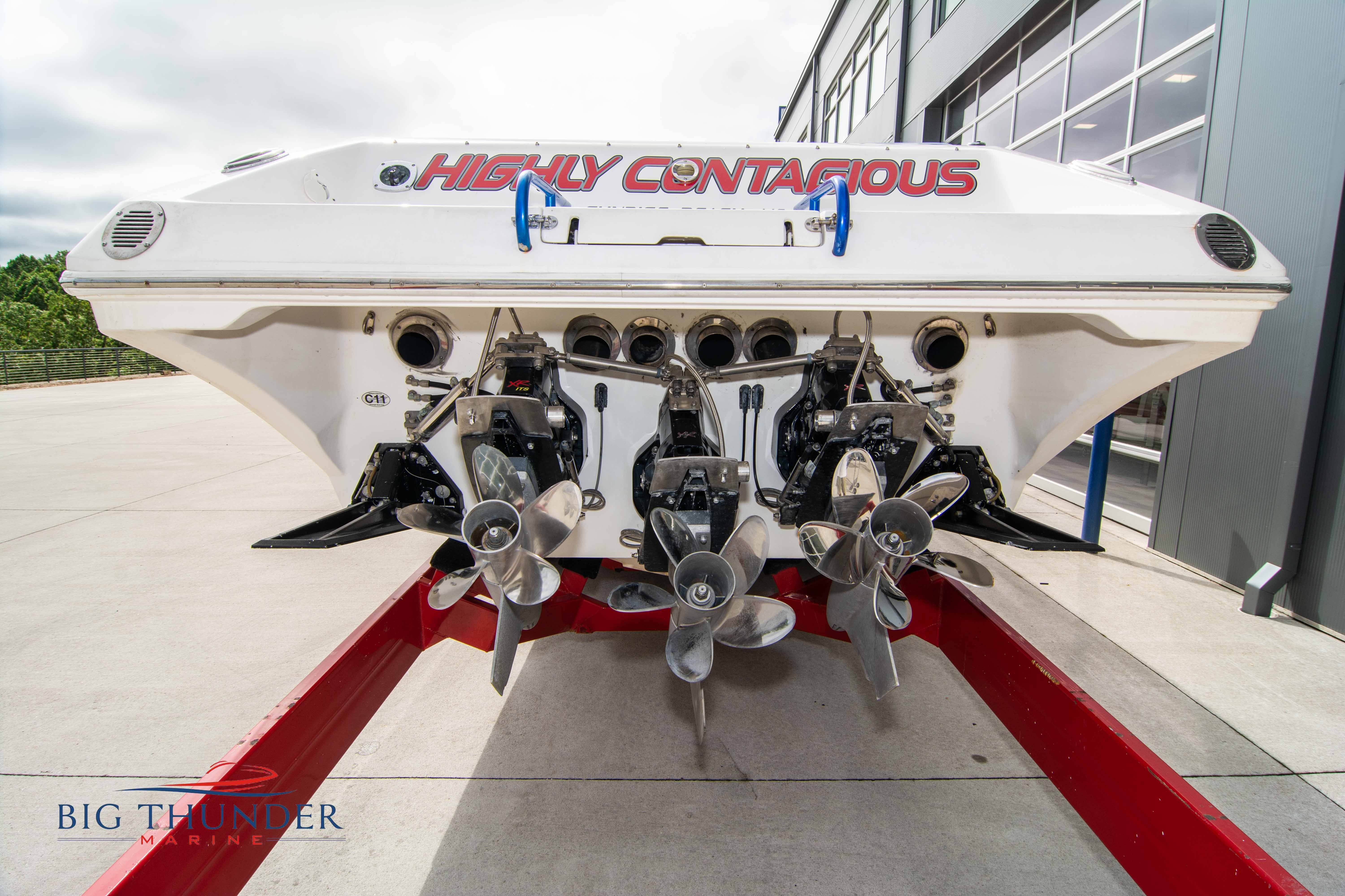 2007 Fountain 47 Lighting, Xtreme Graphics-fx paint, Triple 525 EFI, (437 hours - top ends done 40 hours ago), XR drives, Maximus 32 pitch props, sport master lowers, 280 K planes, mechanical tab/drive indicators, rear ladder, rear transom shower, cockpit carpet, Garmin GPSmap 5208, Livorsi gauges, compass, bow thruster, trim in handle, AC/heat, Kohler gen, dual burner stove, Kenwood head unit with drivers remote, vacu flush head, hot water heater, halon, sea strainers, Pro Tournament 360 battery charger, Triple axle trailer included. We consider all trades 2000+ model year, financing, delivery, registration and inspections available.