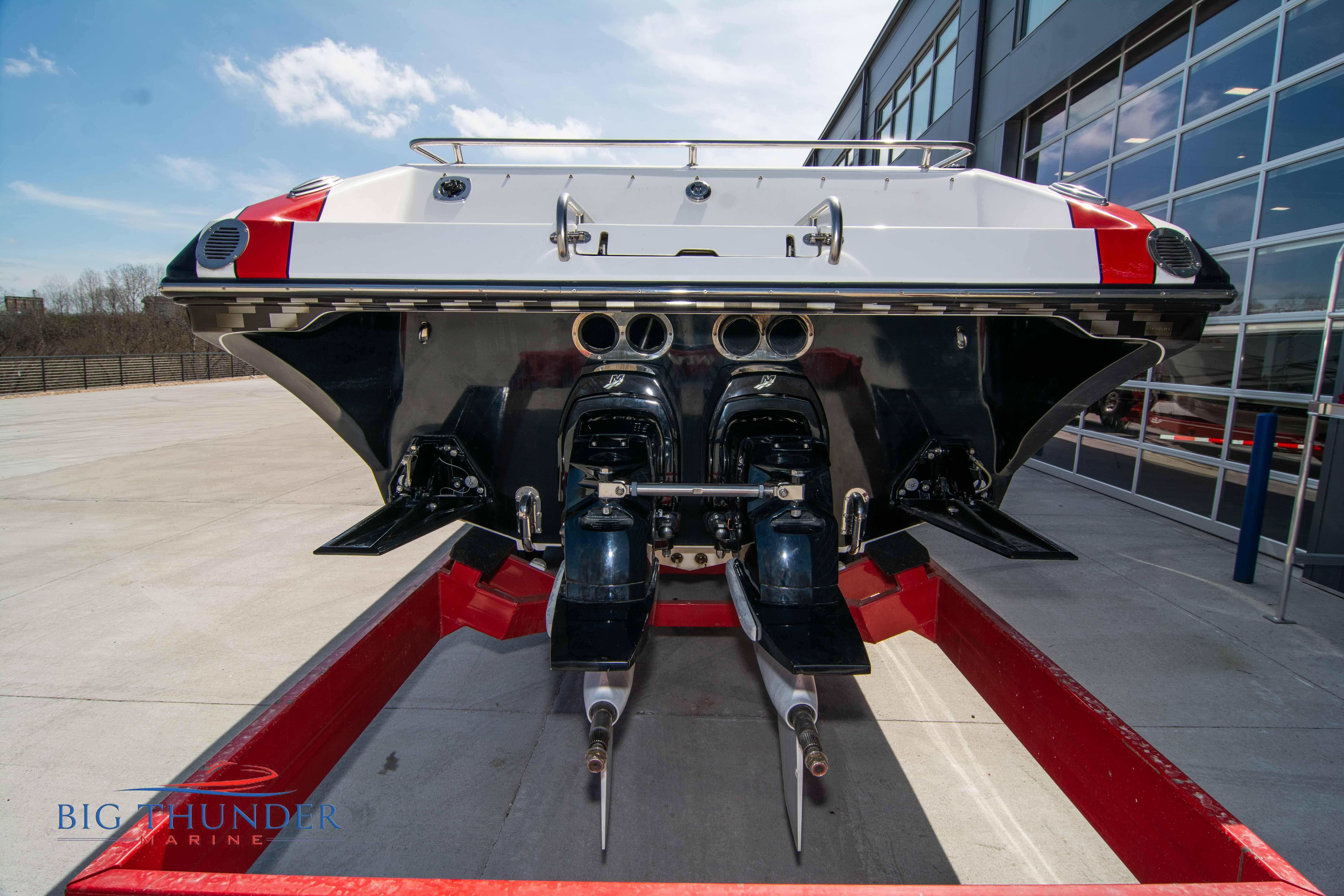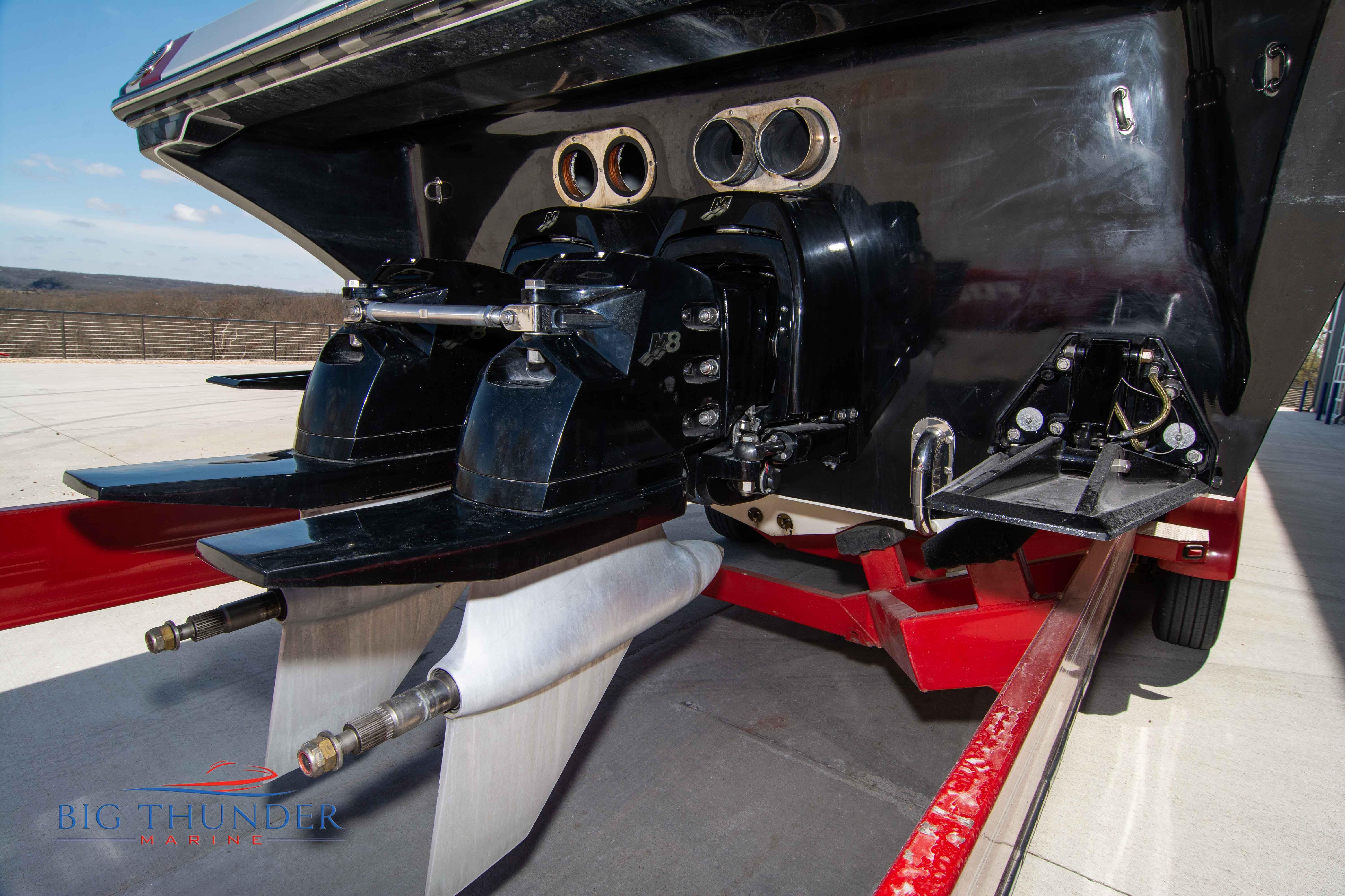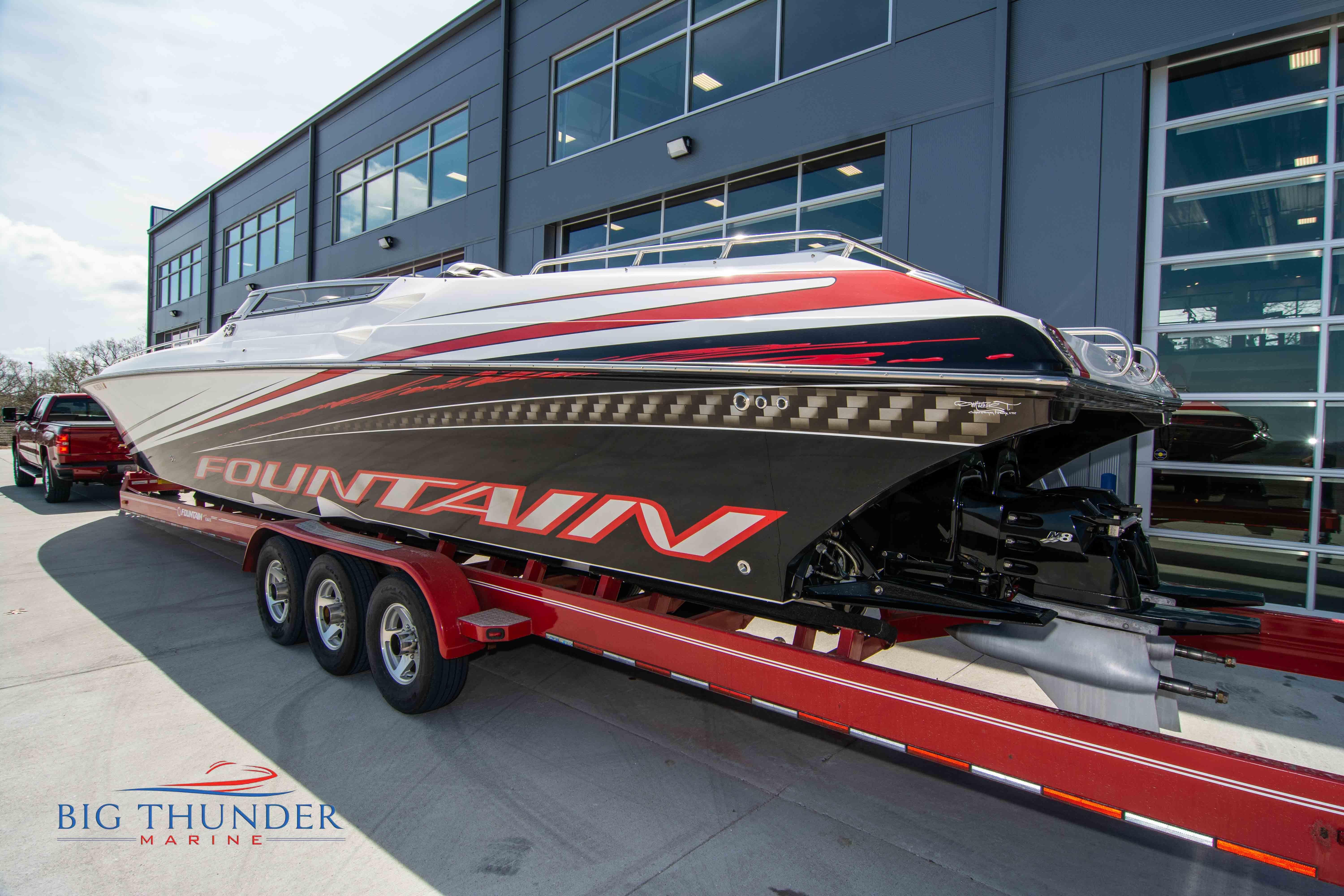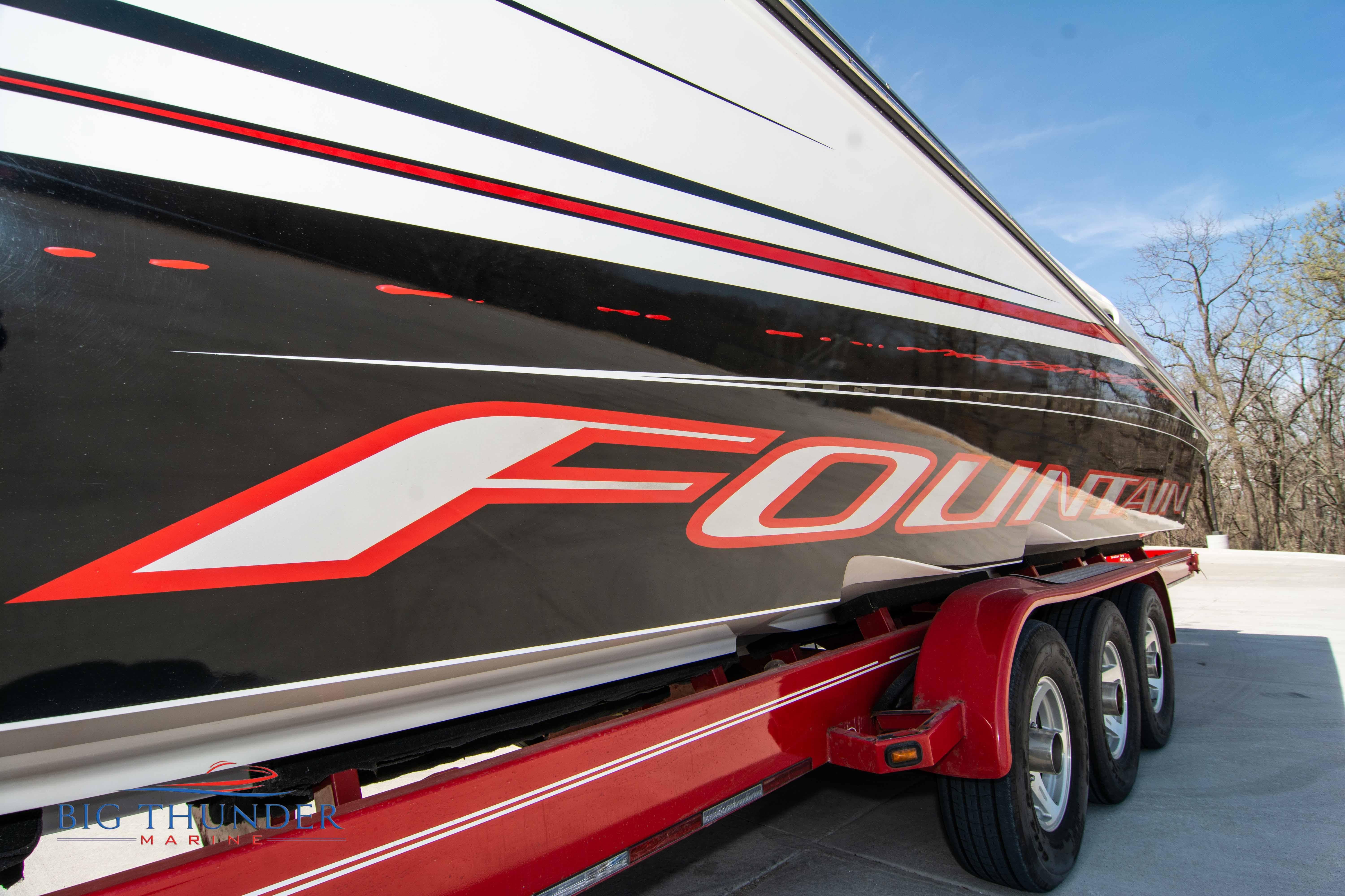 2007/2020 Fountain Lightning, Twin Mercury Racing 1500/1350 QC4V (125+ mph), M8 drives 1.398:1 gear ratio, Mercury Racing 6 blade 1350hp props 17x33x15R, Livorsi gauges, Garmin GPS, poker run seating, cockpit carpet, full cabin. Mitch T paint. 2020 Myco triple axle trailer included. Motors, drives, and electronics come with 1 year warranty.