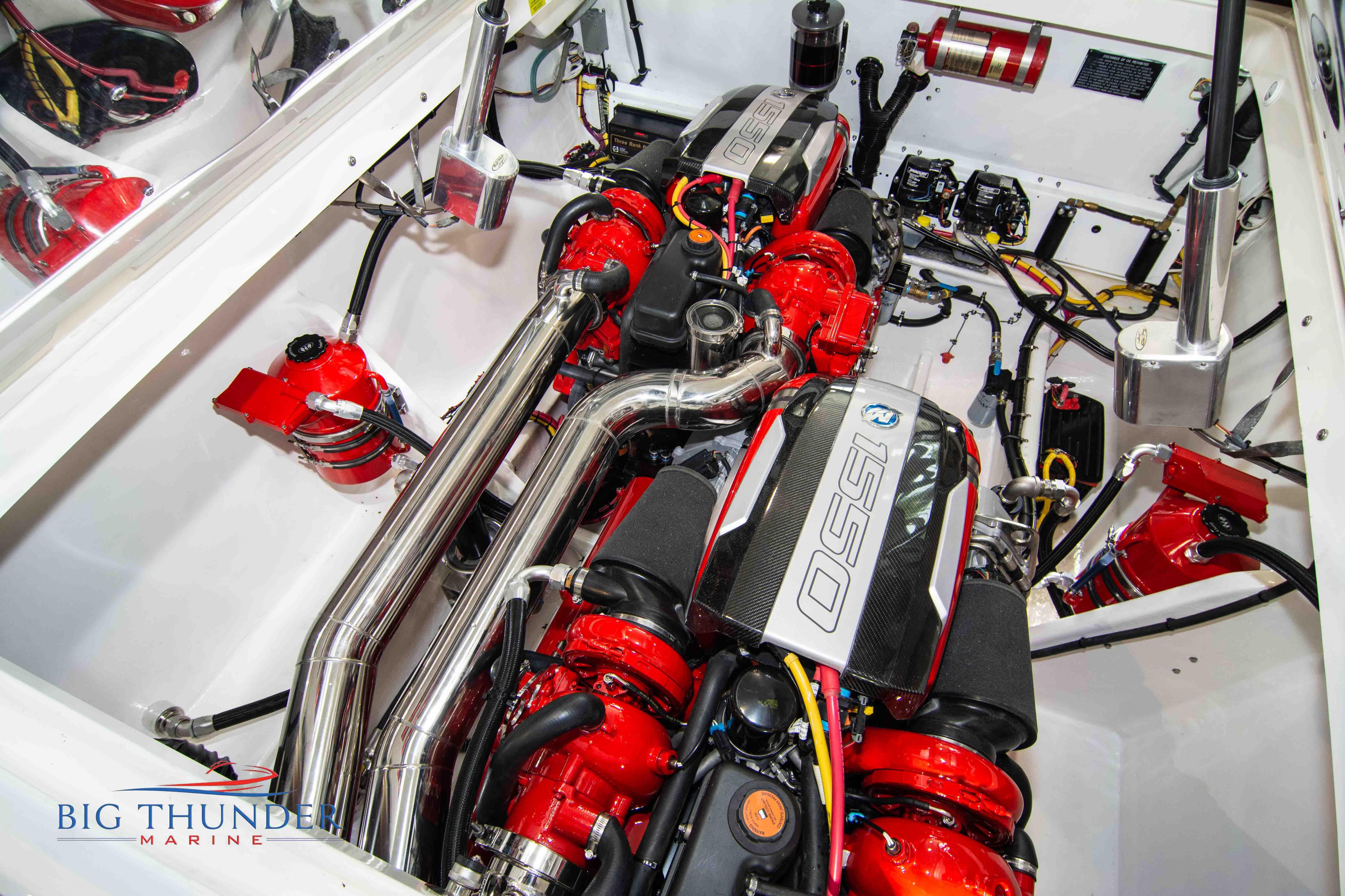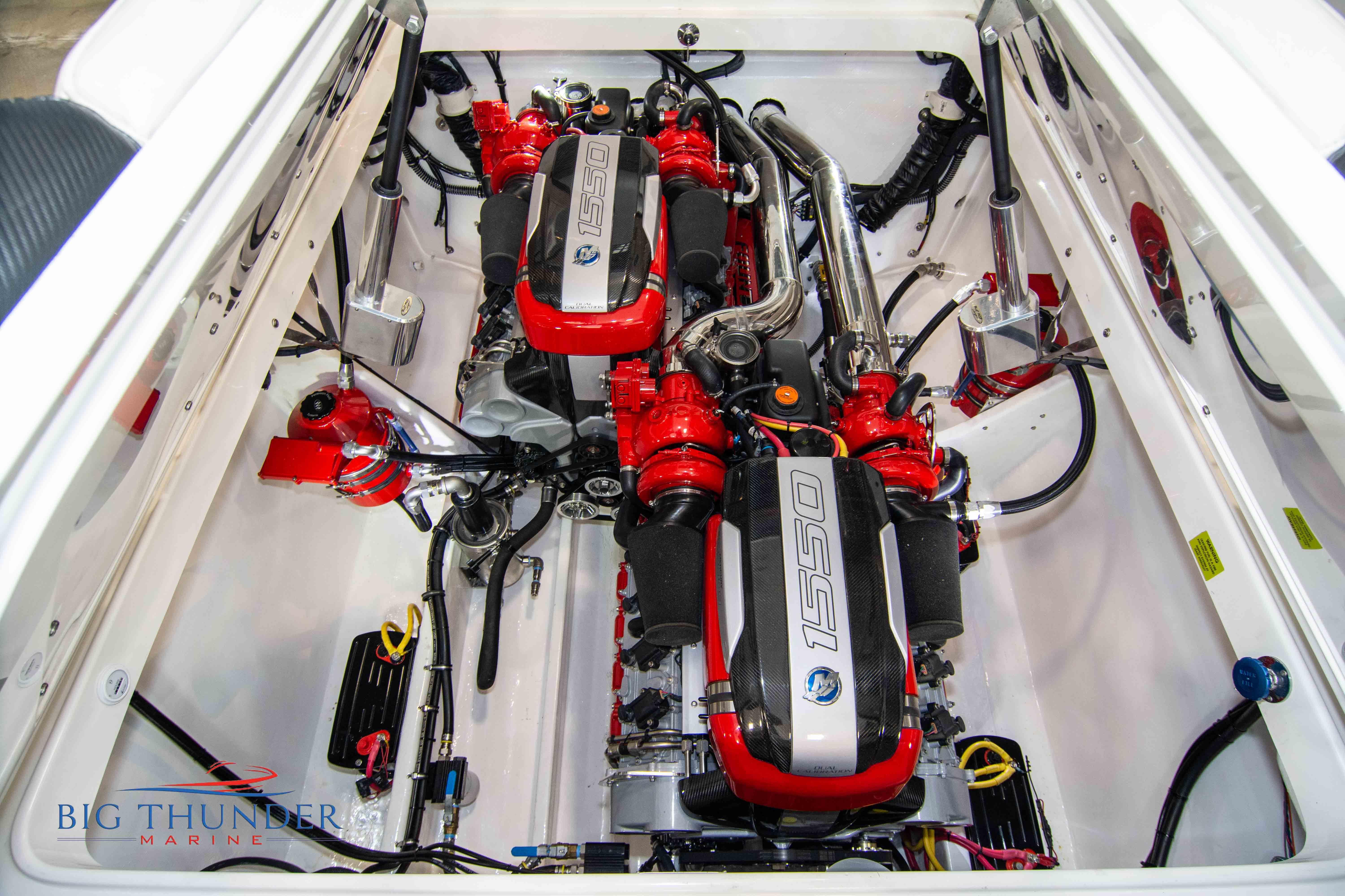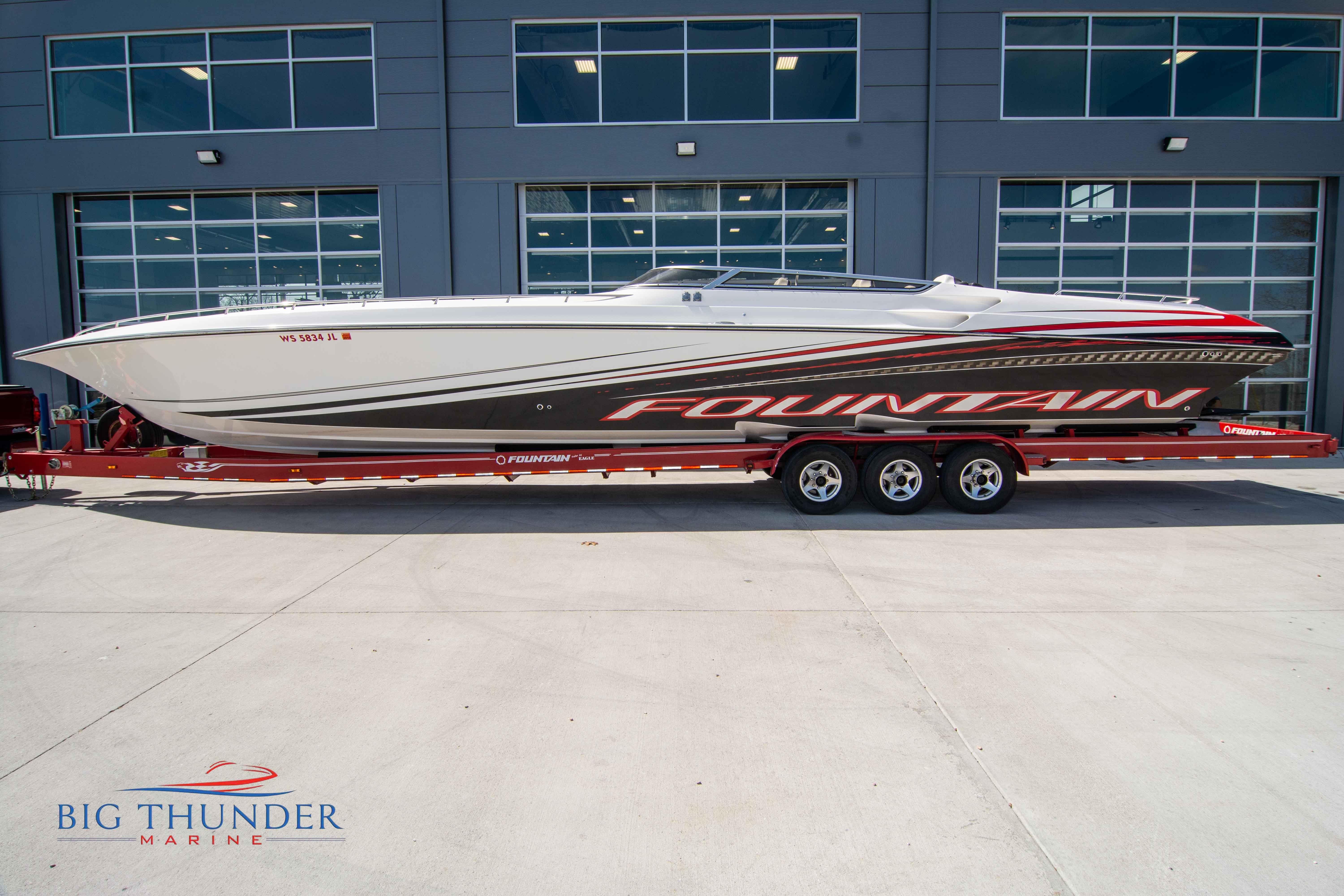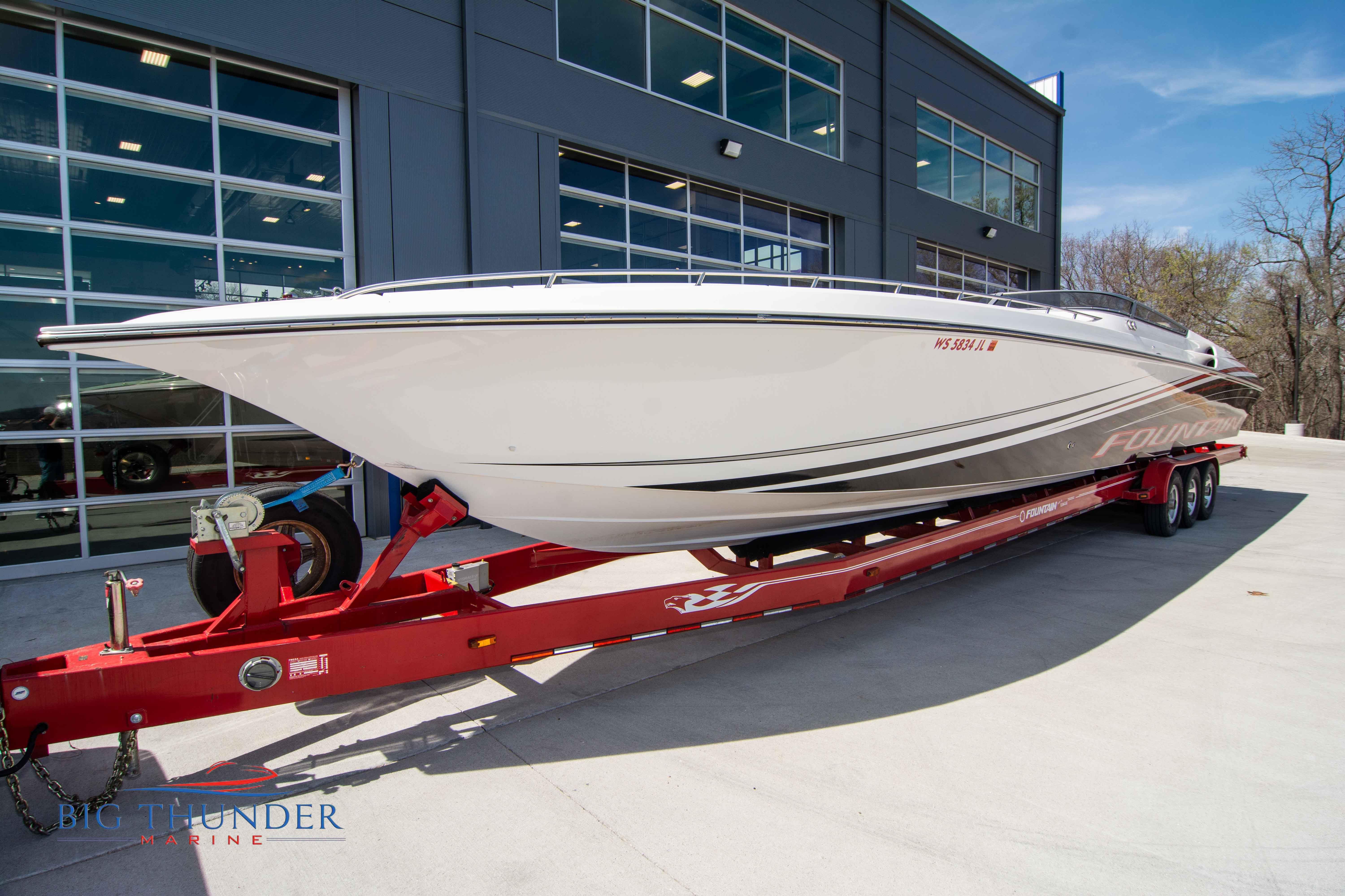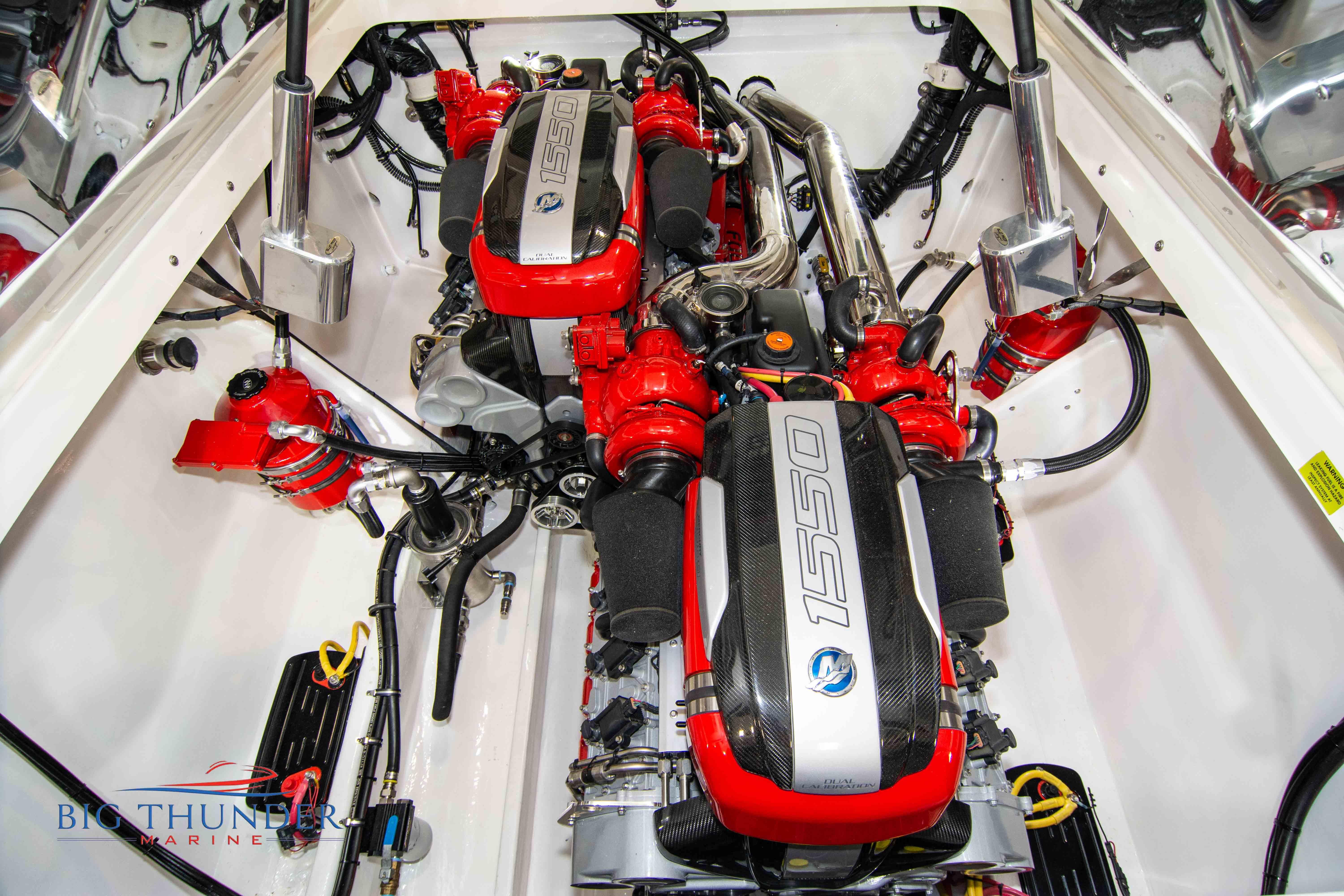 2007/2020 Fountain Lightning, Twin Mercury Racing 1500/1350 QC4V (125+ mph), M8 drives 1.398:1 gear ratio, Mercury Racing 6 blade 1350hp props 17x33x15R, Livorsi gauges, Garmin GPS, poker run seating, cockpit carpet, full cabin. Mitch T paint. 2020 Myco triple axle trailer included. Motors, drives, and electronics come with 1 year warranty.