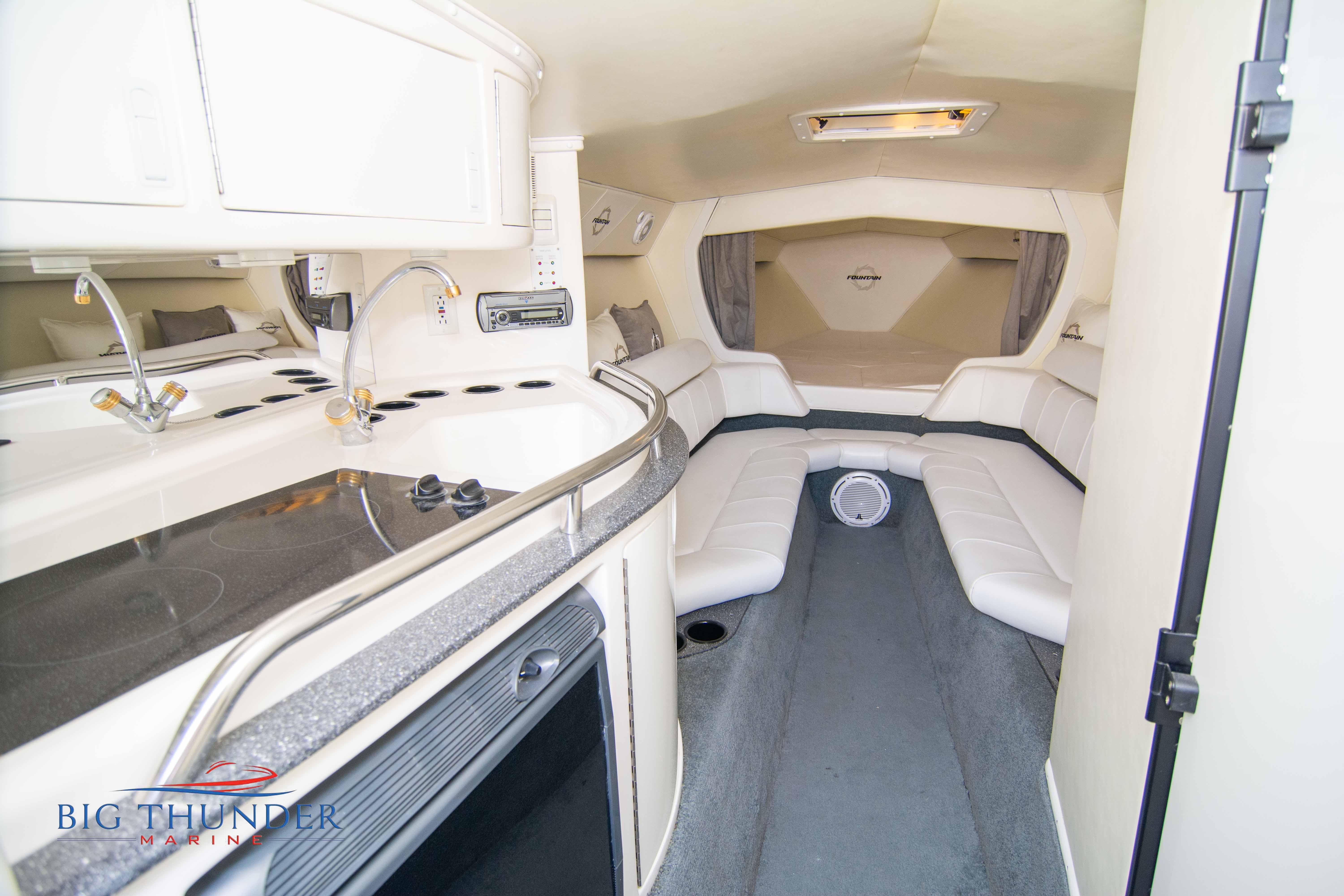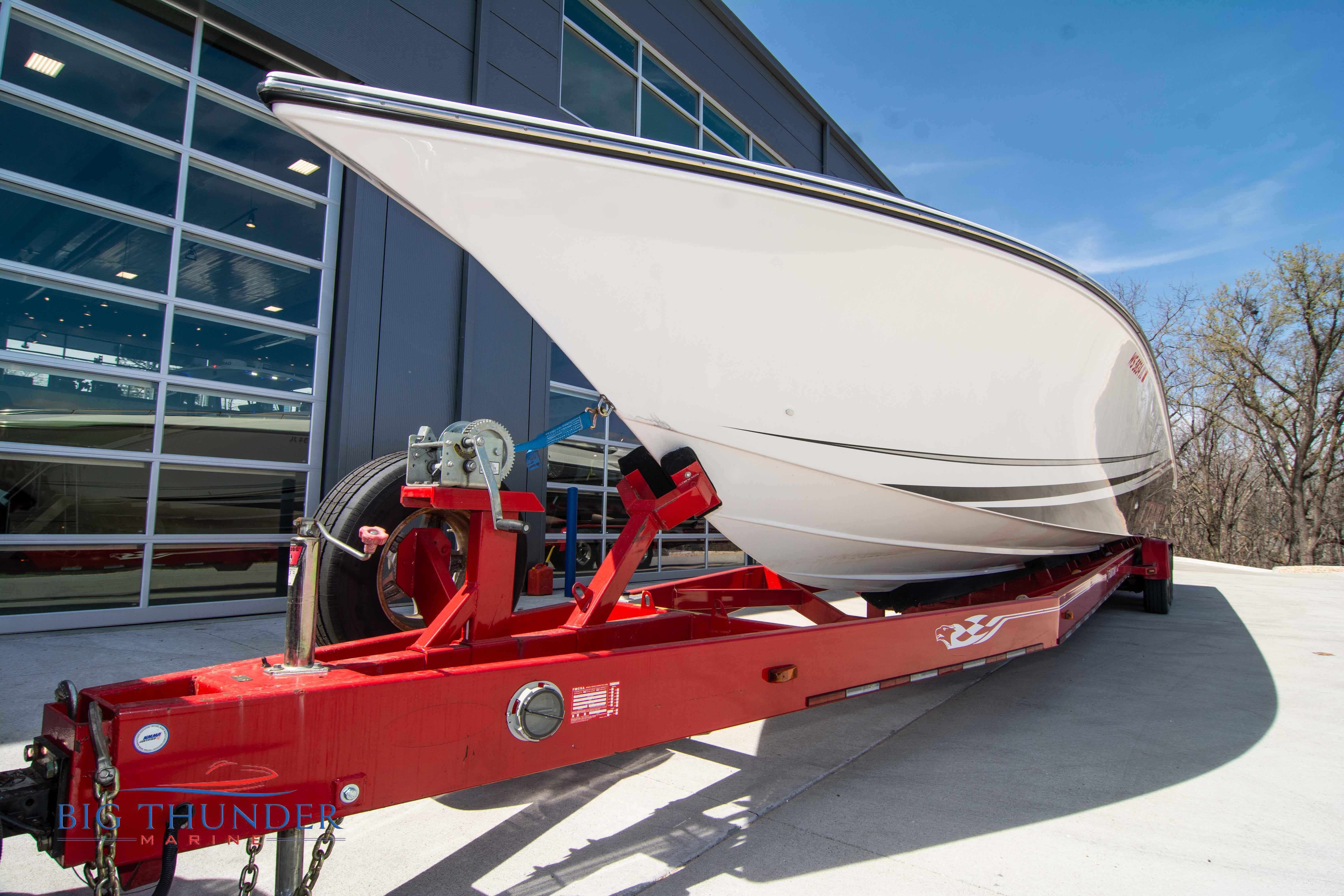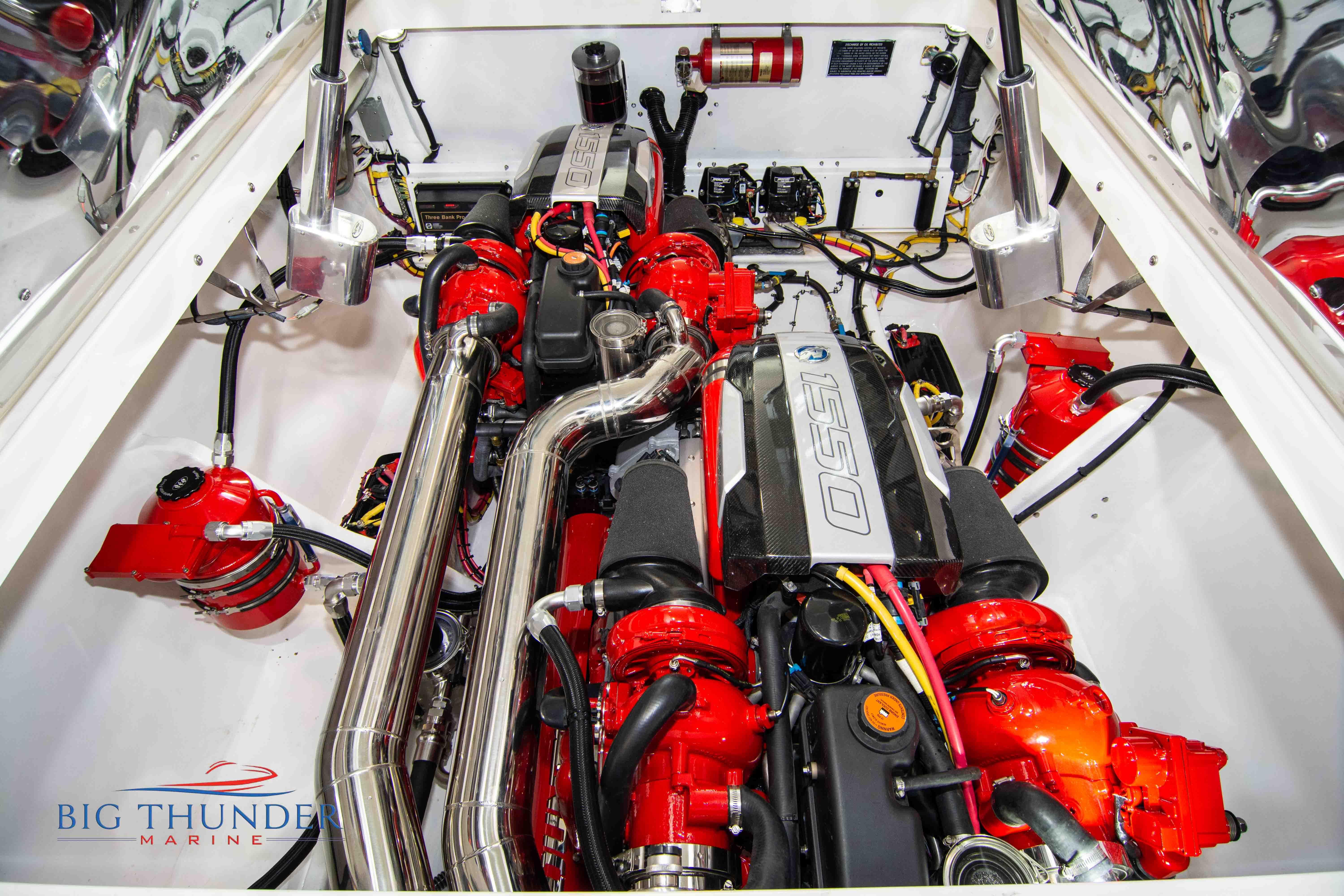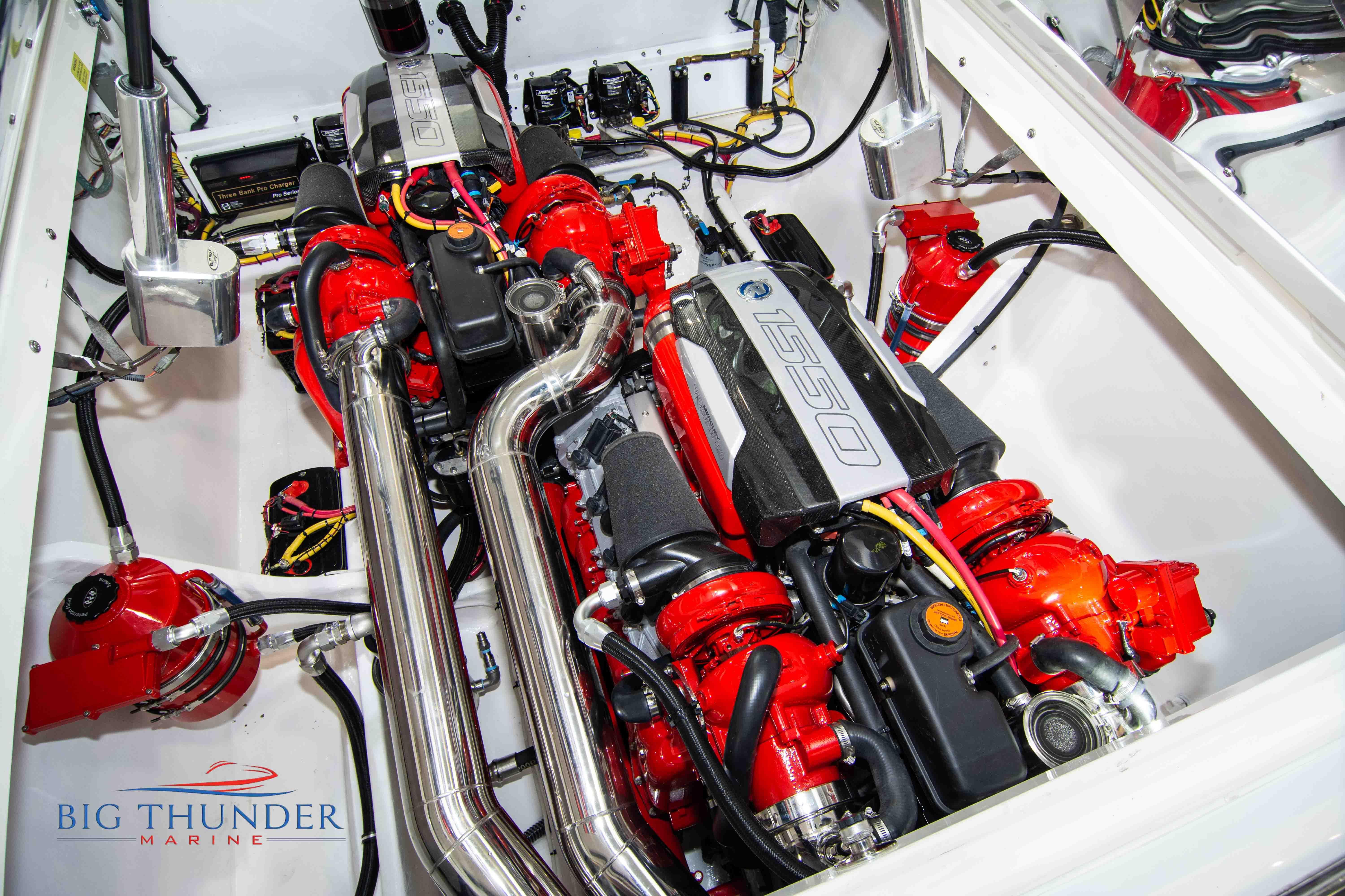 2007/2020 Fountain Lightning, Twin Mercury Racing 1500/1350 QC4V (125+ mph), M8 drives 1.398:1 gear ratio, Mercury Racing 6 blade 1350hp props 17x33x15R, Livorsi gauges, Garmin GPS, poker run seating, cockpit carpet, full cabin. Mitch T paint. 2020 Myco triple axle trailer included. Motors, drives, and electronics come with 1 year warranty.