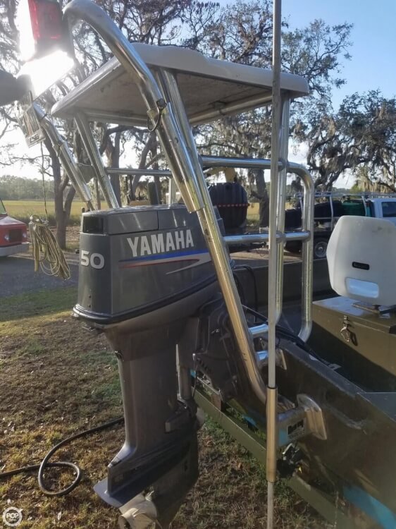 All welded Guide edition with custom poling platform with light bar! Interlux bottom painted in 2016! Dual movable fuel tanks! Dig In pole anchor!