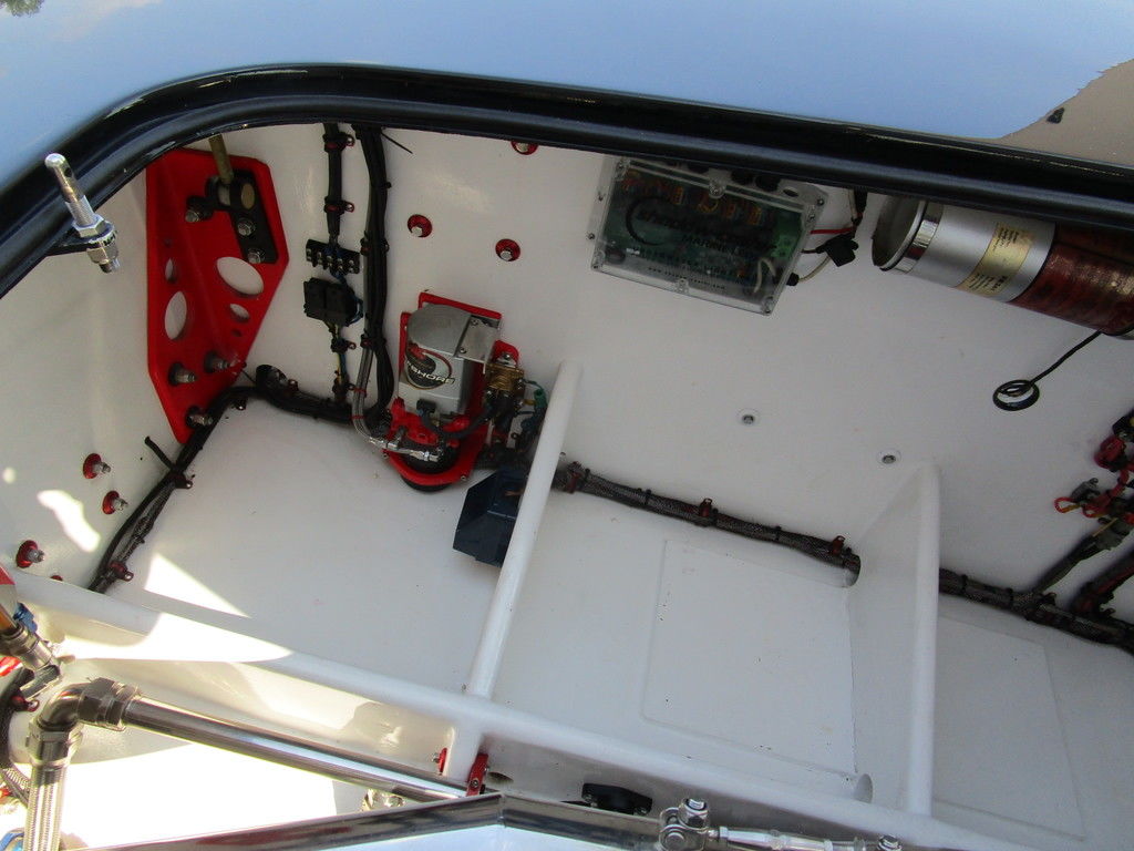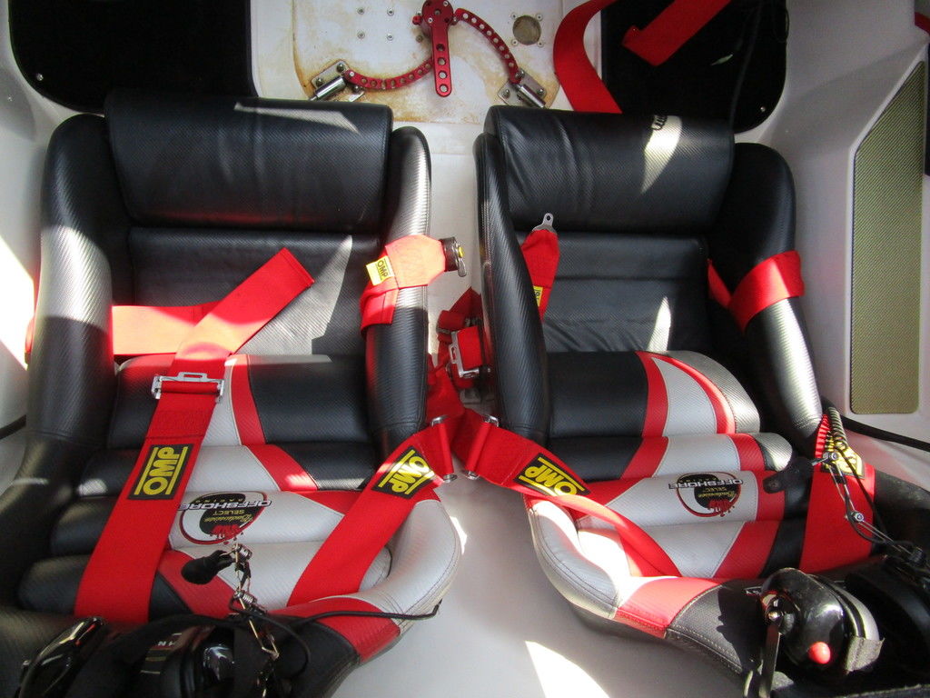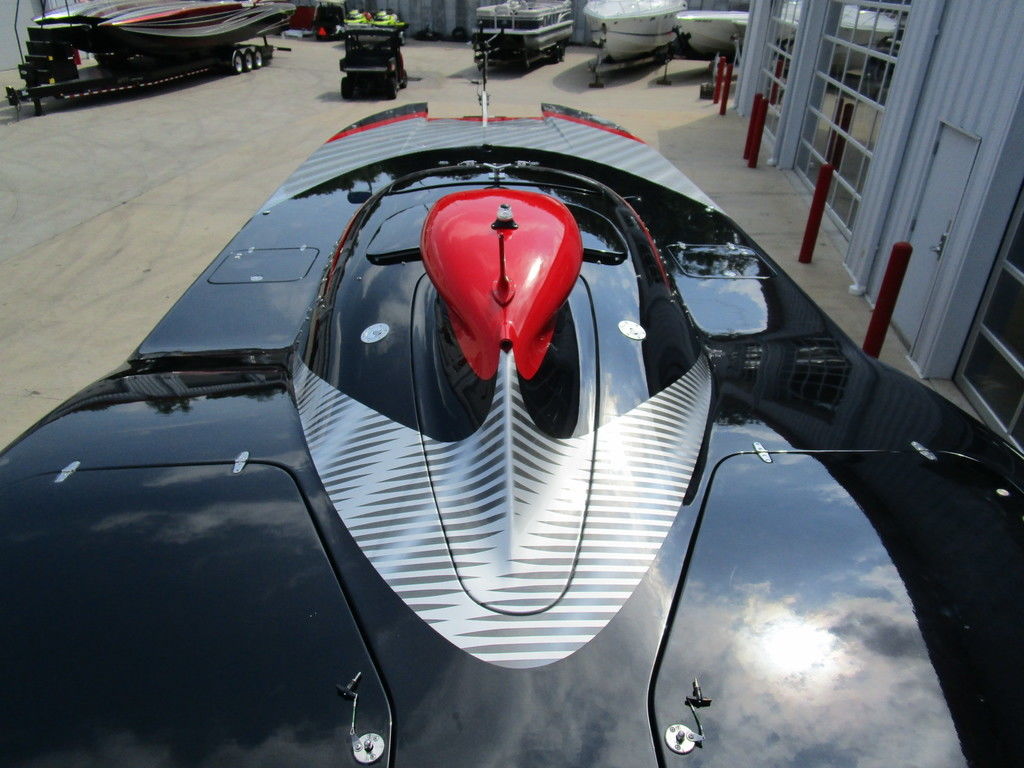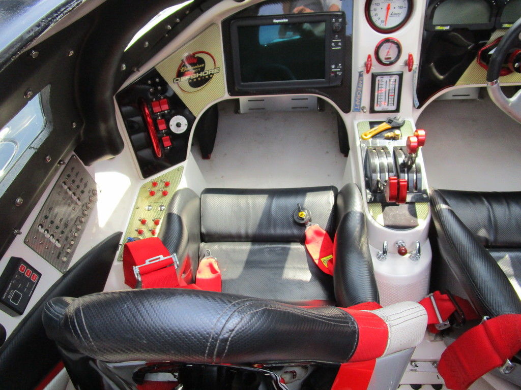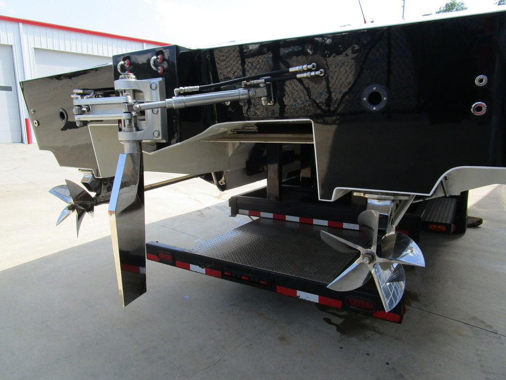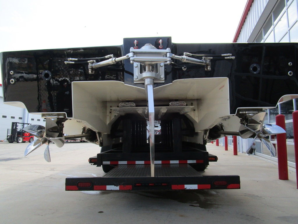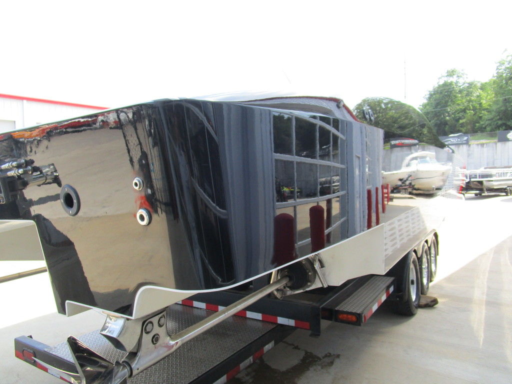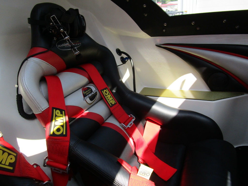 2007 MTI 44 Bud Select race boat converted to pleasure powered by twin Sterling 1200s, shaft drives with rudder, Mercury CNC props 5 blade props, tunnel tab, Racepak gauges, Raymarine GPS/Chartplotter, Livorsi gauges, GPS speedometer, mechanical indicators for shafts and tunnel tab, intercom system with headsets, vhf radio, fume detector, halon system, escape hatch in floor, and Heritage flat trailer included.